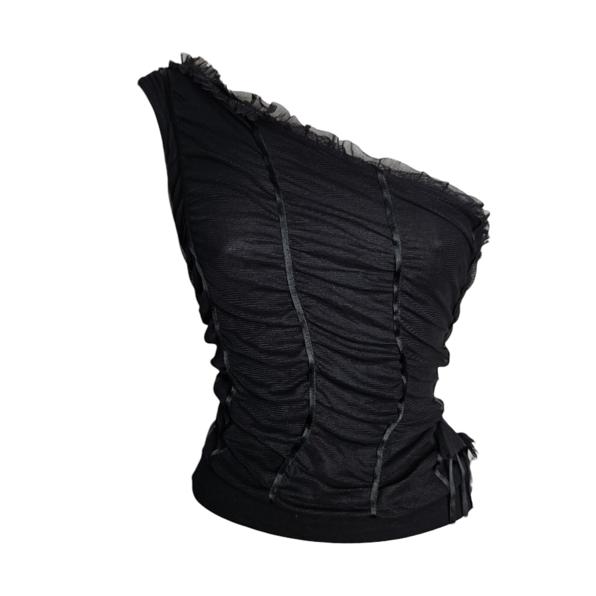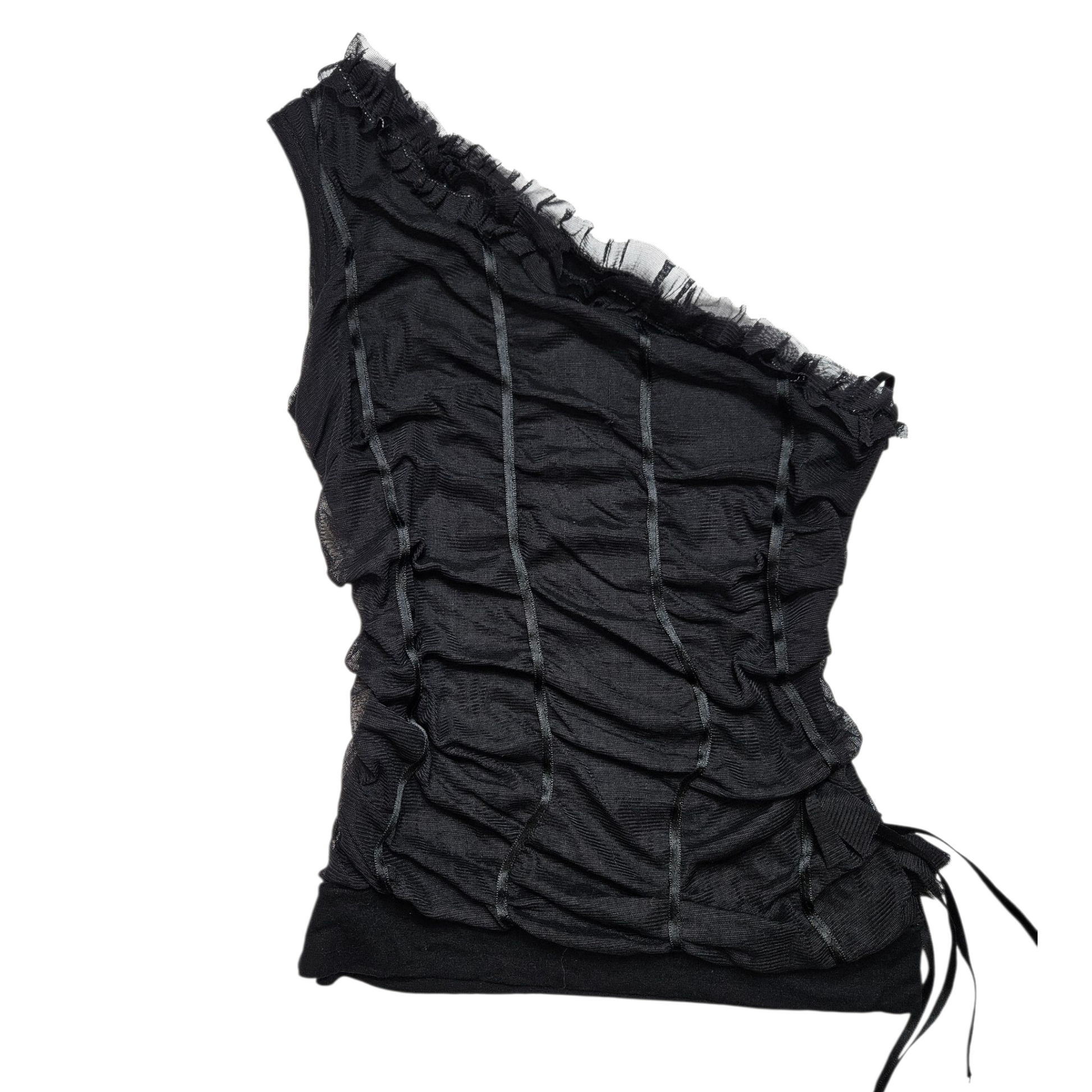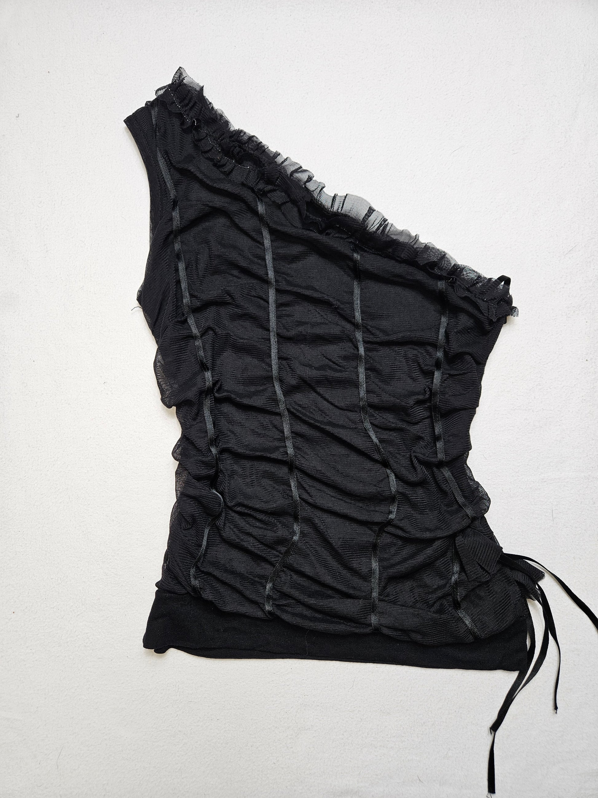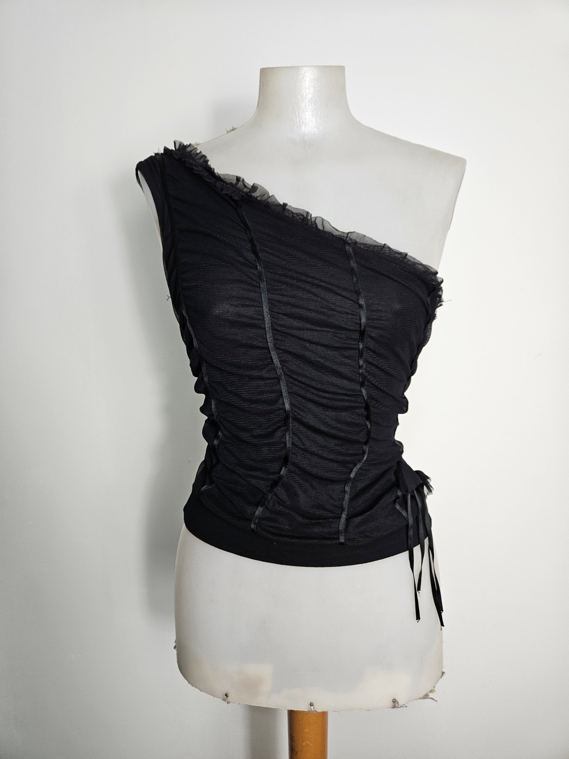 - Tissu plissé avec effet drapé vertical souligné de galons satinés.