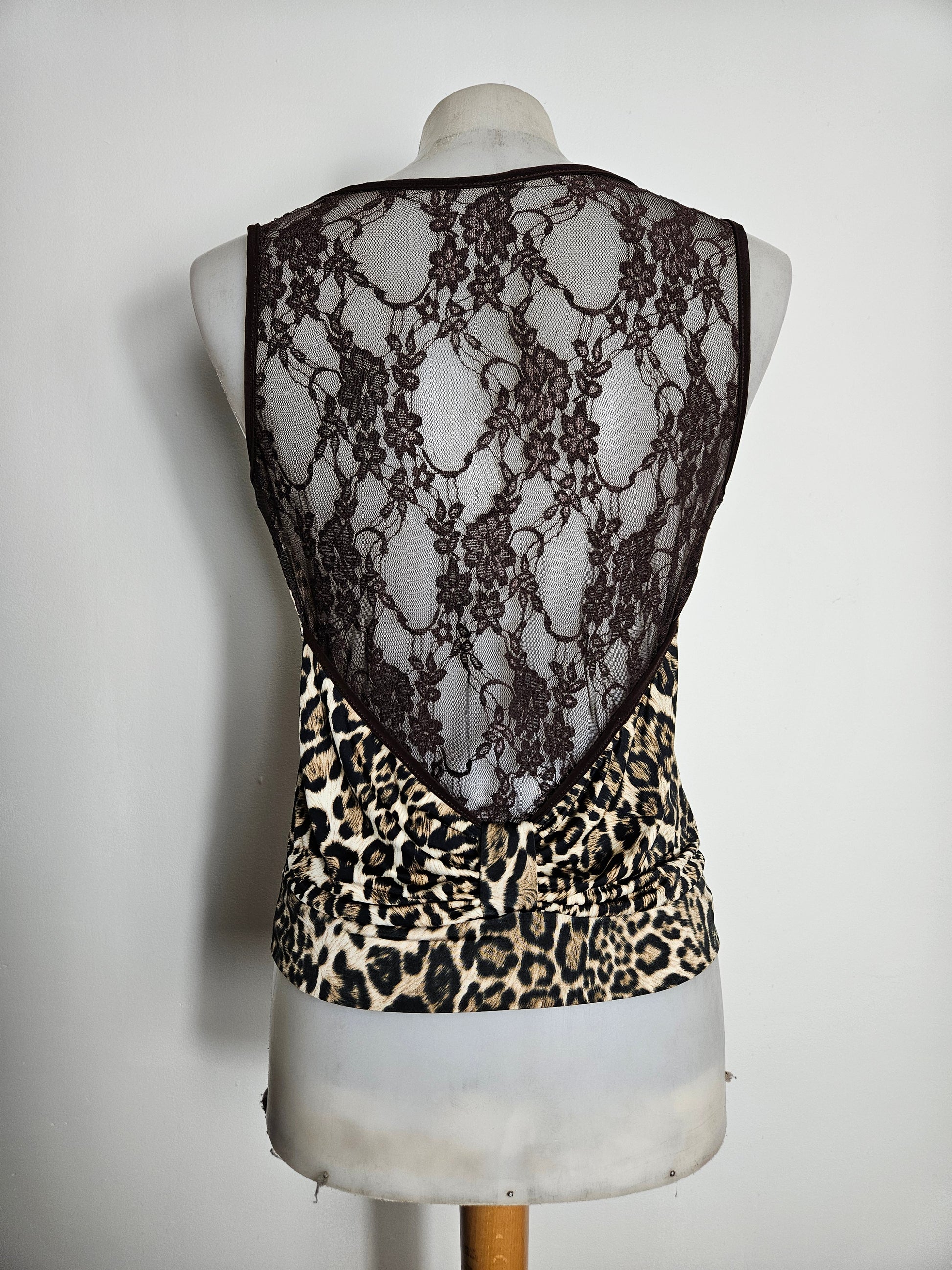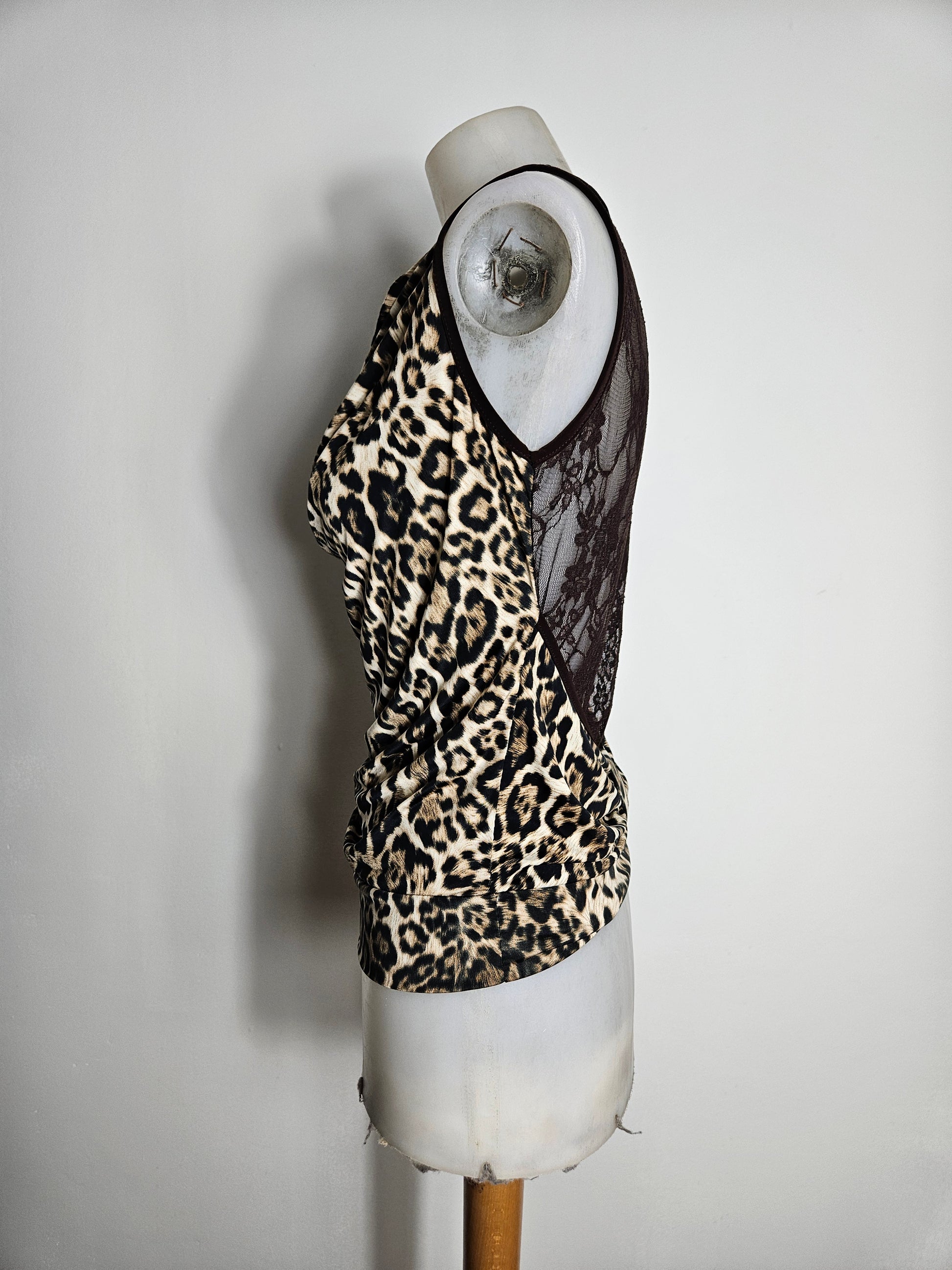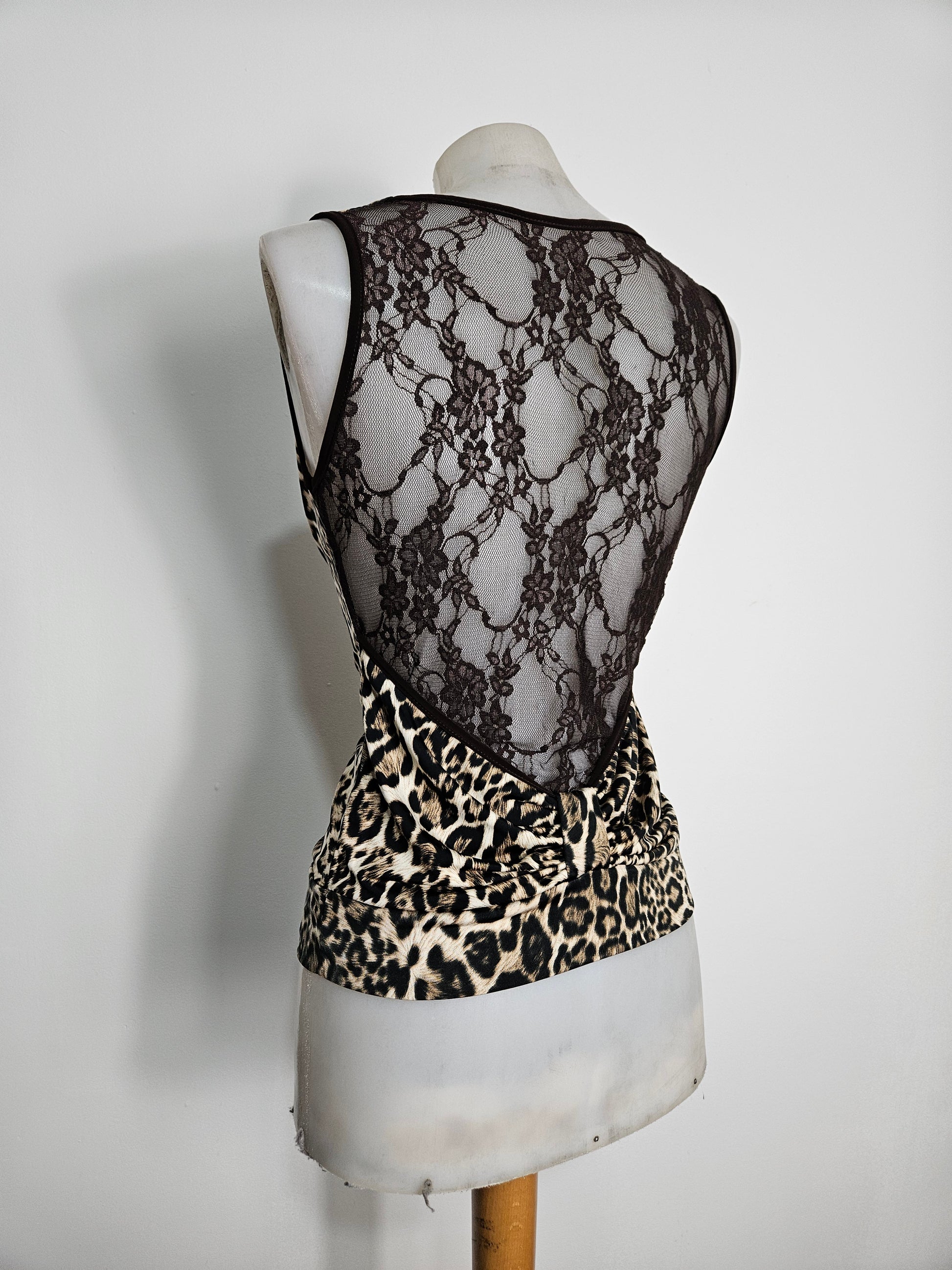 Haut col bénitier léopard dos dentelle
