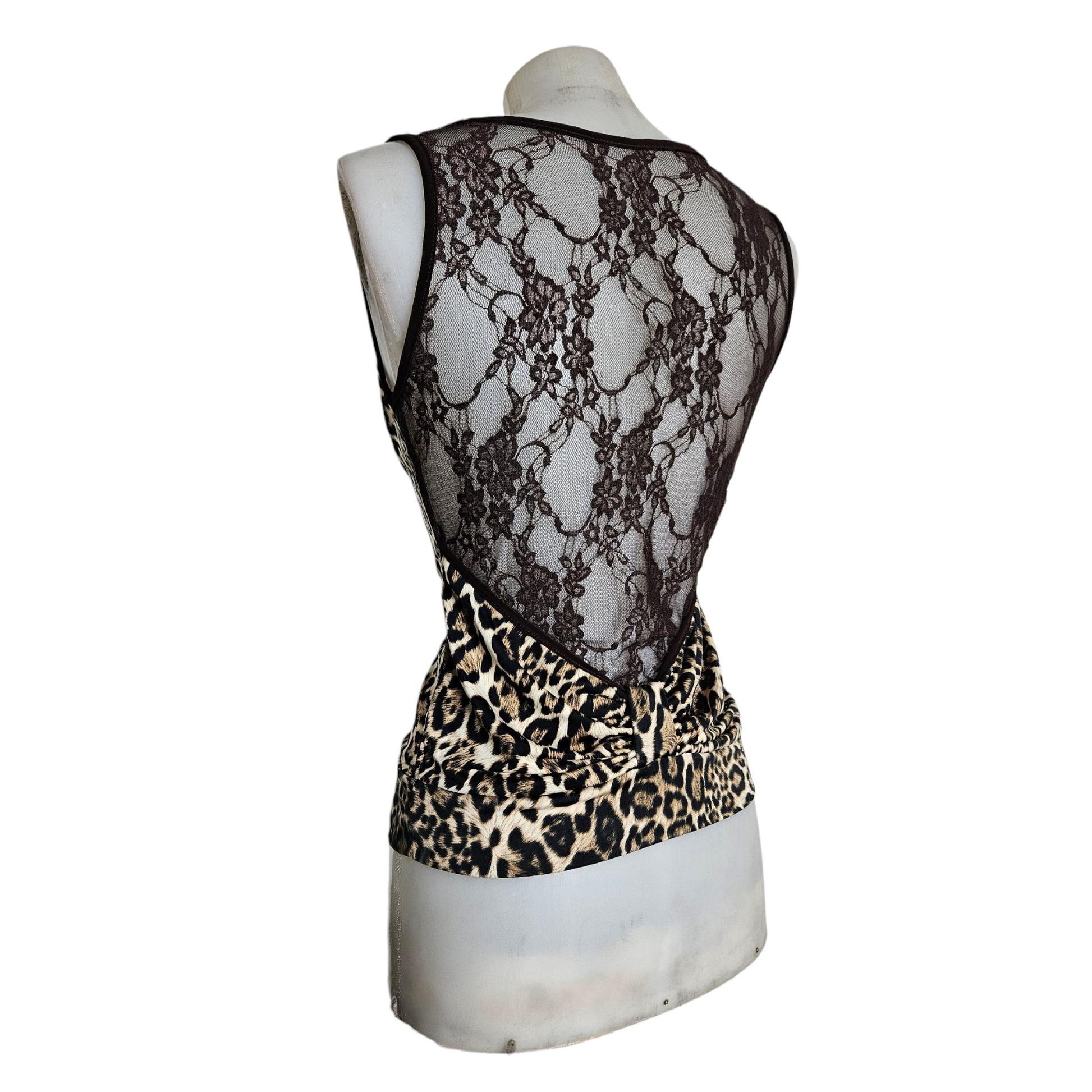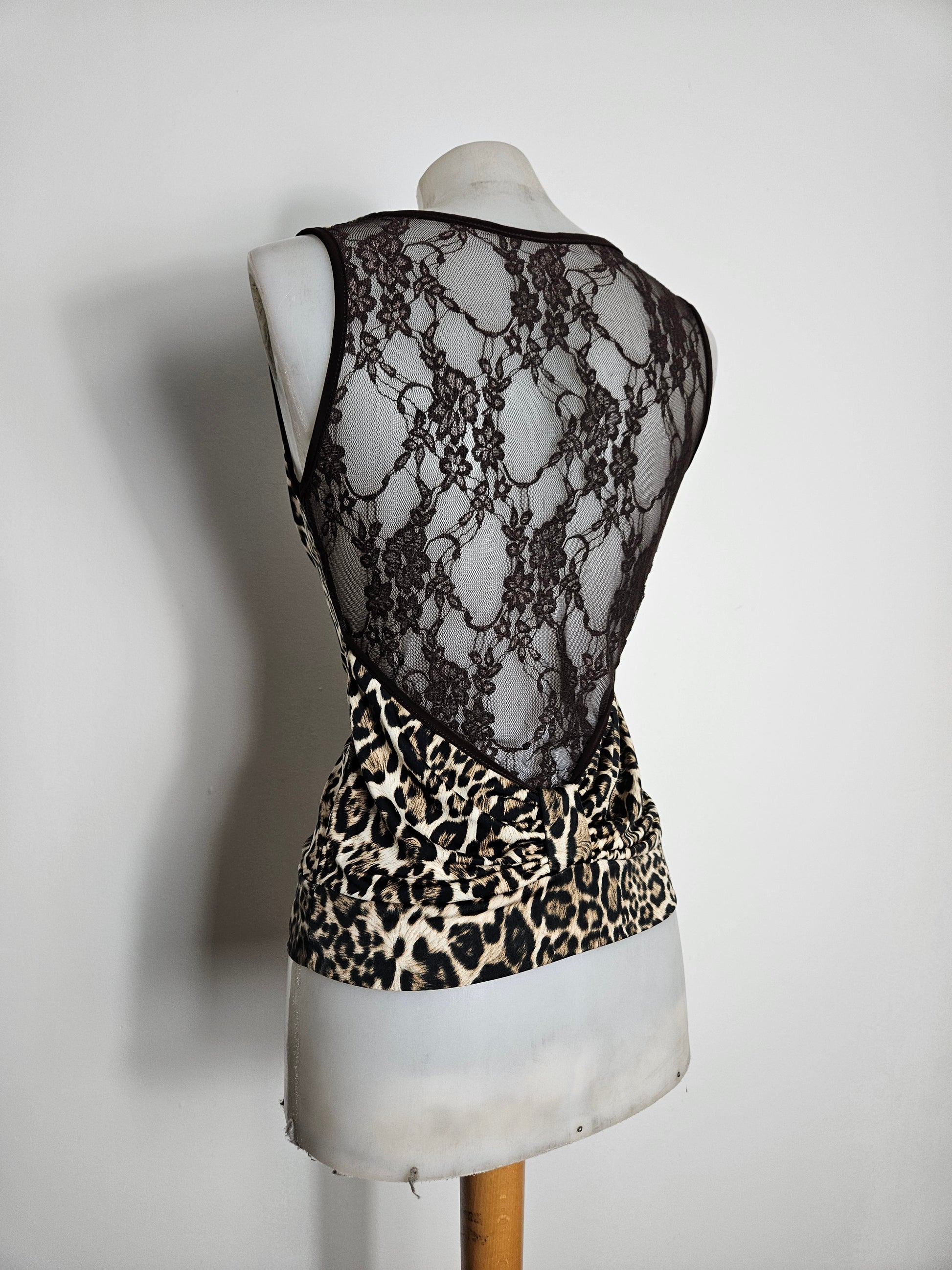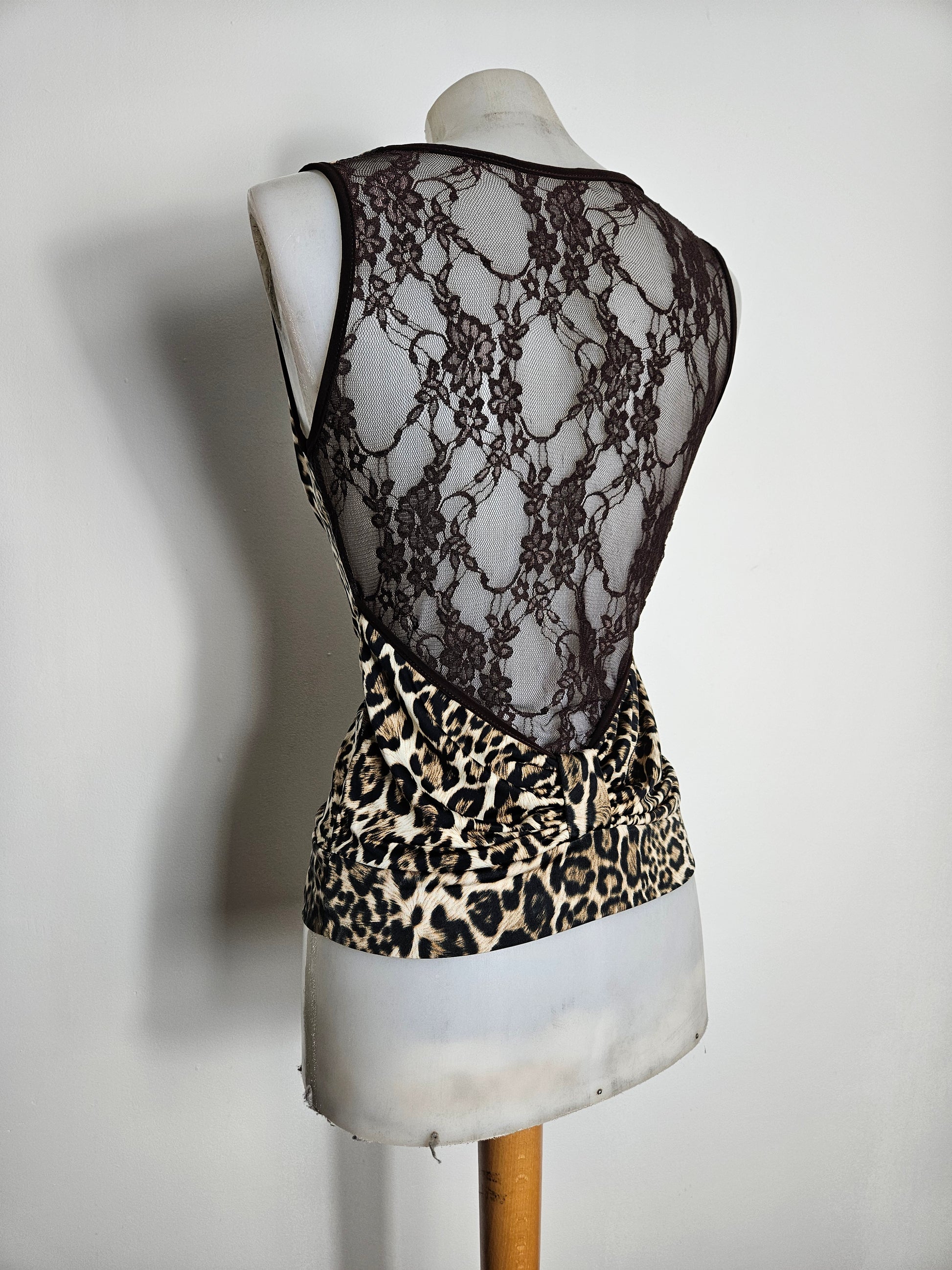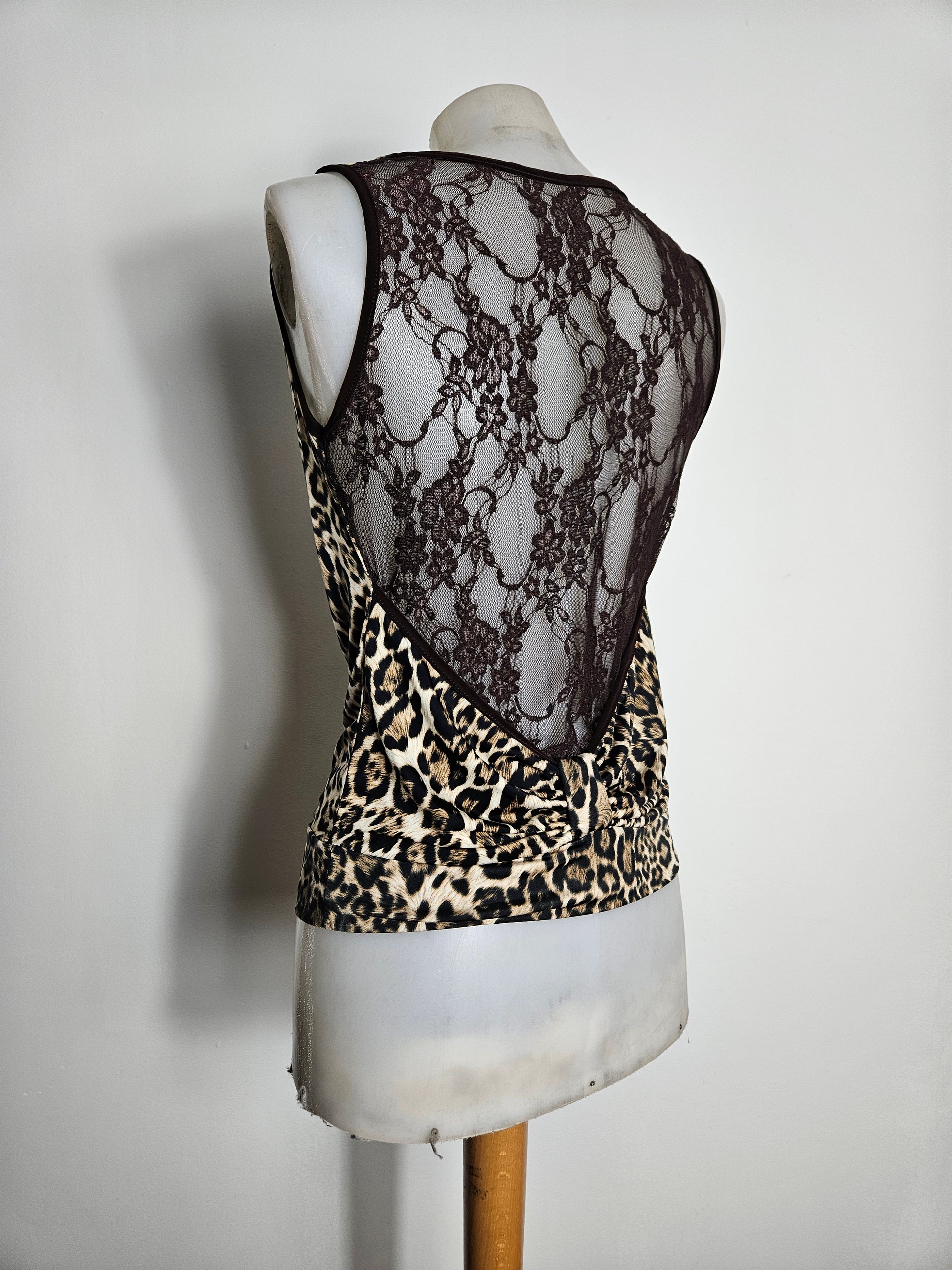 Haut col bénitier léopard dos dentelle