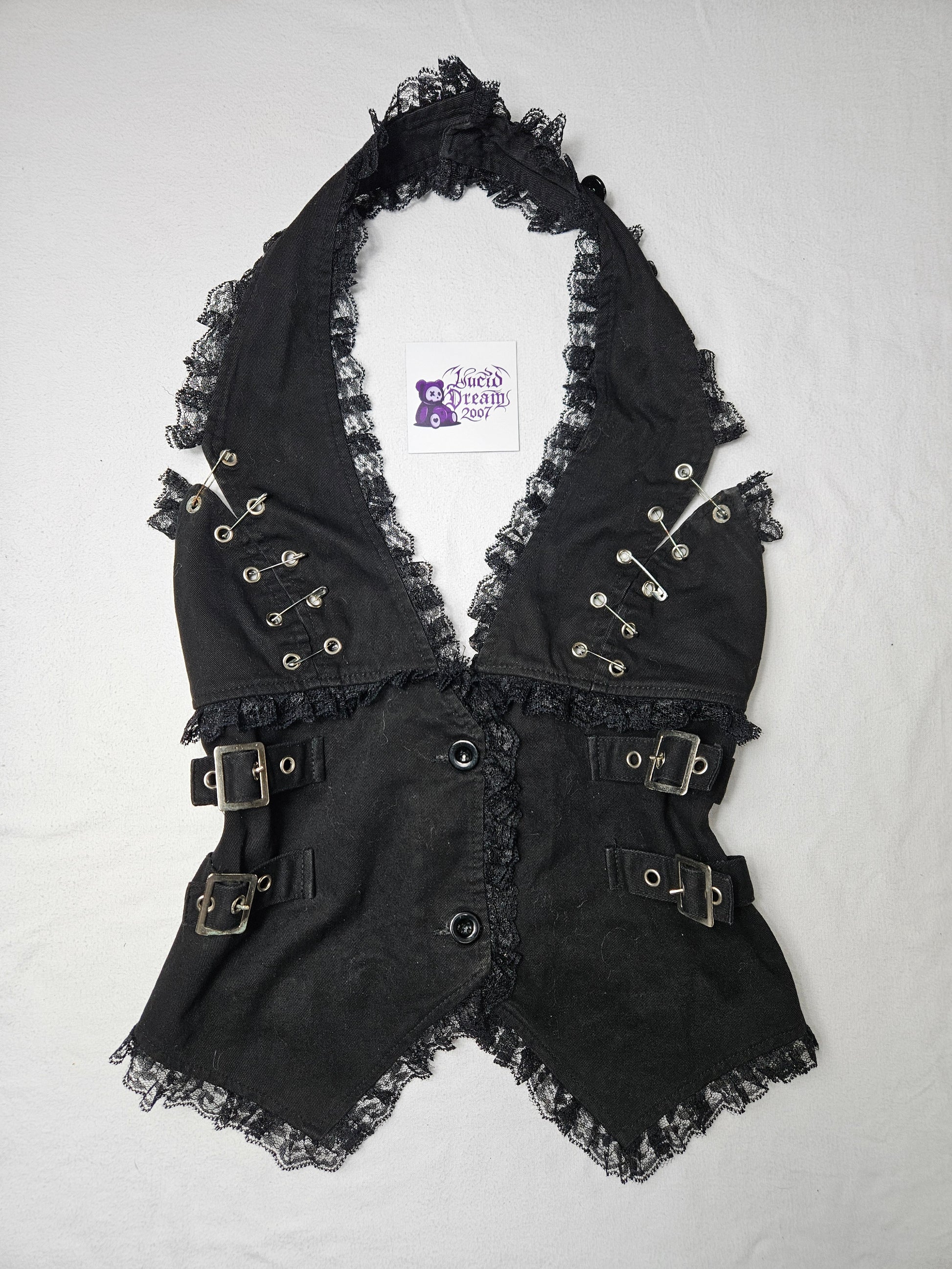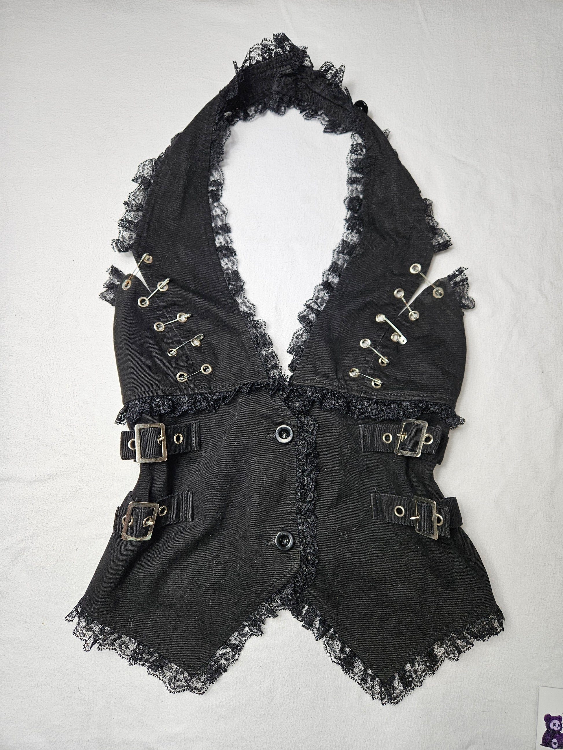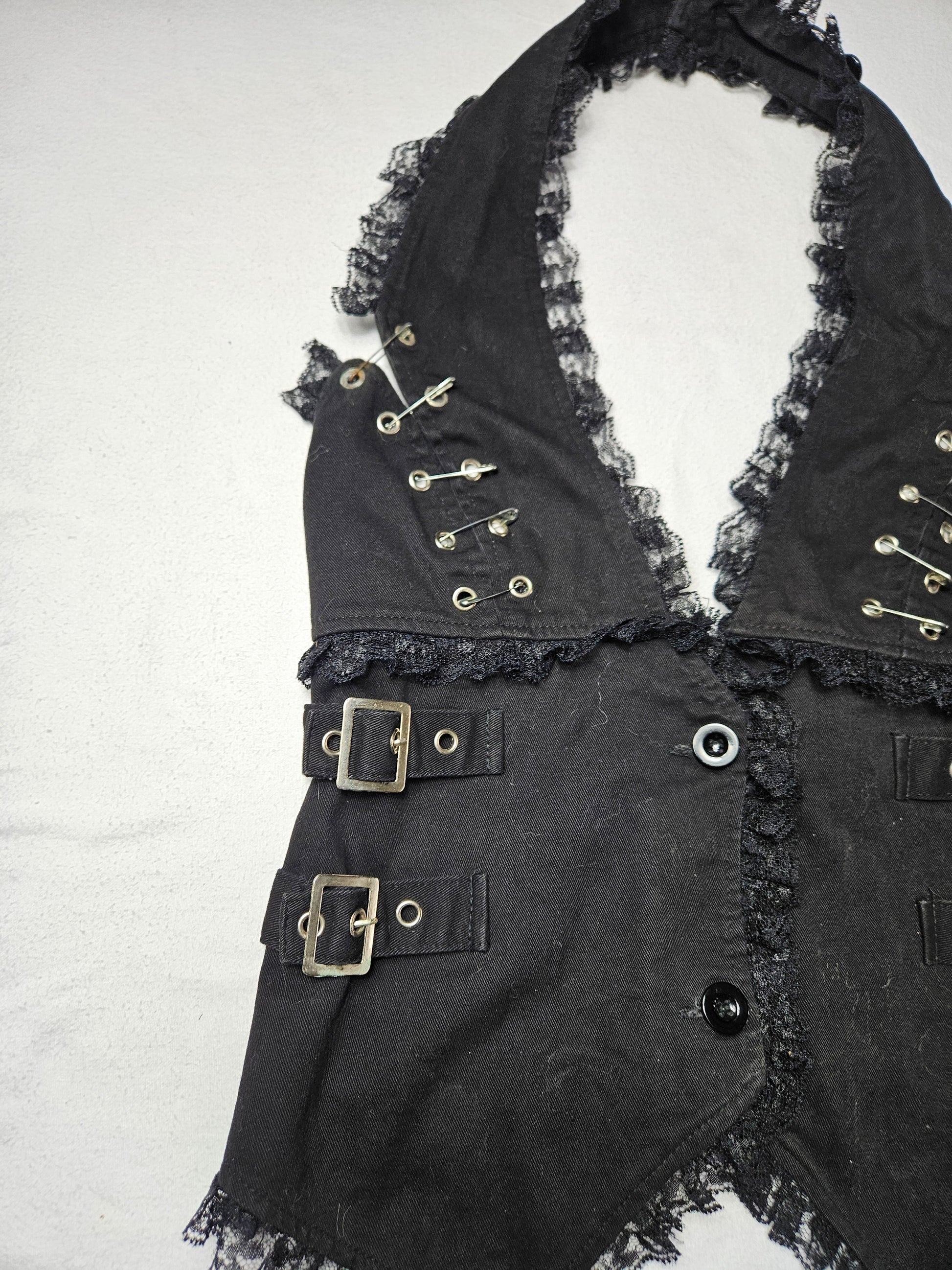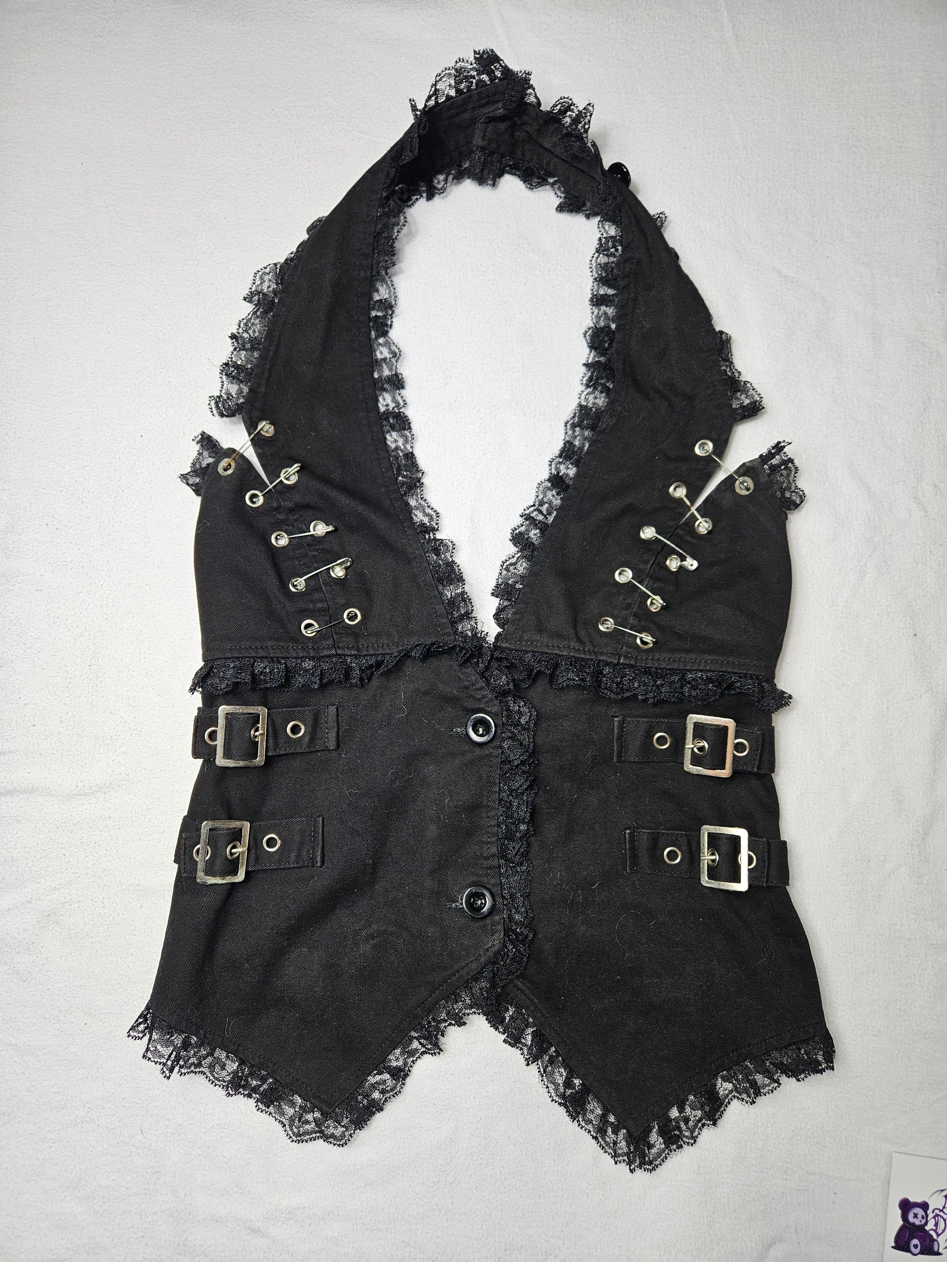 - Le décolleté est également encadré d'épingles à nourrices/safety pins
