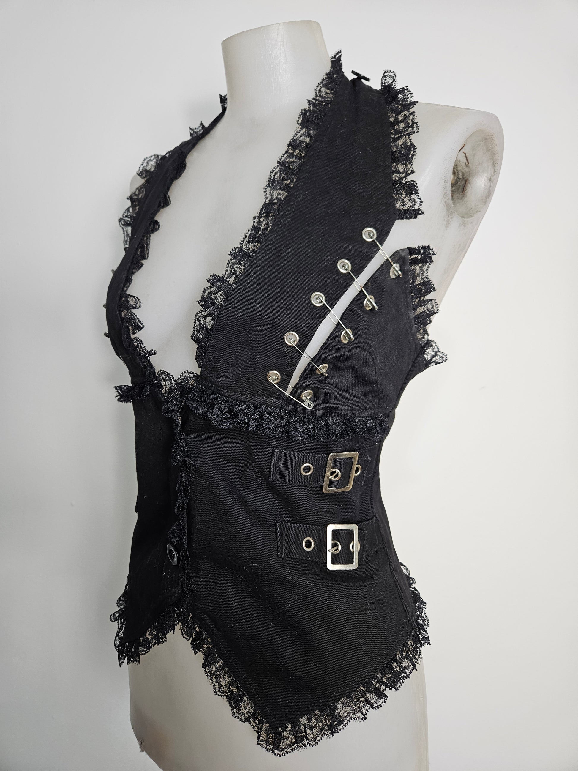 - Coupe ajustée avec décolleté V bordé de dentelle