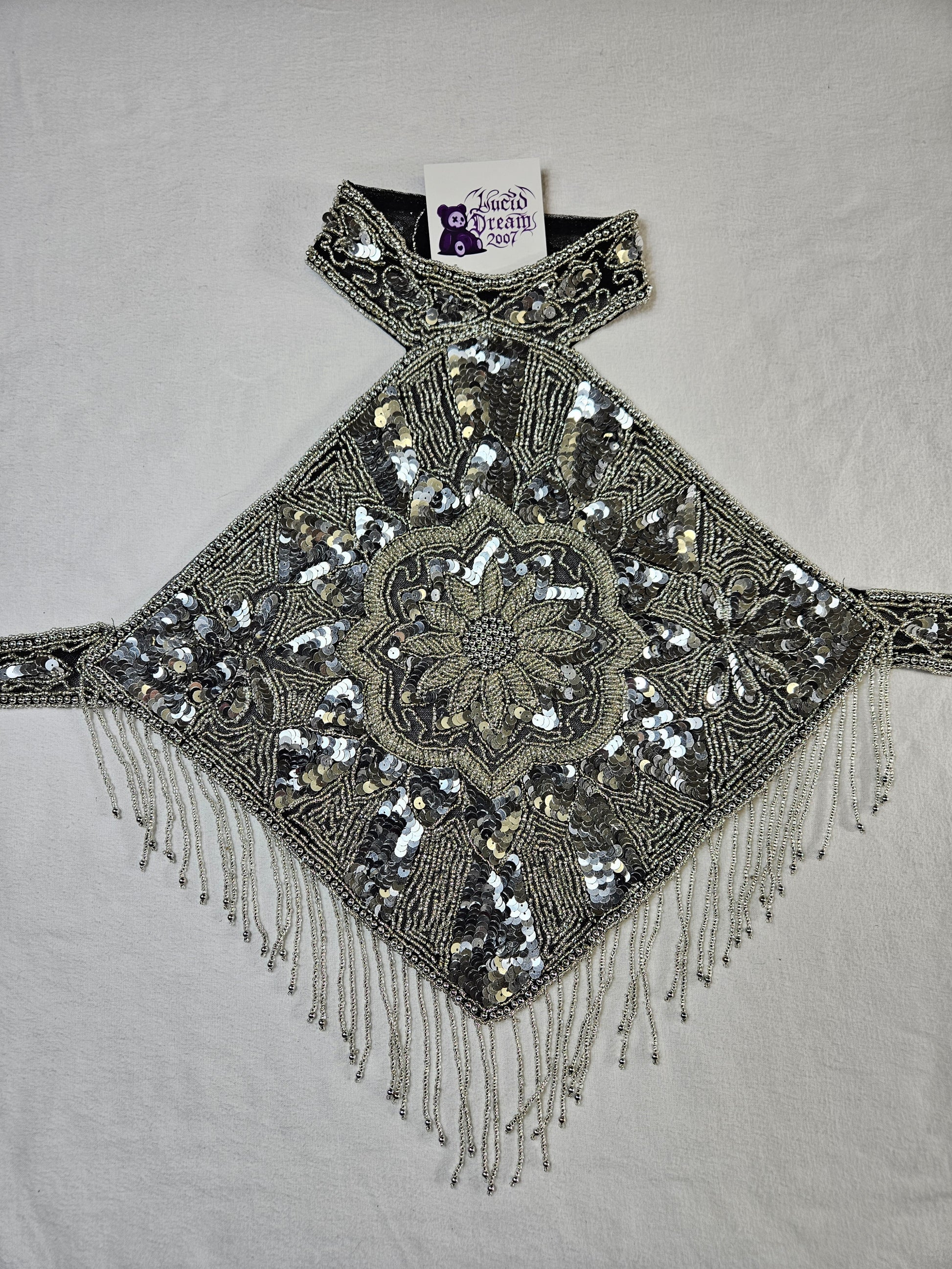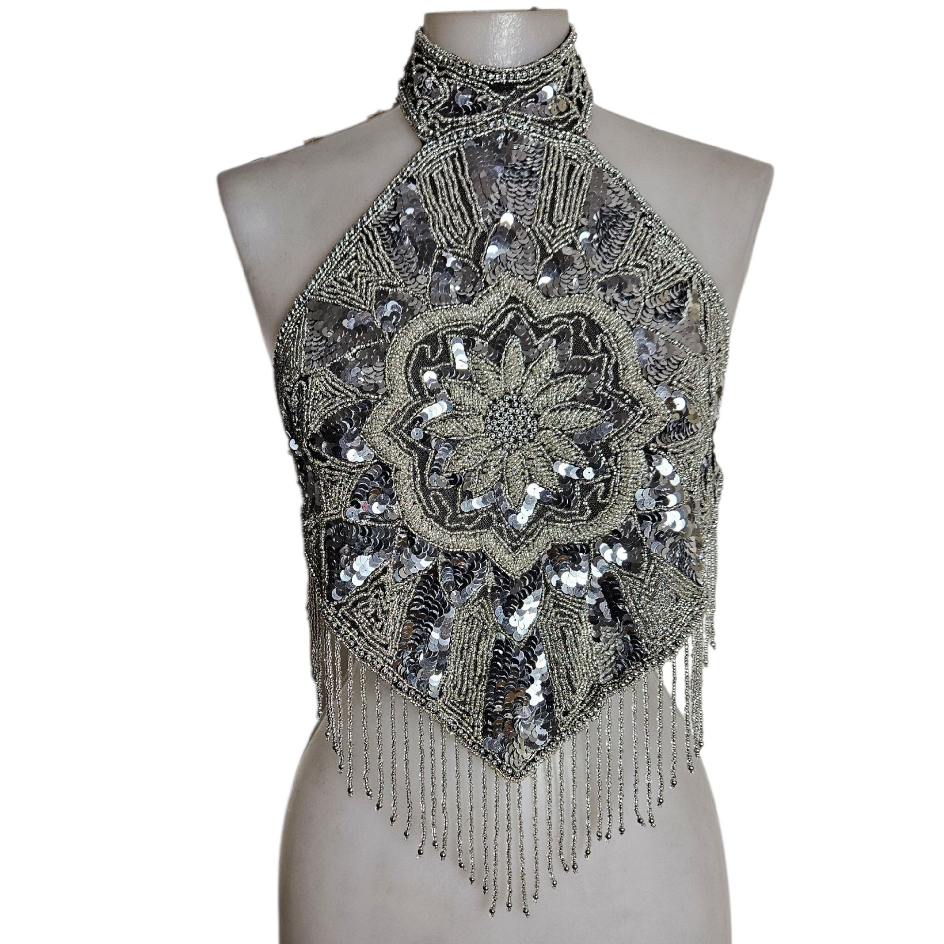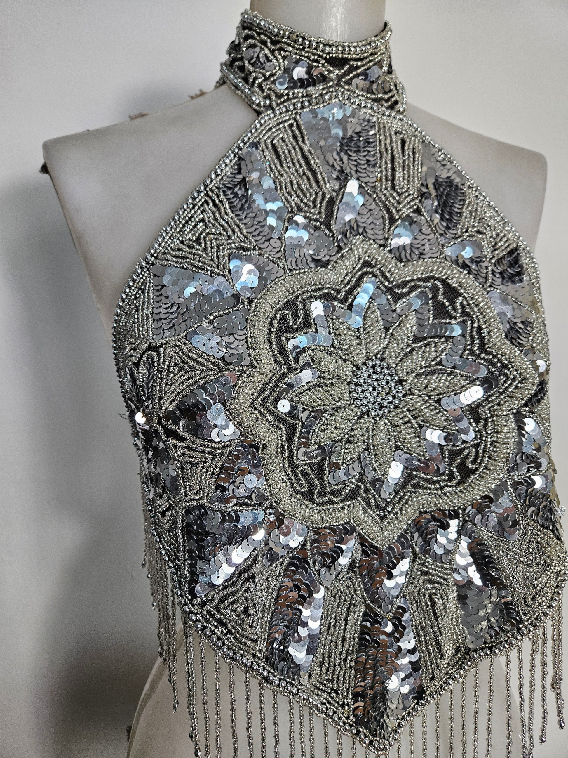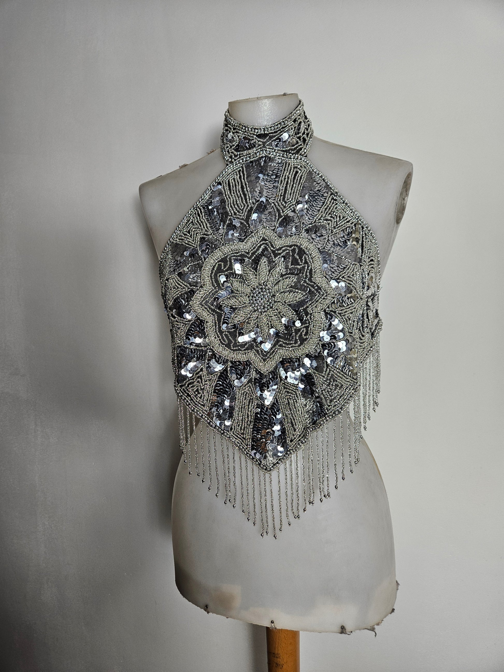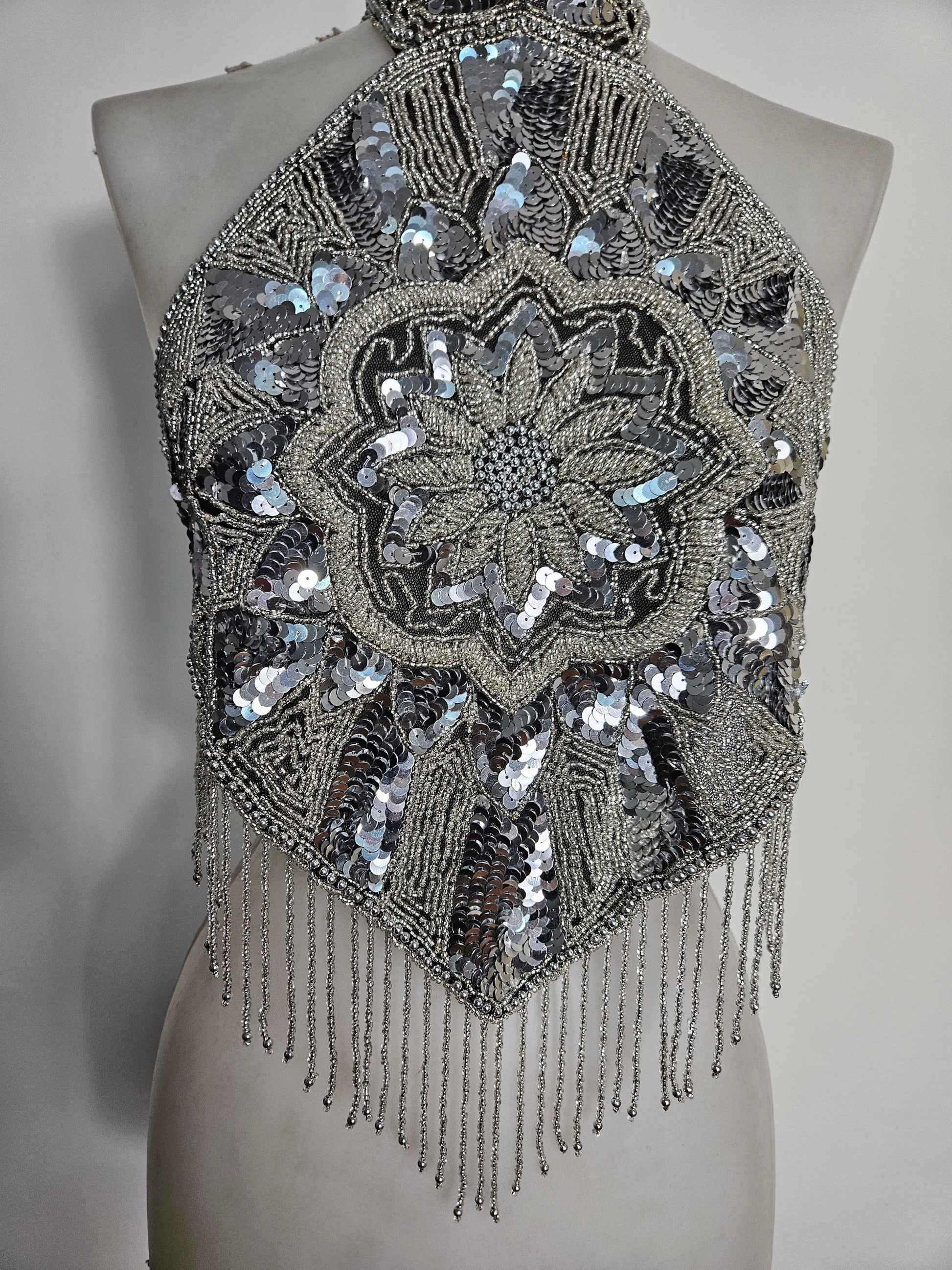 Haut dos nu brodé argenté