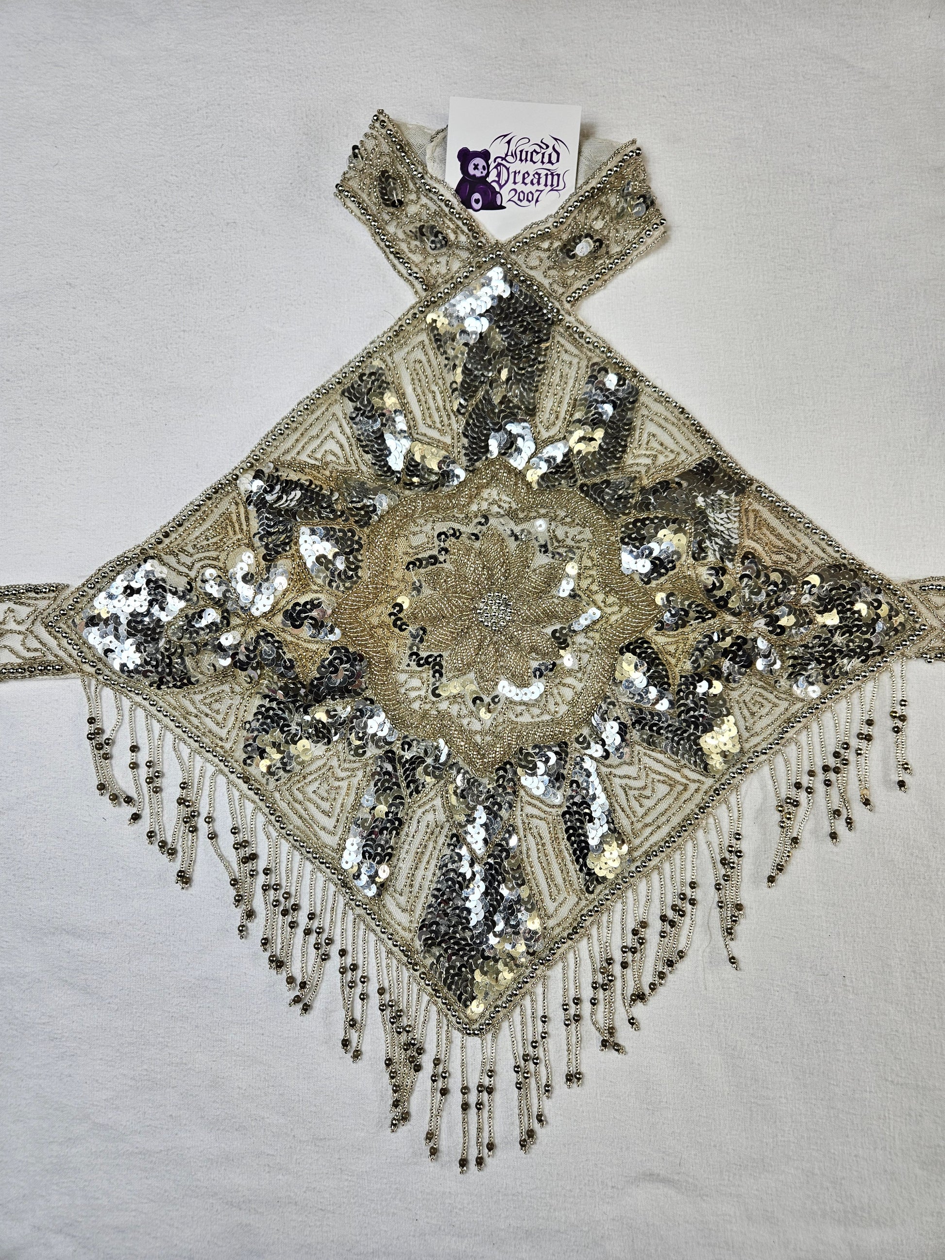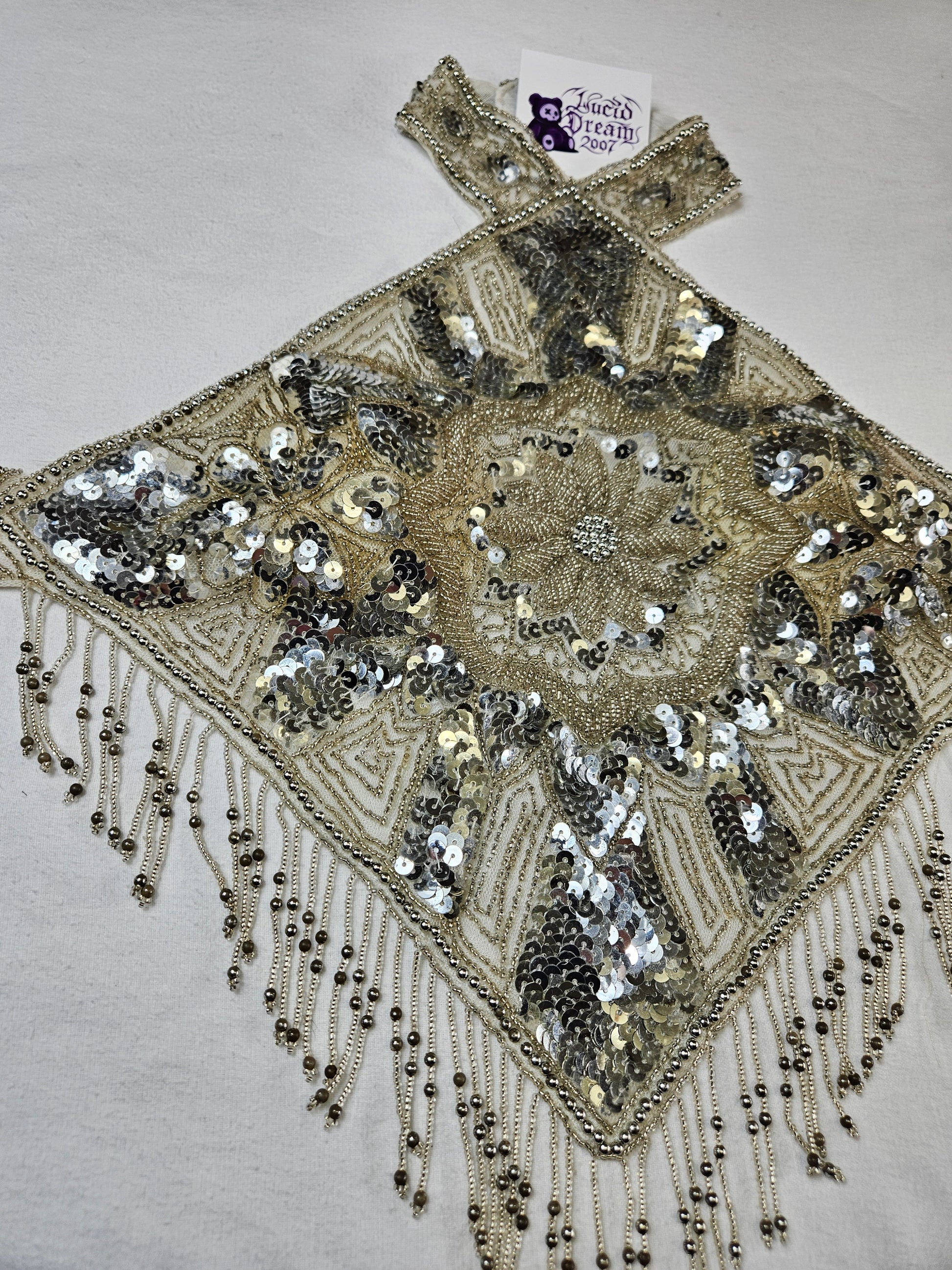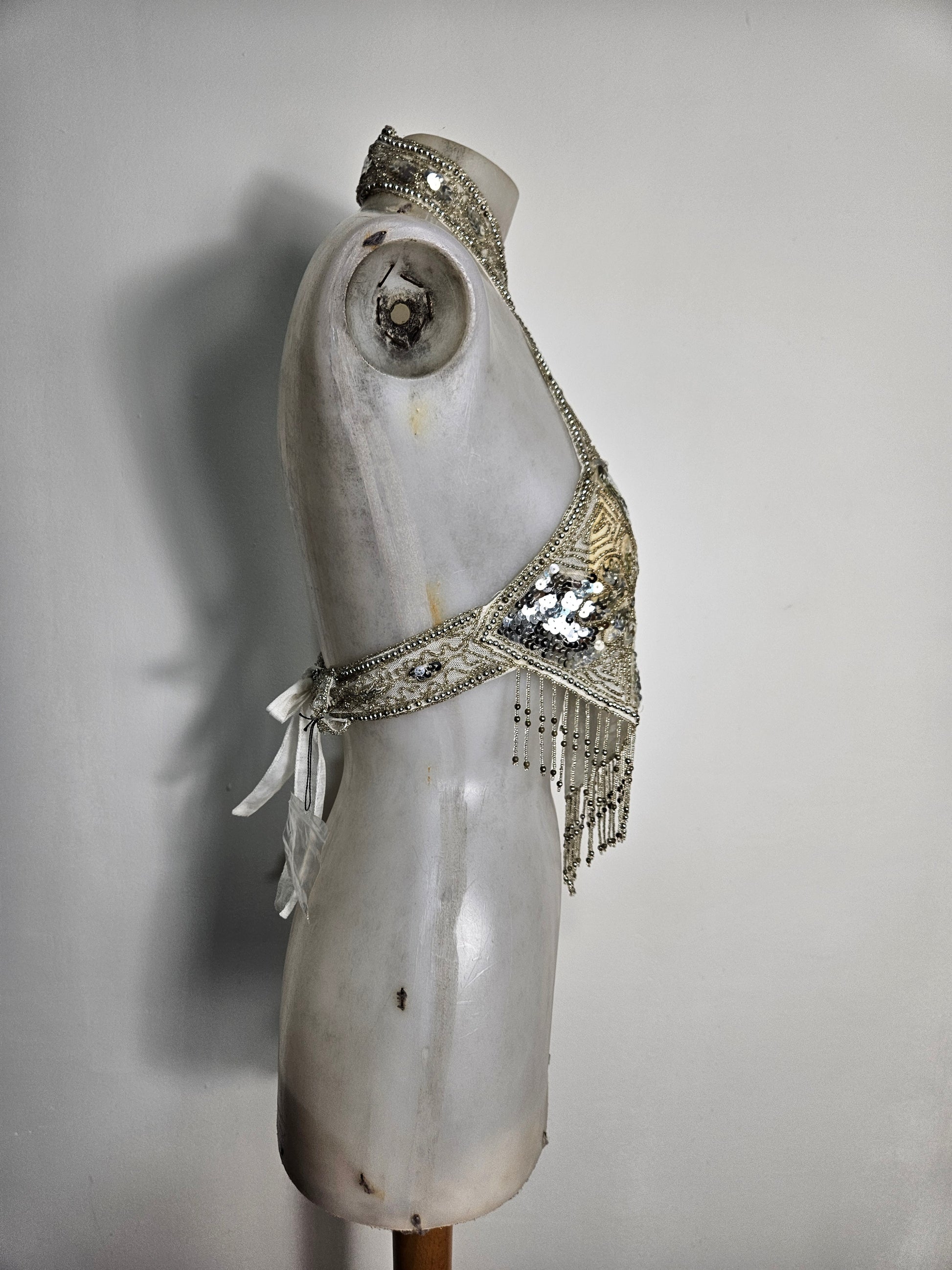A noter : Il s'agit d'une pièce artisanale vintage. Quelques perles peuvent être tombées à certains endroits. Il s'agit de l'évolution normale de ce type de hauts. Voir dernière photo.
