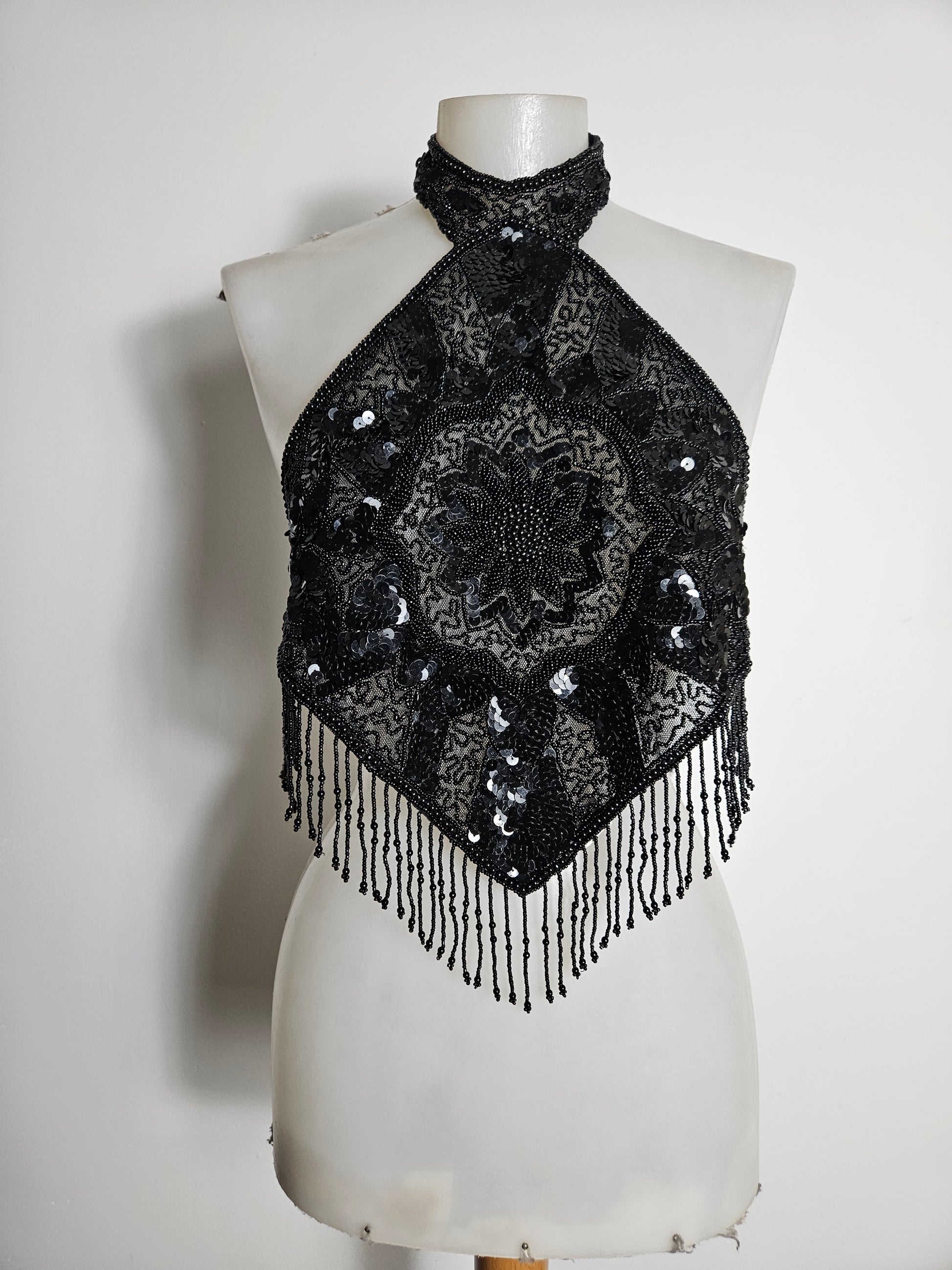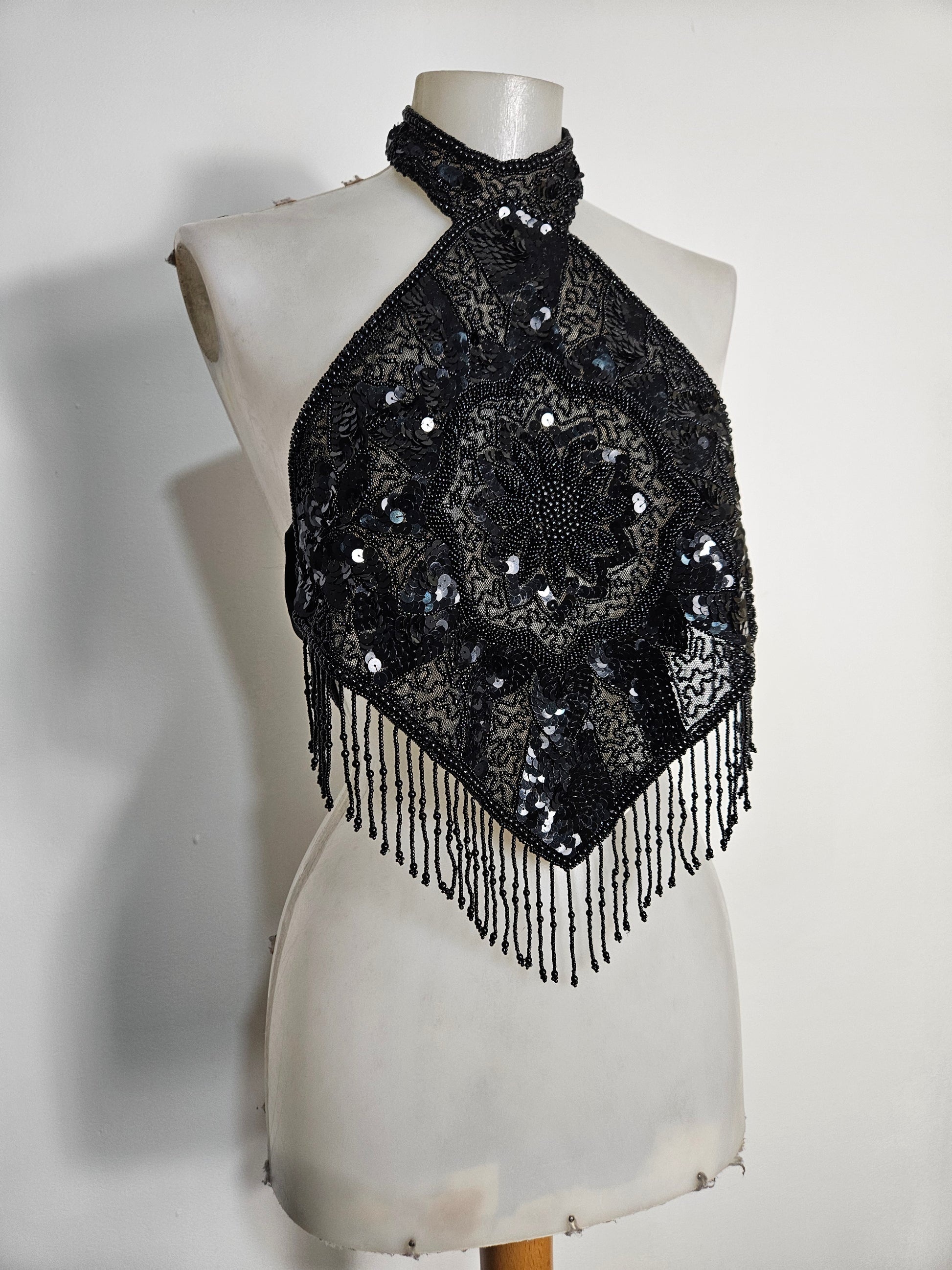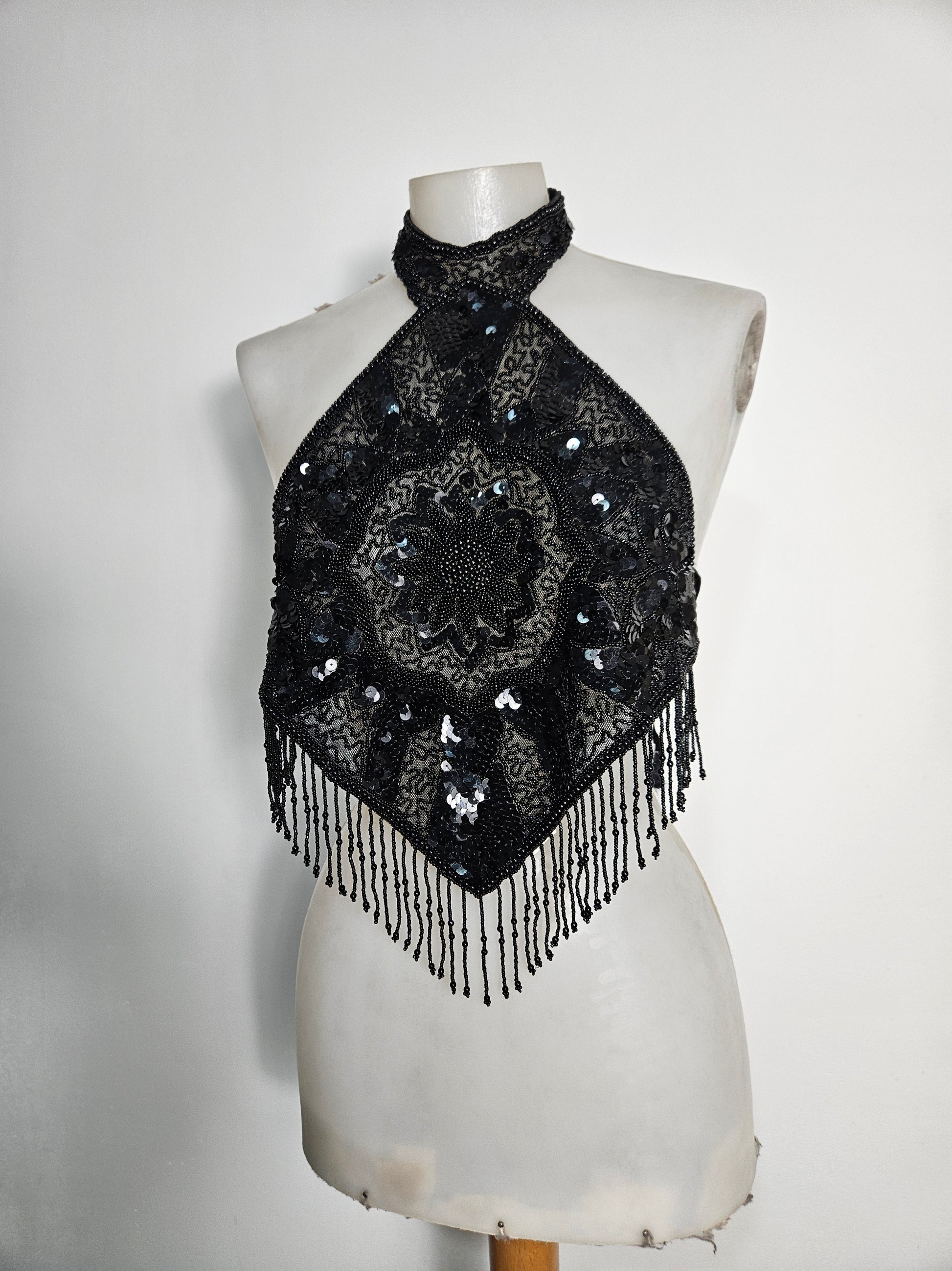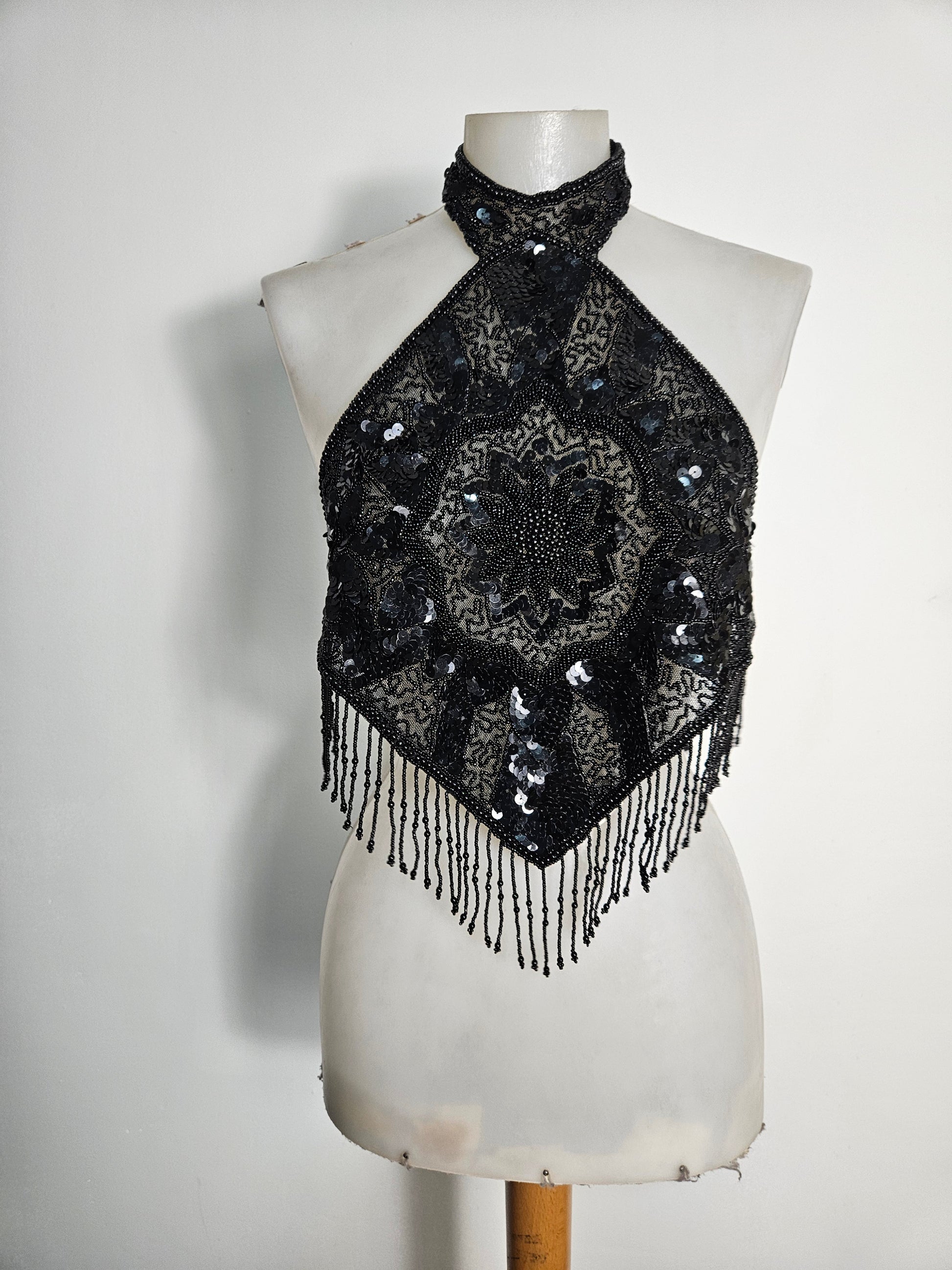 - Haut en voile brodé de perles et sequins en motifs d'arabesques.