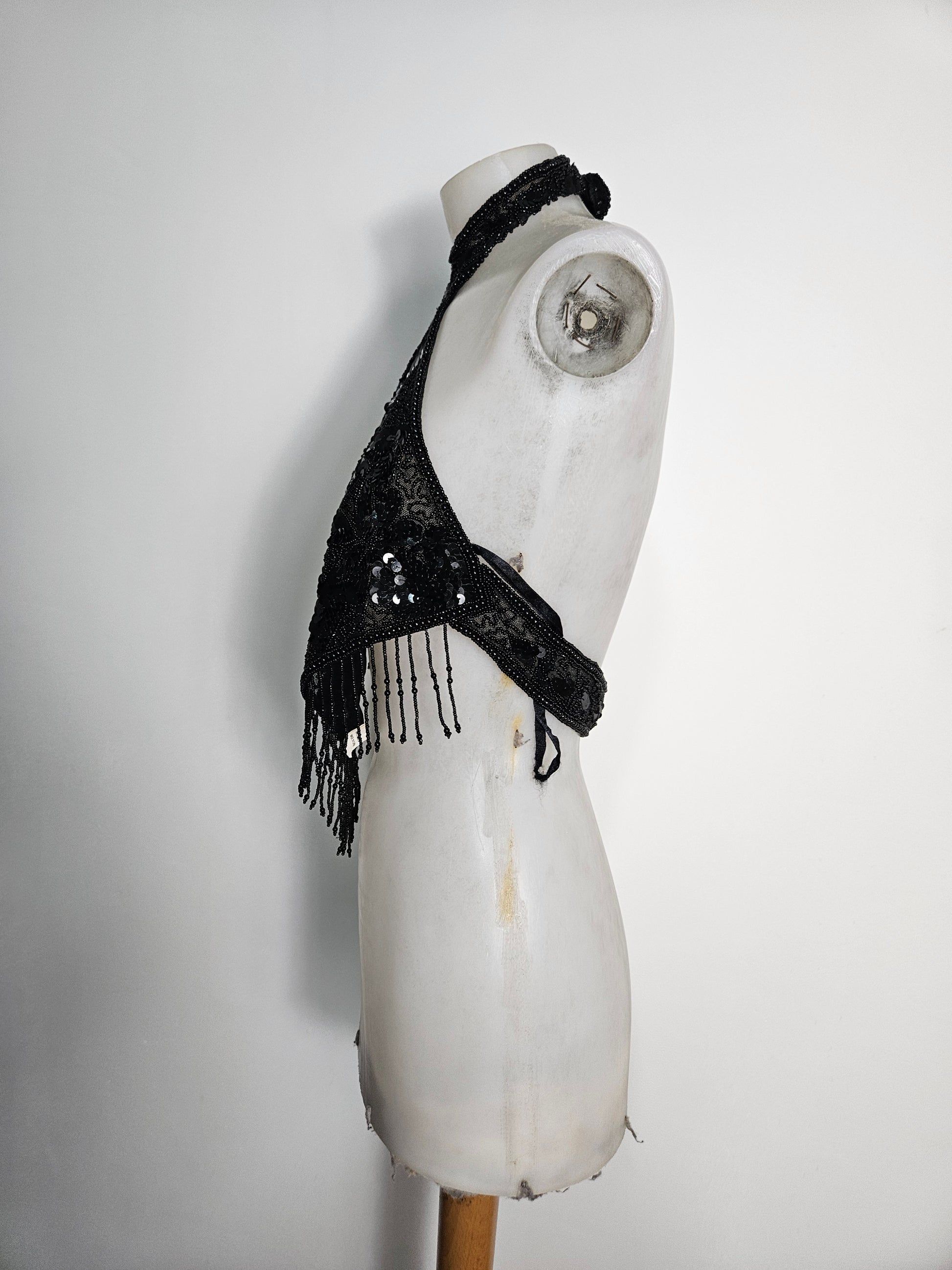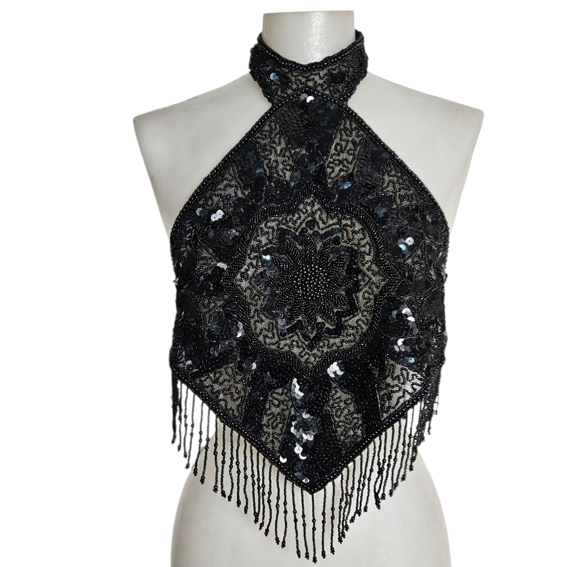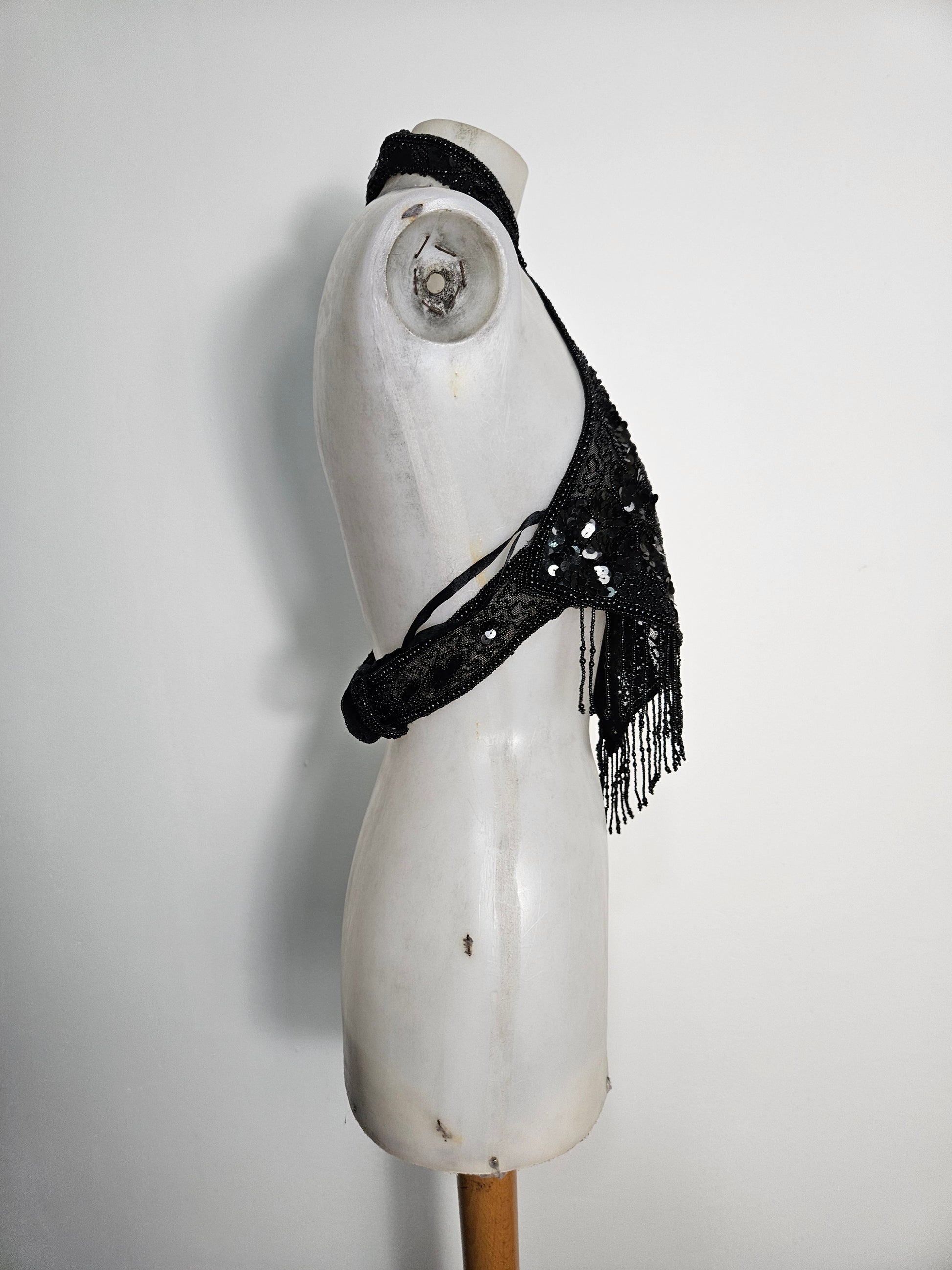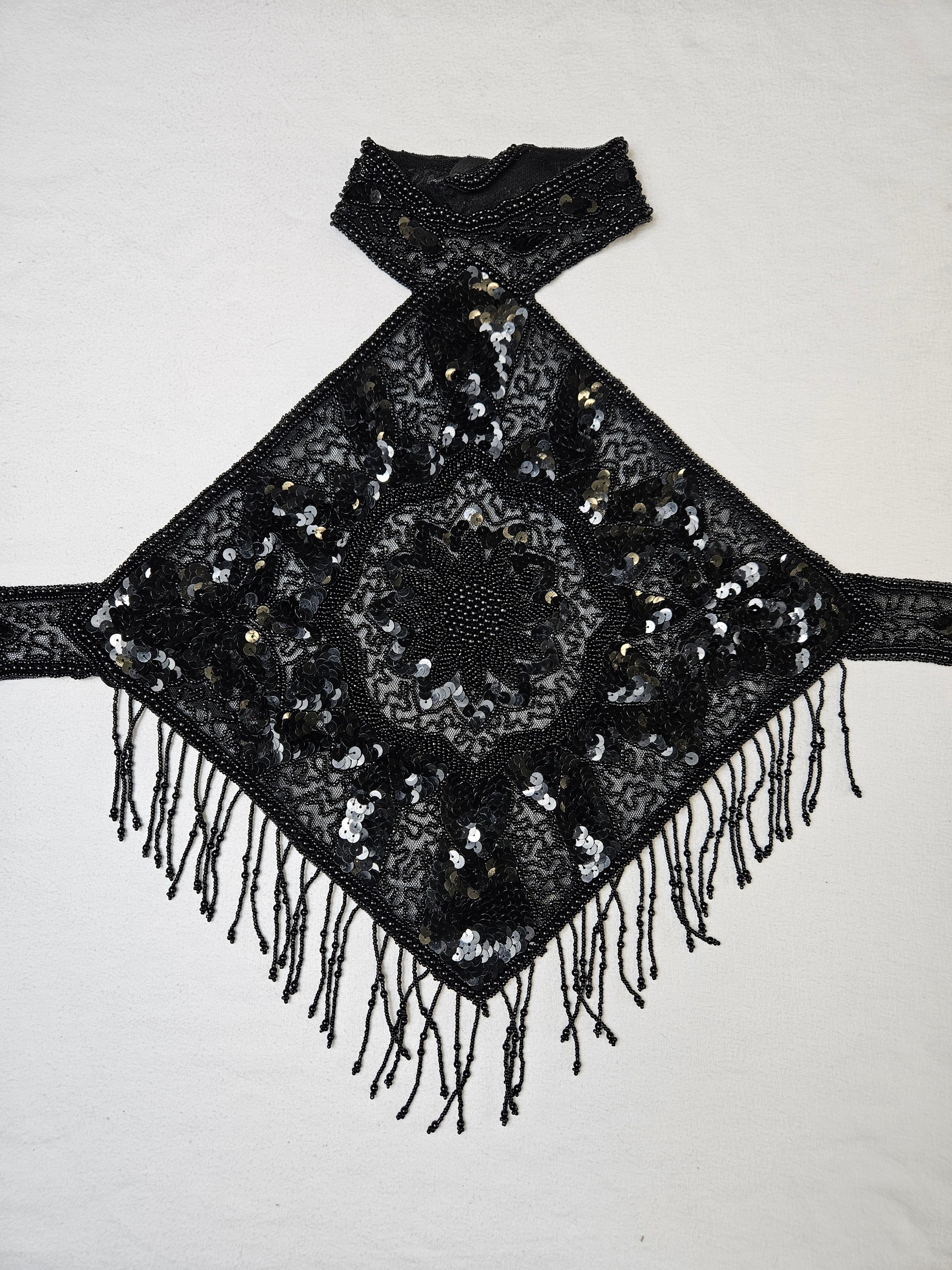- Haut en voile brodé de perles et sequins en motifs d'arabesques.