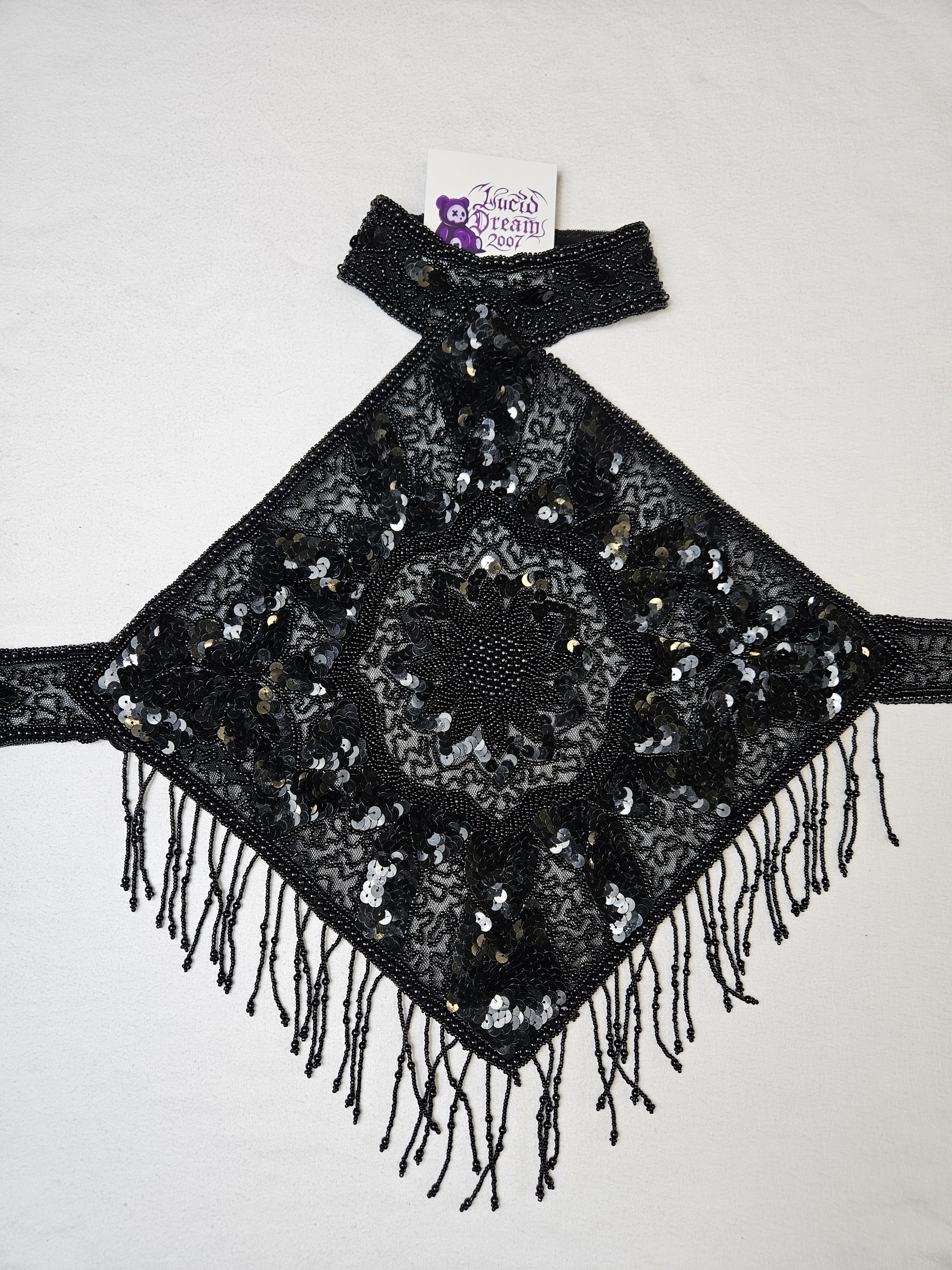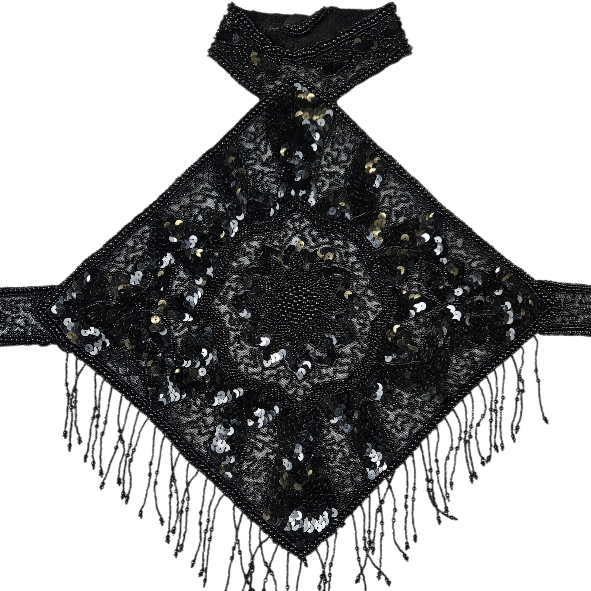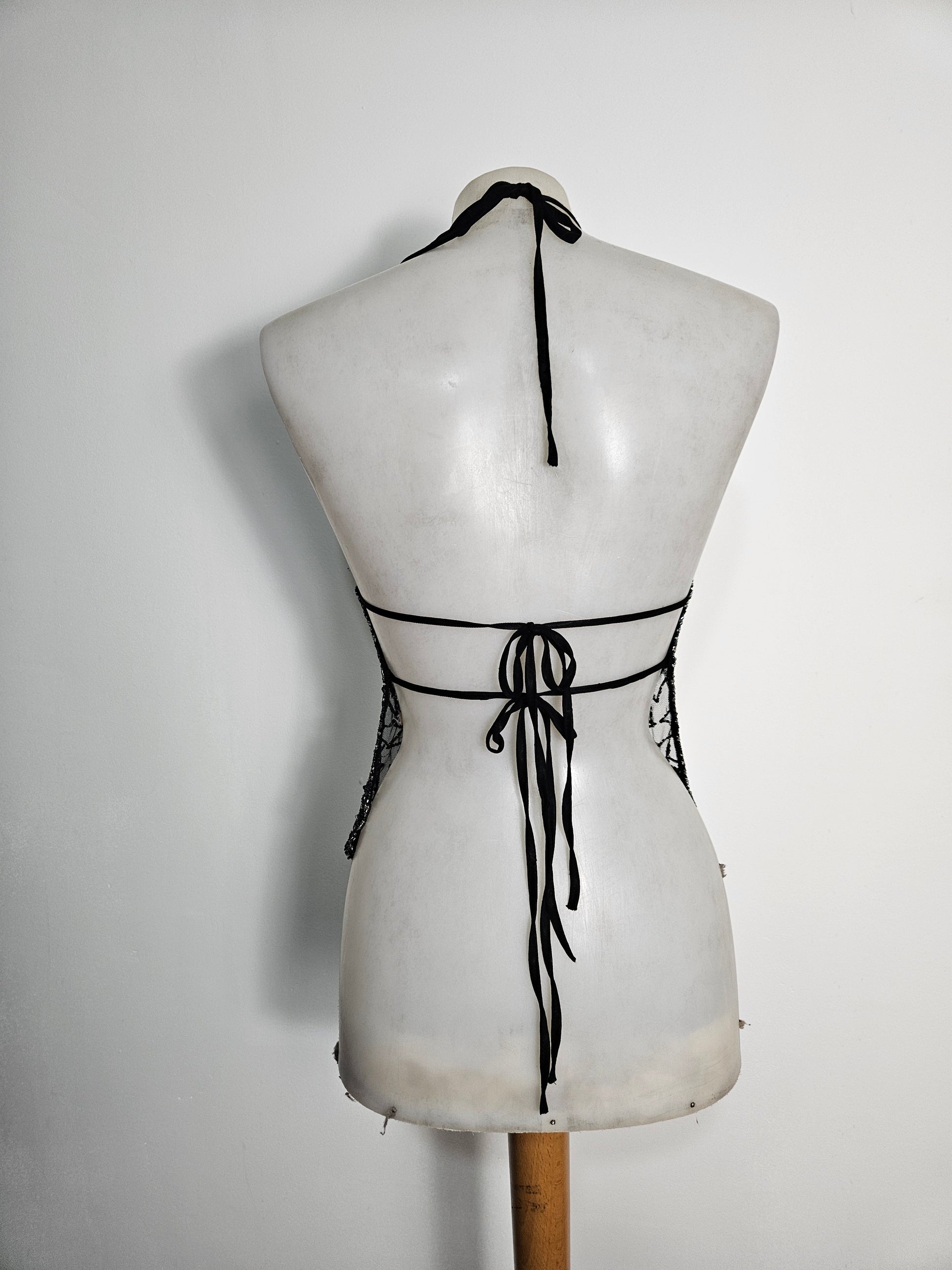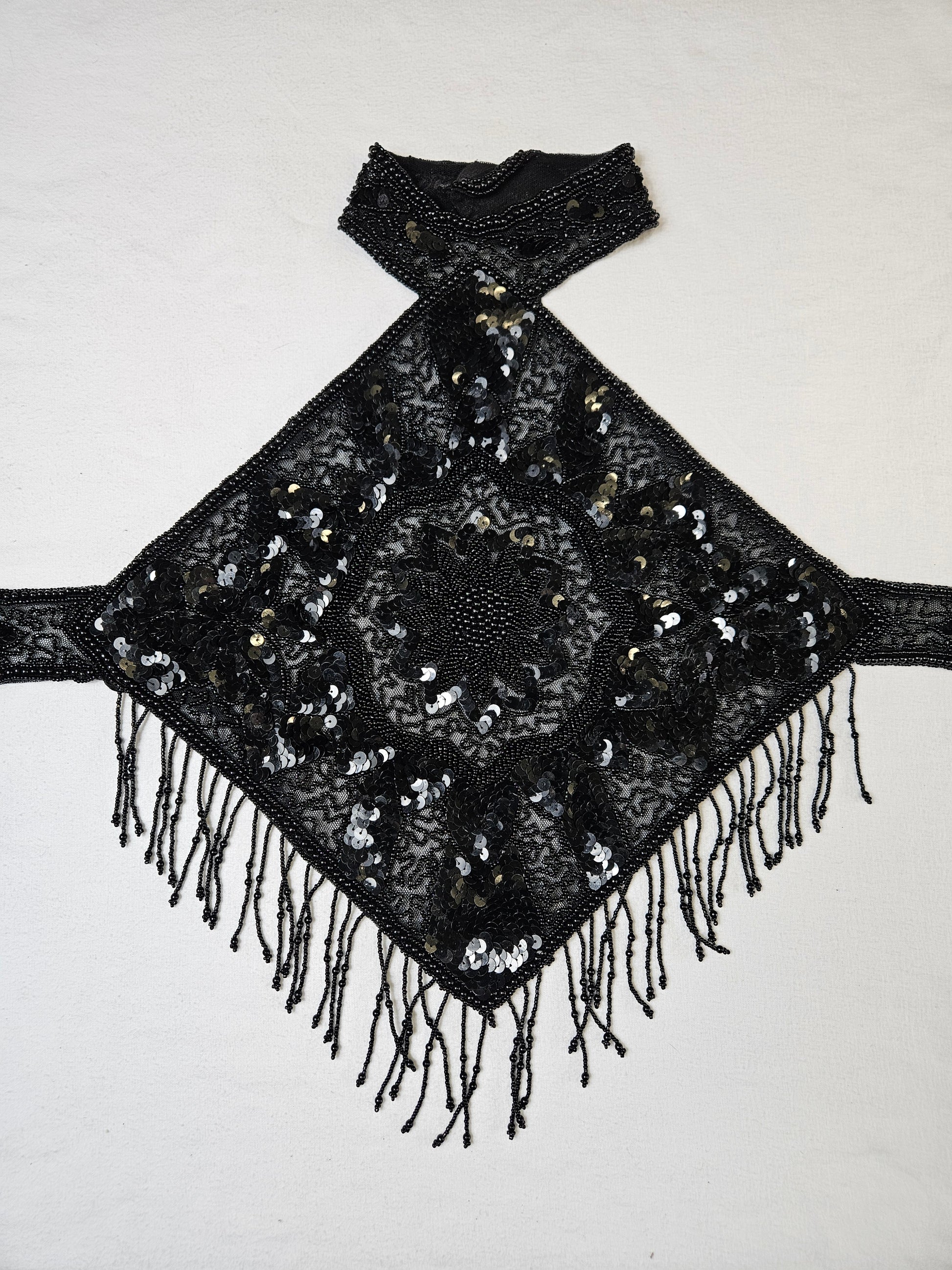- Haut en voile brodé de perles et sequins en motifs d'arabesques.