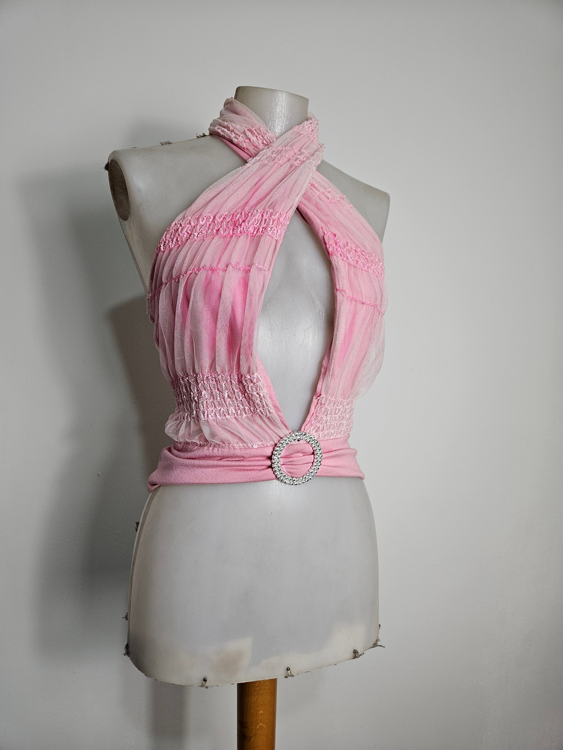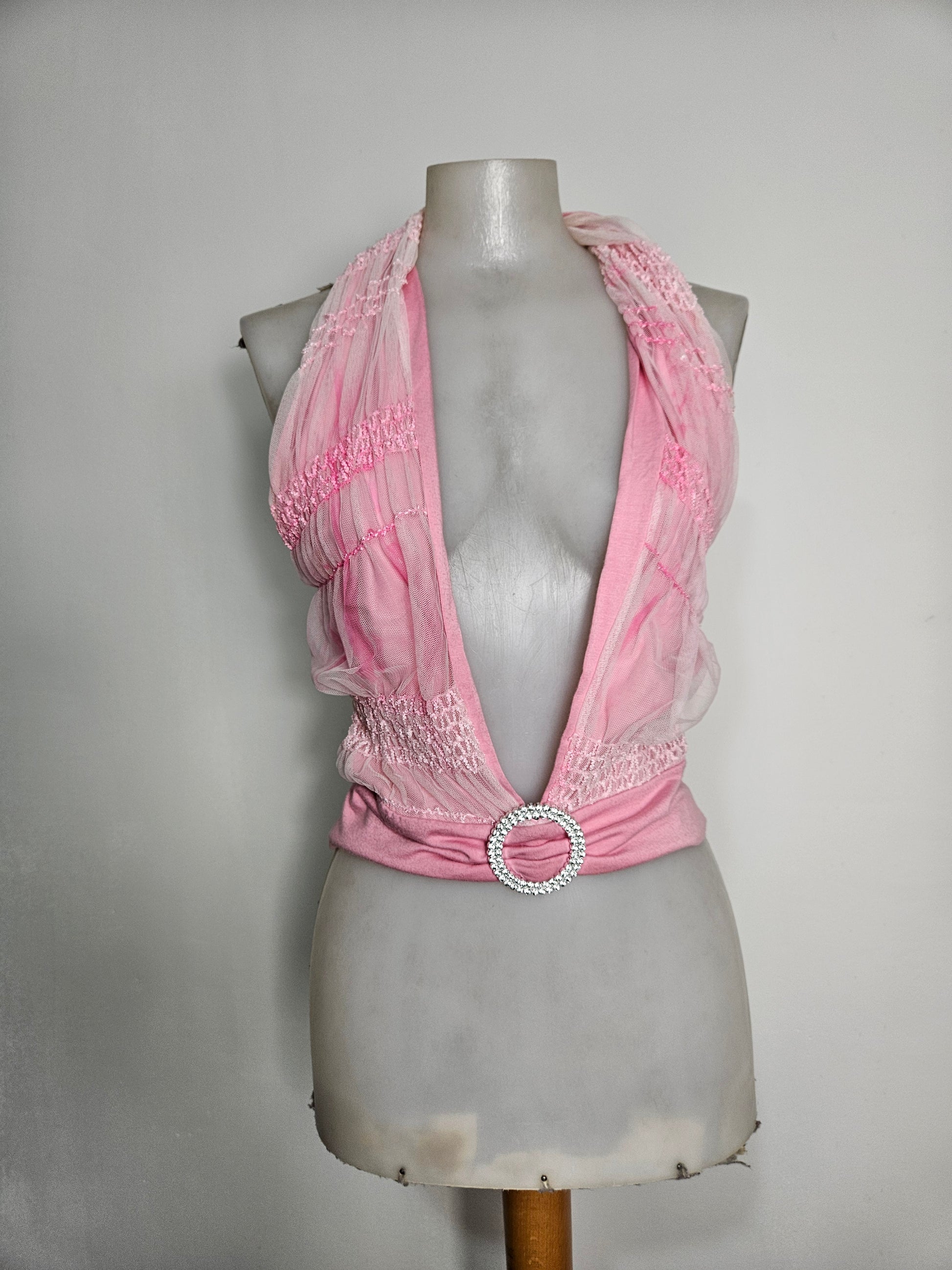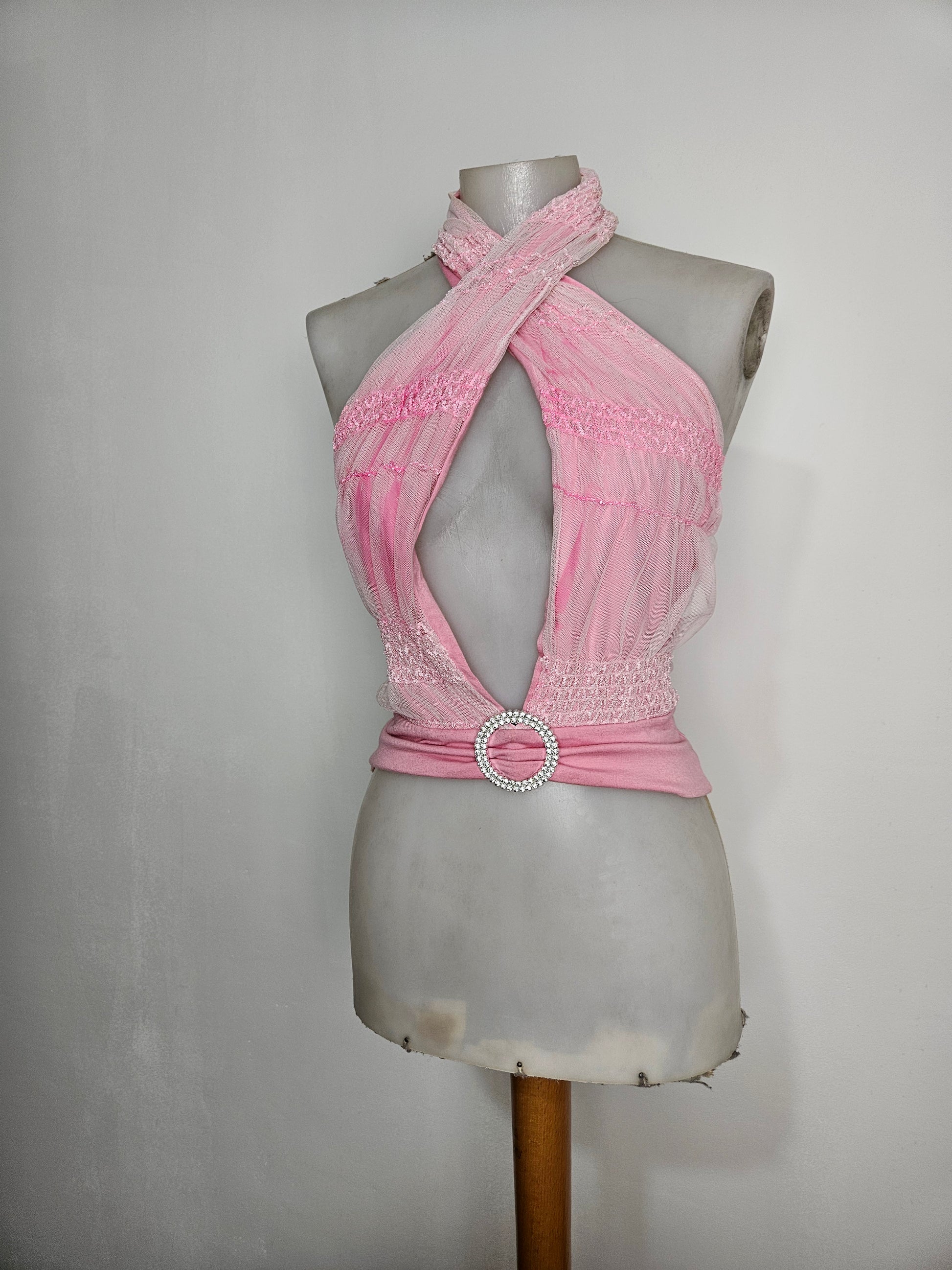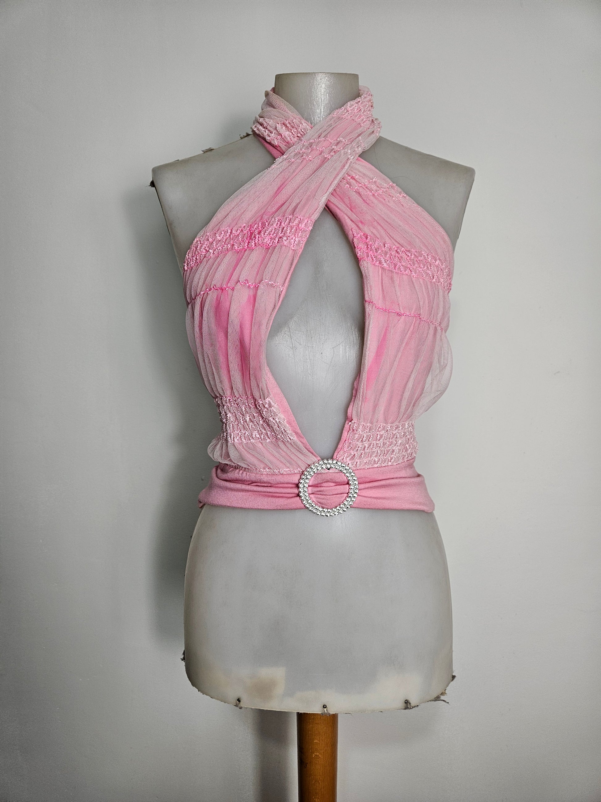 - Ceinture intégrée avec boucle décorative ronde ornée de strass.