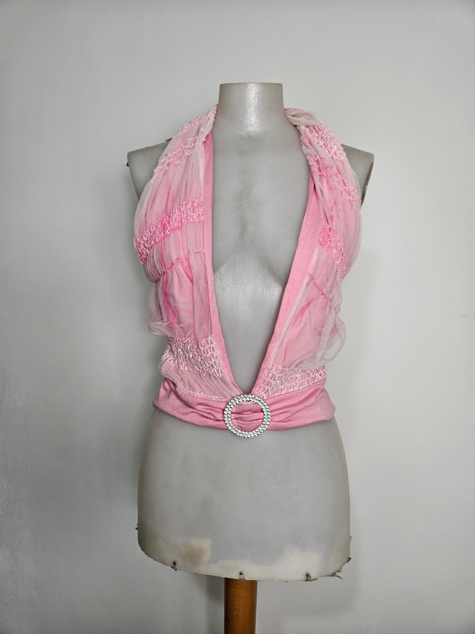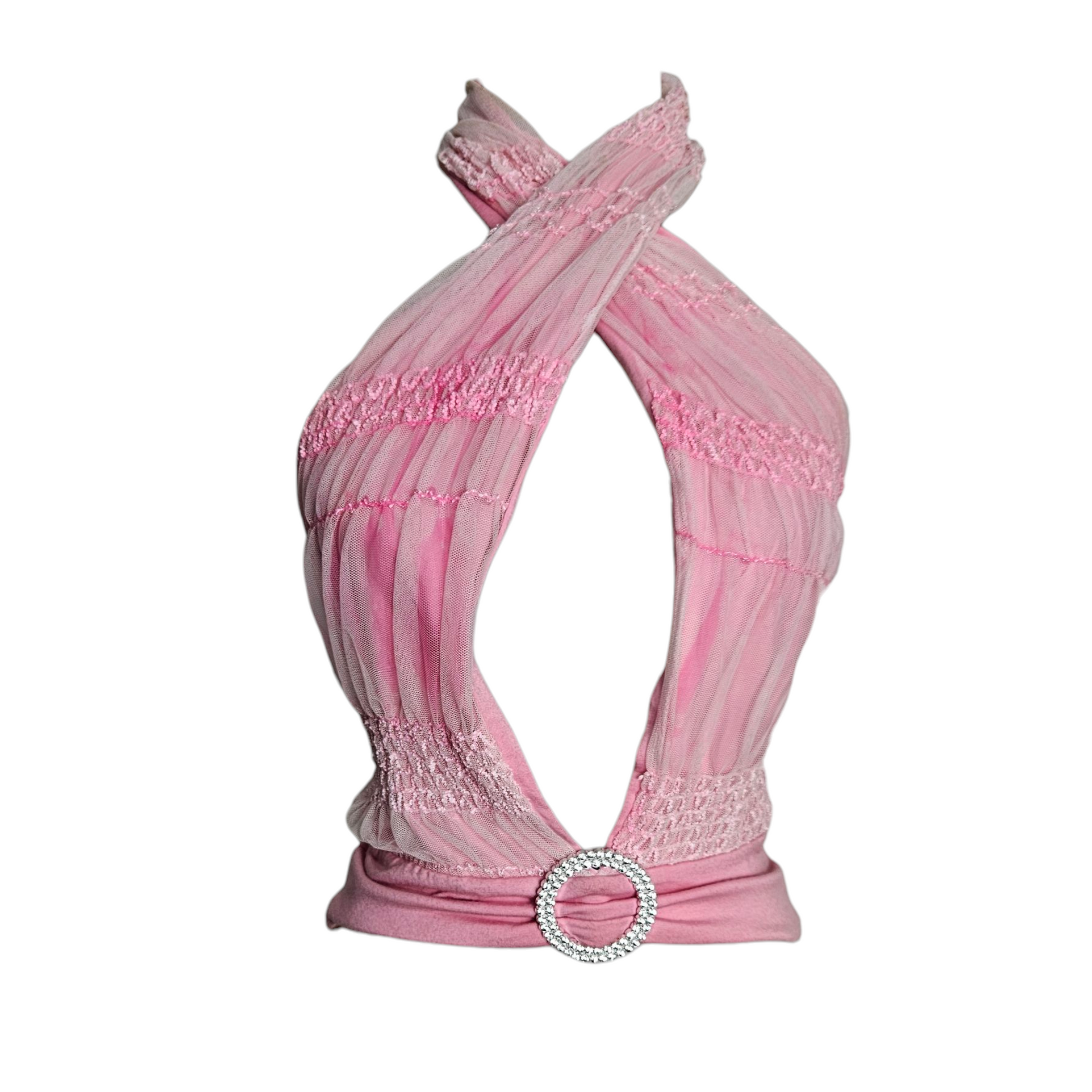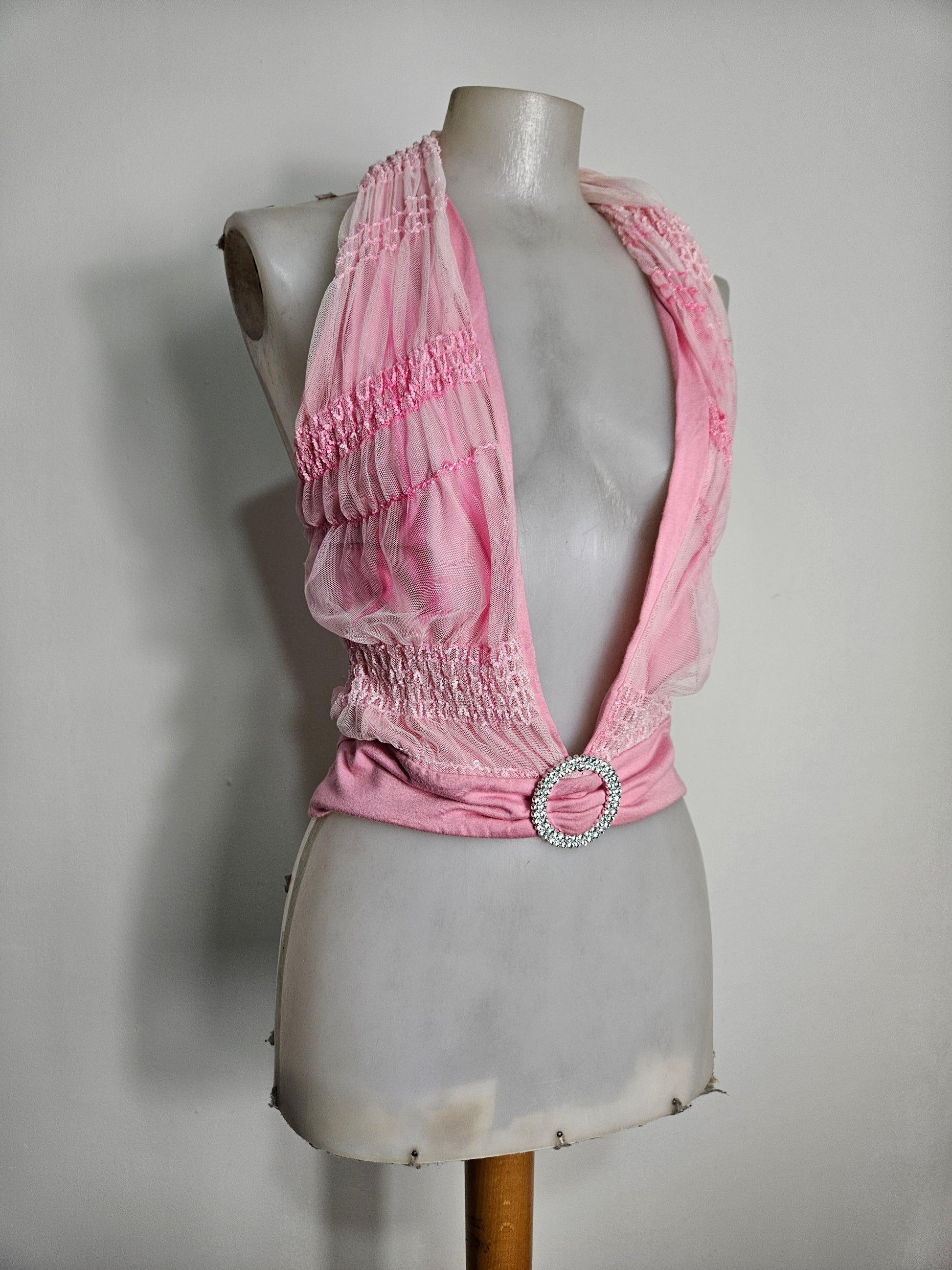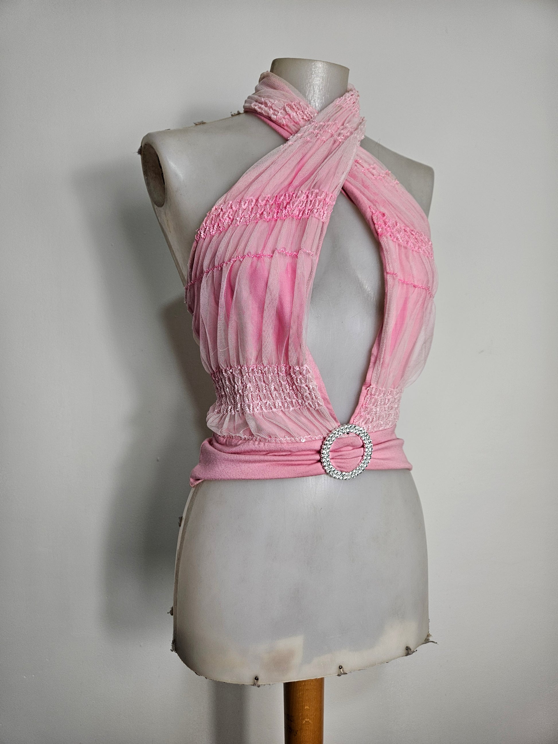 - Ceinture intégrée avec boucle décorative ronde ornée de strass.