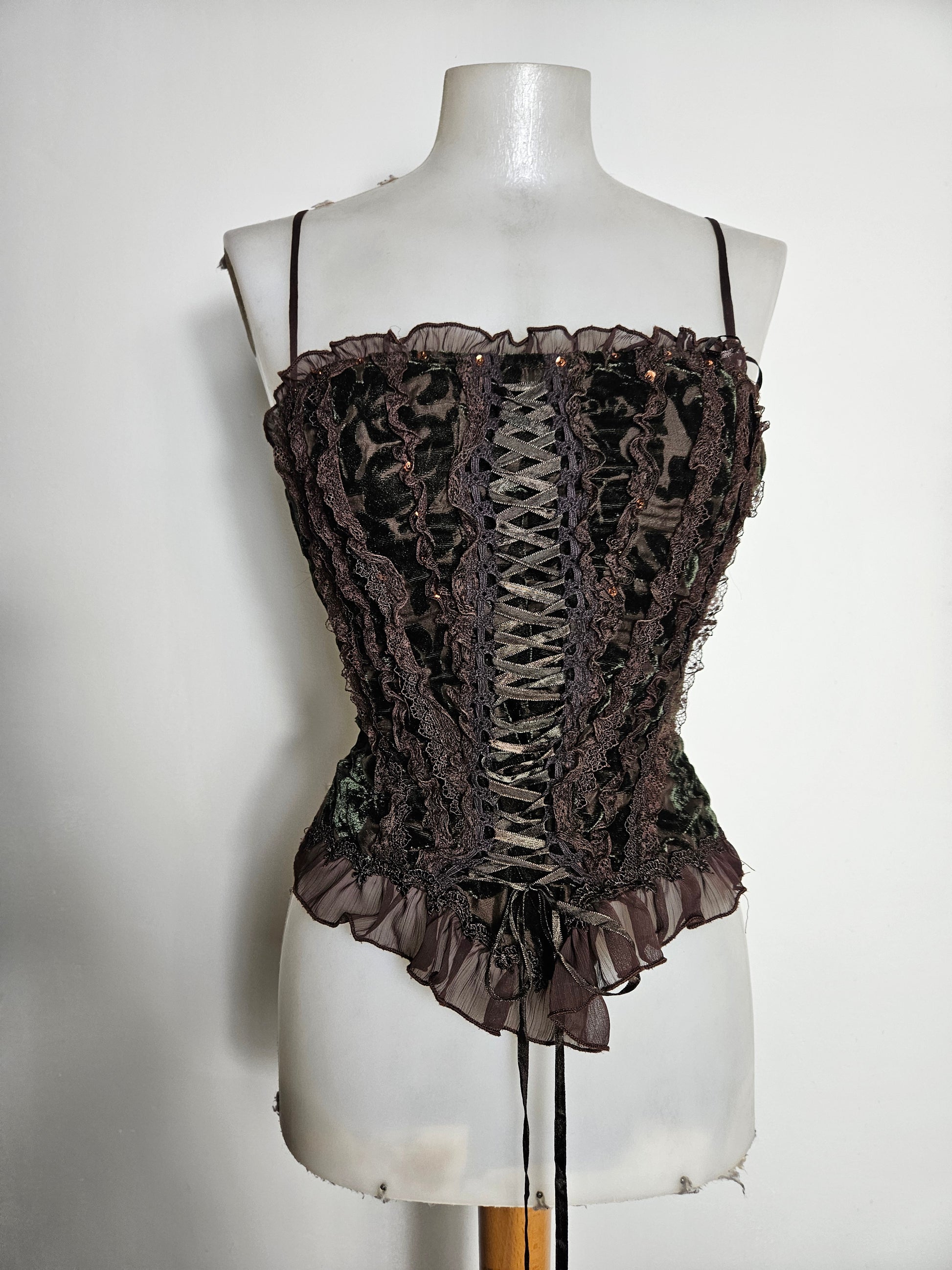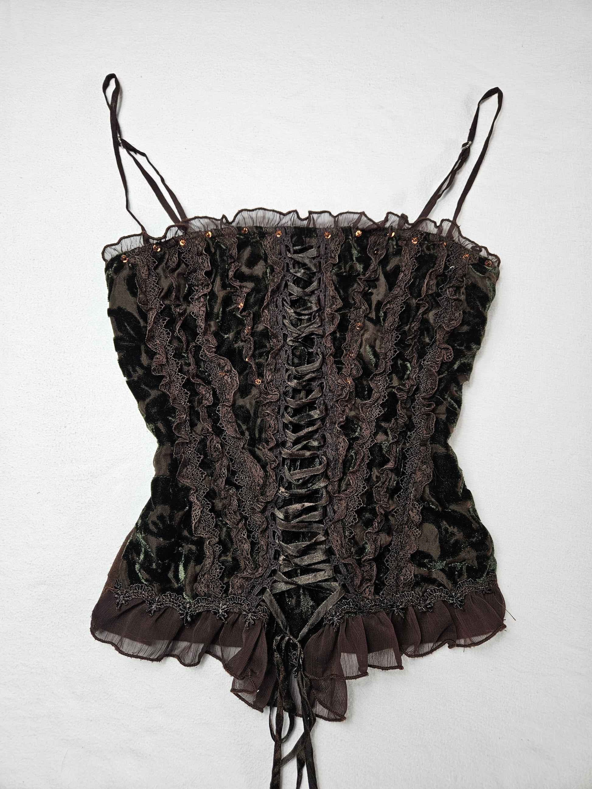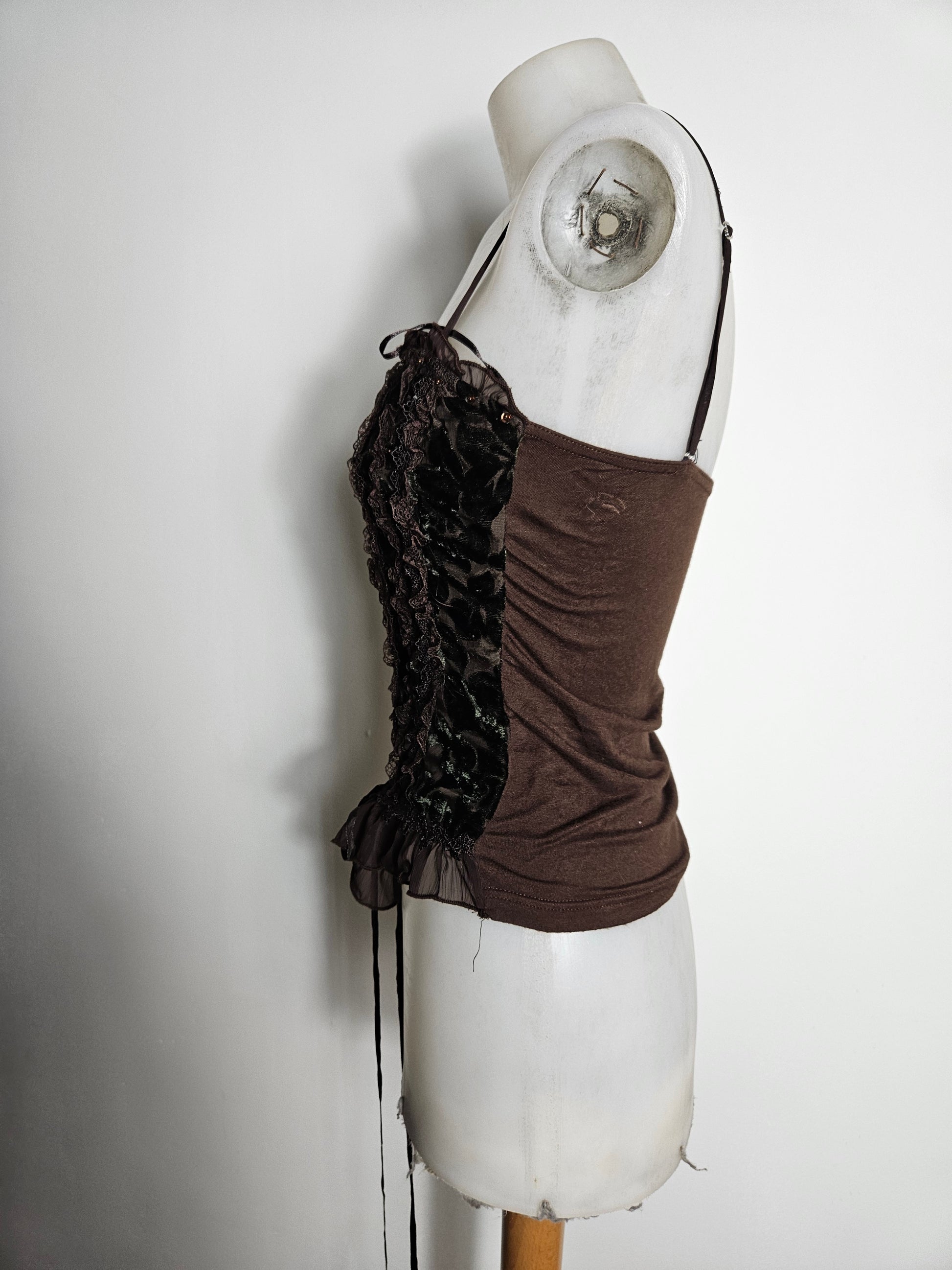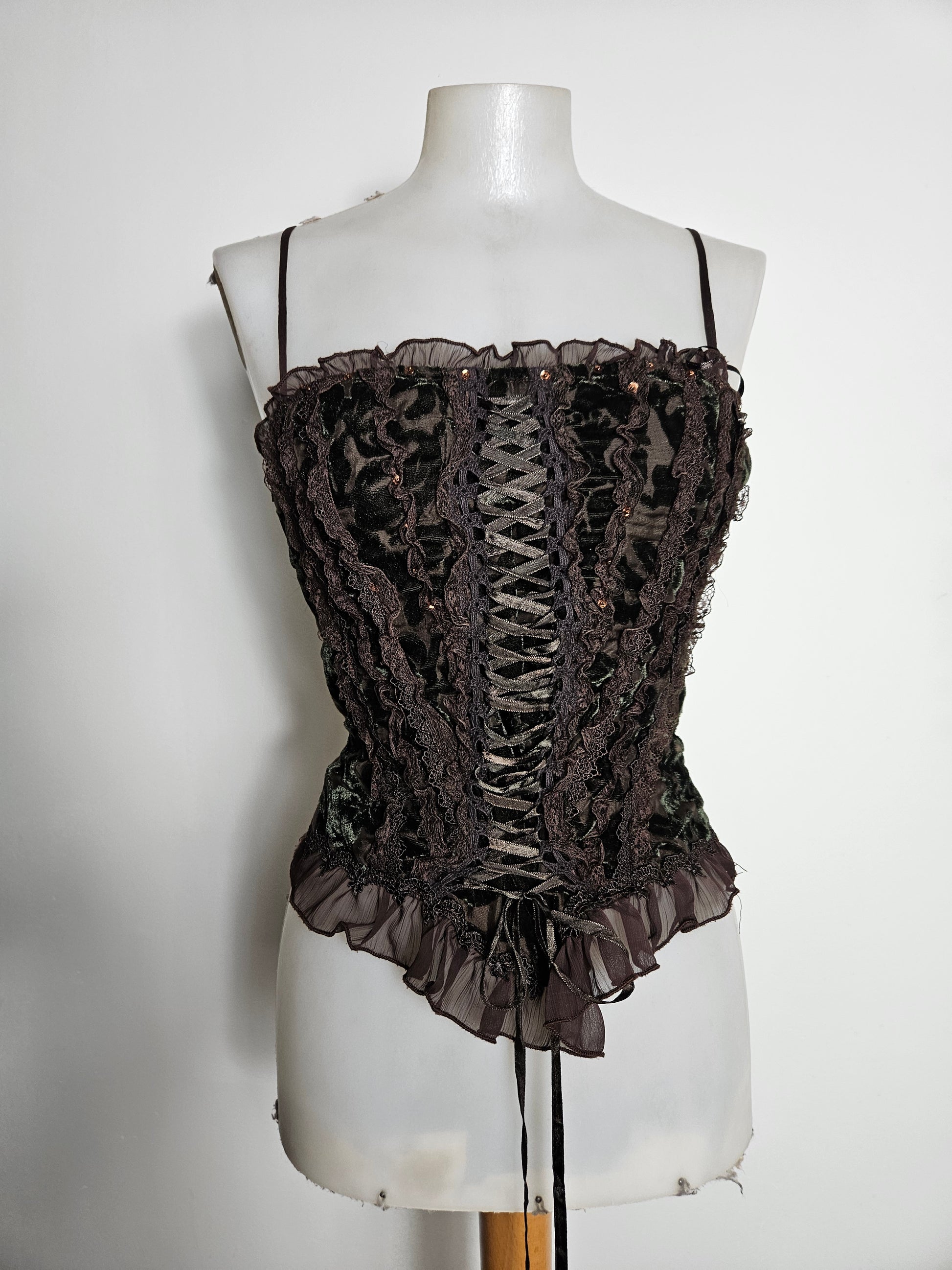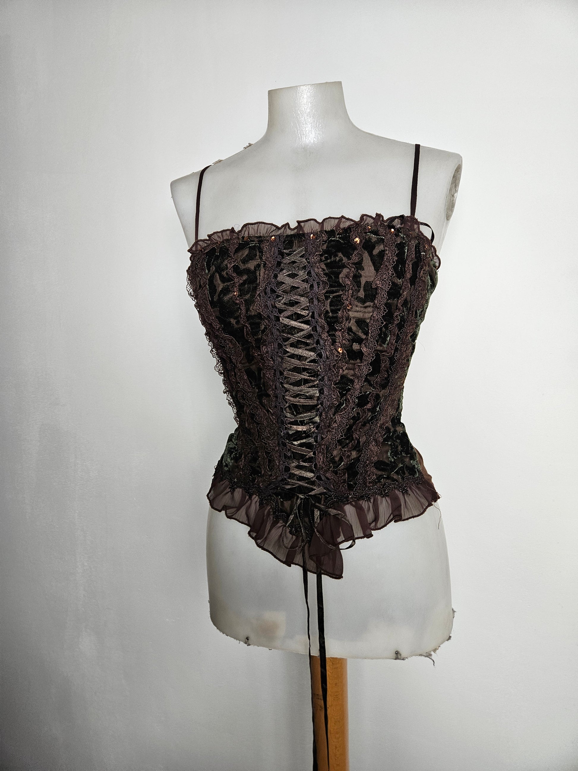 - Bustier marron en velours à laçage
