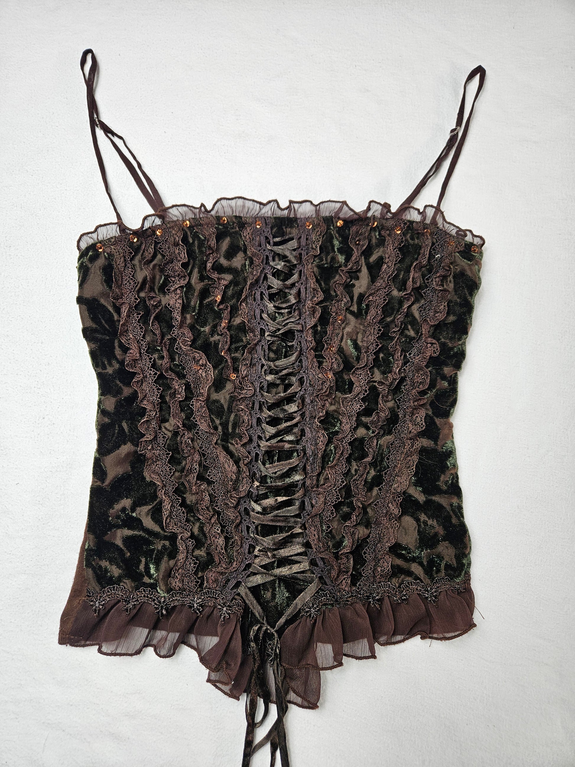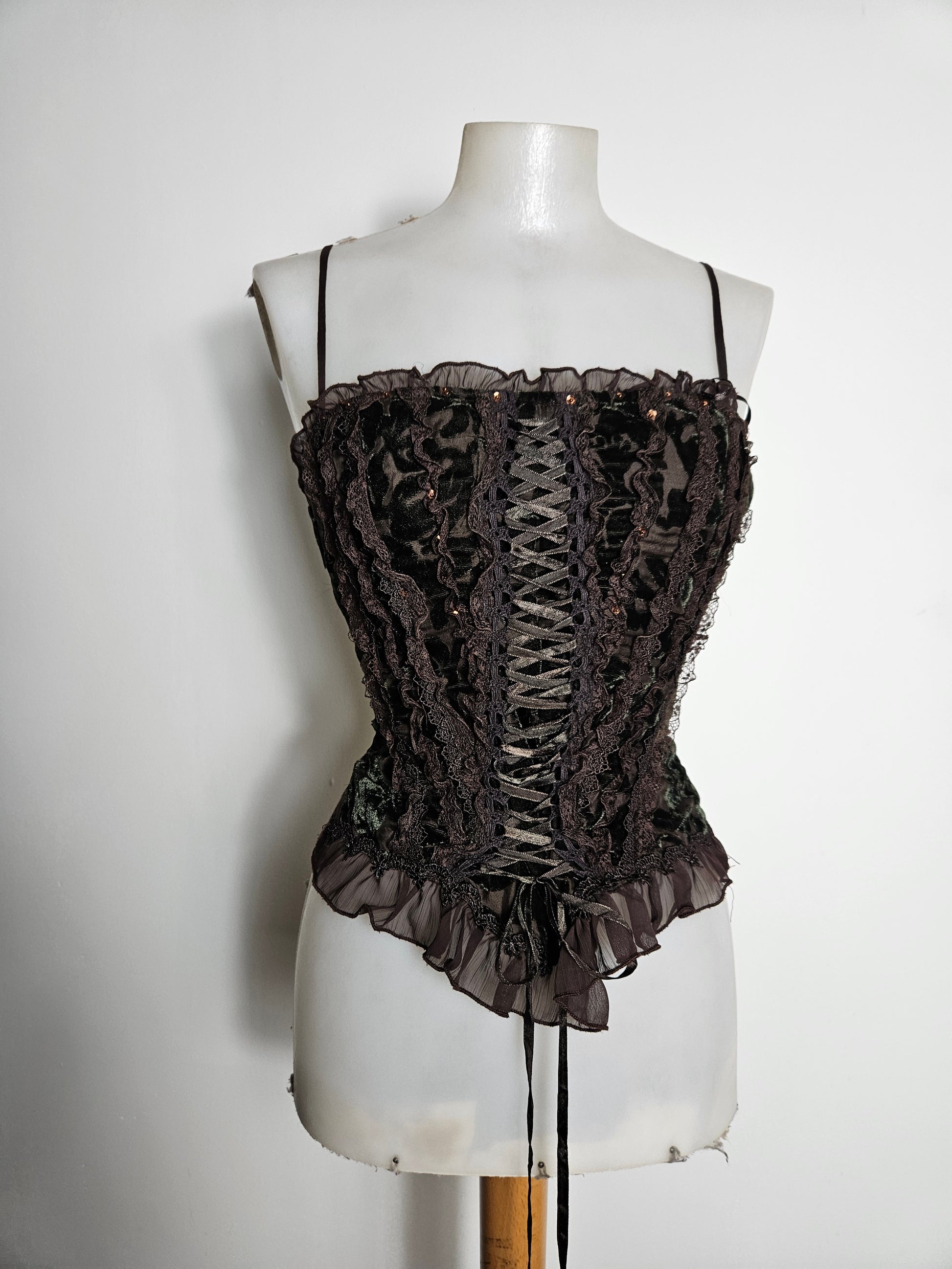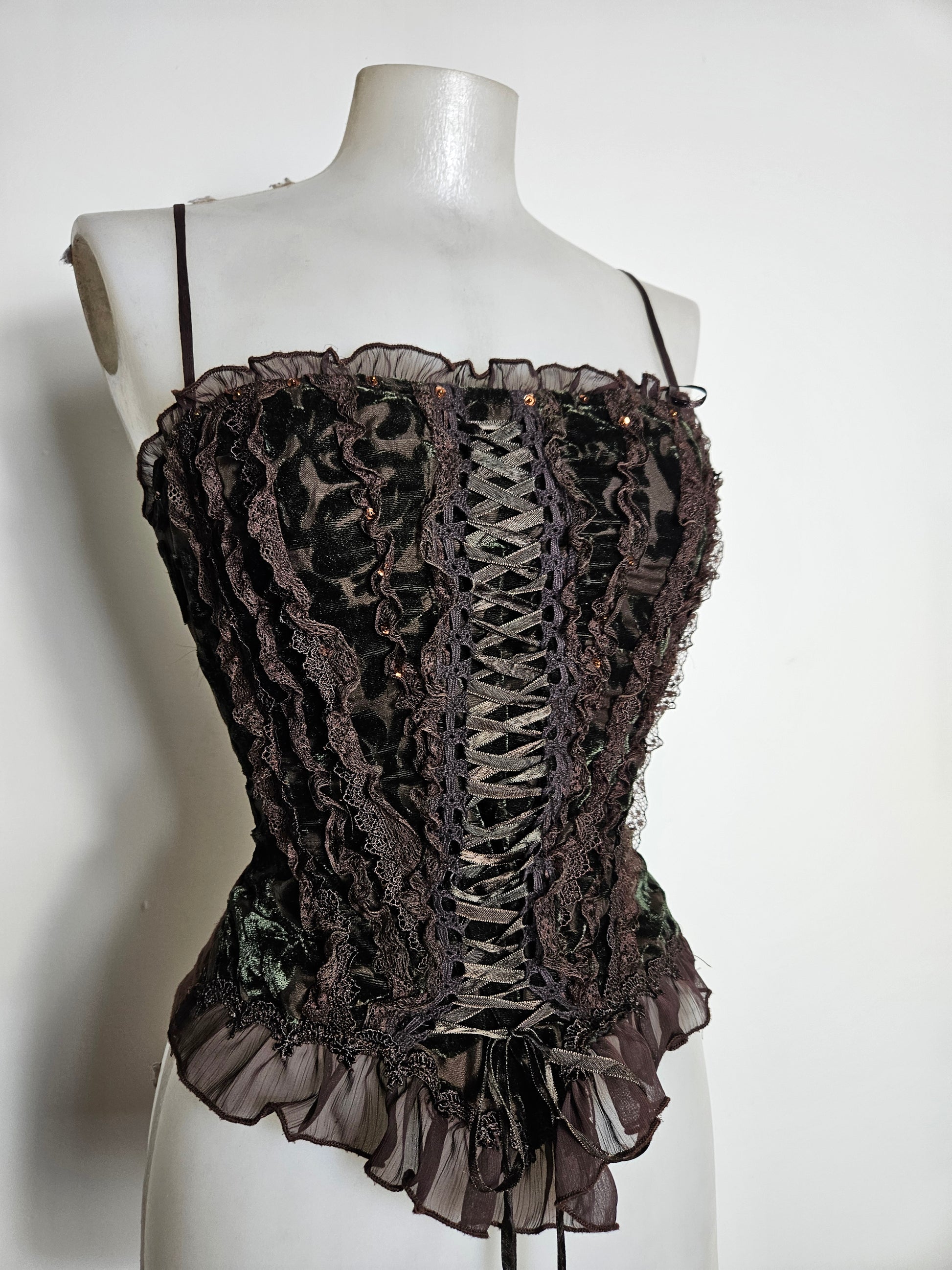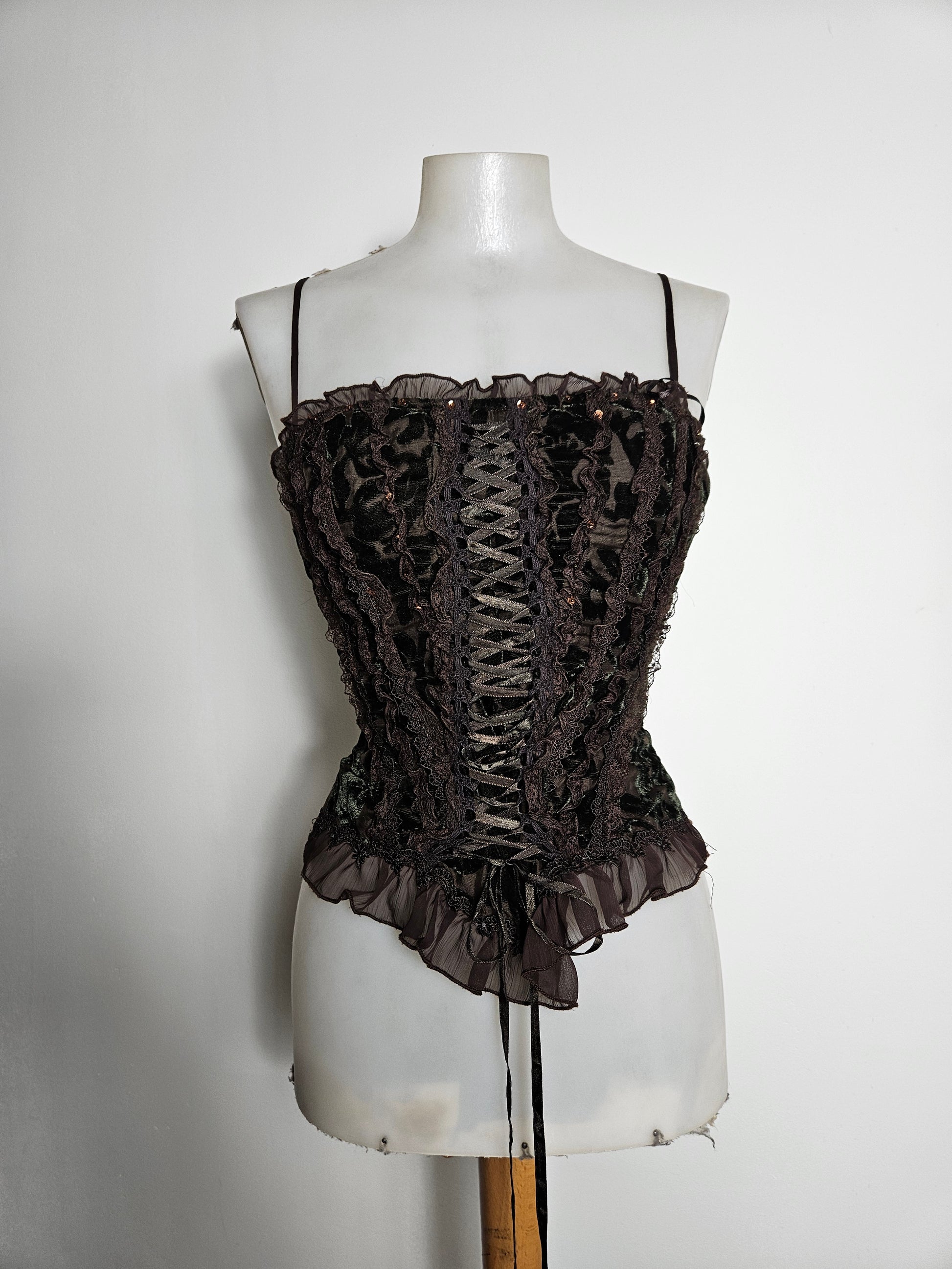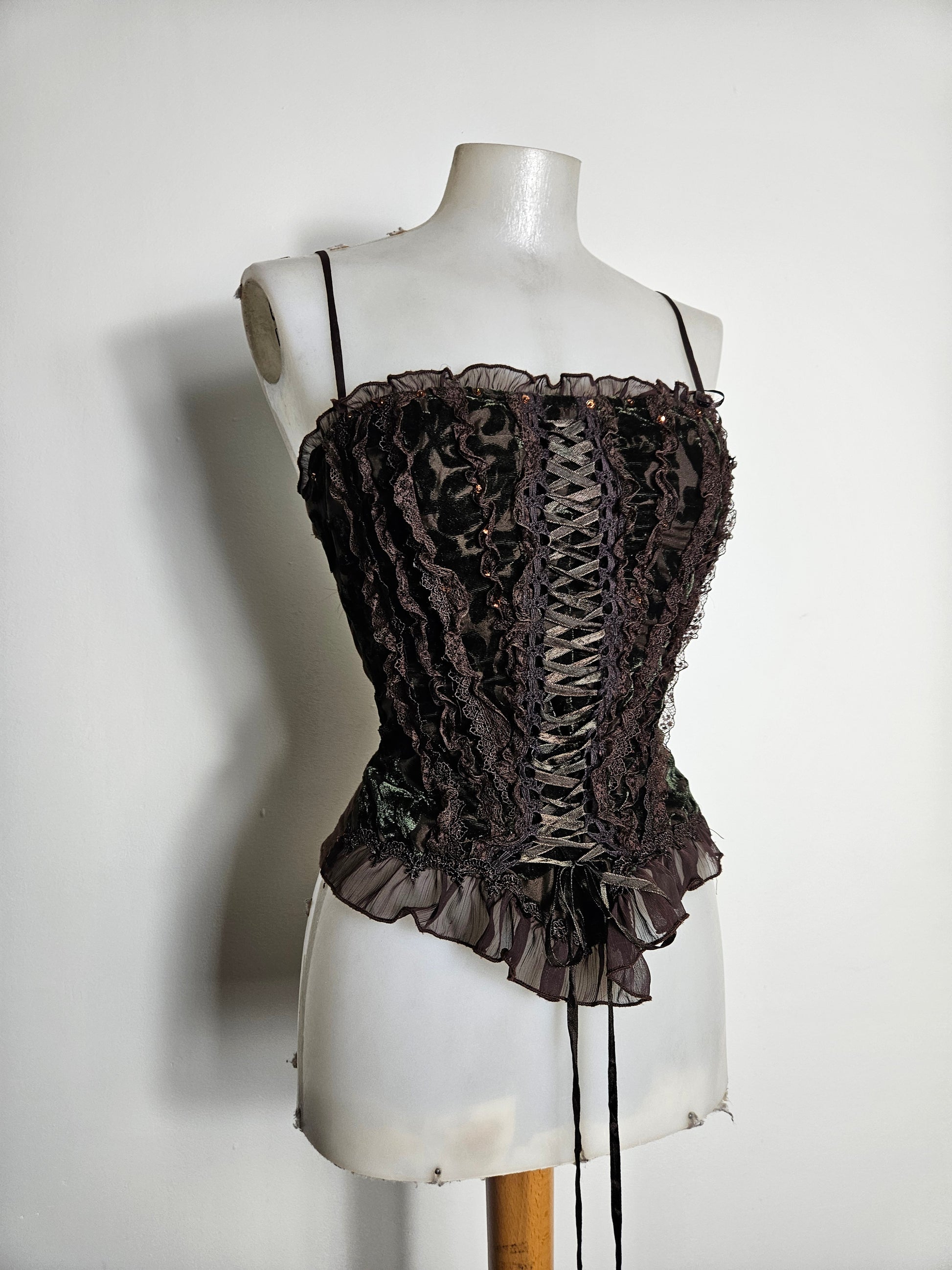 - Bustier marron en velours à laçage