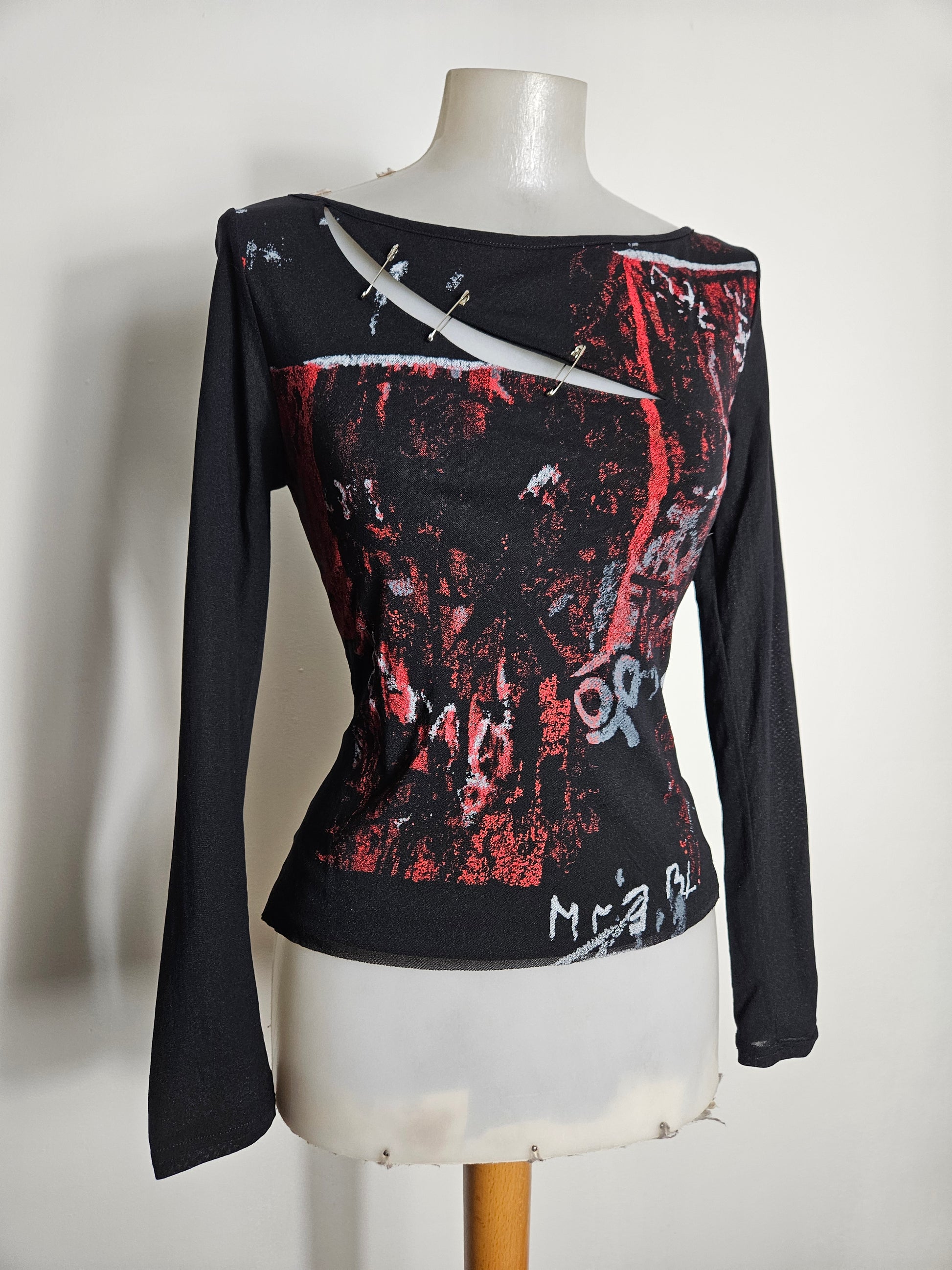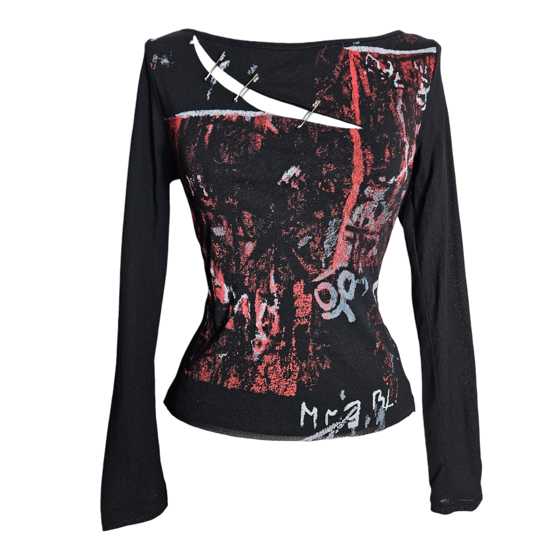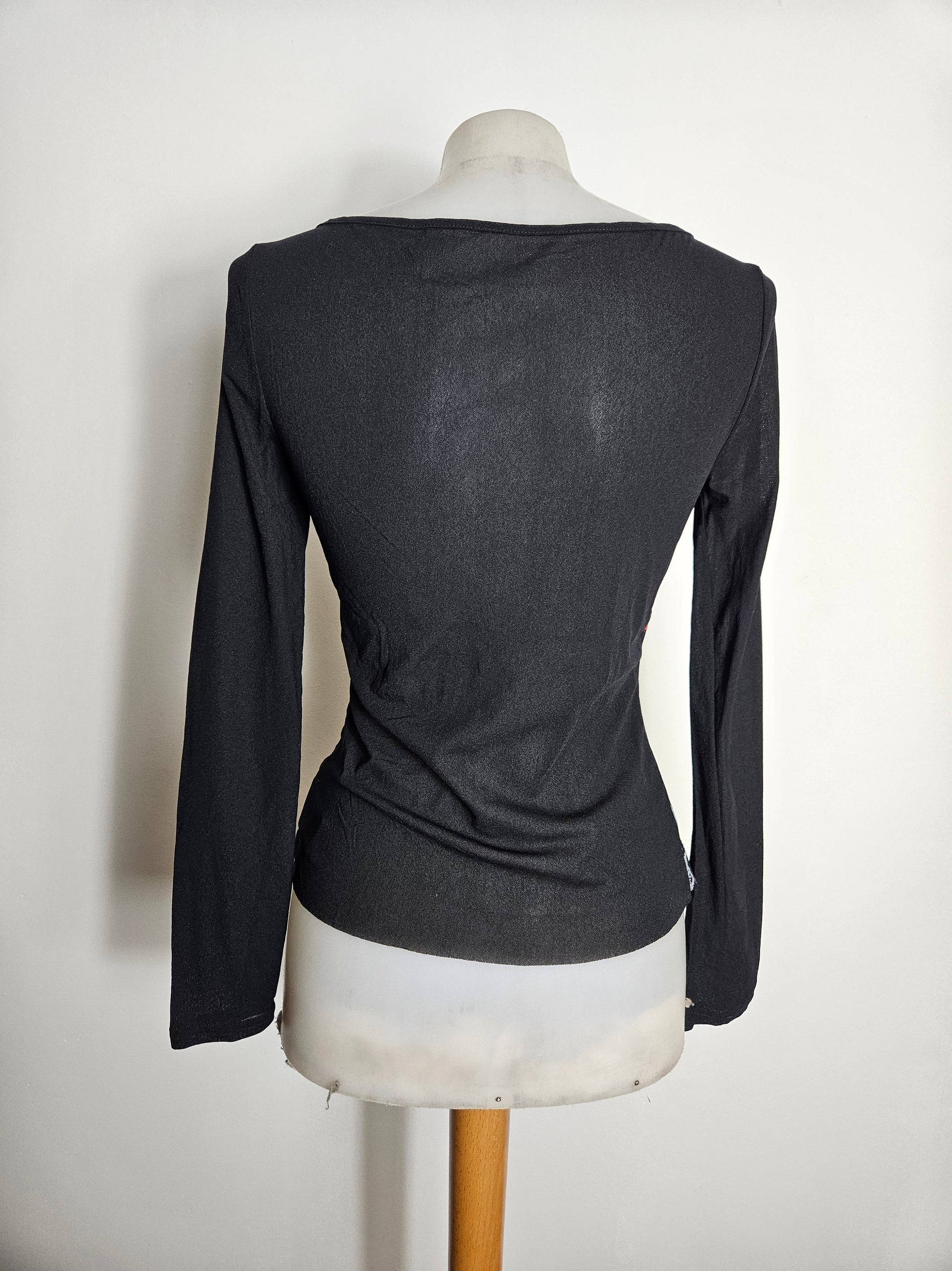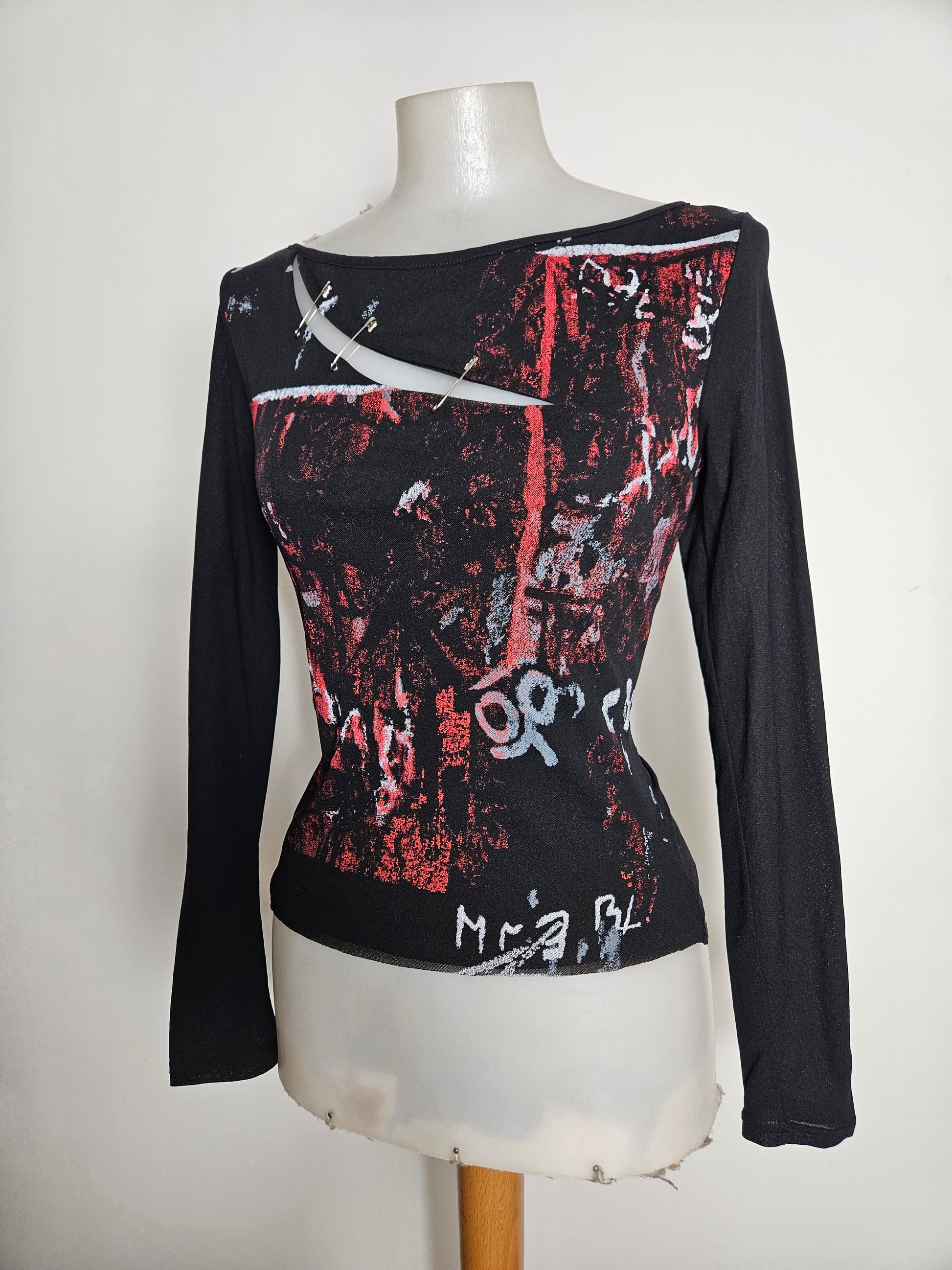 - Top noir à manches longues avec découpe ornée de safety pin/épingles à nourrice