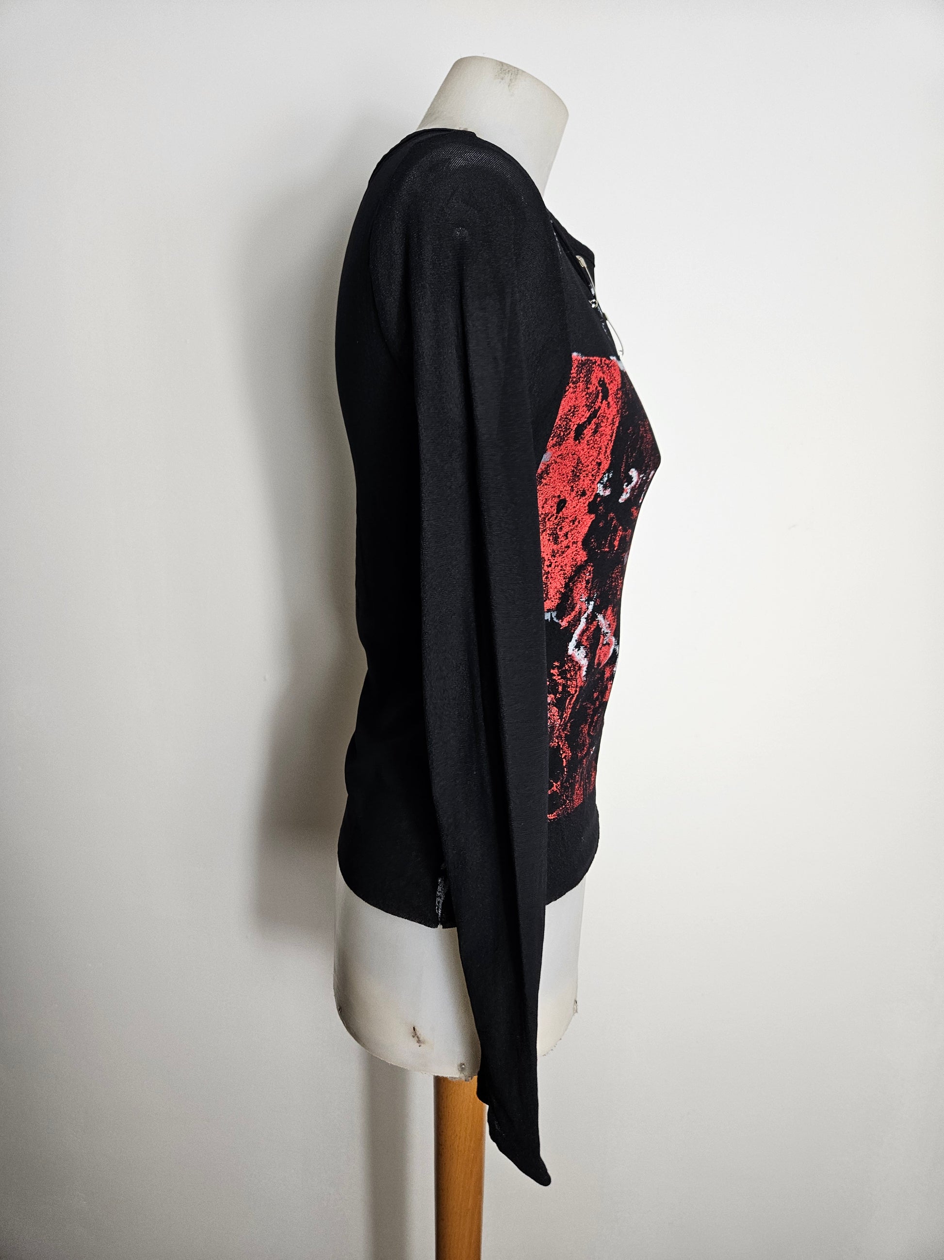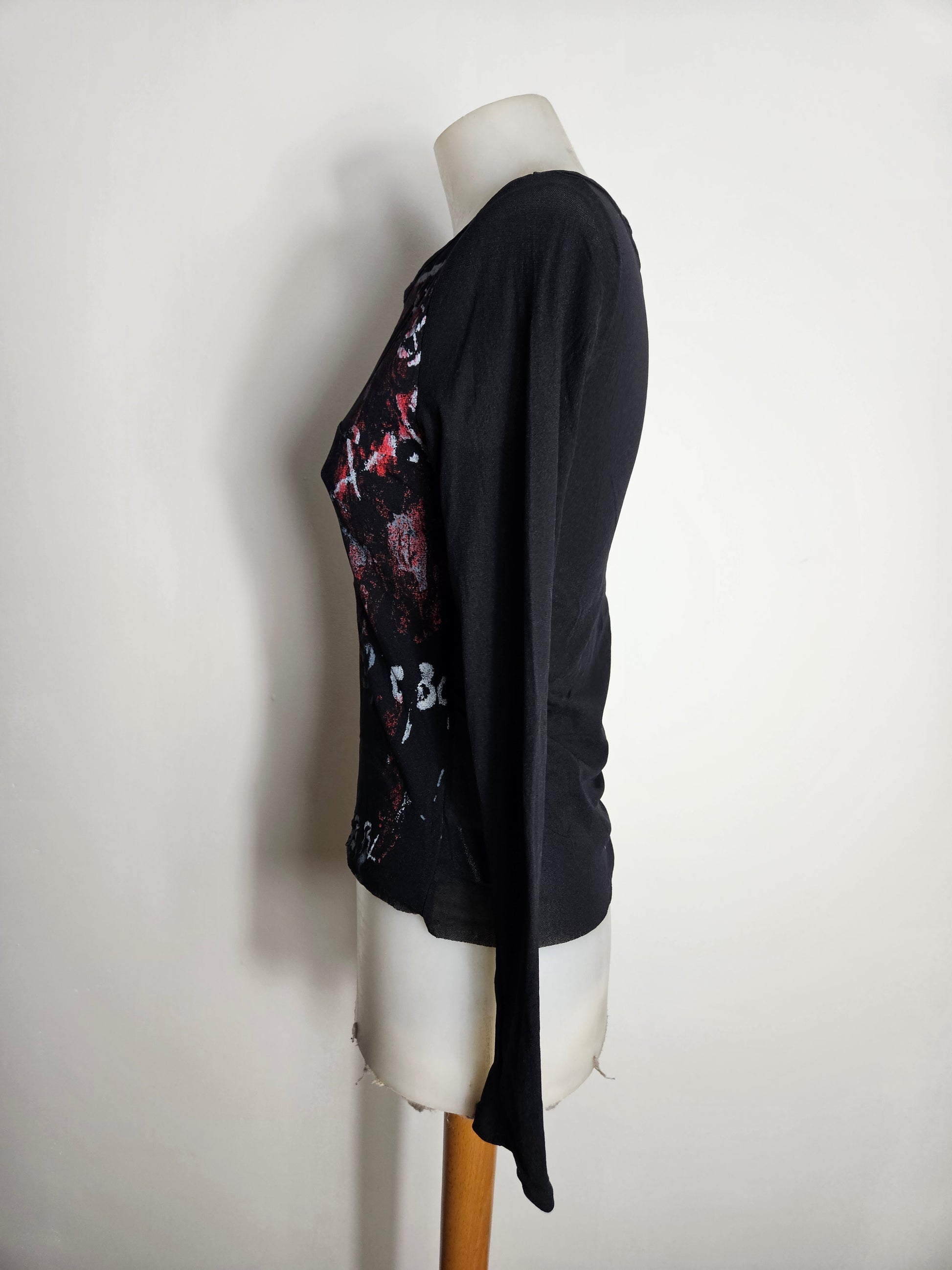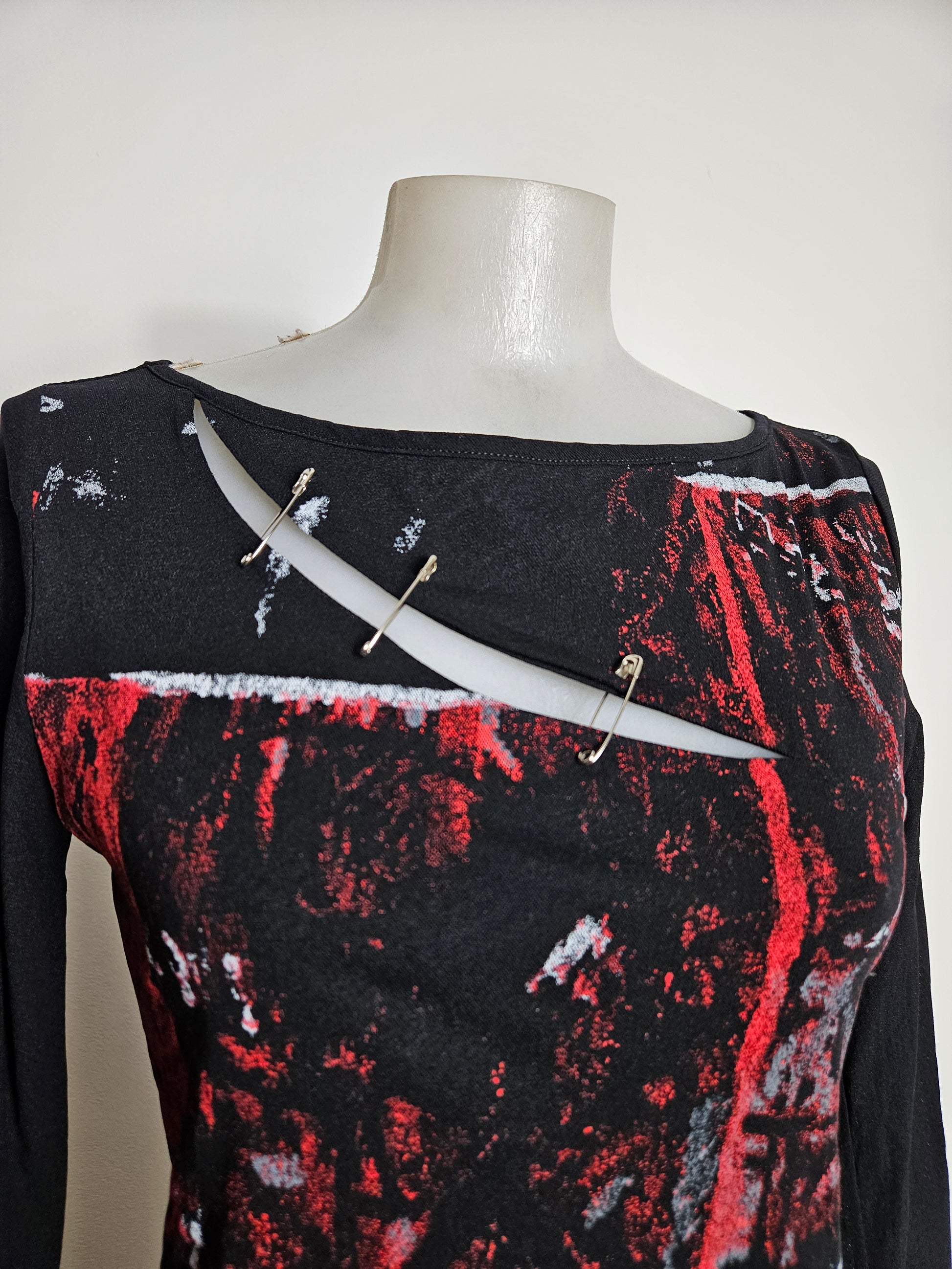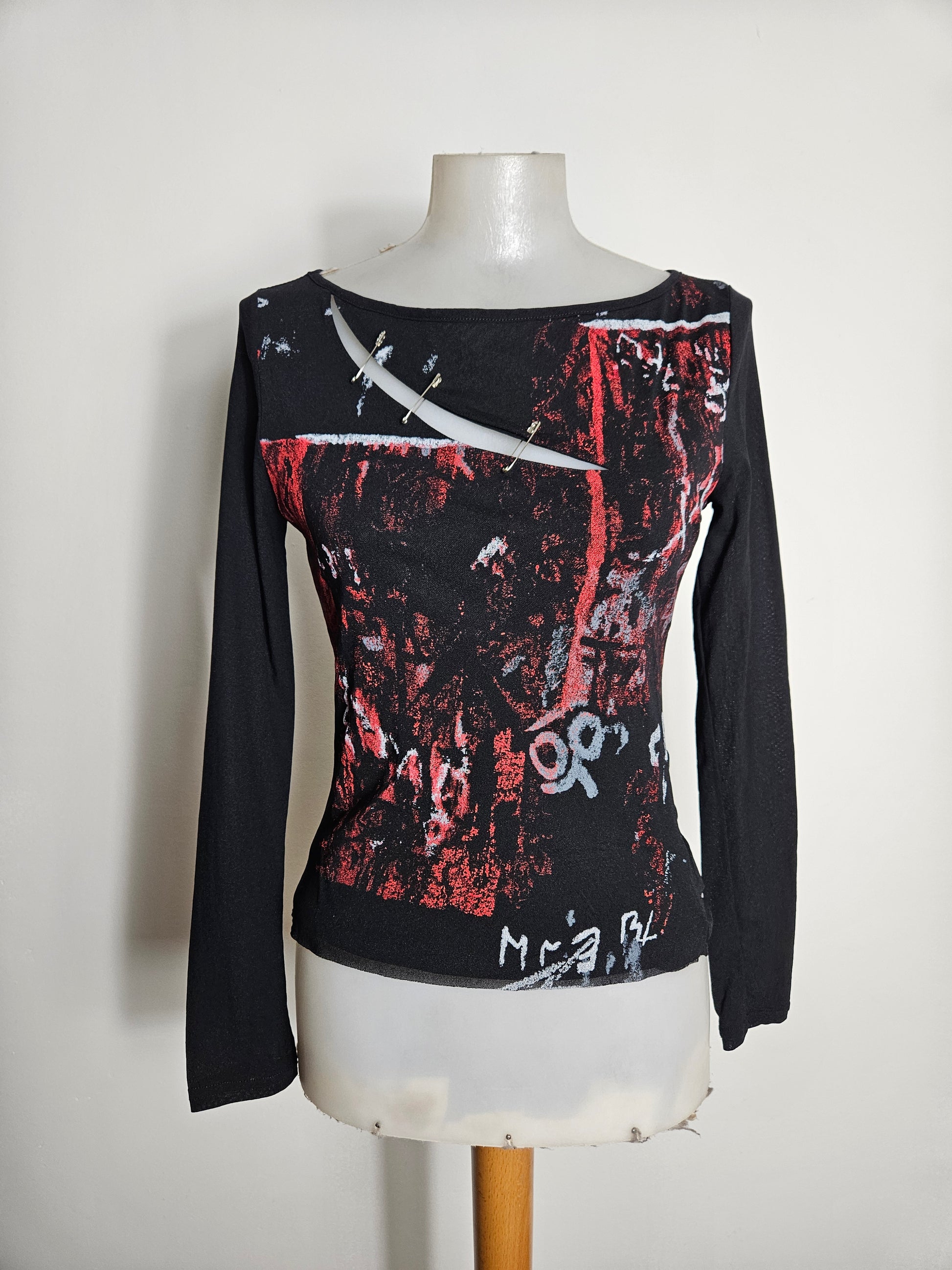 - Top noir à manches longues avec découpe ornée de safety pin/épingles à nourrice