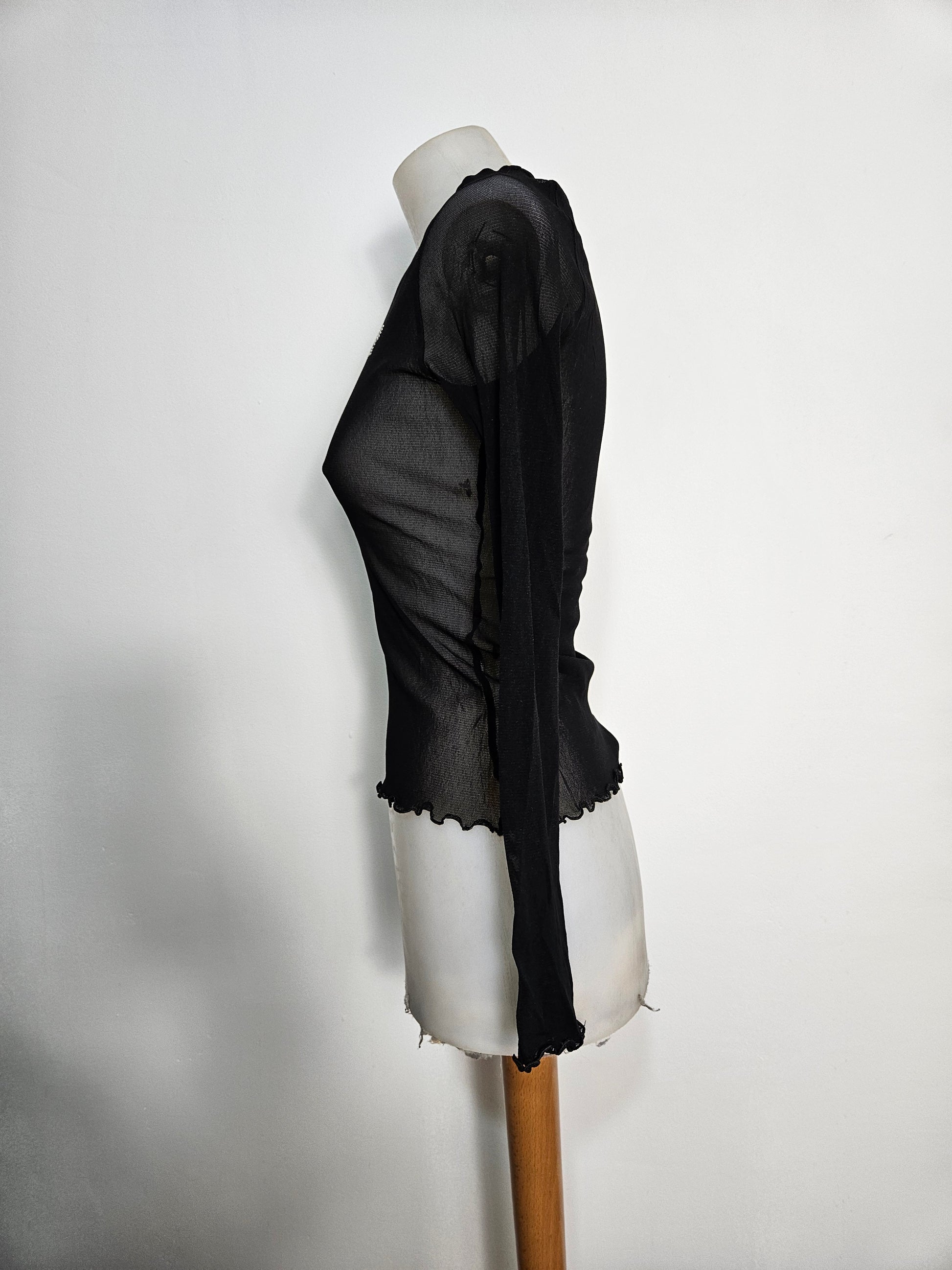- Top noir en mesh extensible et transparent