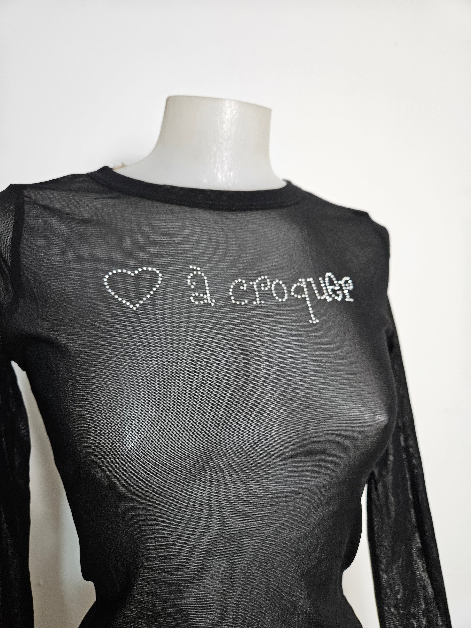 Haut en voile inscription en strass