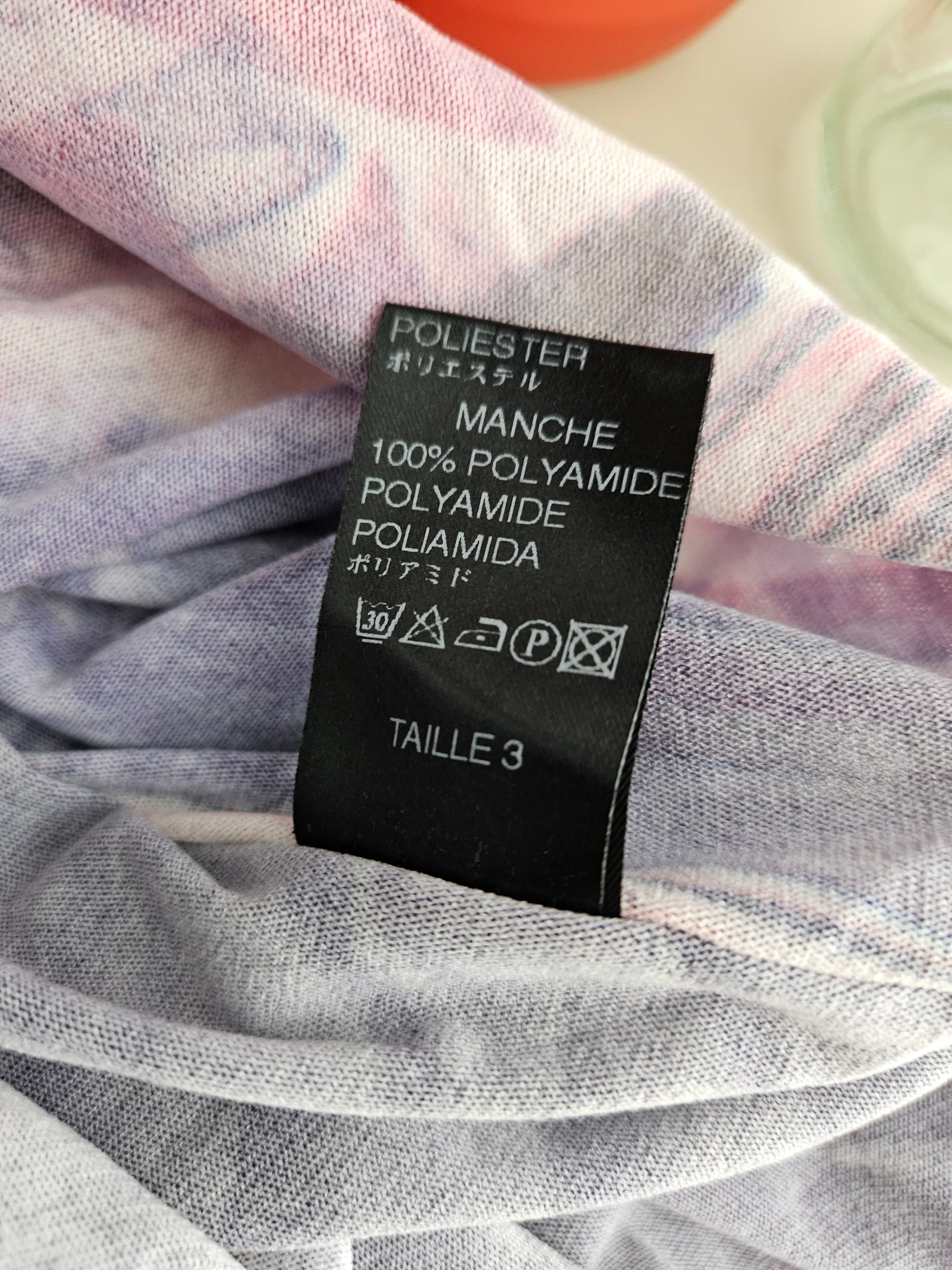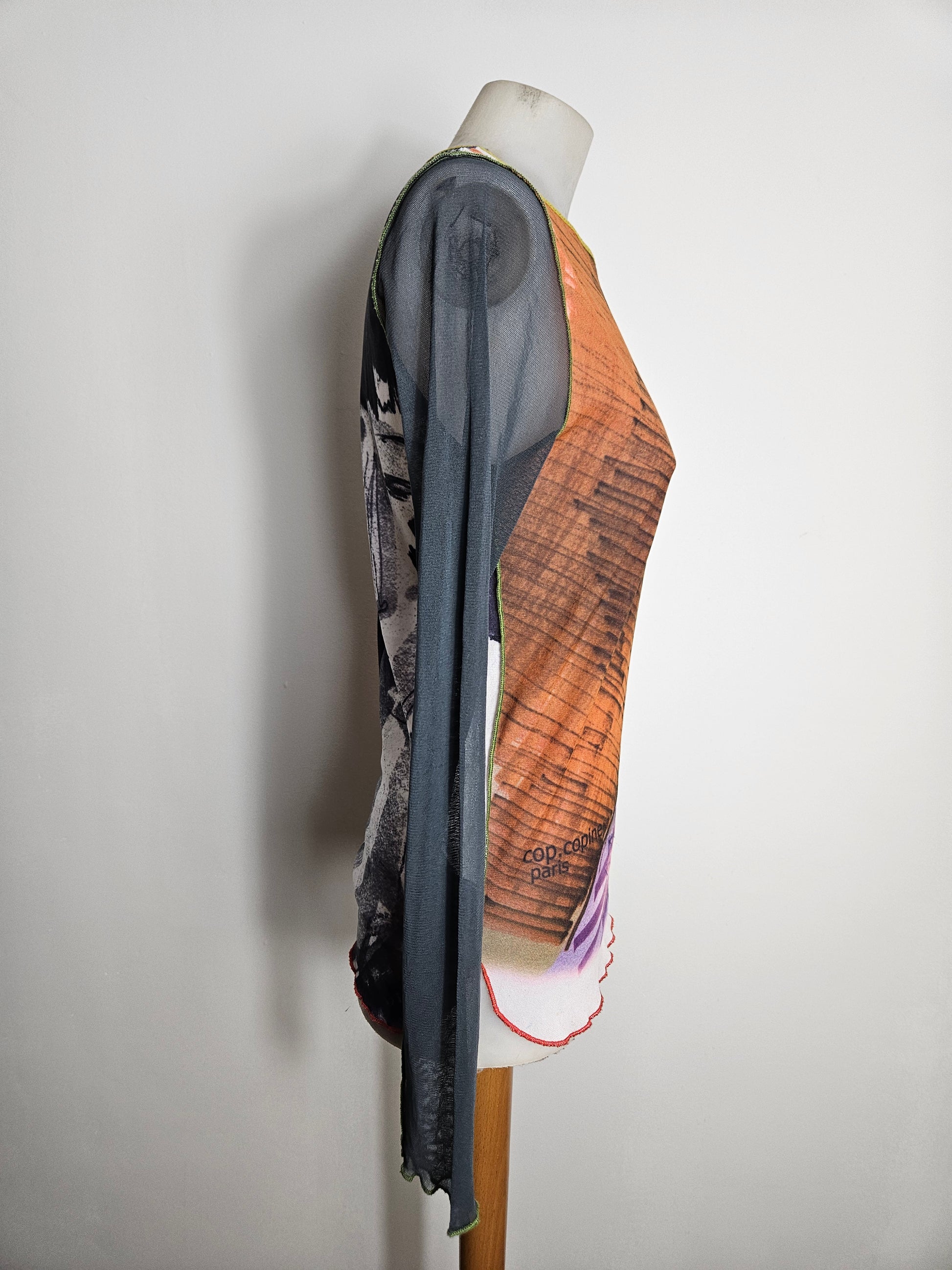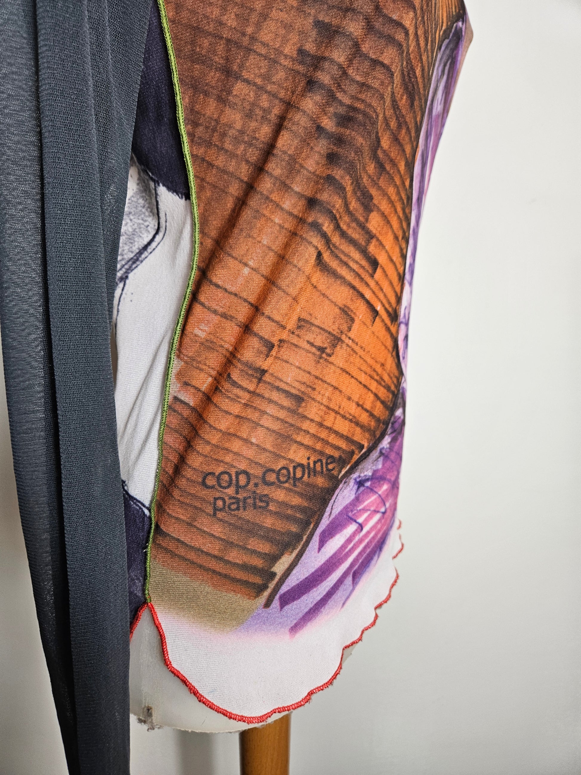 - Manches asymétriques : une manche orange et une manche noire transparente.