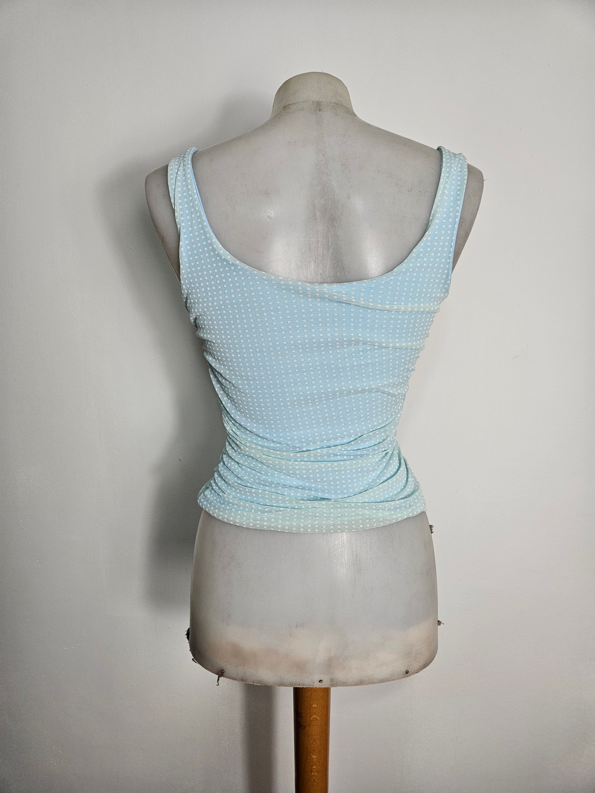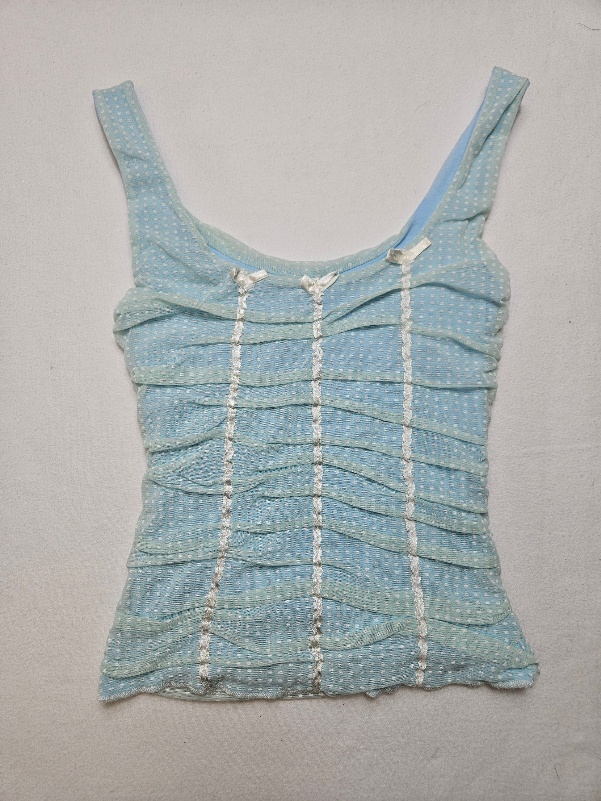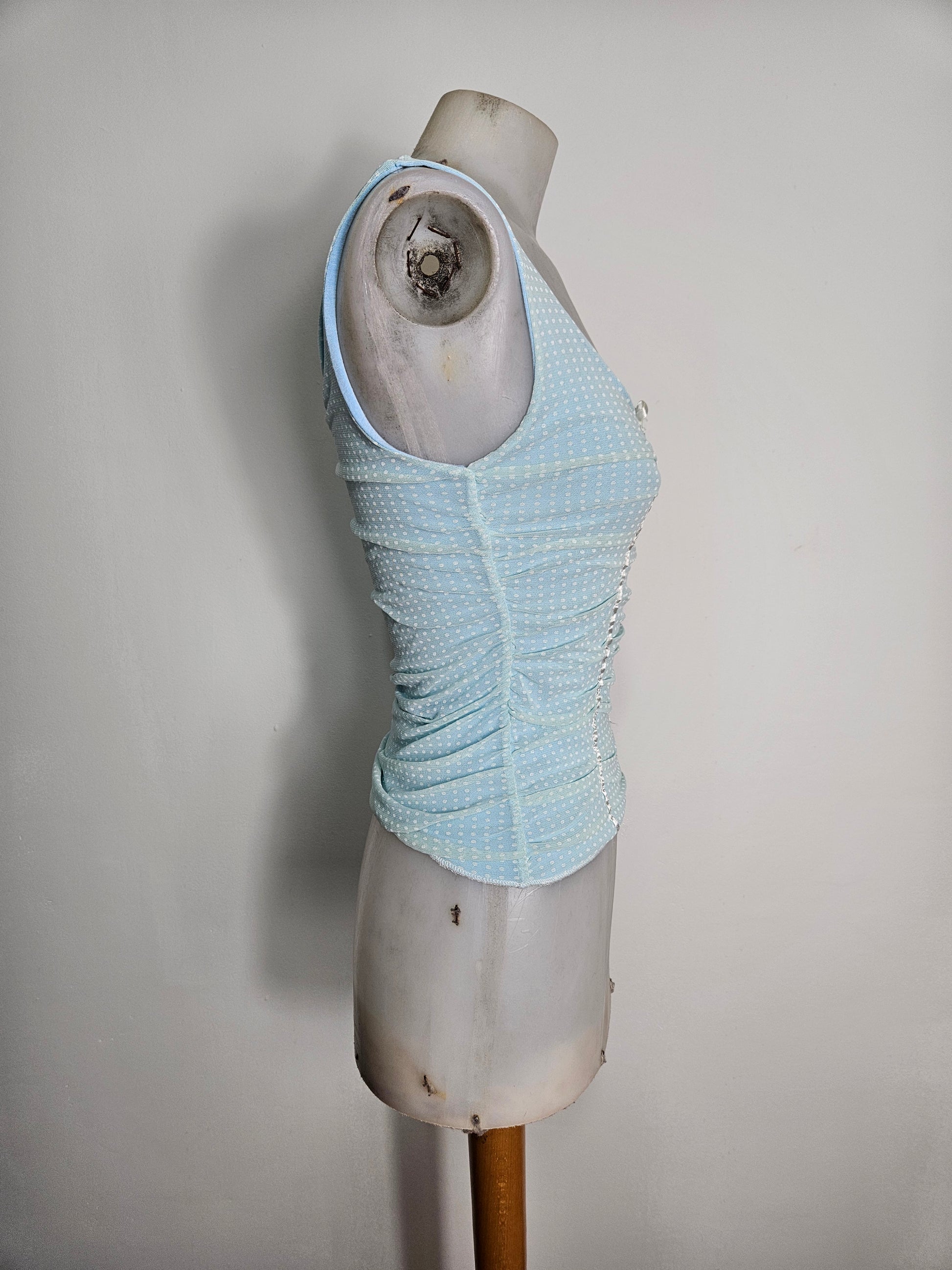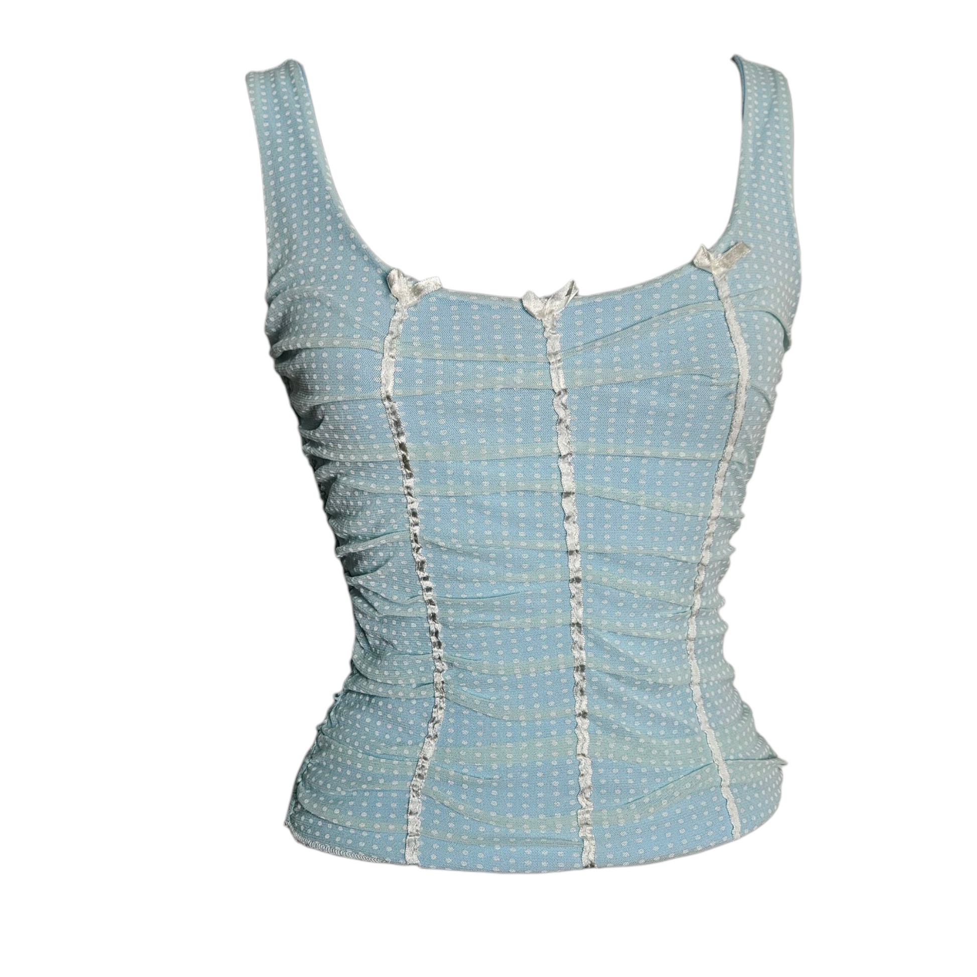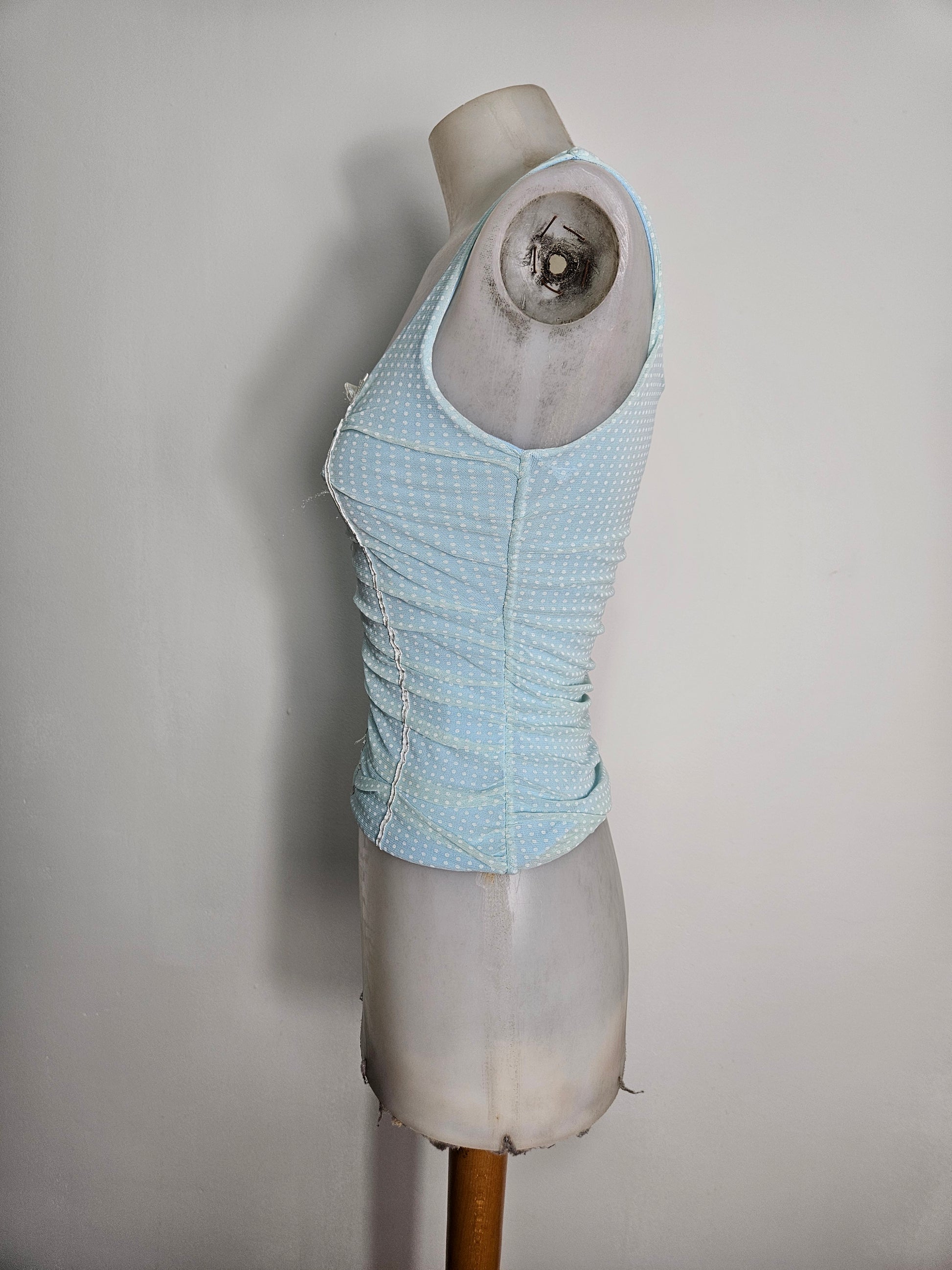 - Coutures apparentes avec finitions en ruban satiné blanc.