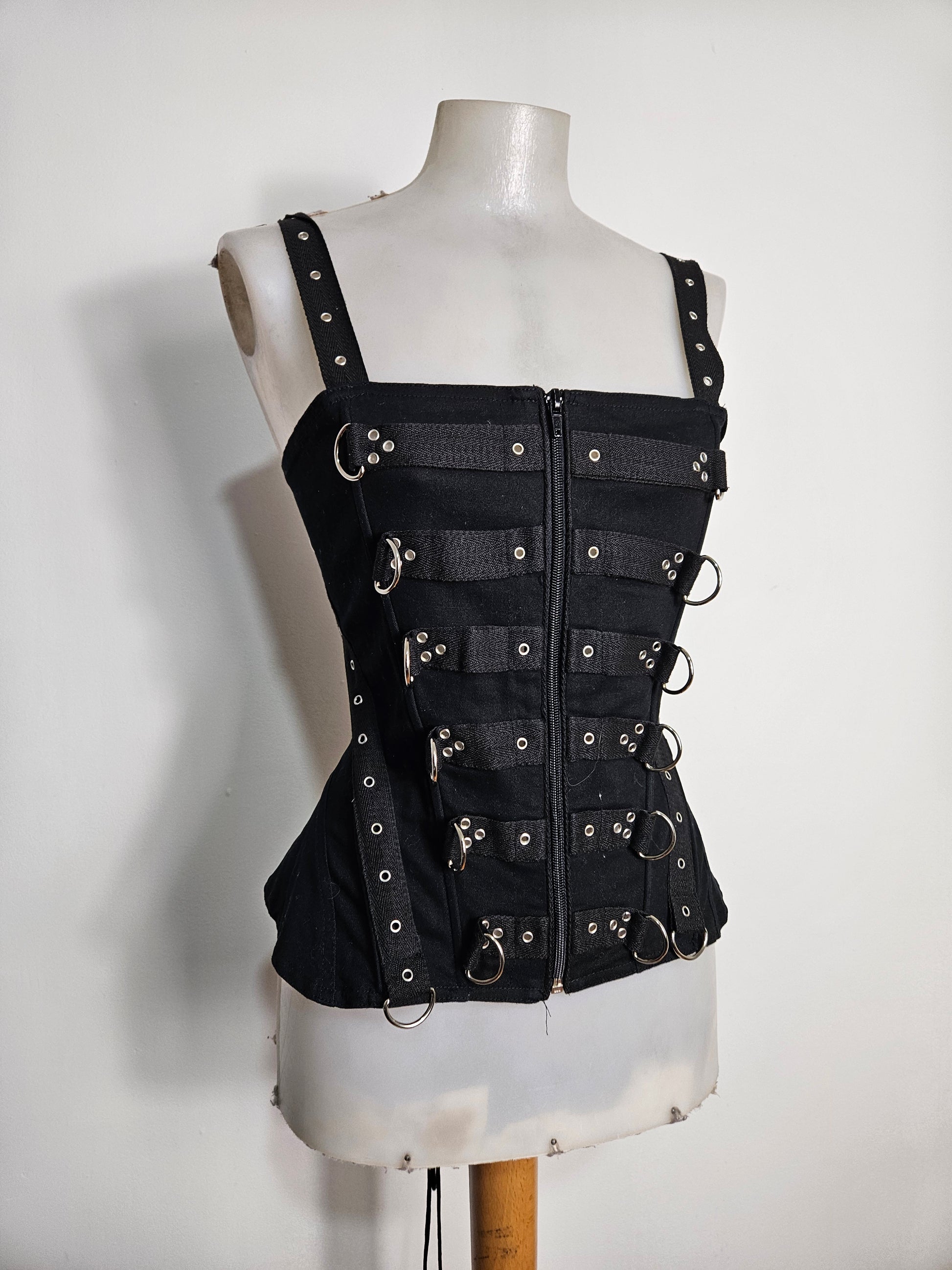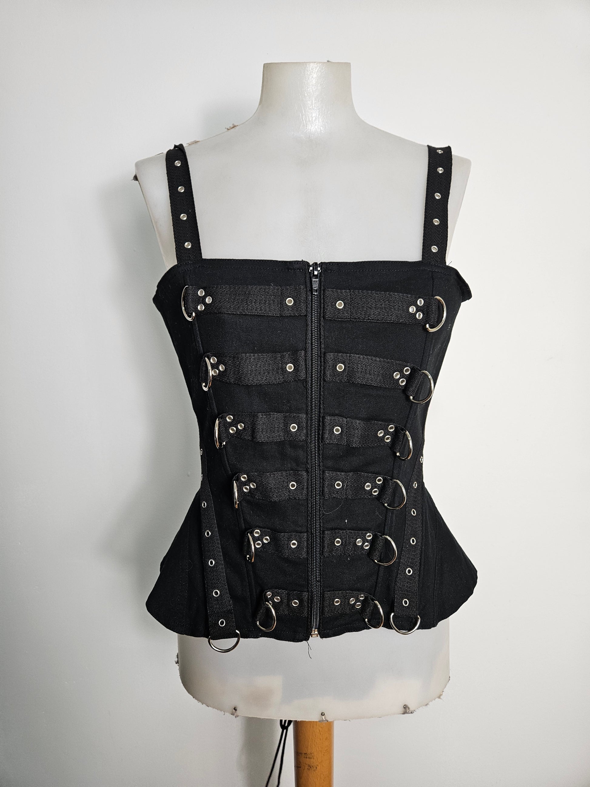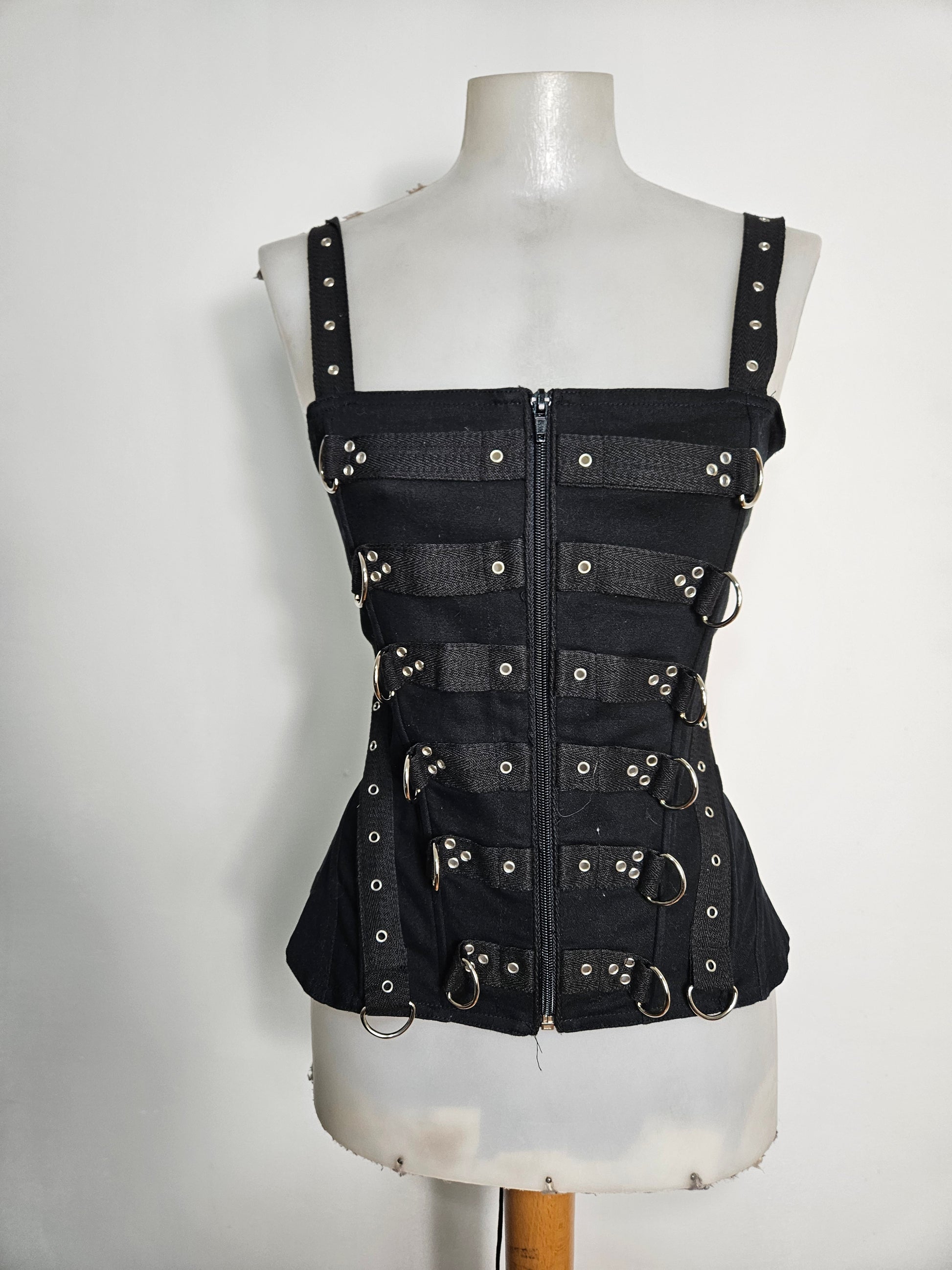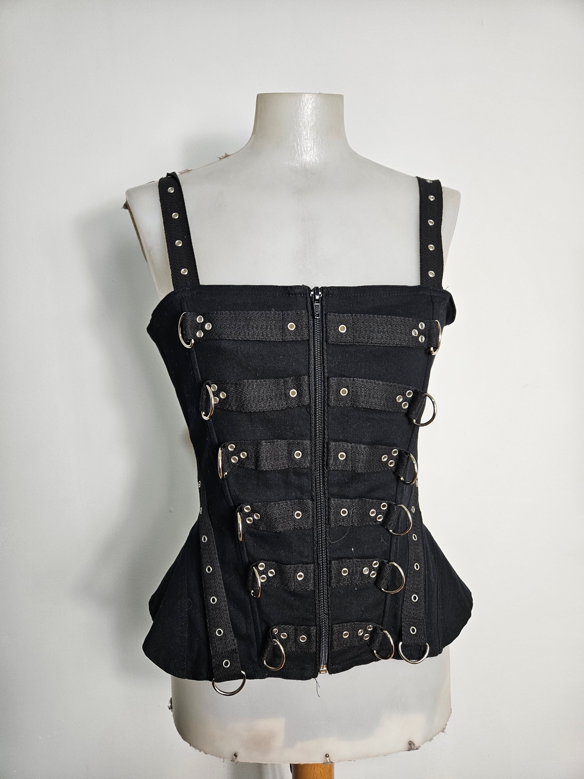 - Multiples sangles sur l'avant avec œillets et anneaux D-ring argentés
