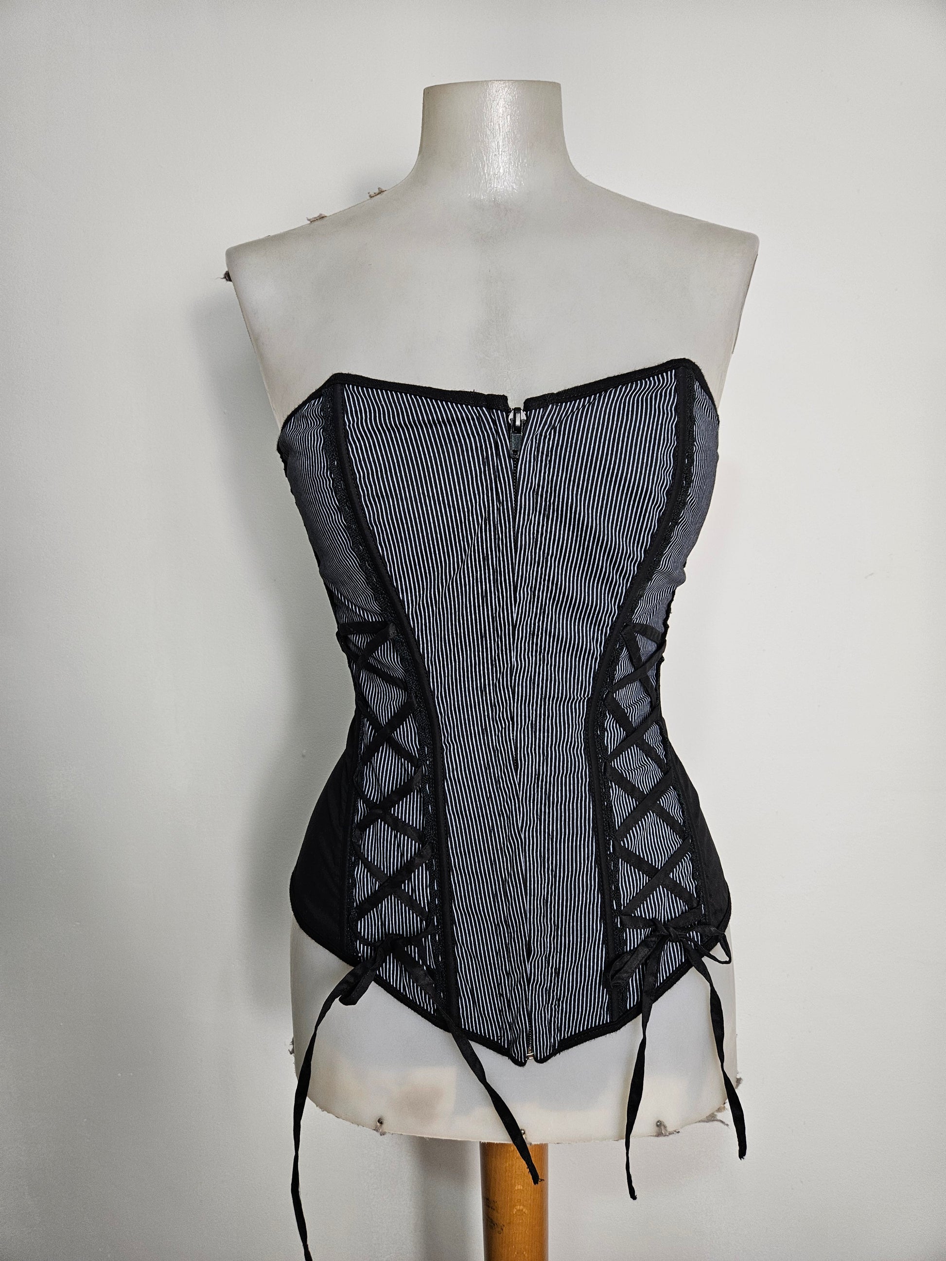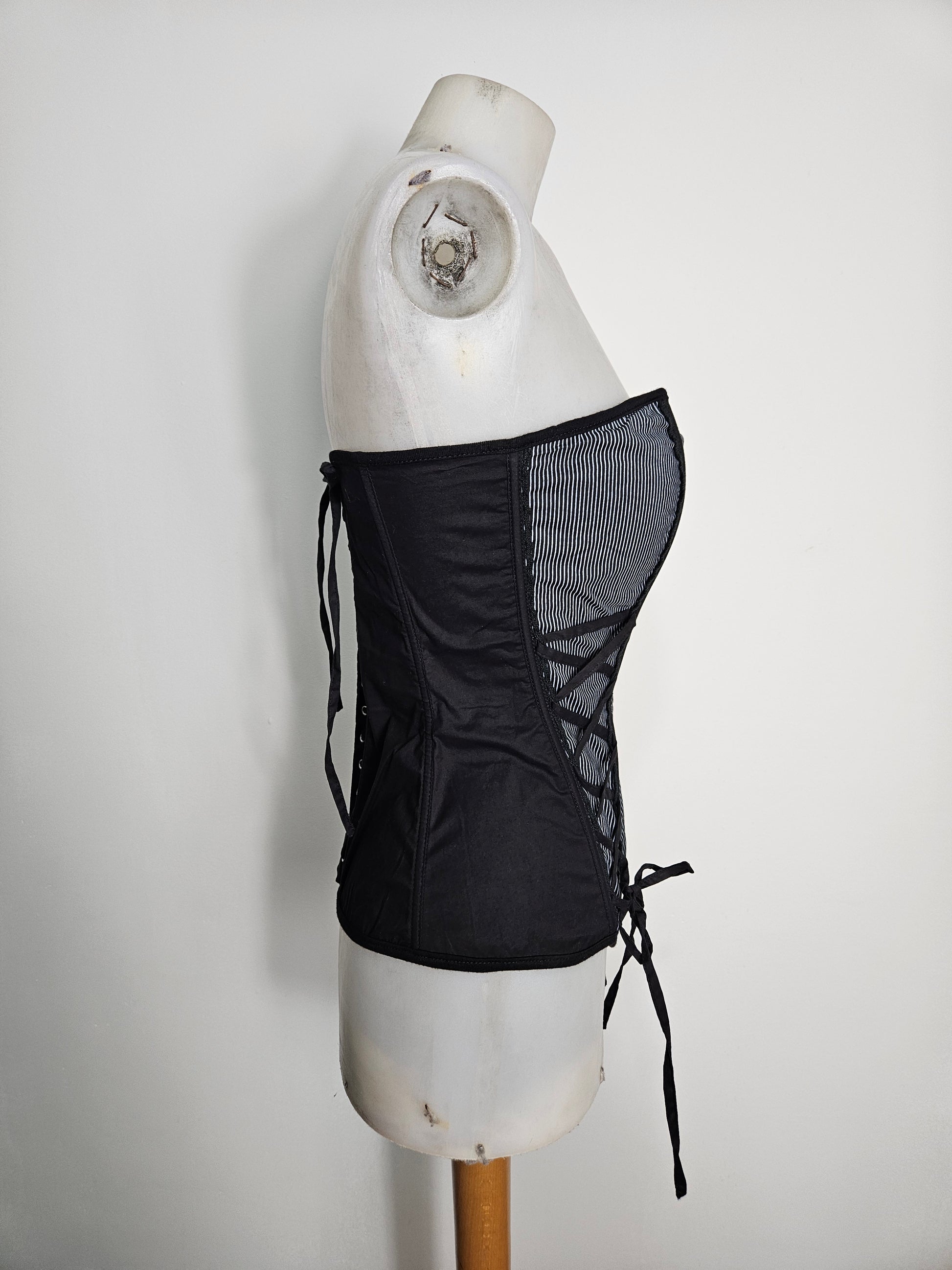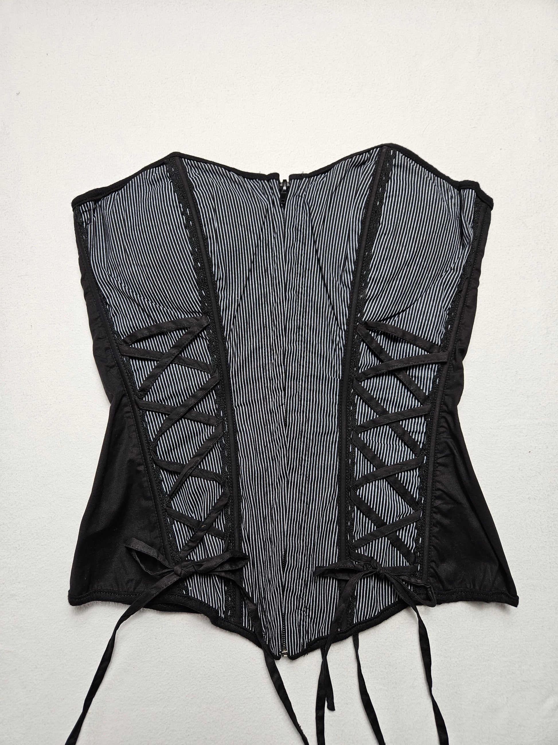 - Bustier noir à rayures fines verticales.