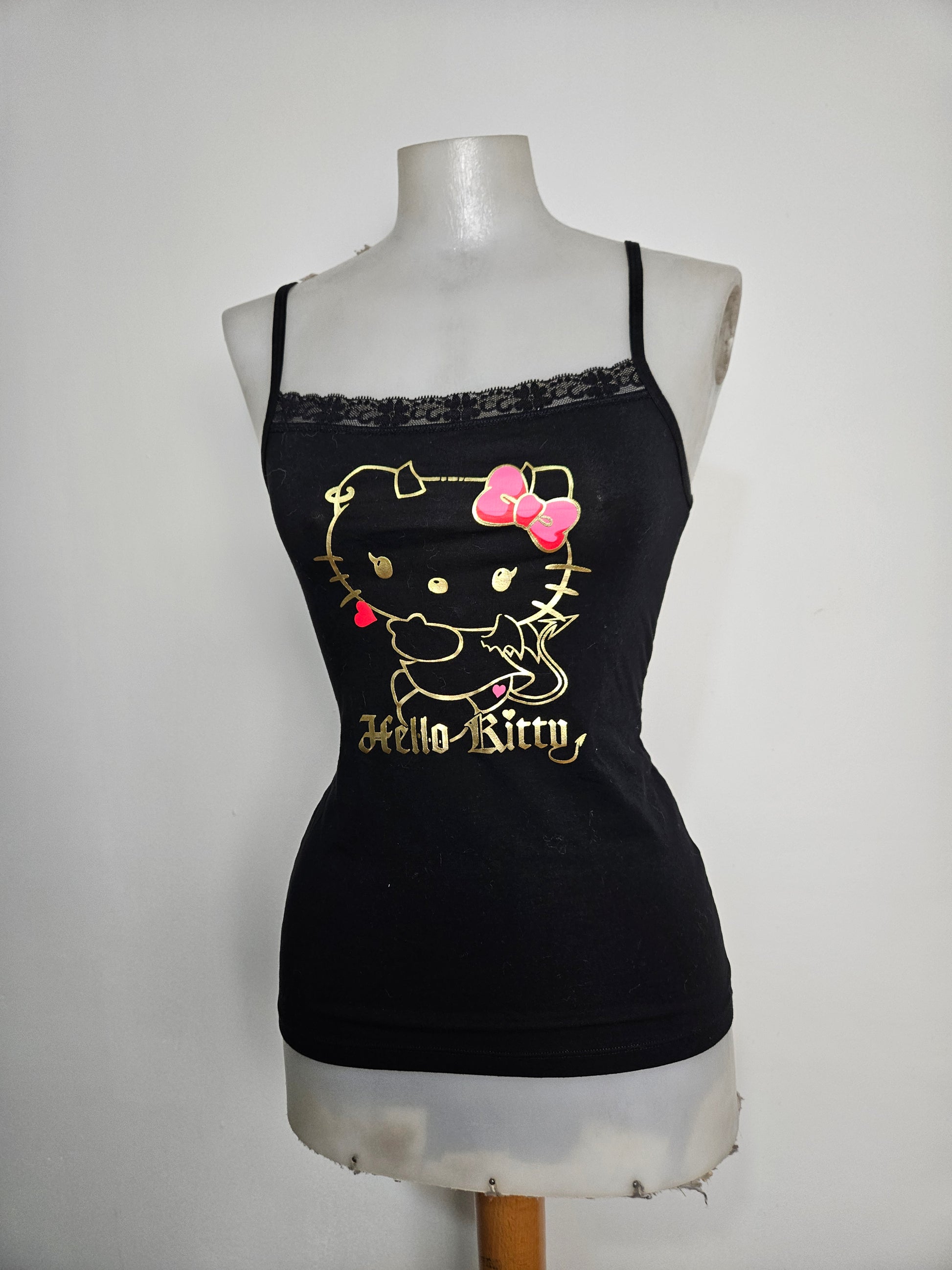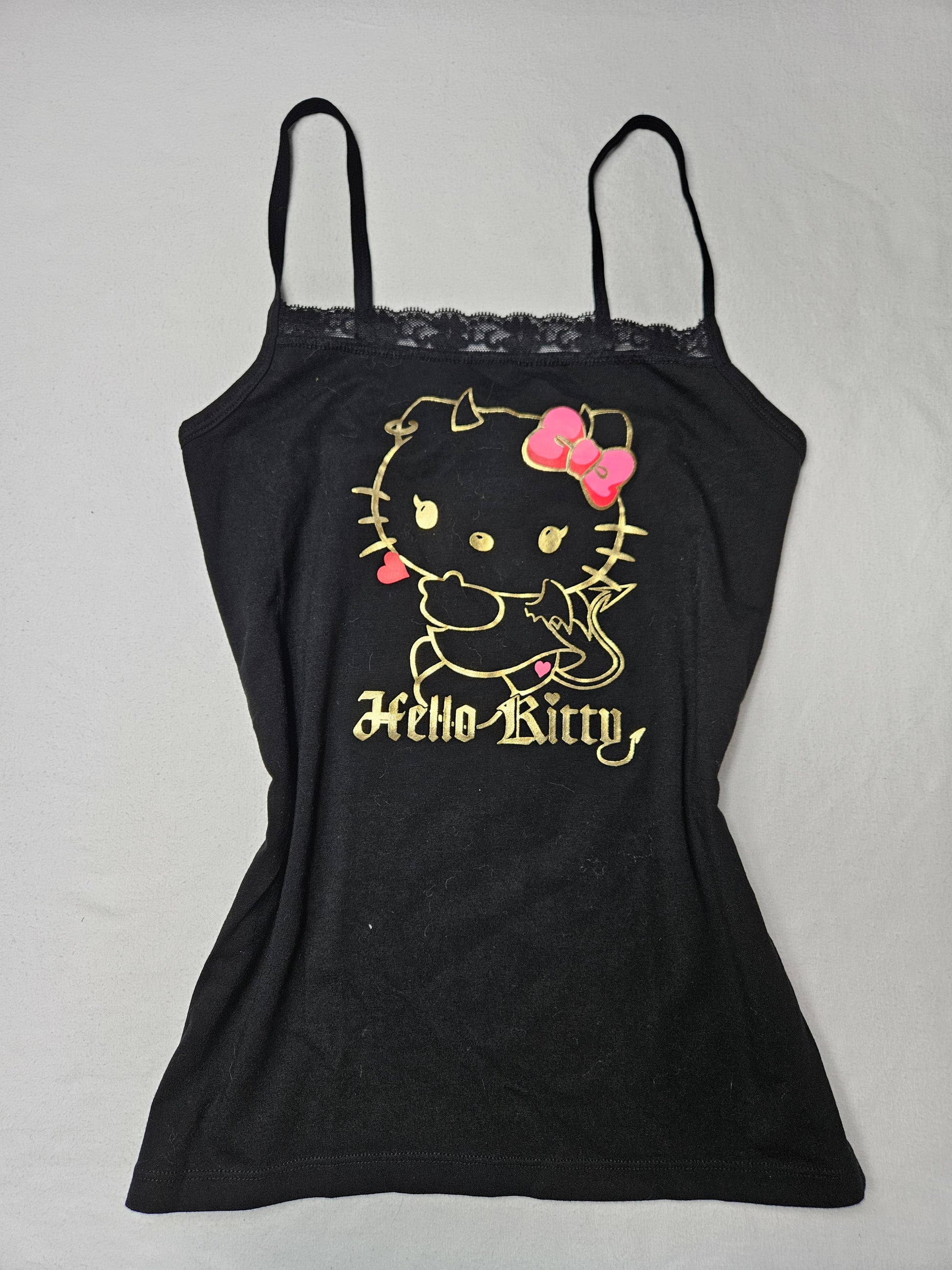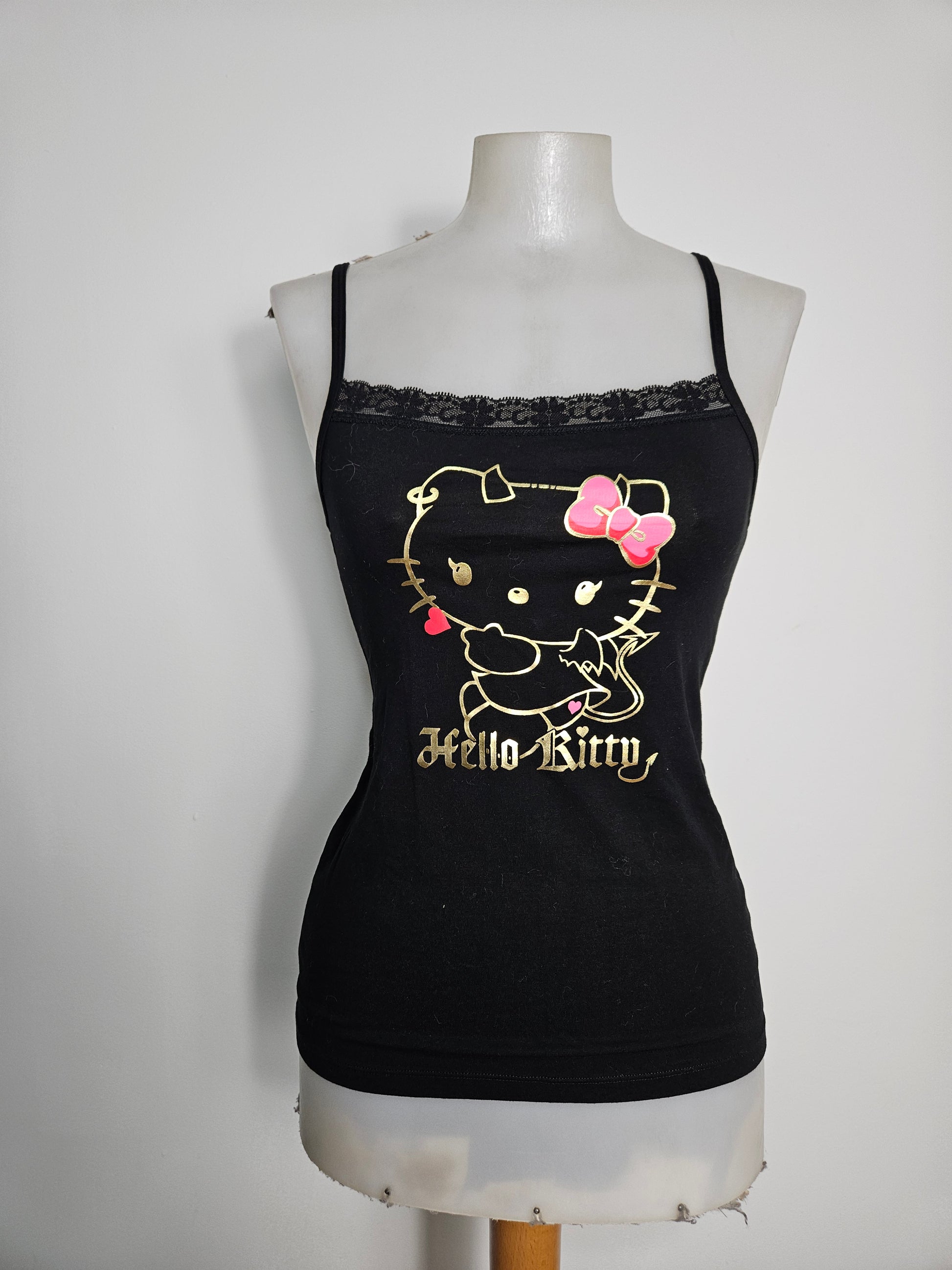 - Imprimé doré Hello Kitty avec nœud rose et lettrage gothique