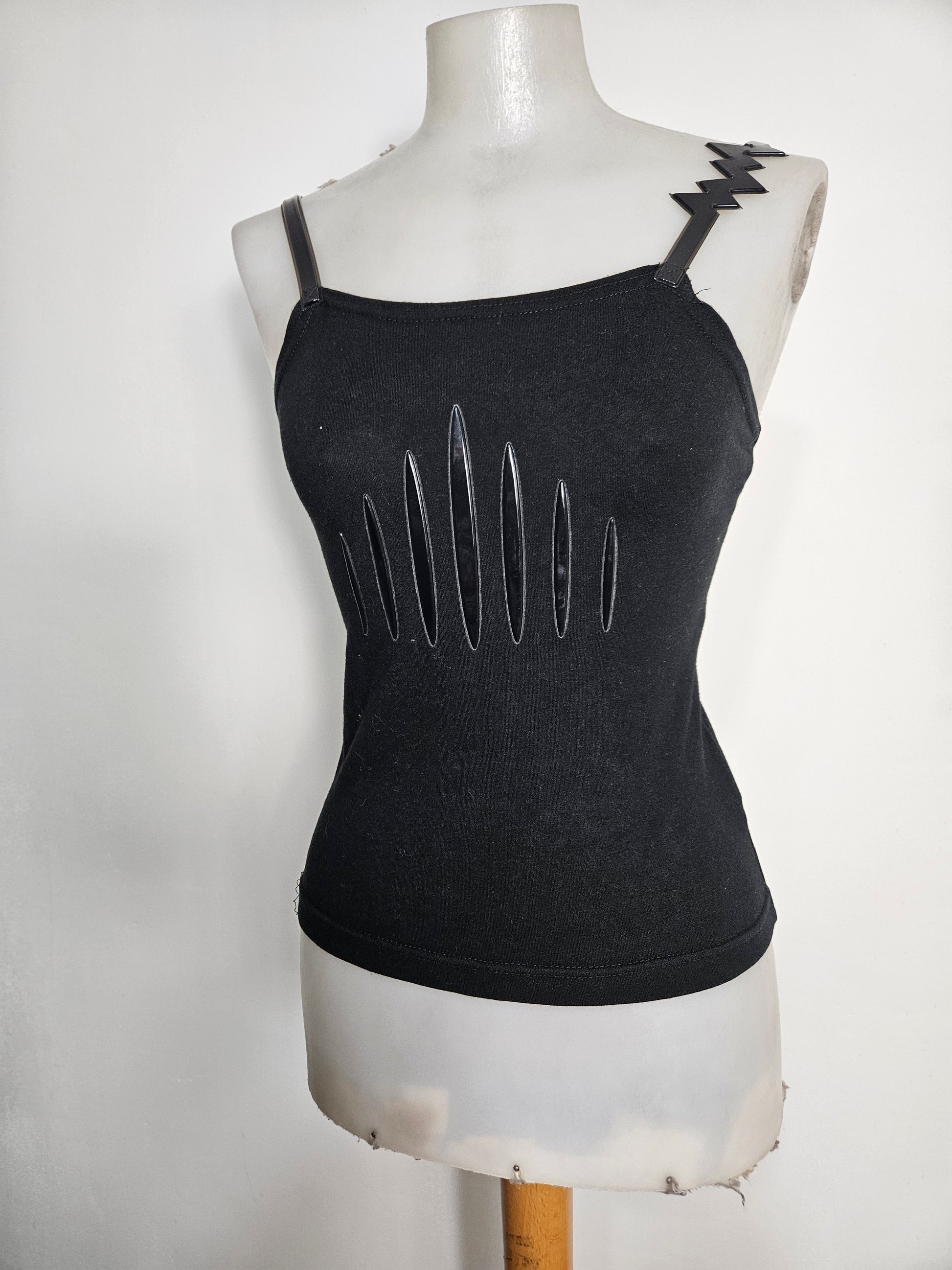 - Inserts vinyle brillants en forme de fentes sur le buste