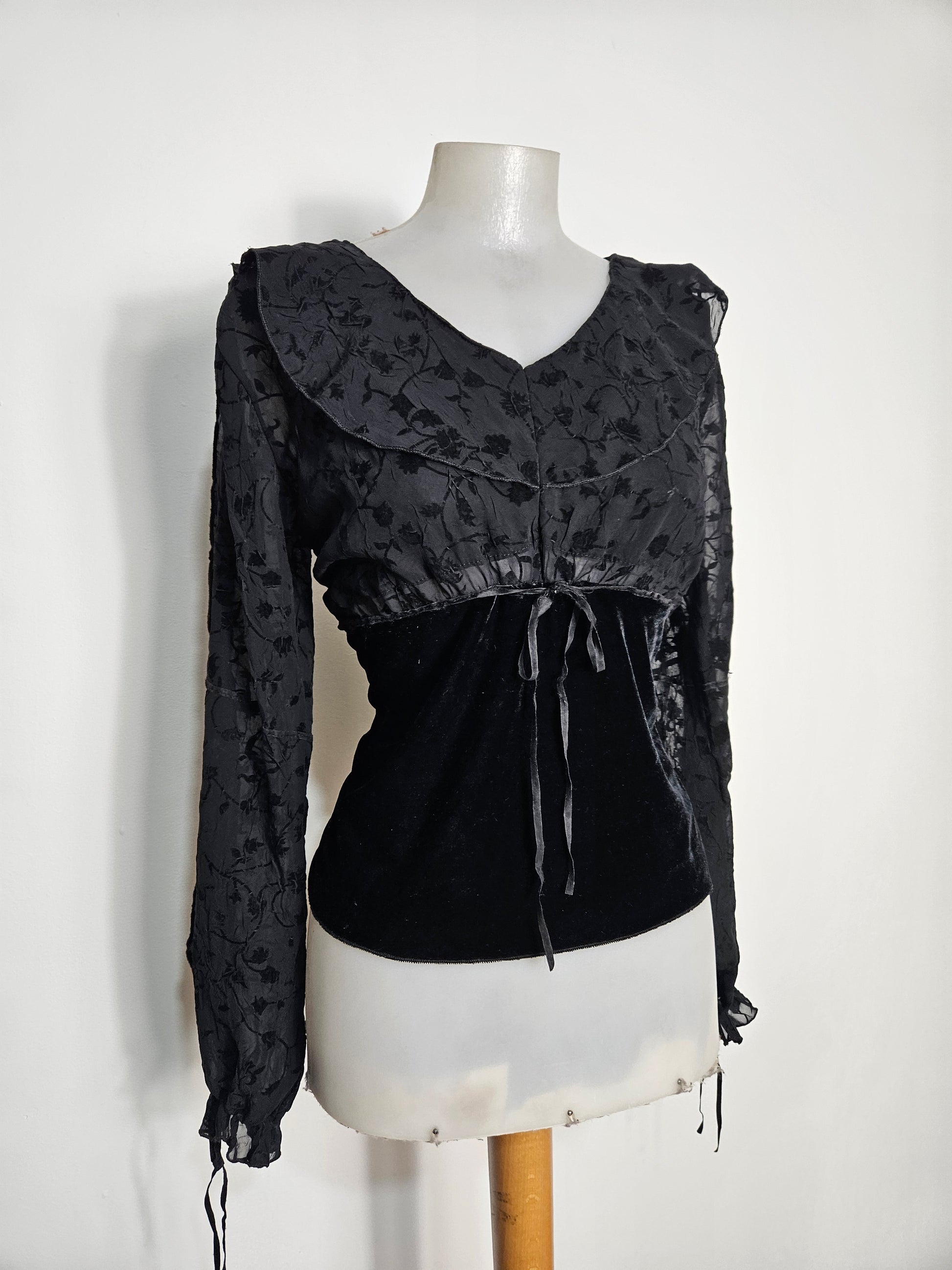 - Manches longues, fendues sur tout la longuer puis resserrées par lien aux poignets