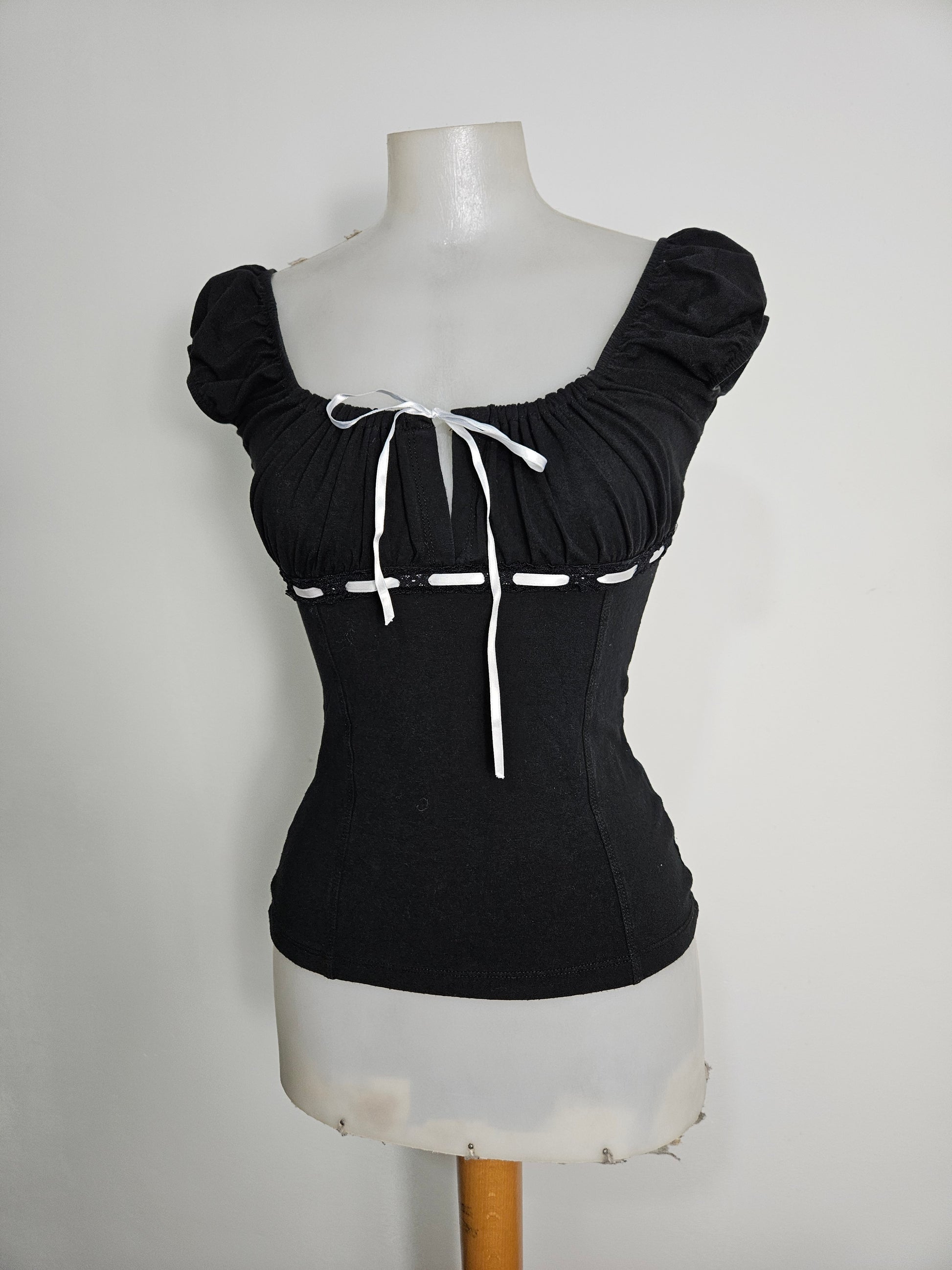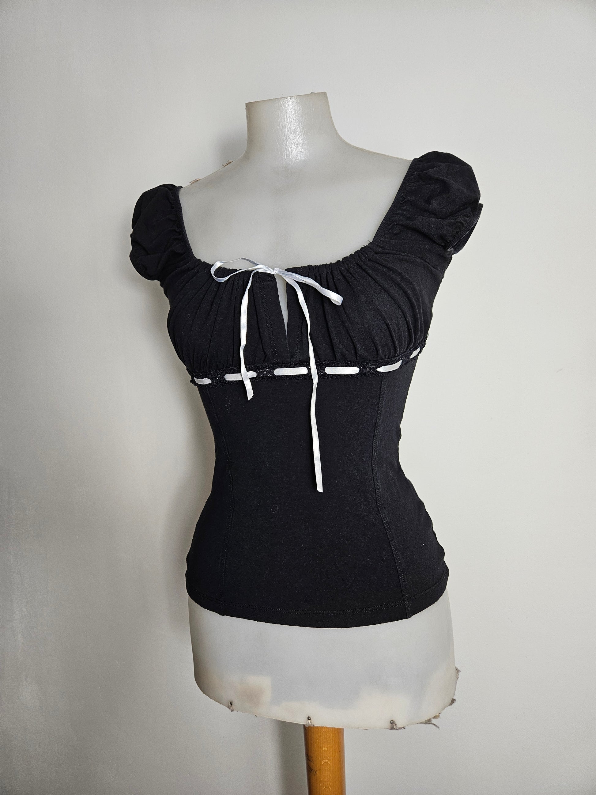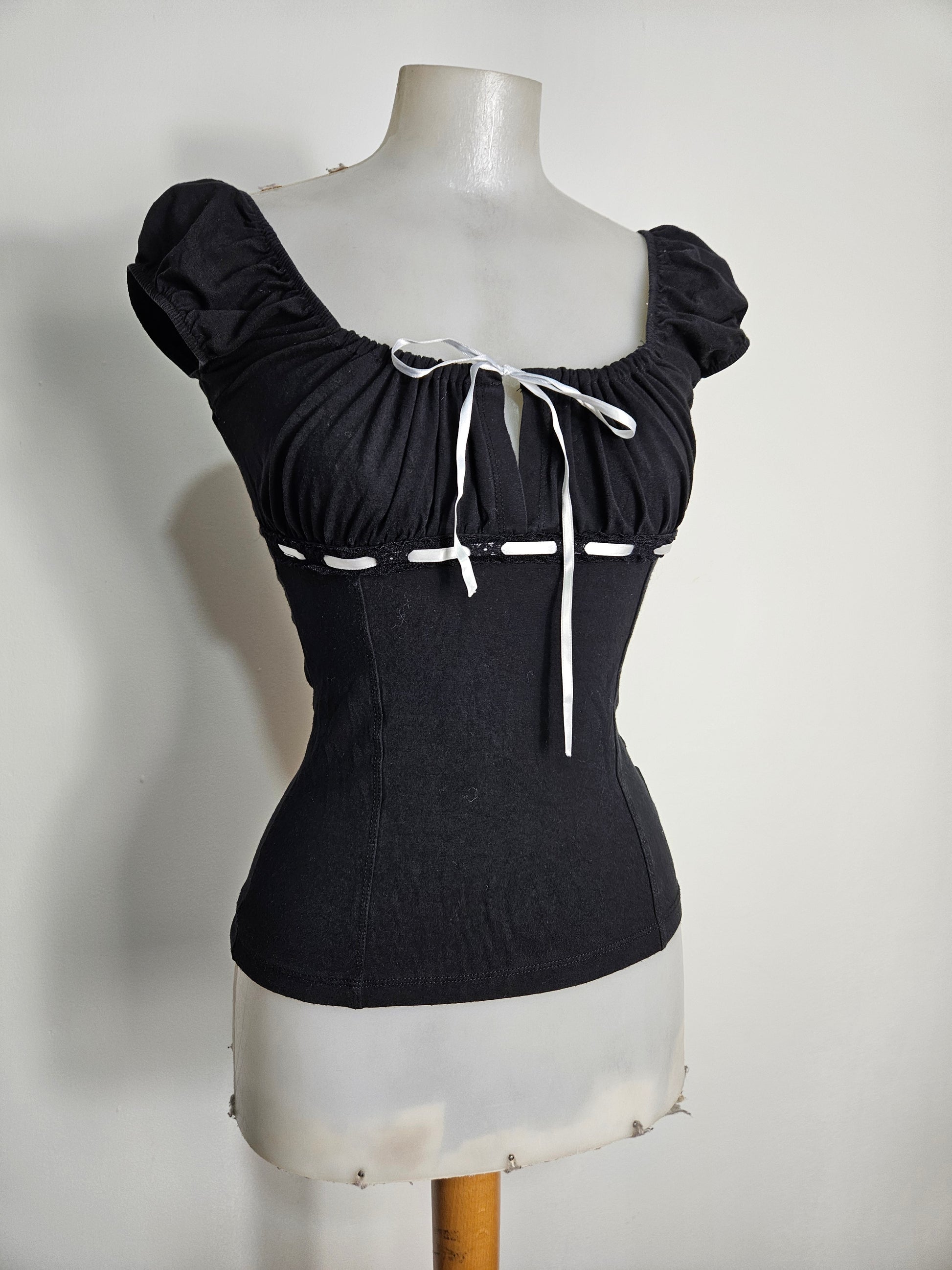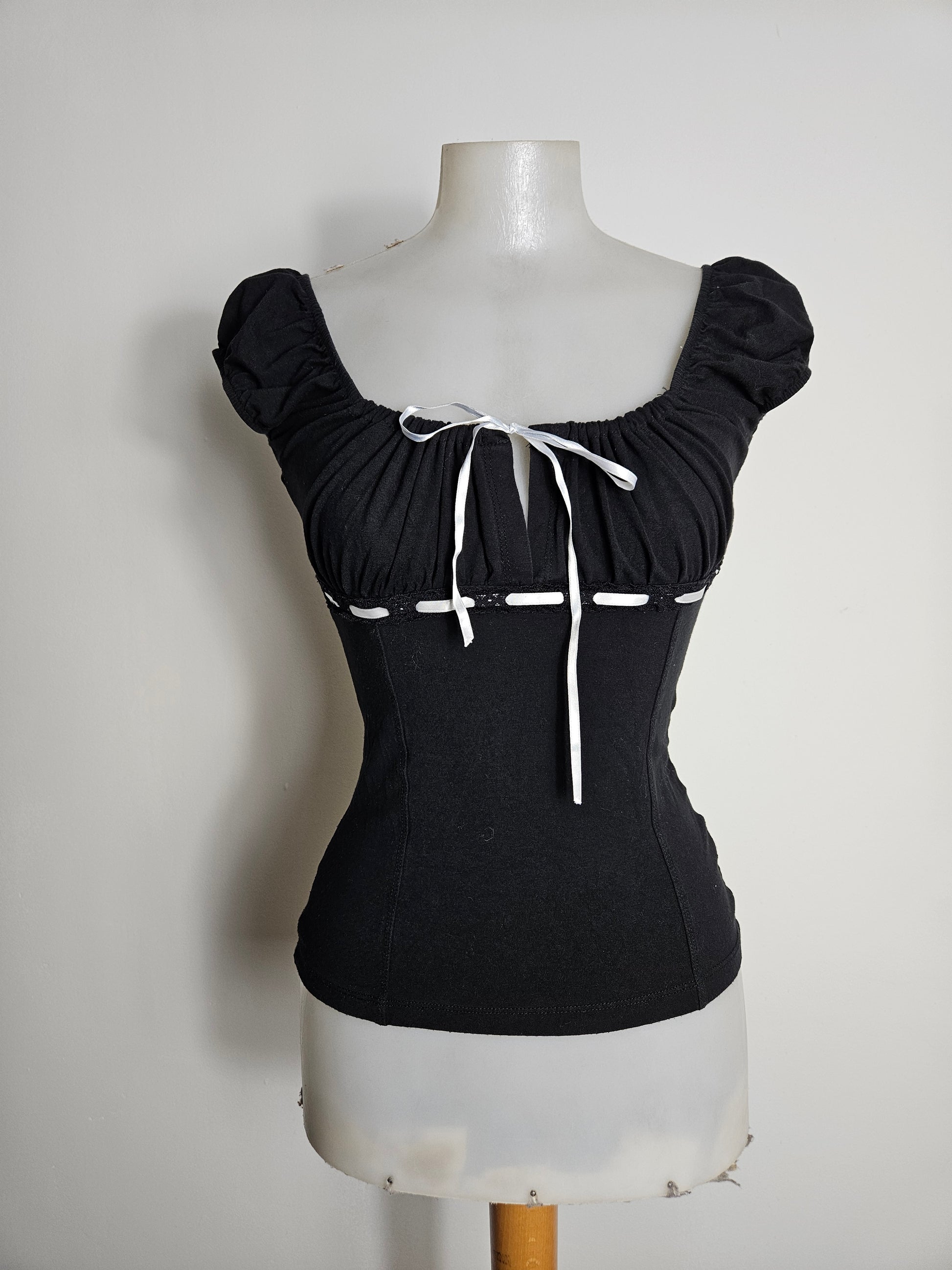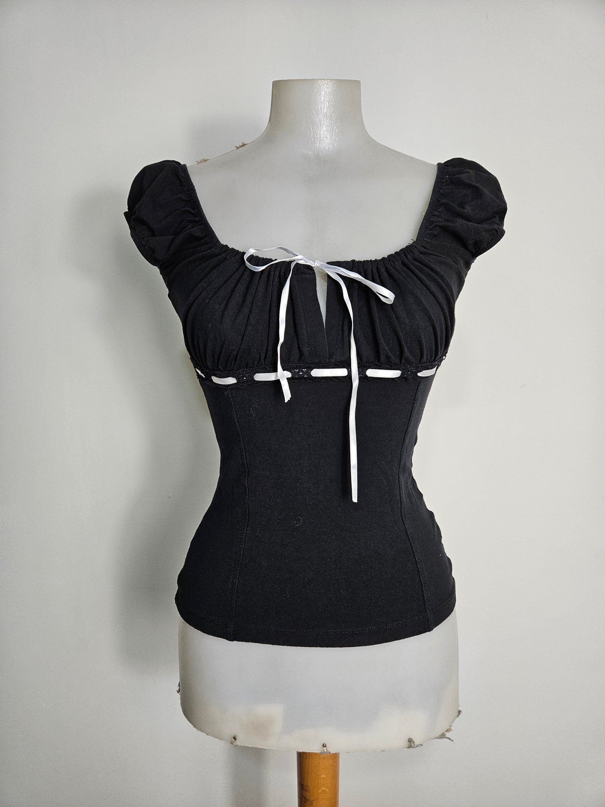 - Empiècement sous poitrine avec ruban blanc inséré dans des passants.