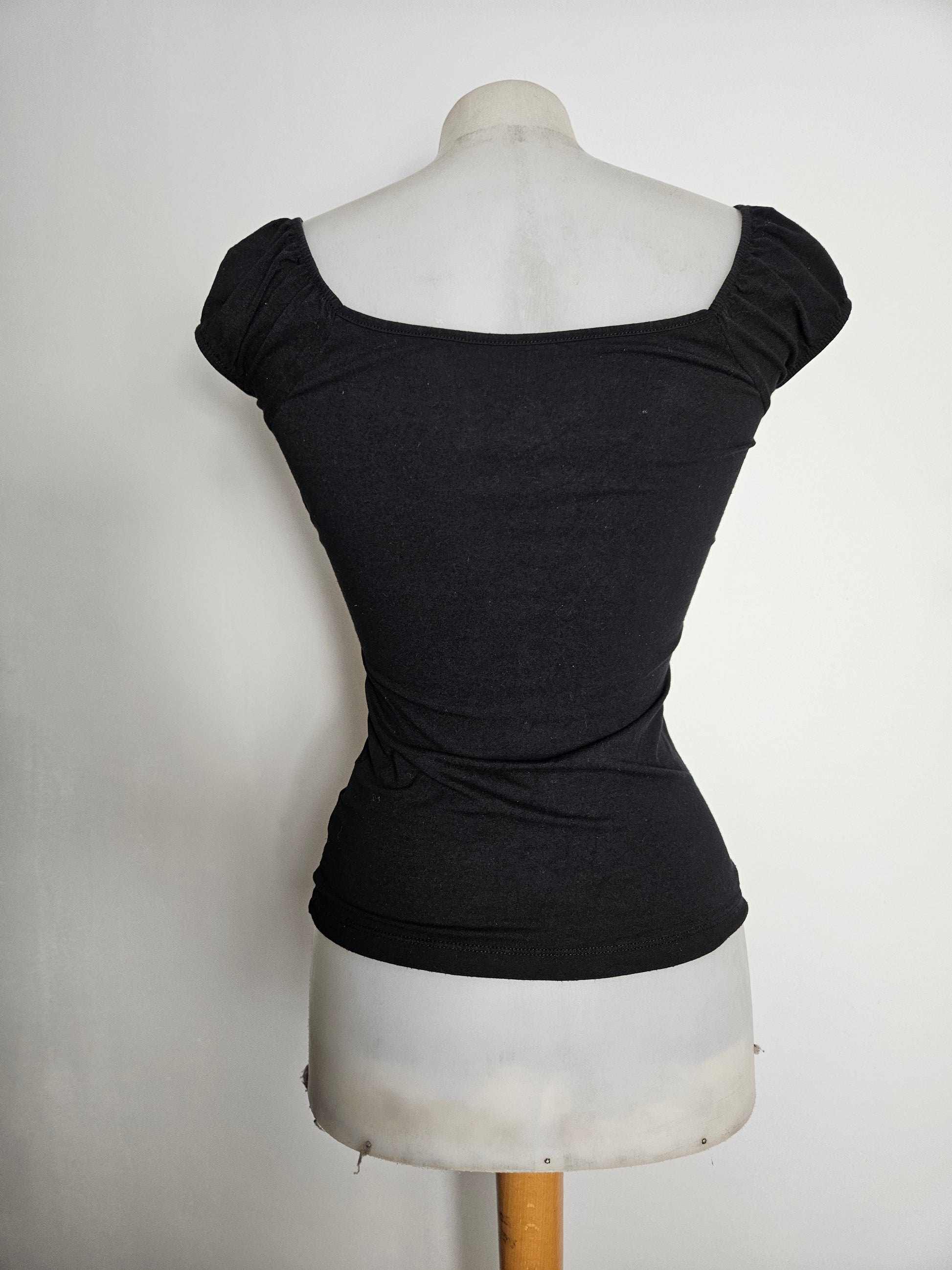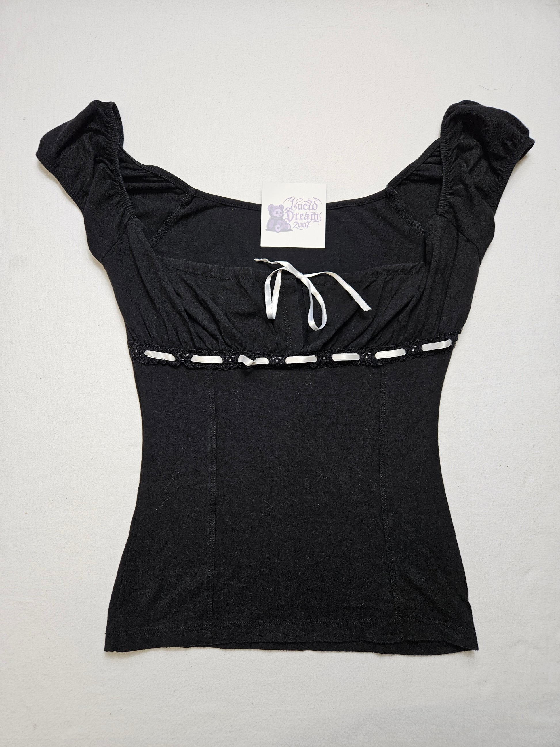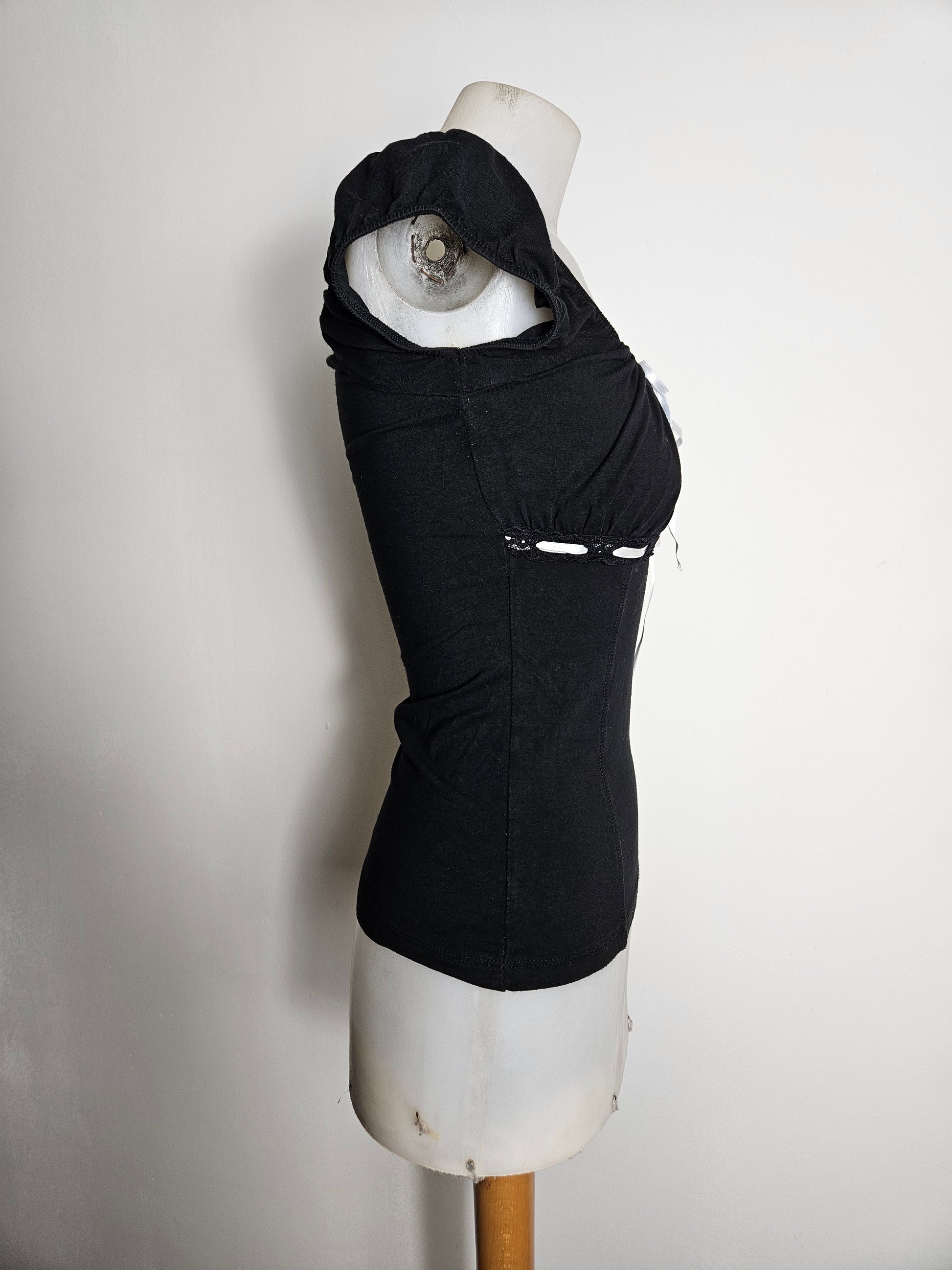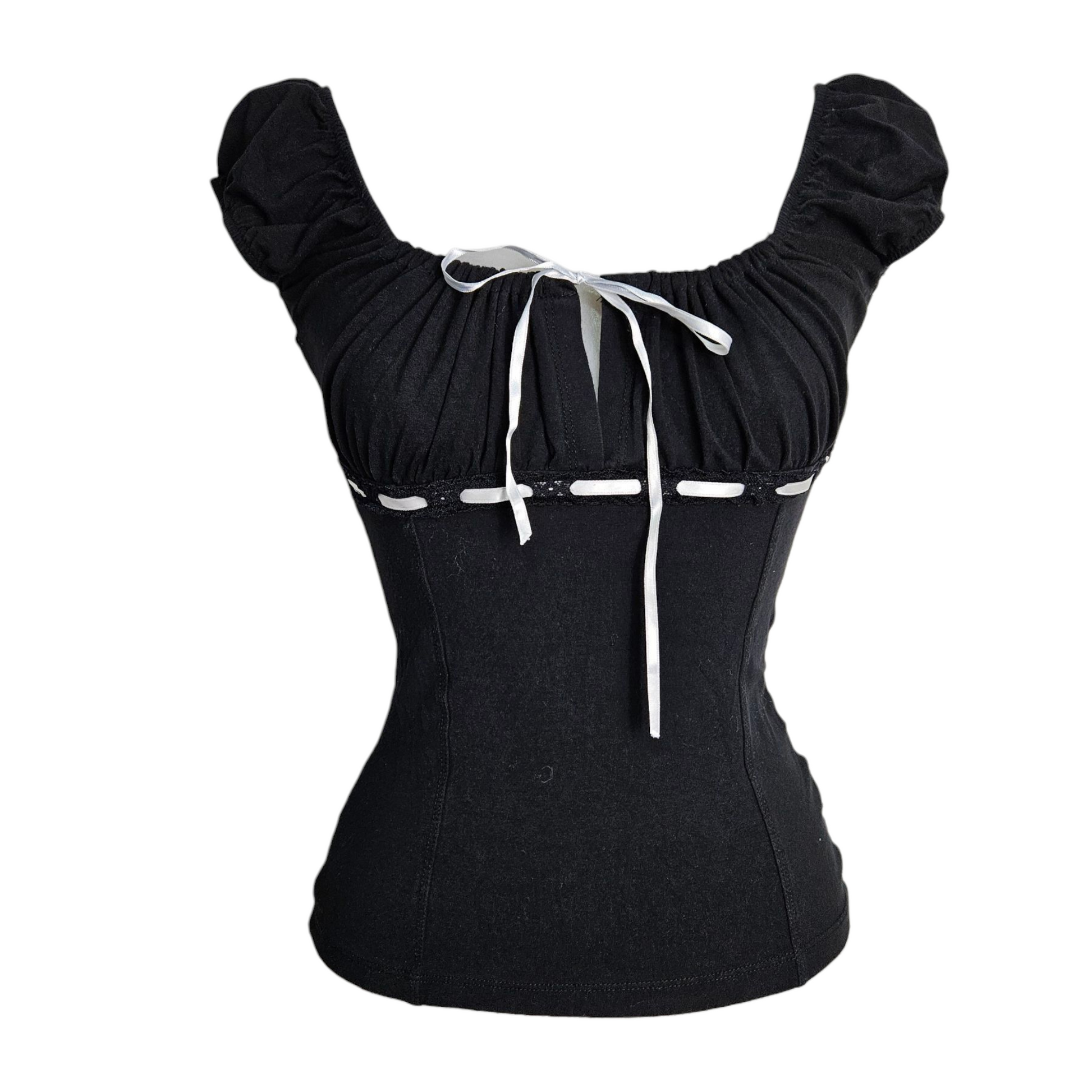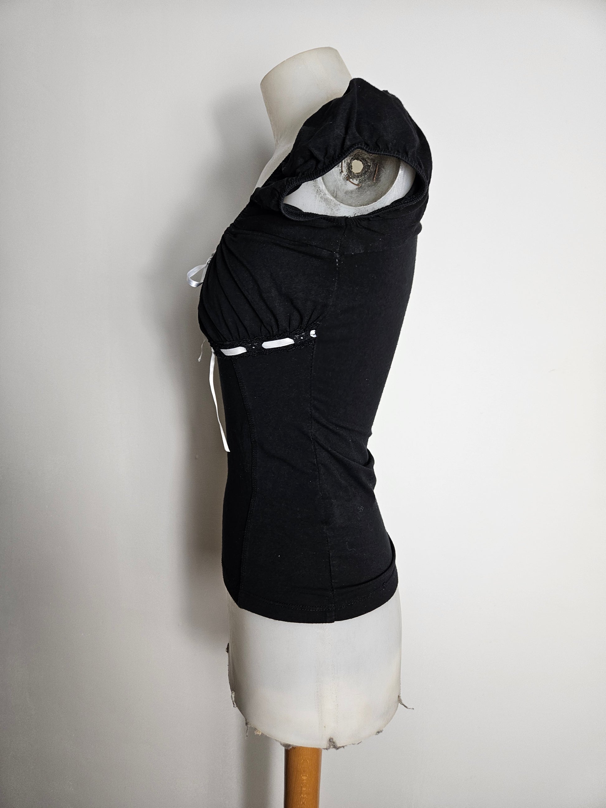 - Empiècement sous poitrine avec ruban blanc inséré dans des passants.