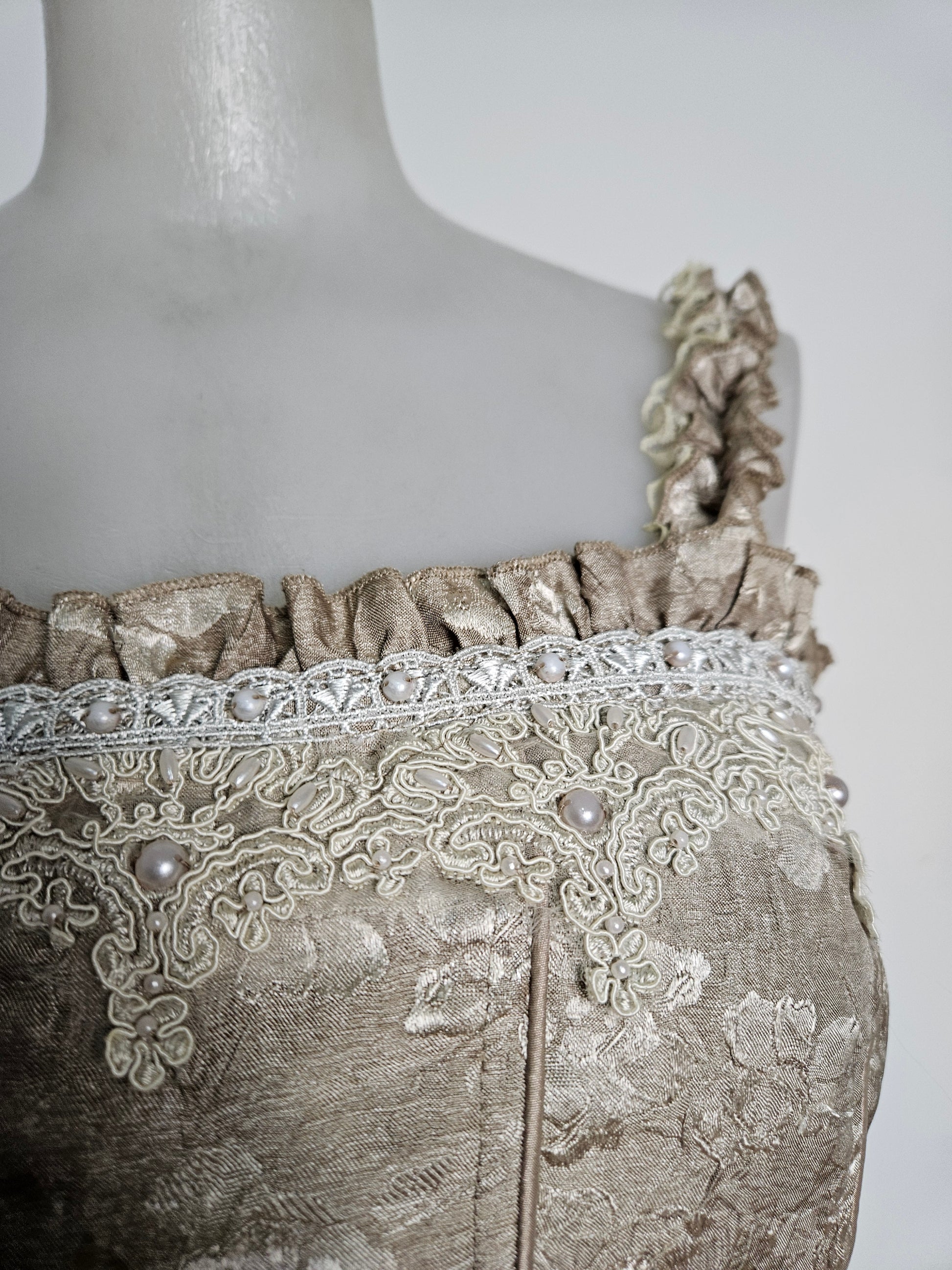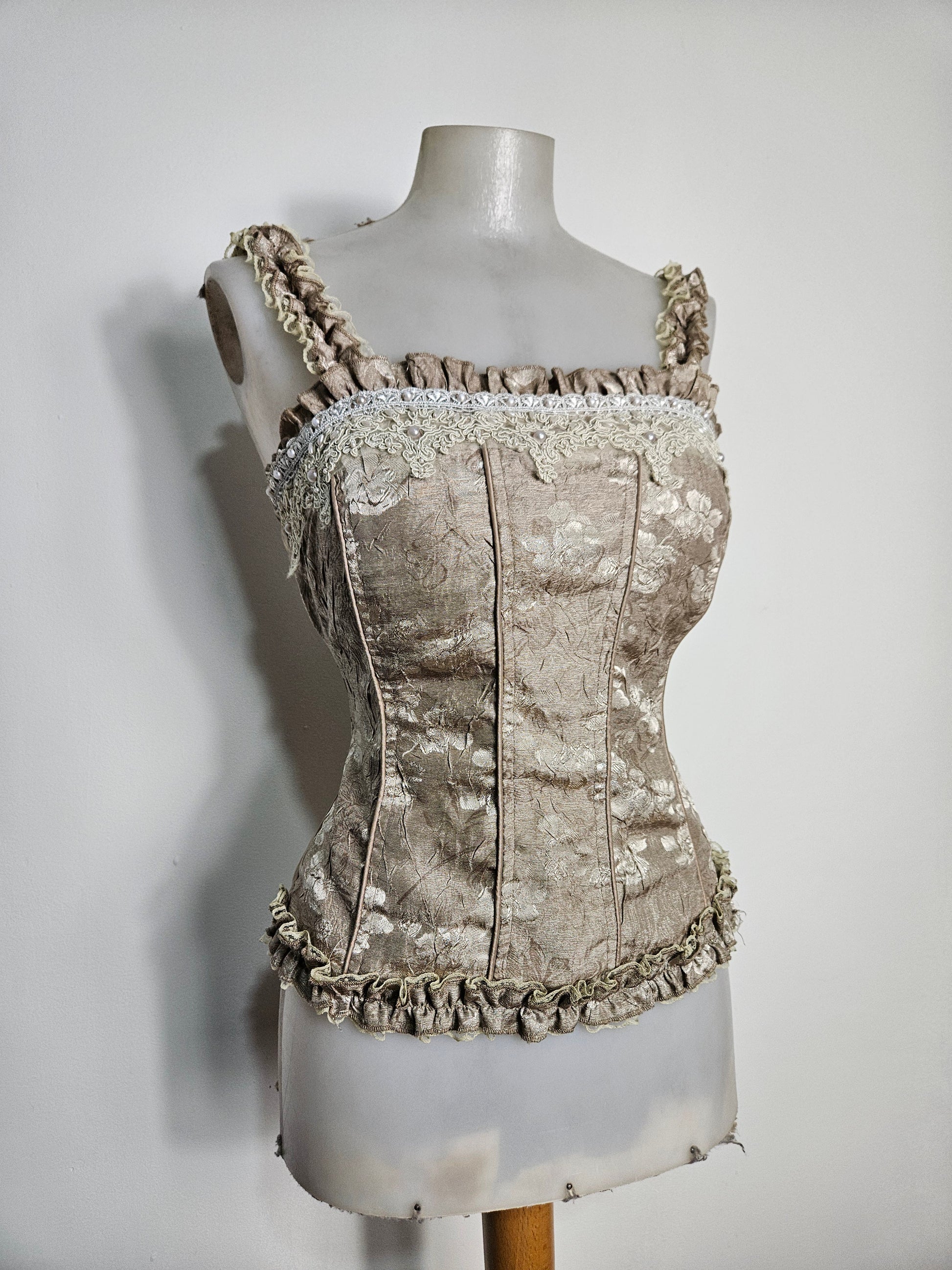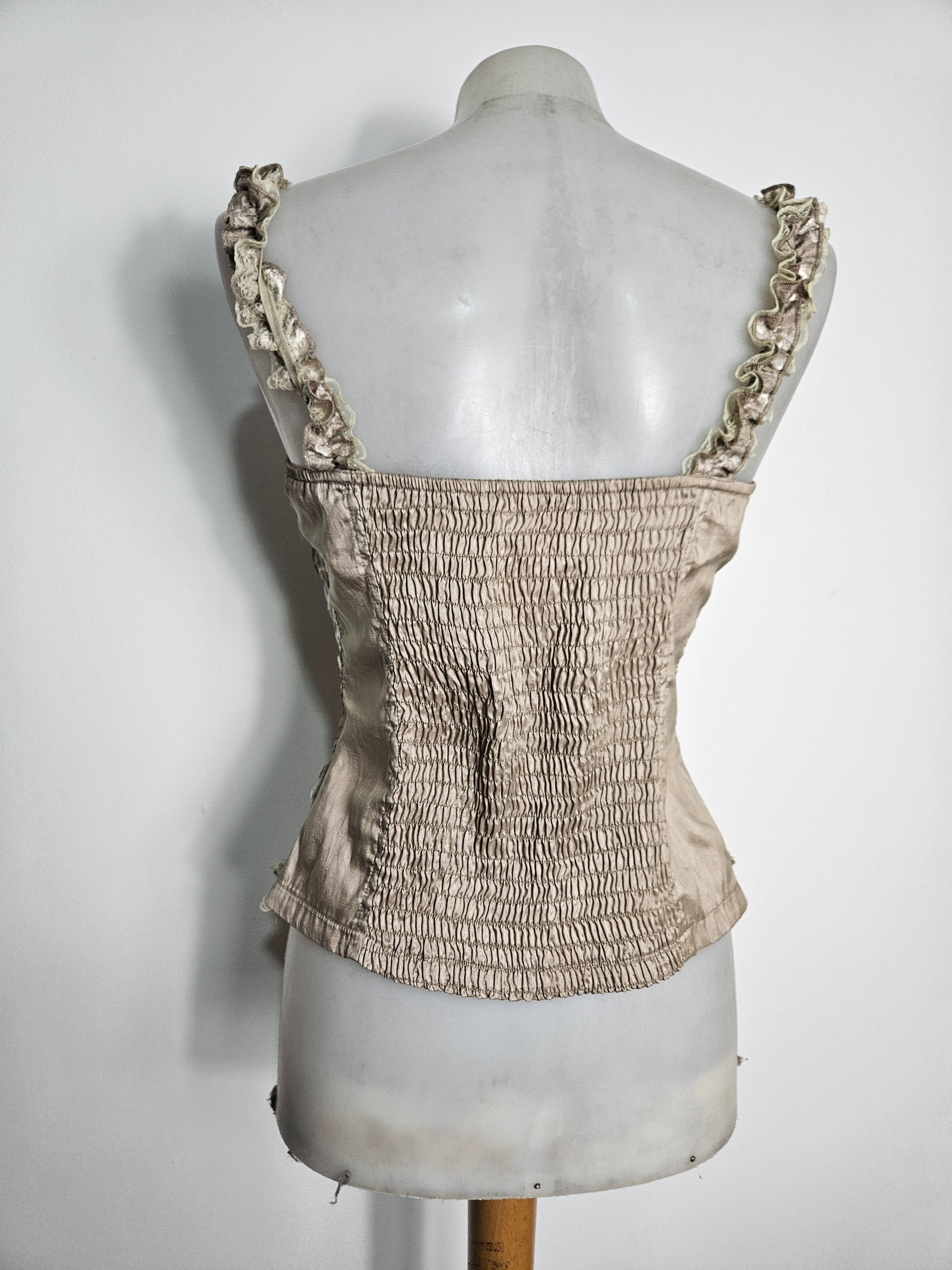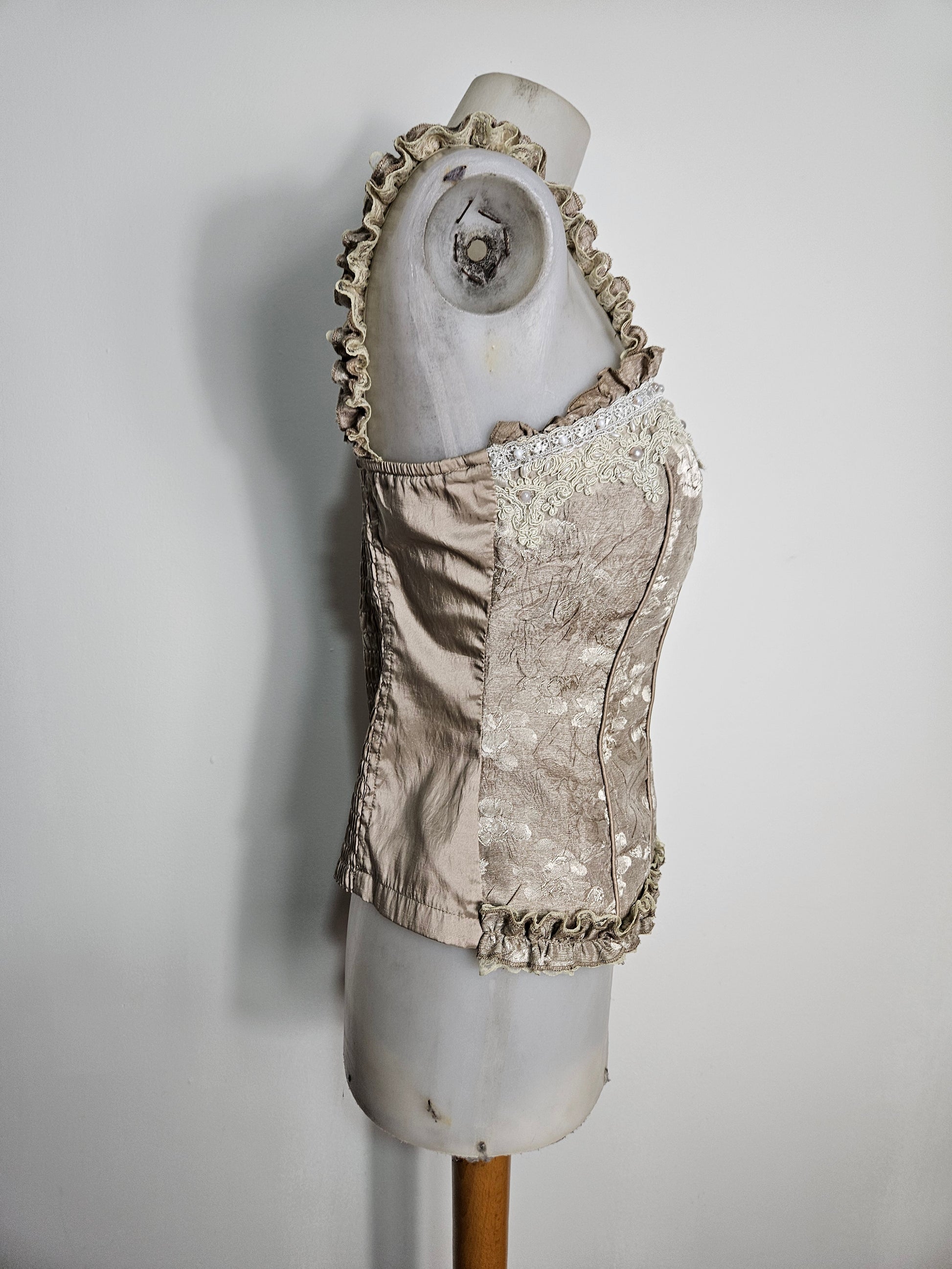 - Haut esprit corset satiné beige brodé