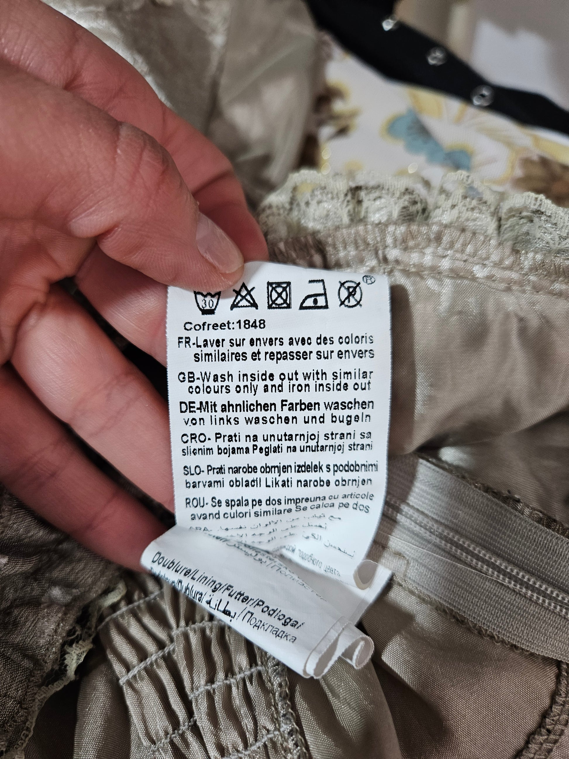 Entretien : Laver à 30 °C sur l’envers avec des coloris similaires, repasser sur l’envers, ne pas sécher en machine.