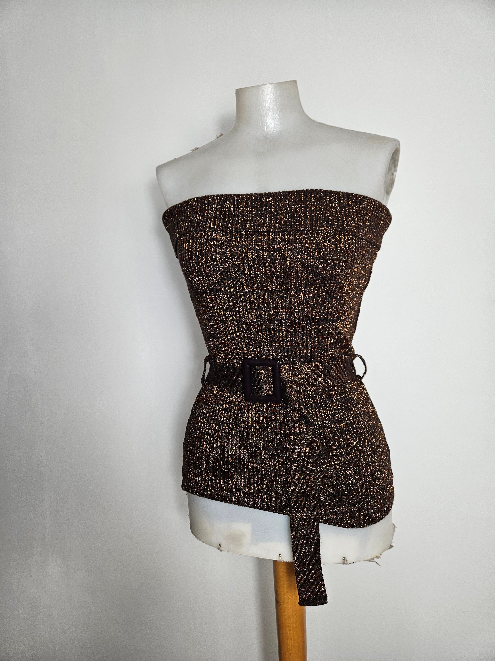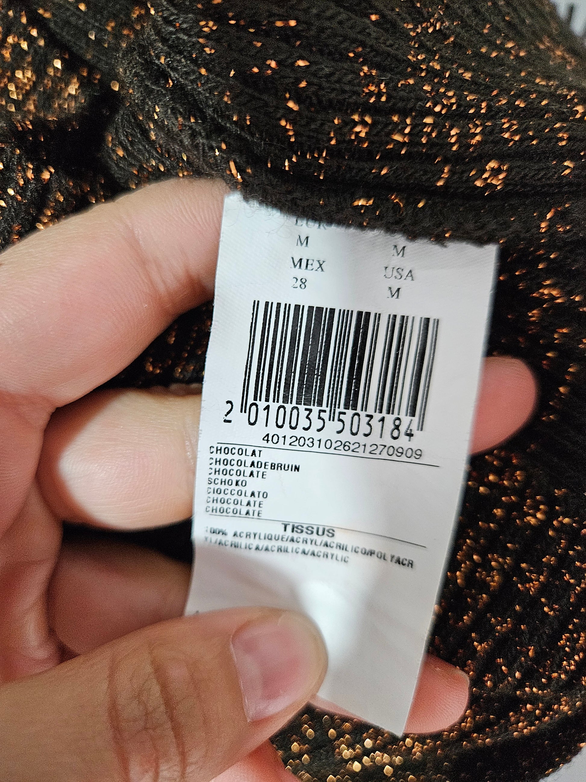 - Couleur marron chocolat avec fils lurex cuivrés.