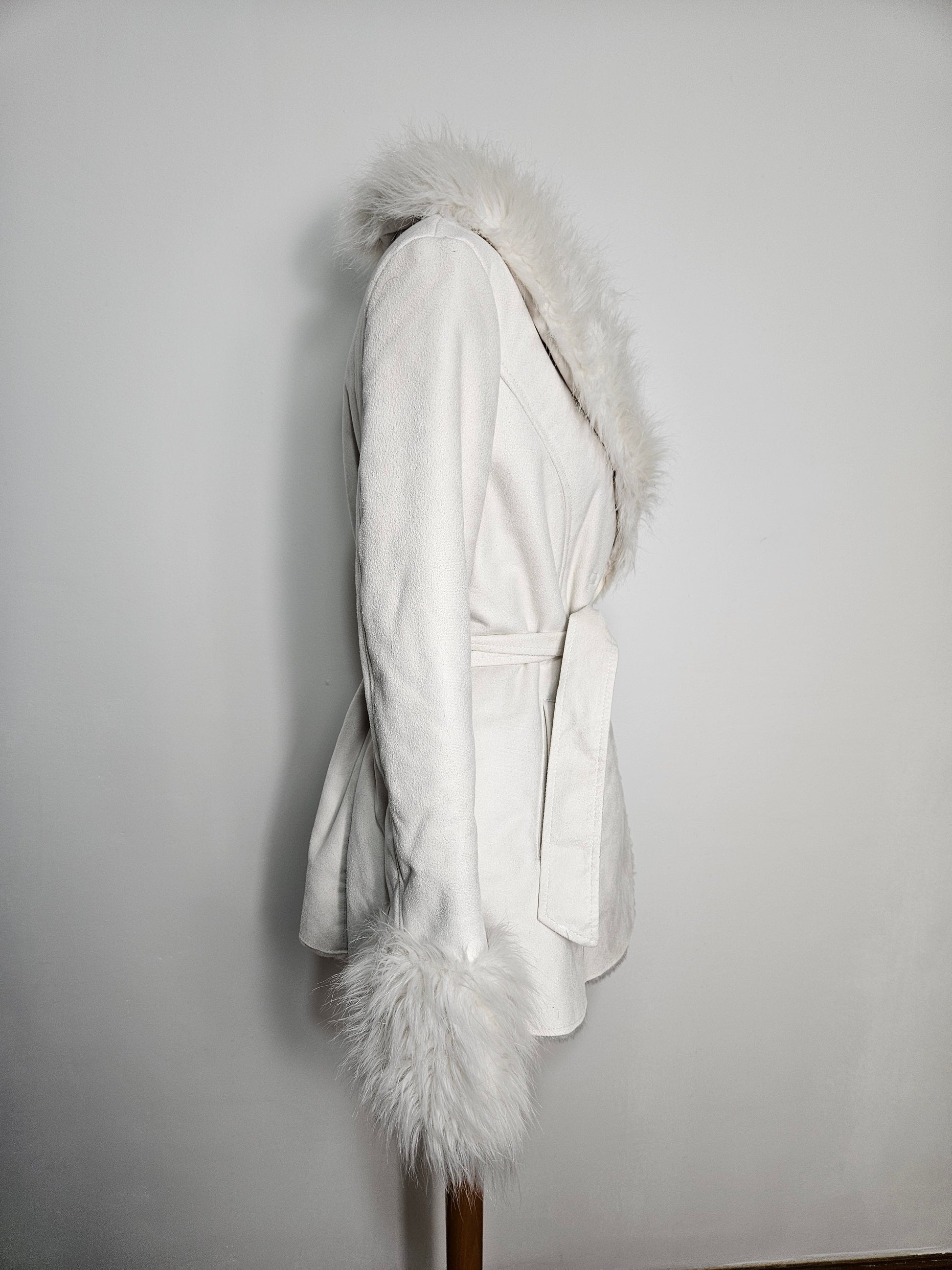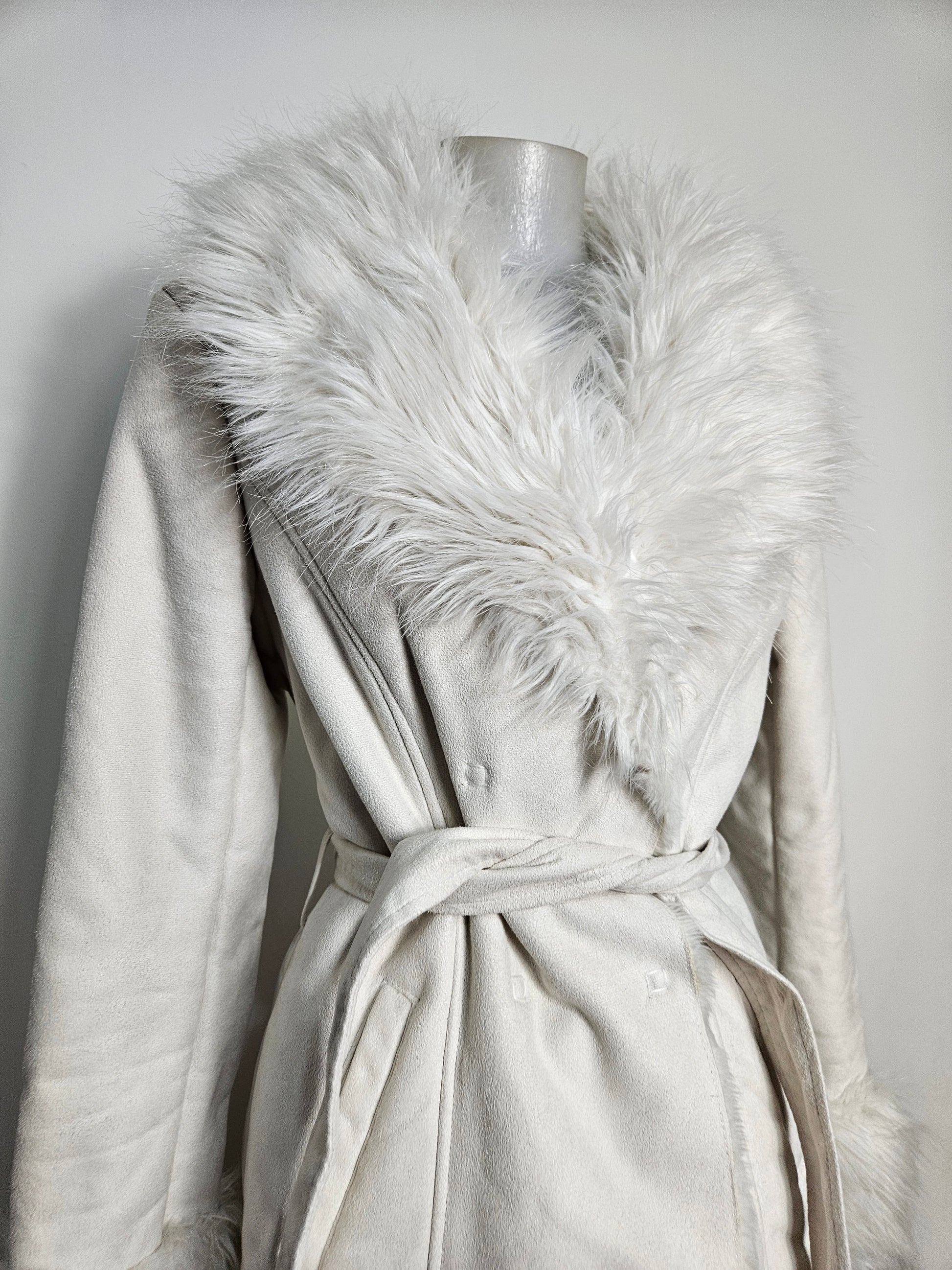- Manteau court écru / blanc casséà fausse fourrure blanche