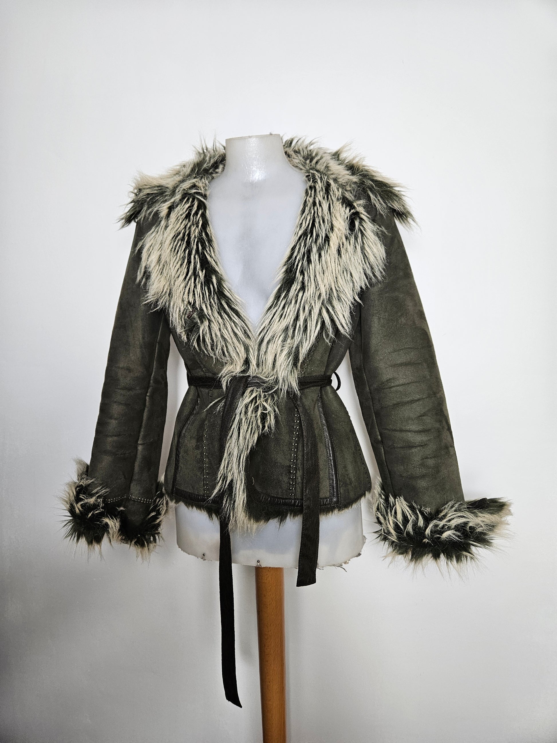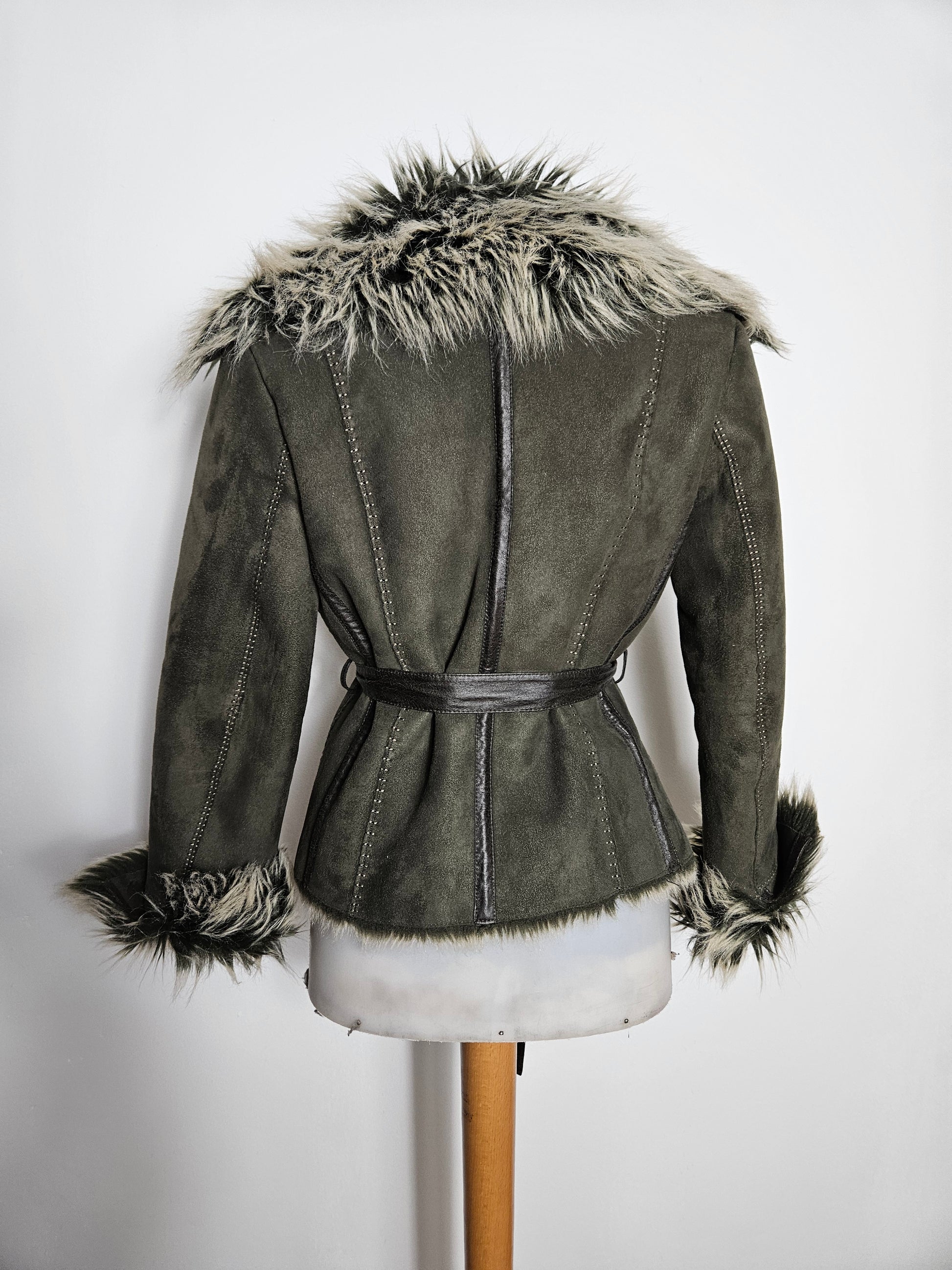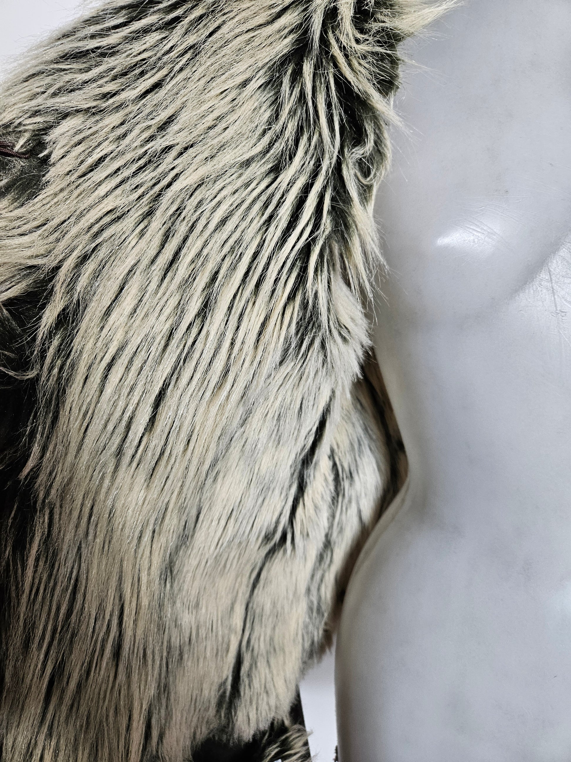 - Bordures en fausse fourrure longue au col, poignets et ourlet