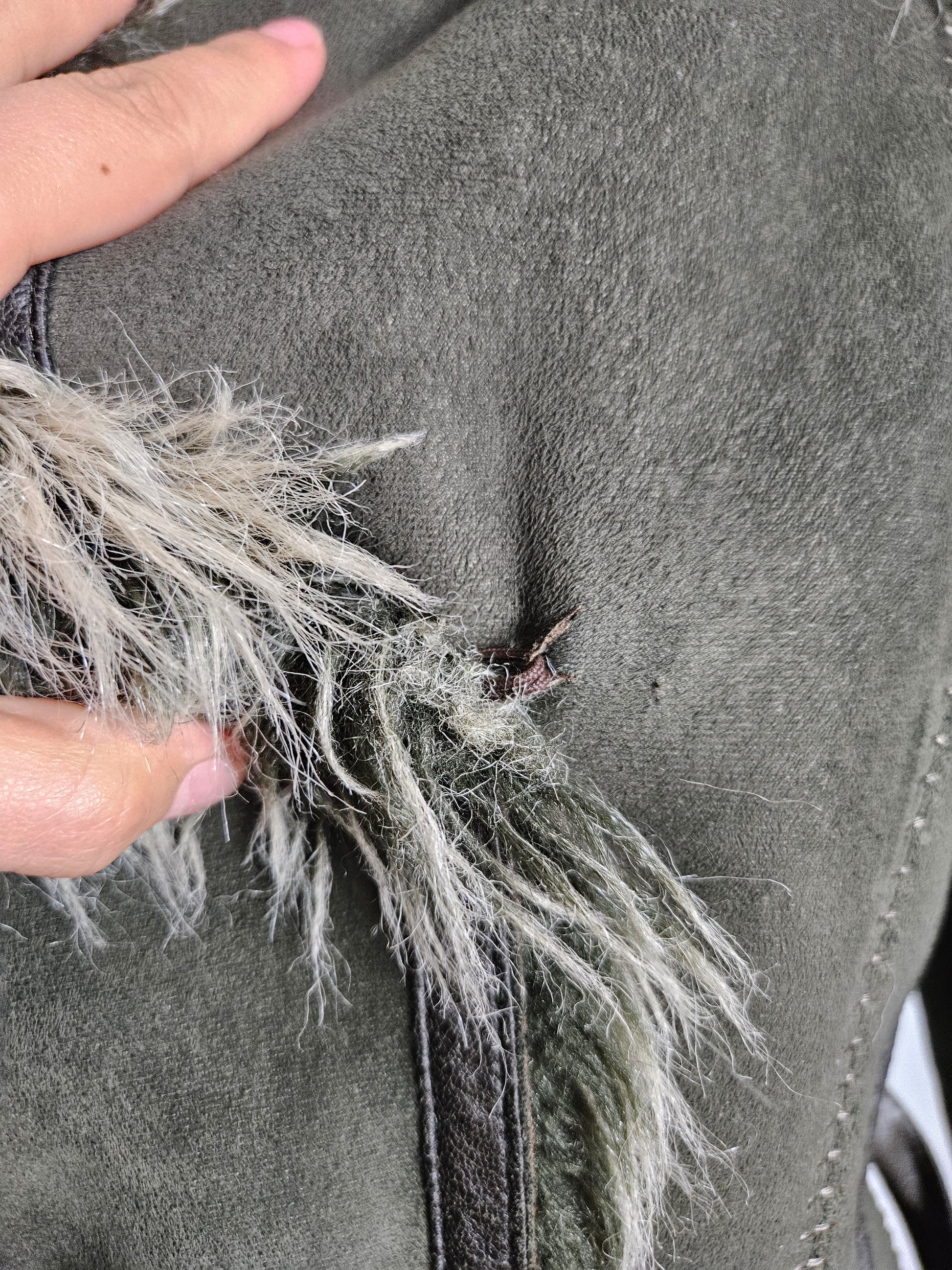 - Kaki foncé avec intérieur et bords en fausse fourrure beige et noire