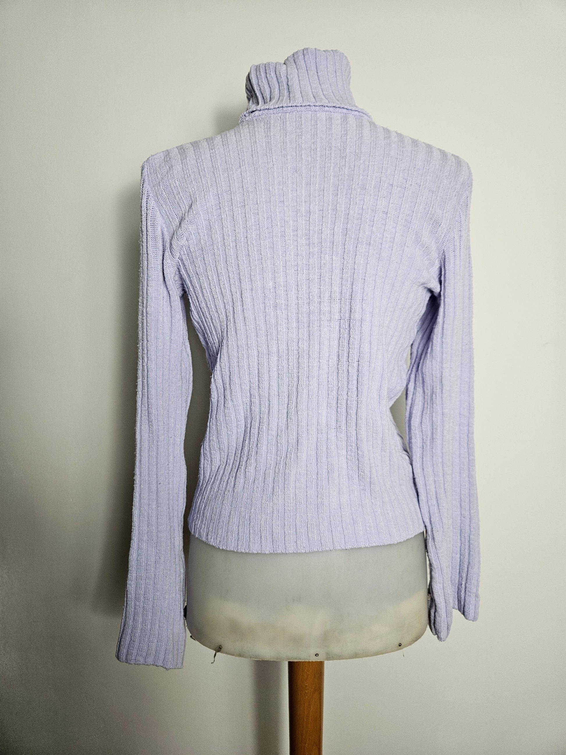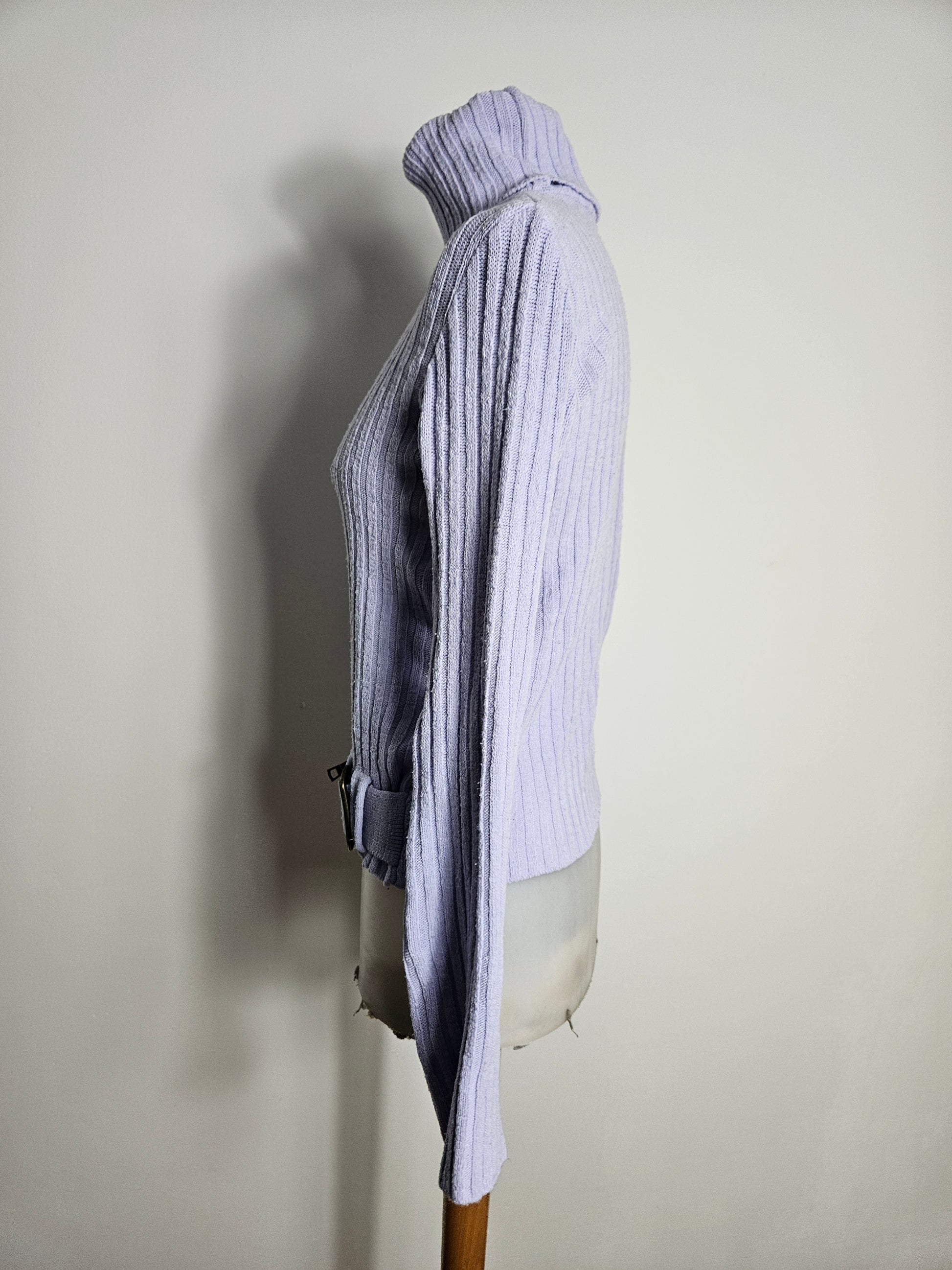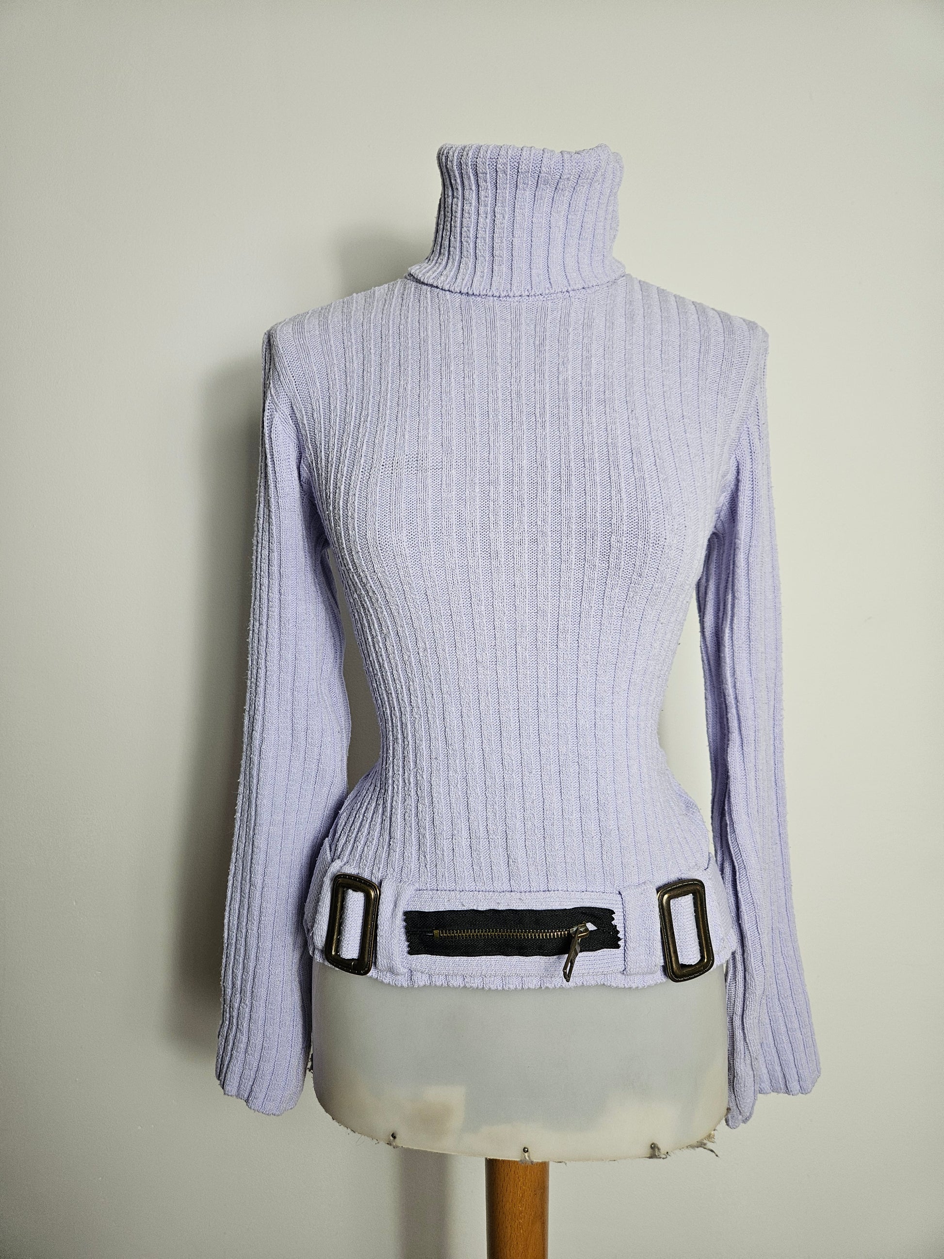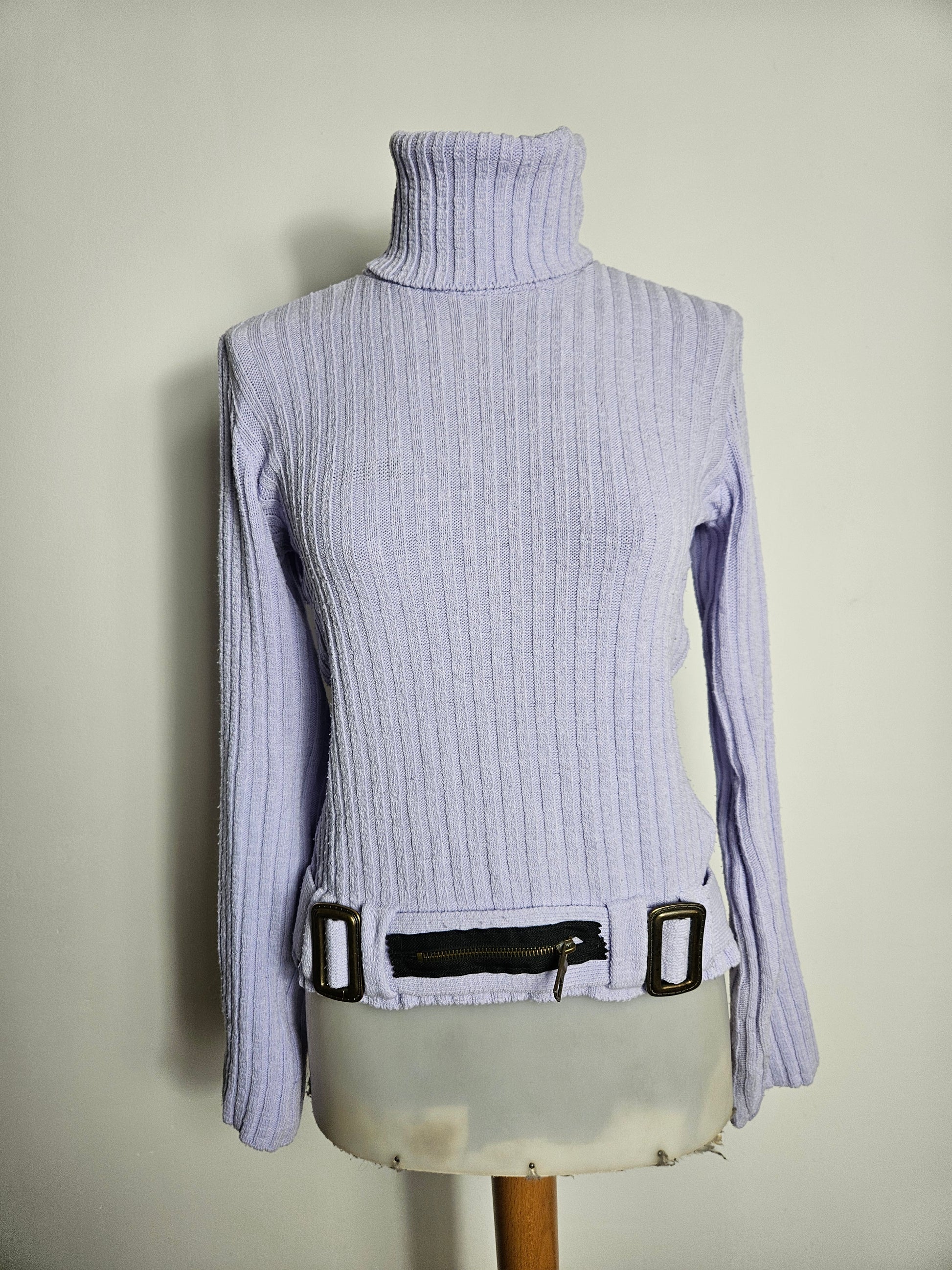 - Pull col roulé lilas avec ceinture et poche zippée