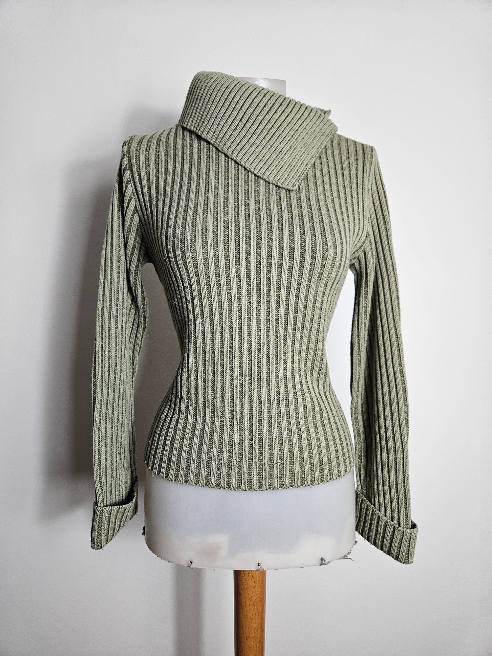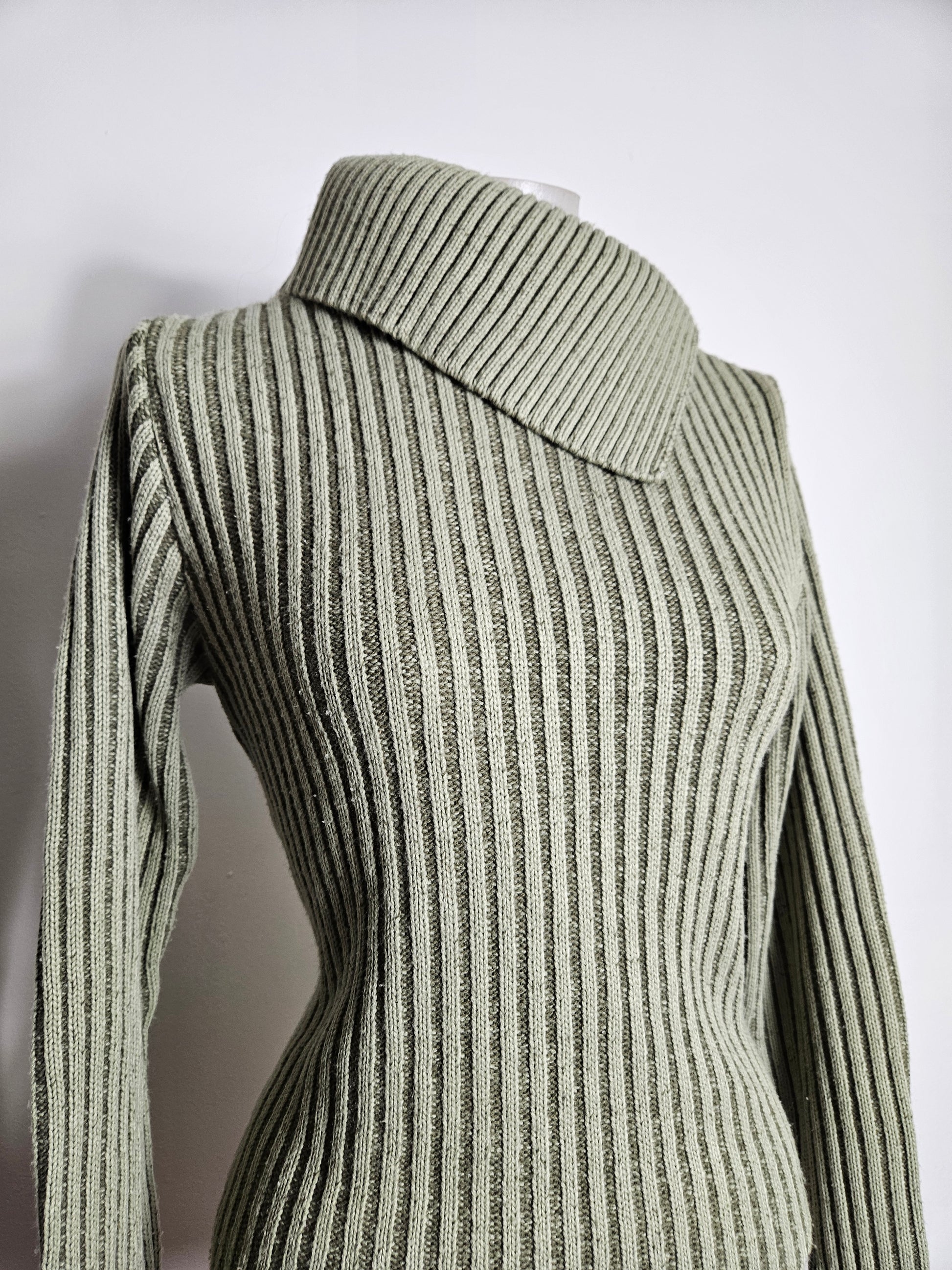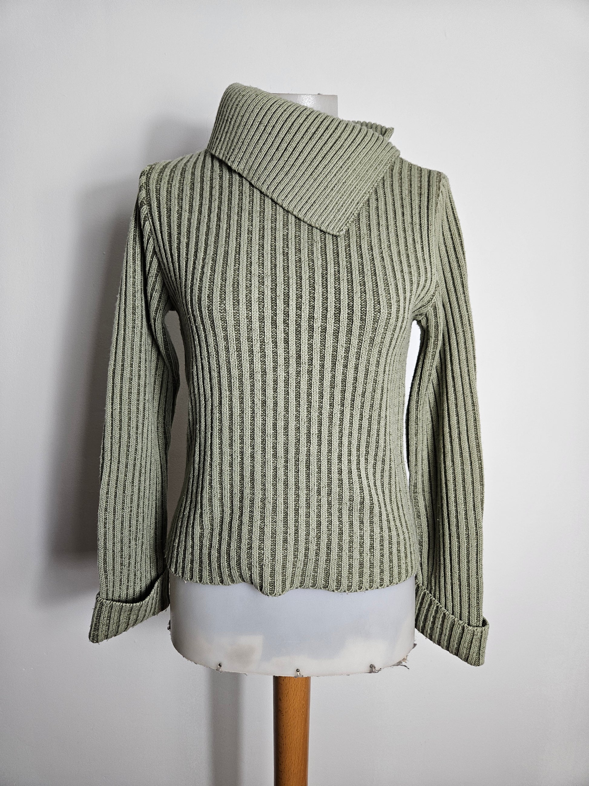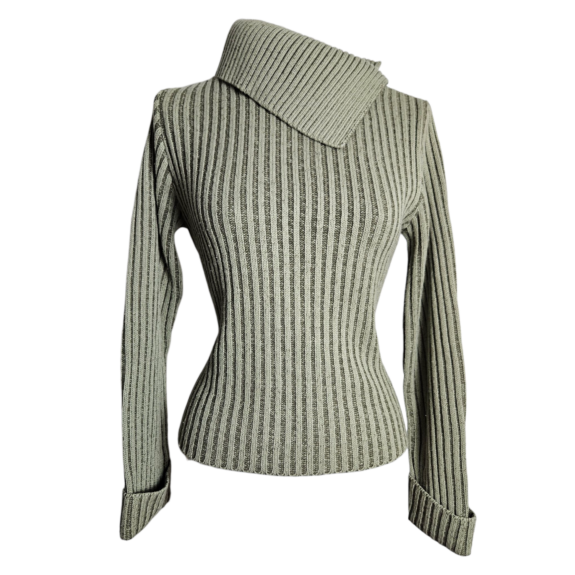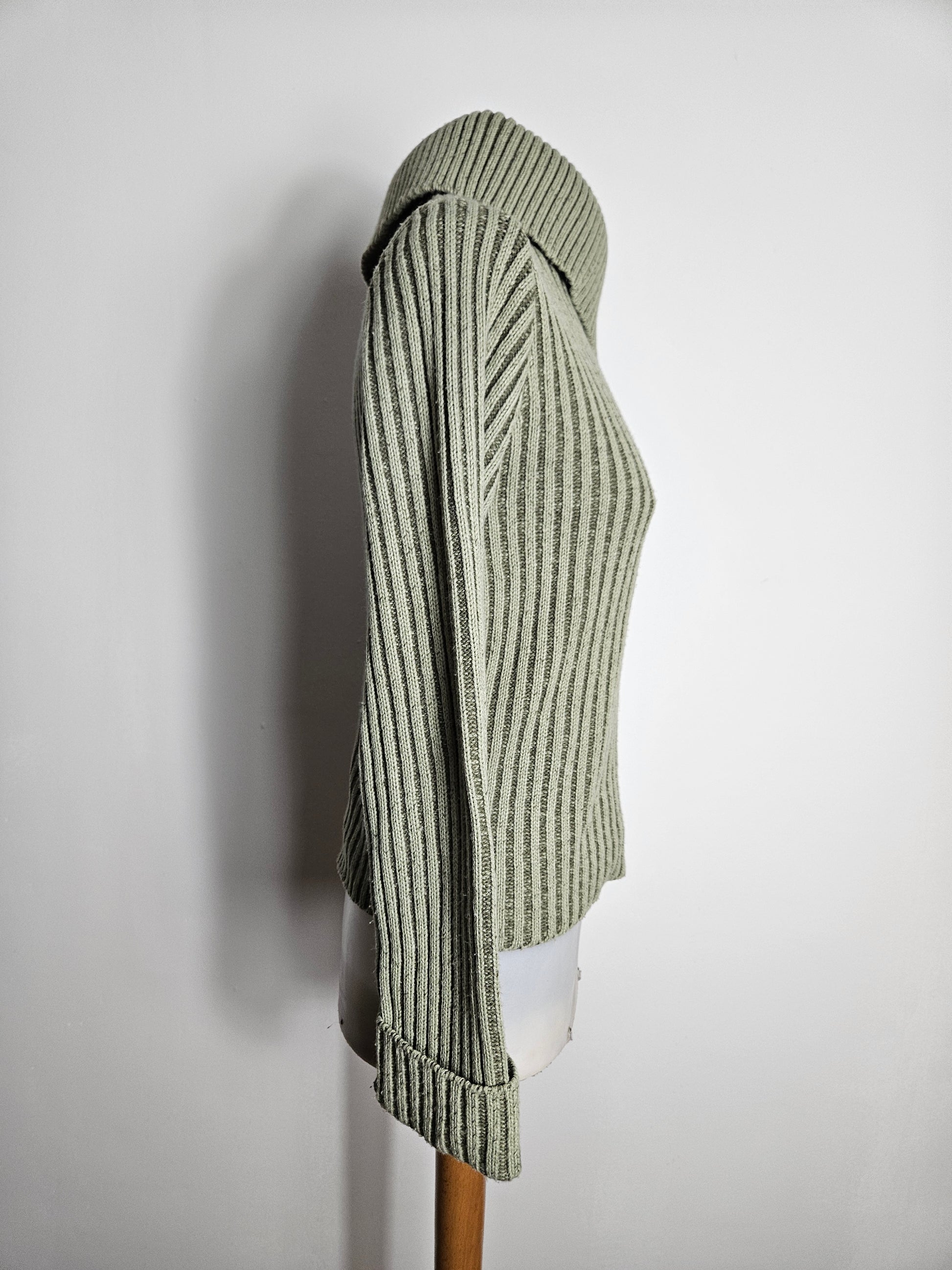 - Pull kaki côtelé à col large asymétrique