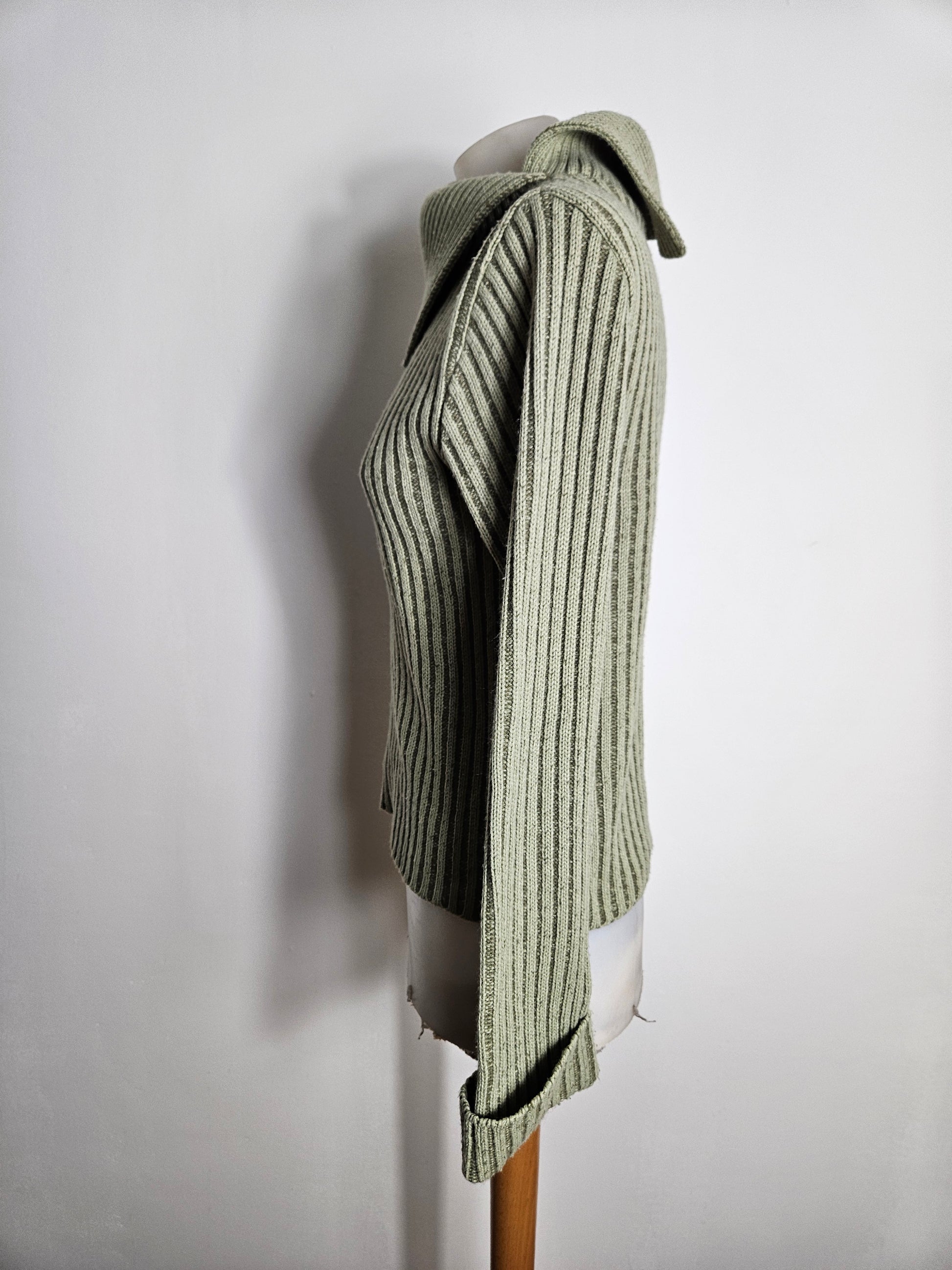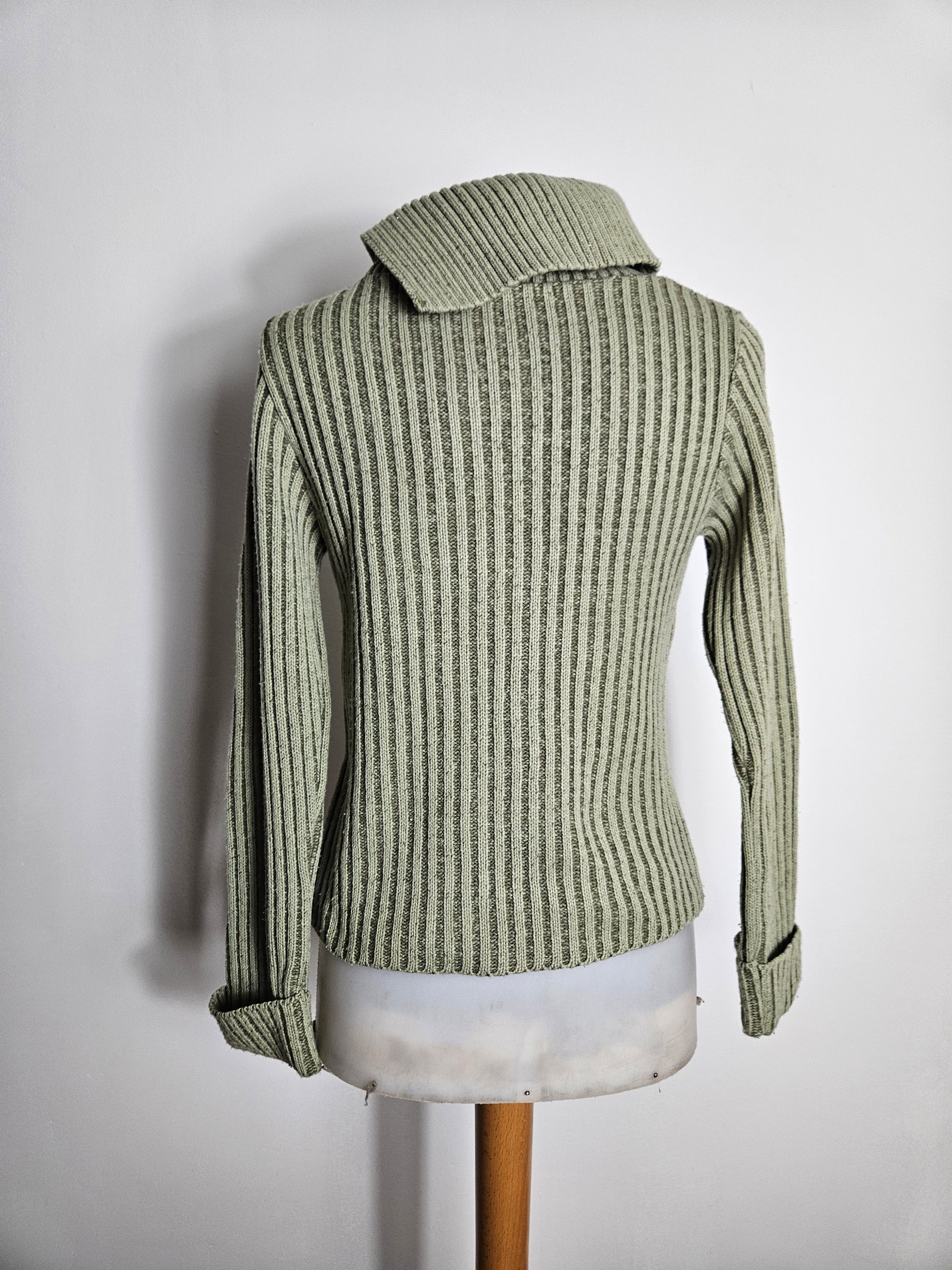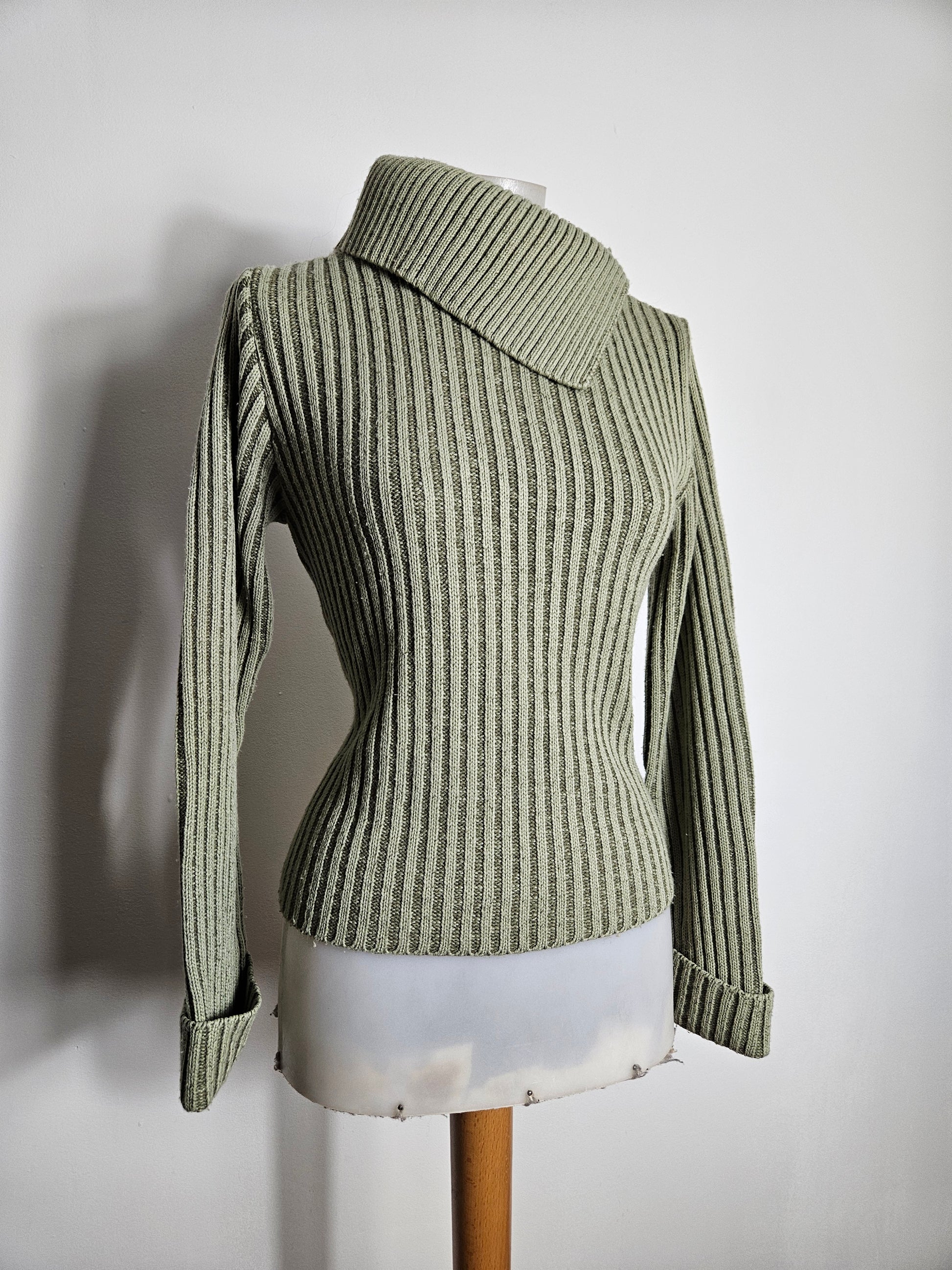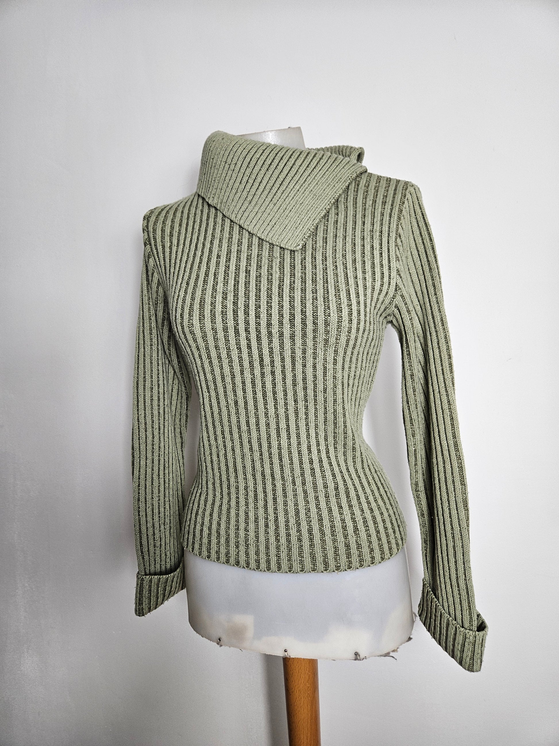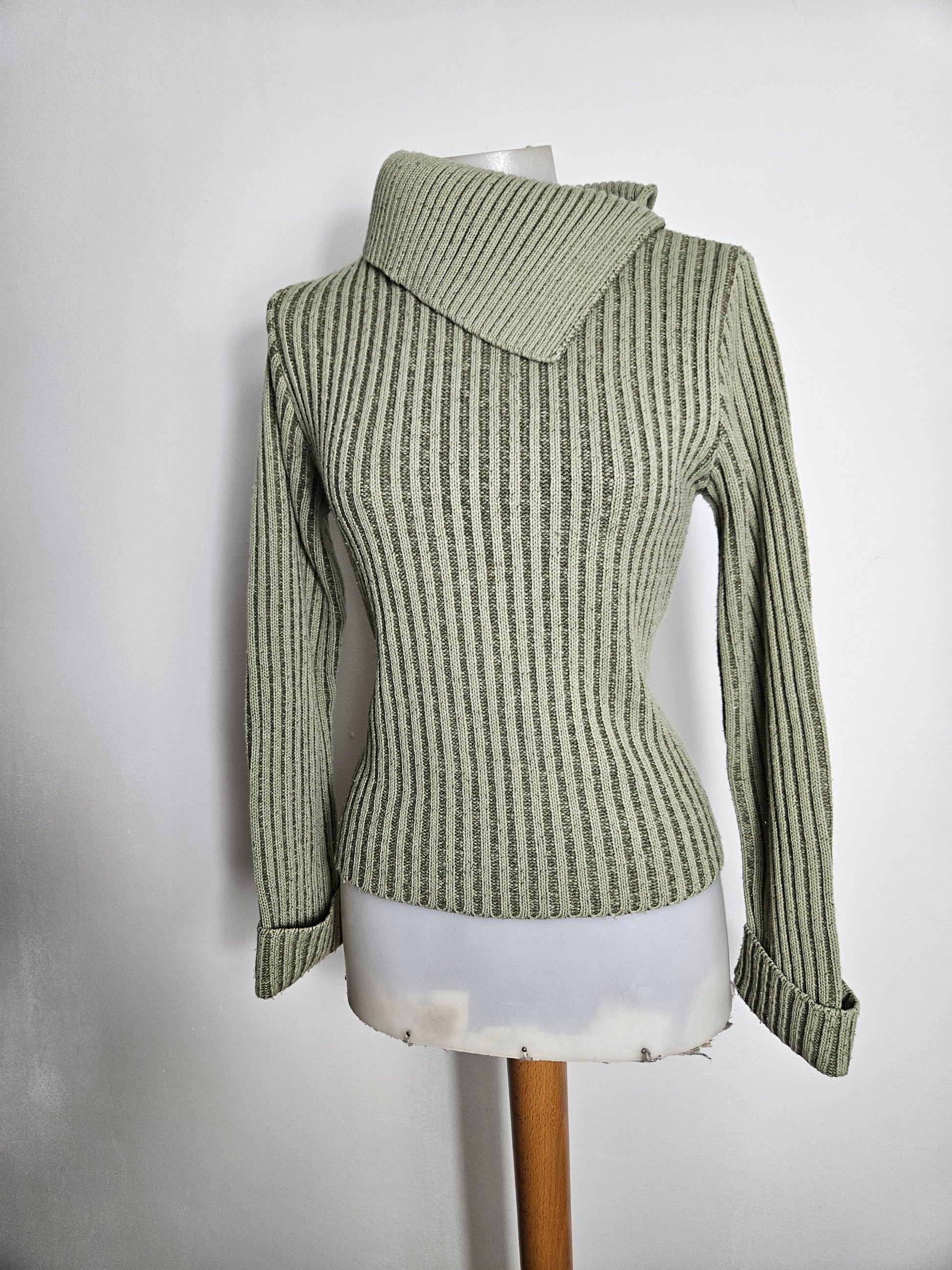 - Pull kaki côtelé à col large asymétrique