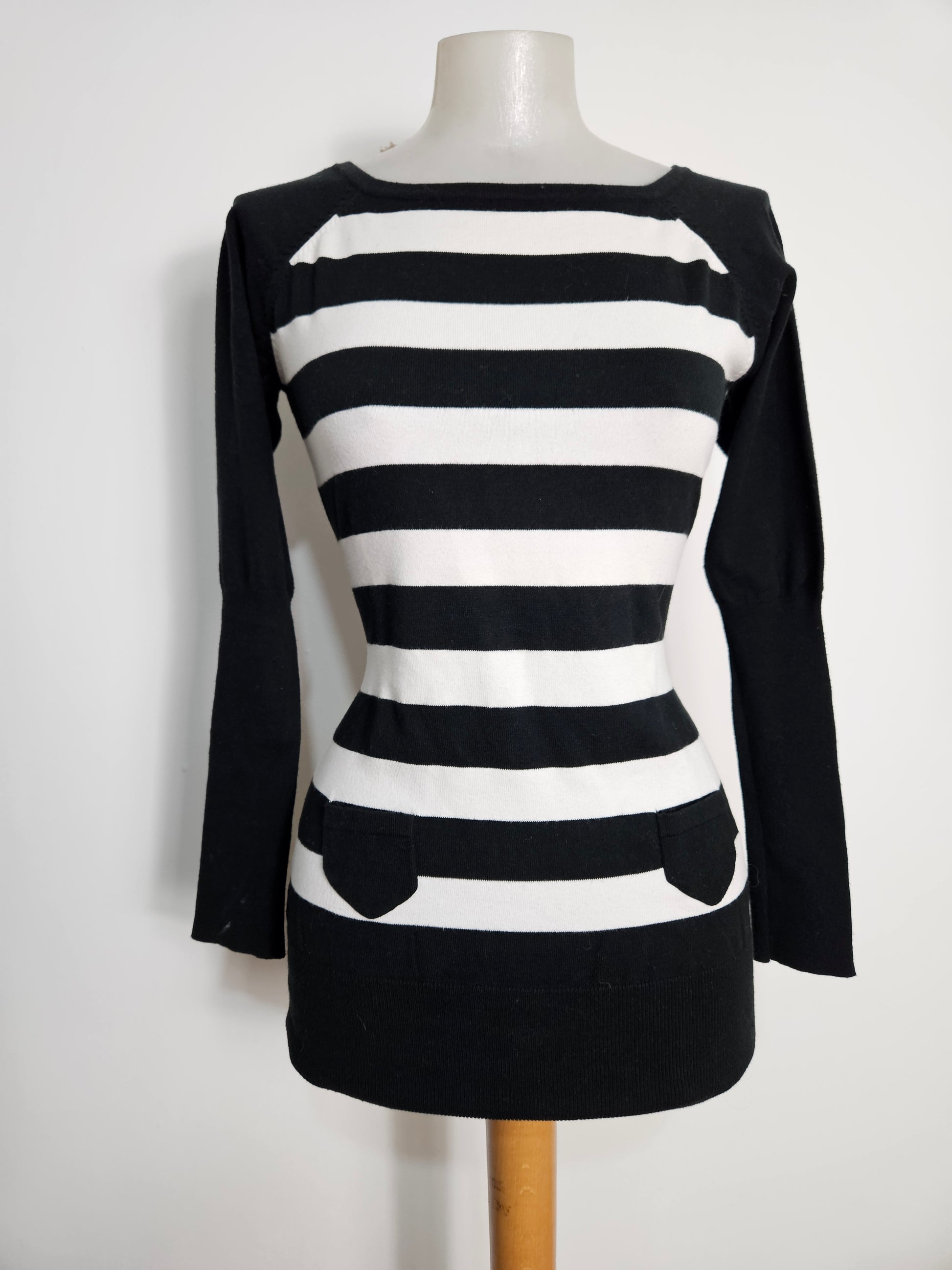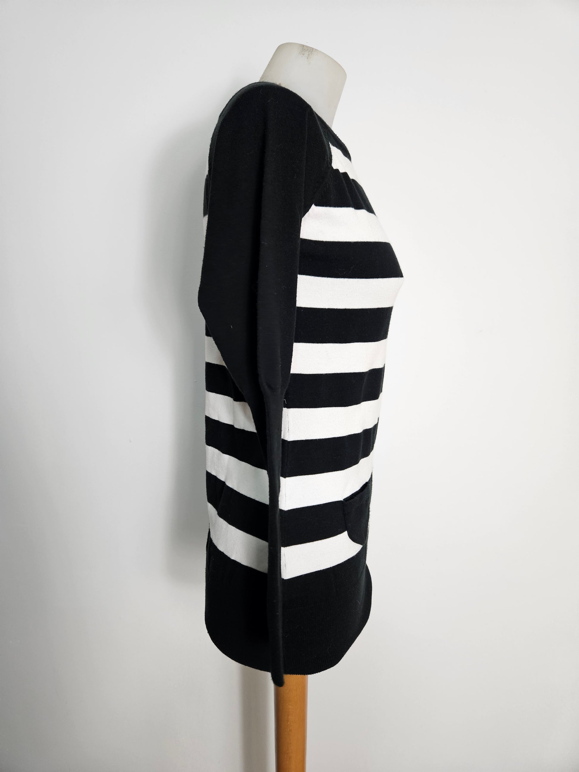 - Pull rayé noir et blanc à col droit haut