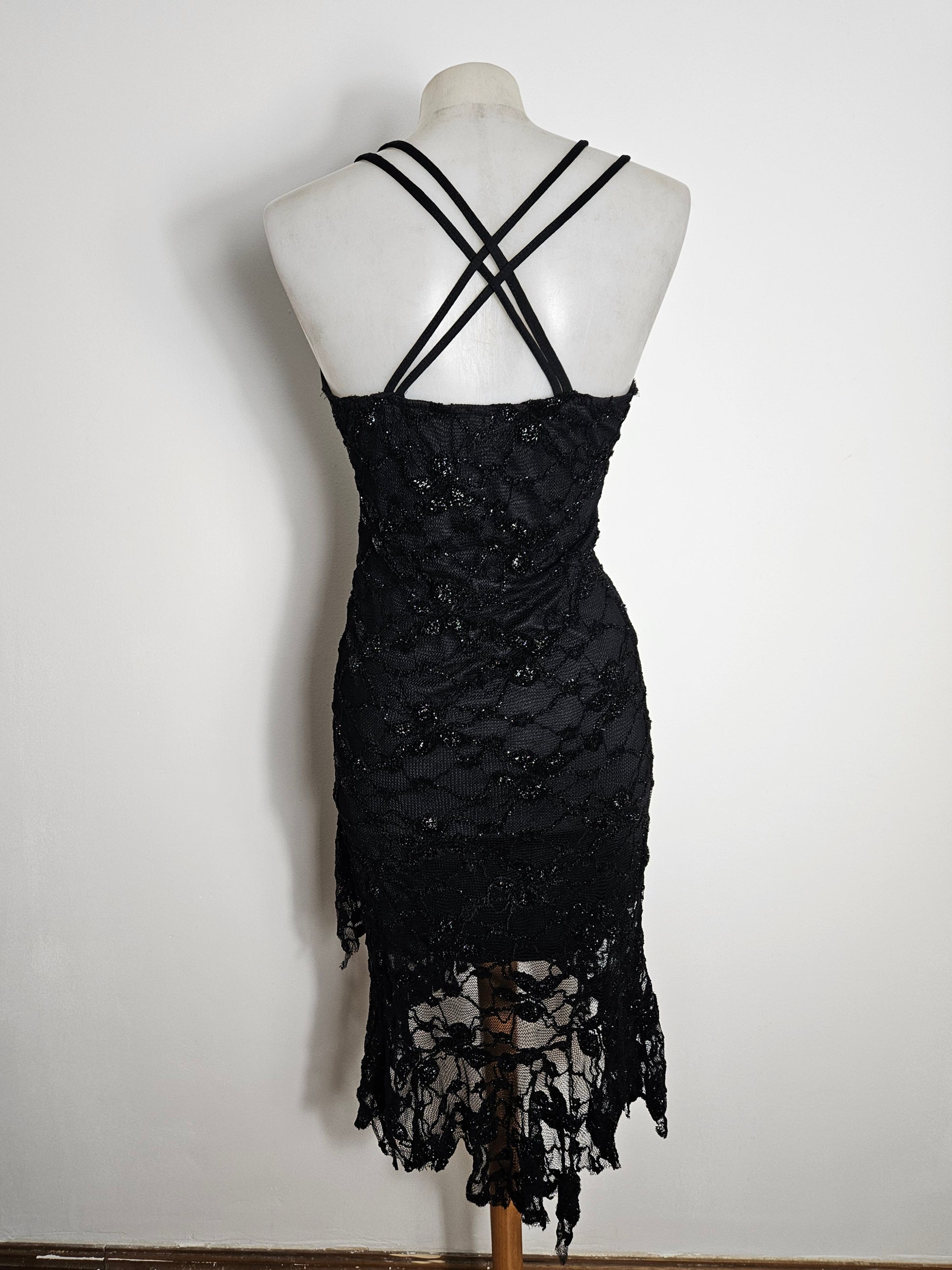 - Tissu en dentelle avec motifs floraux et fil métallisé.