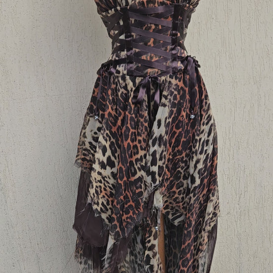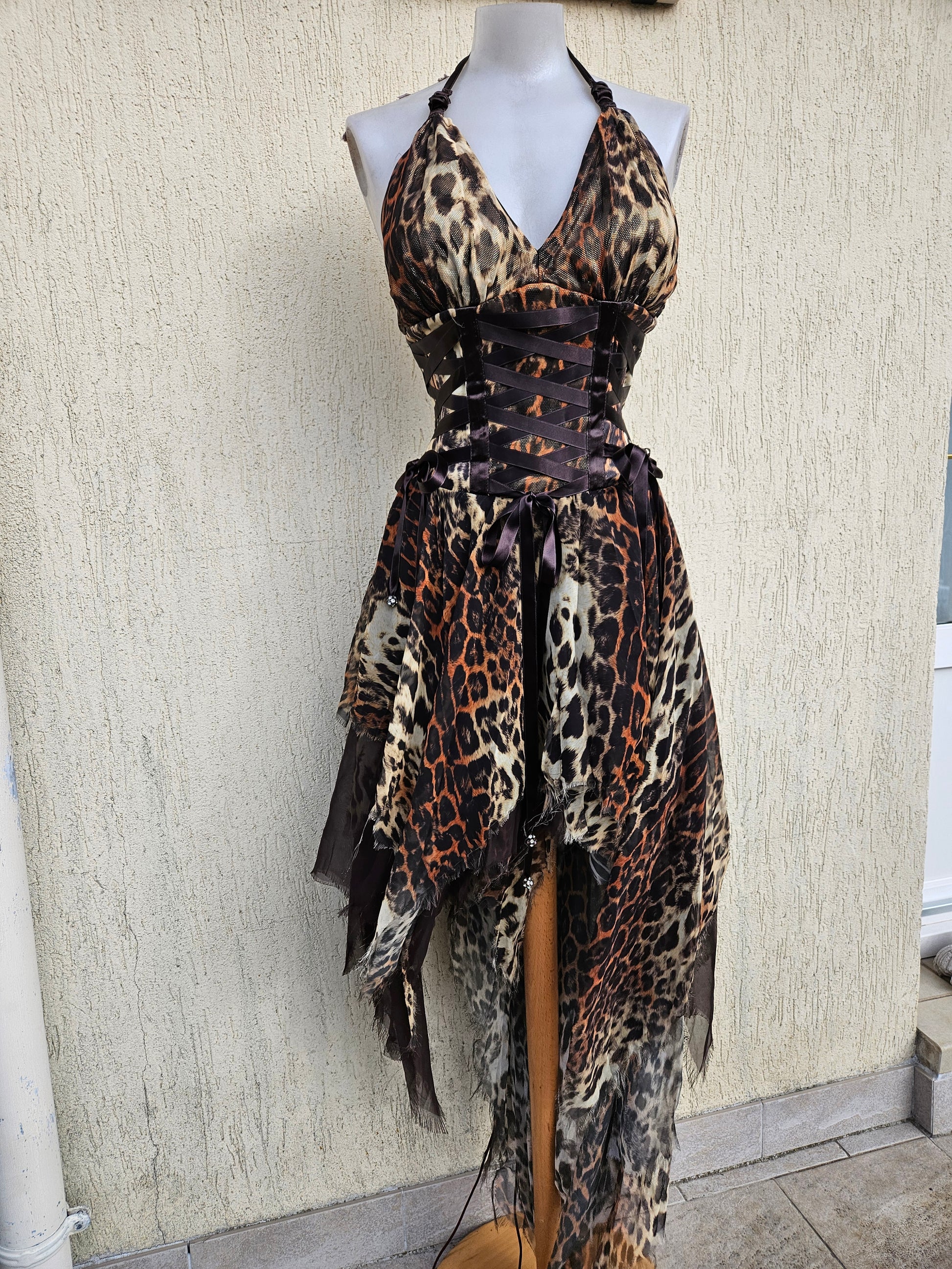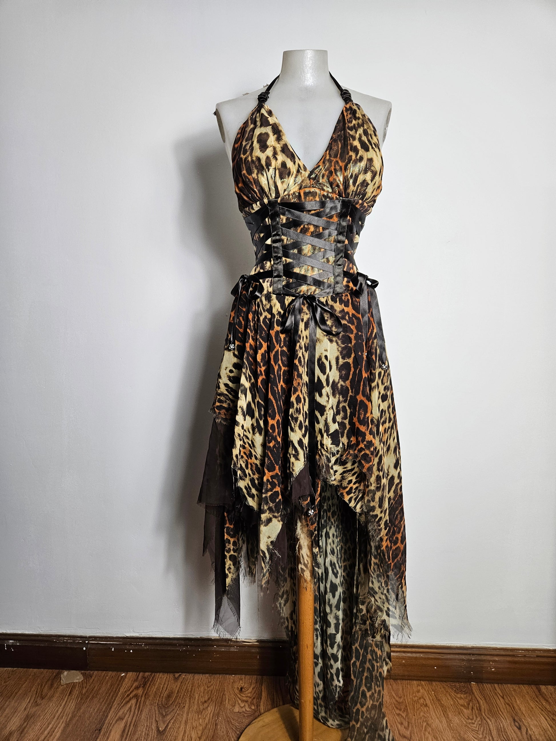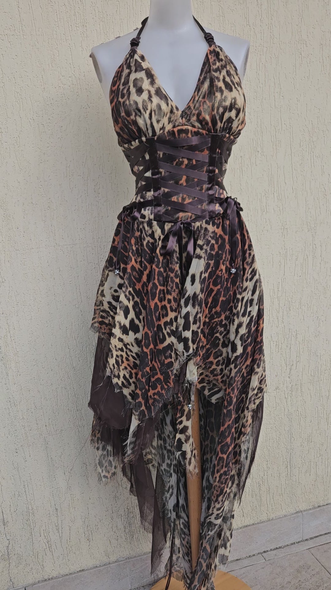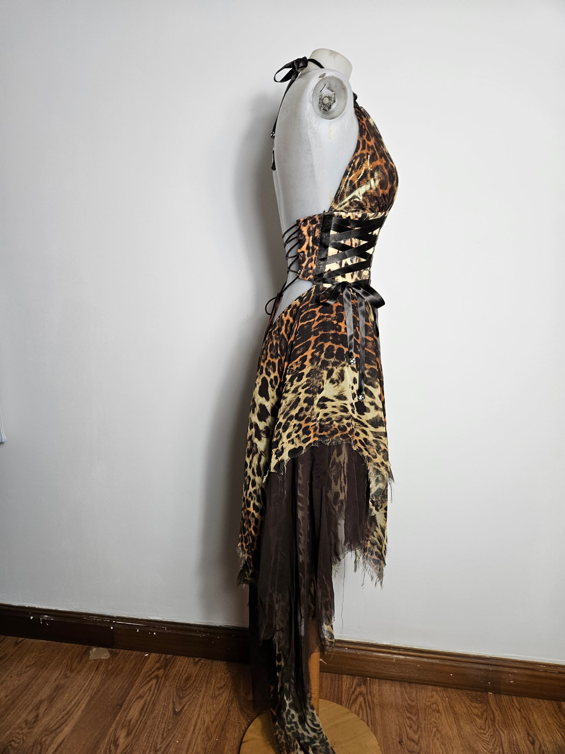 - Robe asymétrique à imprimé léopard et esffet corset à laçages