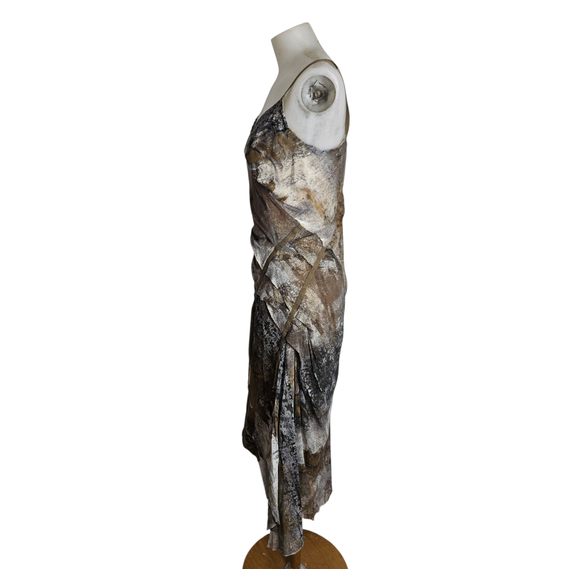 Robe asymétrique tons gris et beige