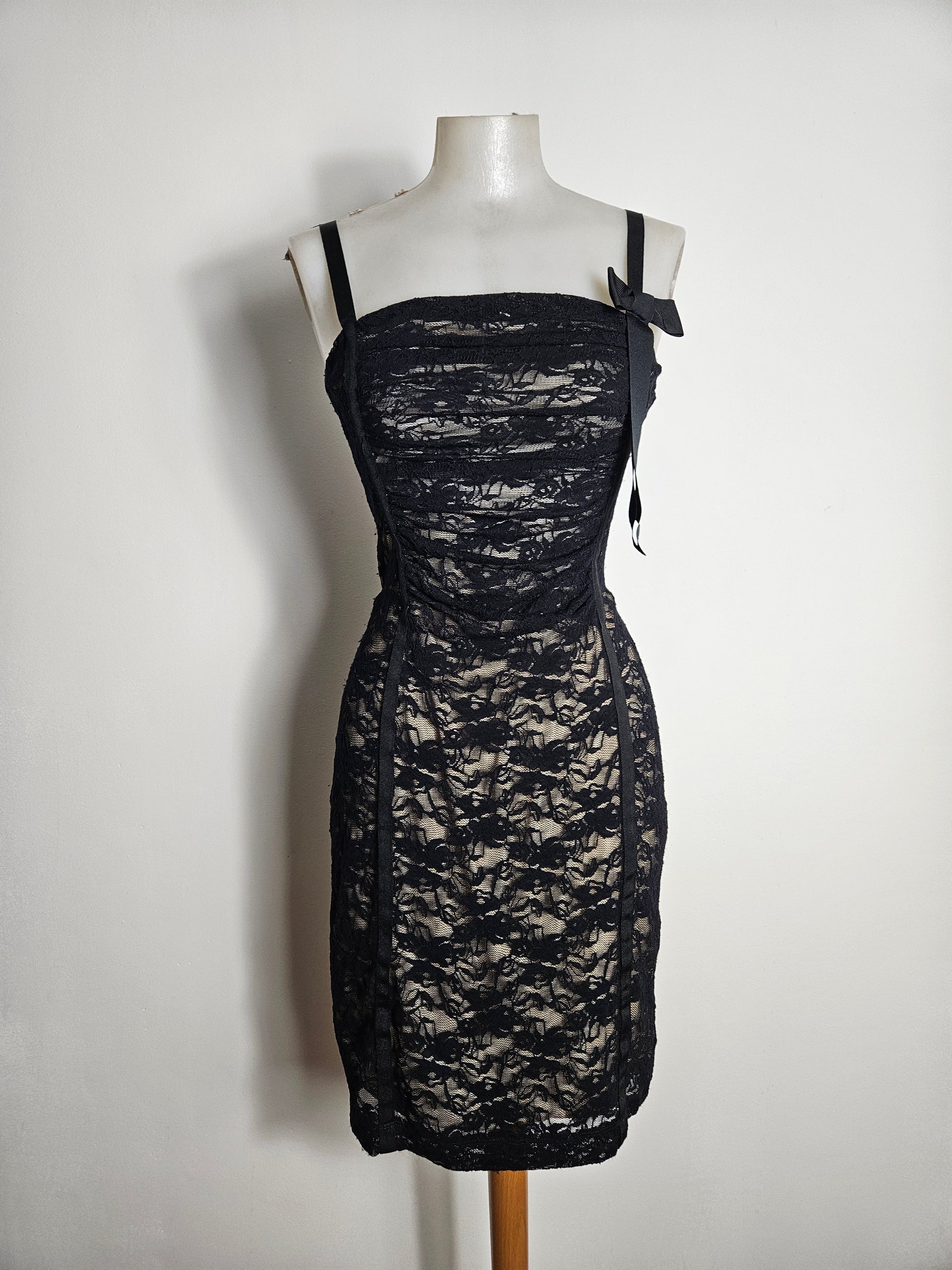 - La robe est vendue avec son petit boléro en dentelle noir manches courtes.