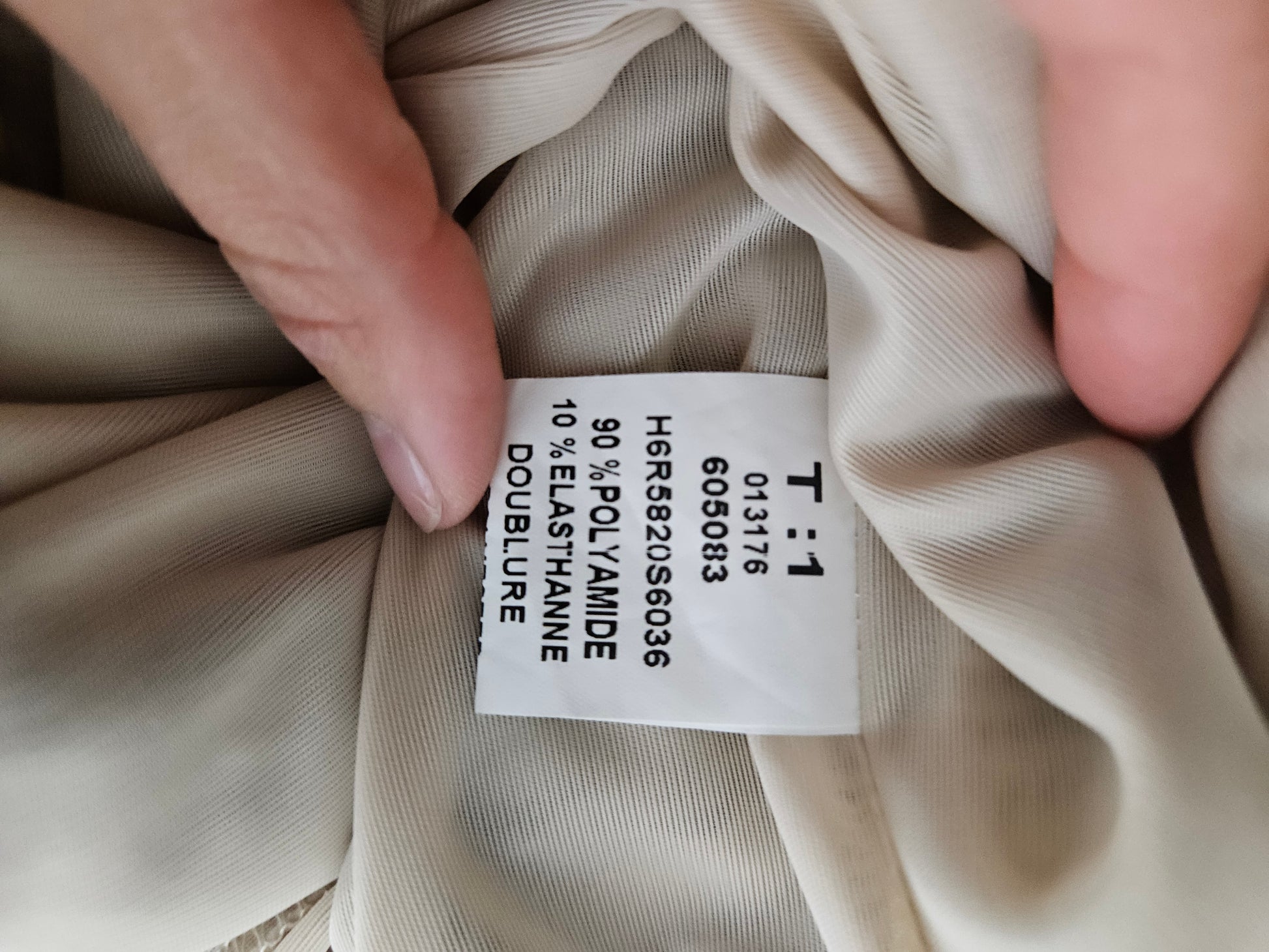 - La bretelle gauche a petit nœud décoratif sur une épaule.