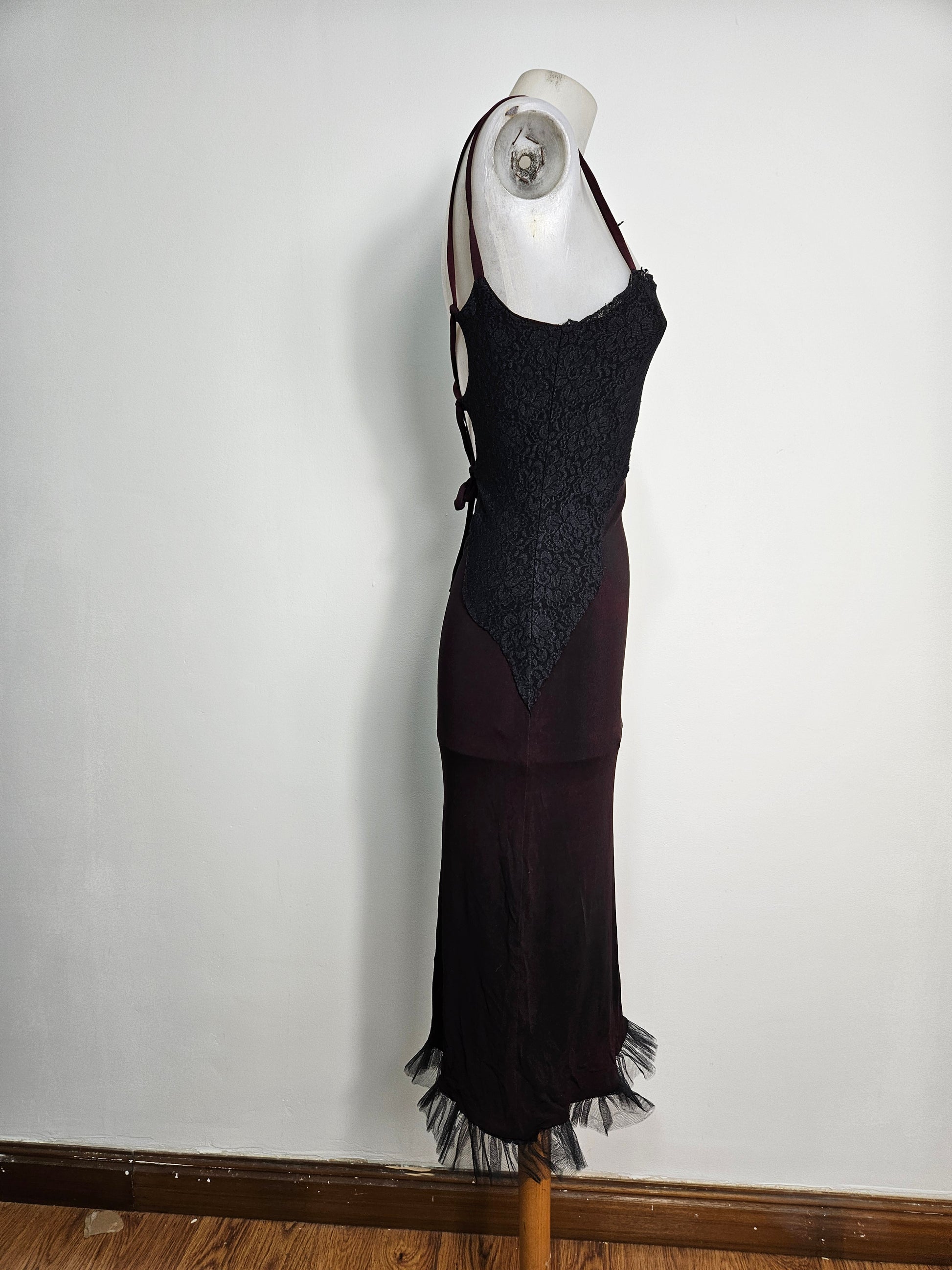 - Robe mi-longue à bretelles croisées et détails en dentelle