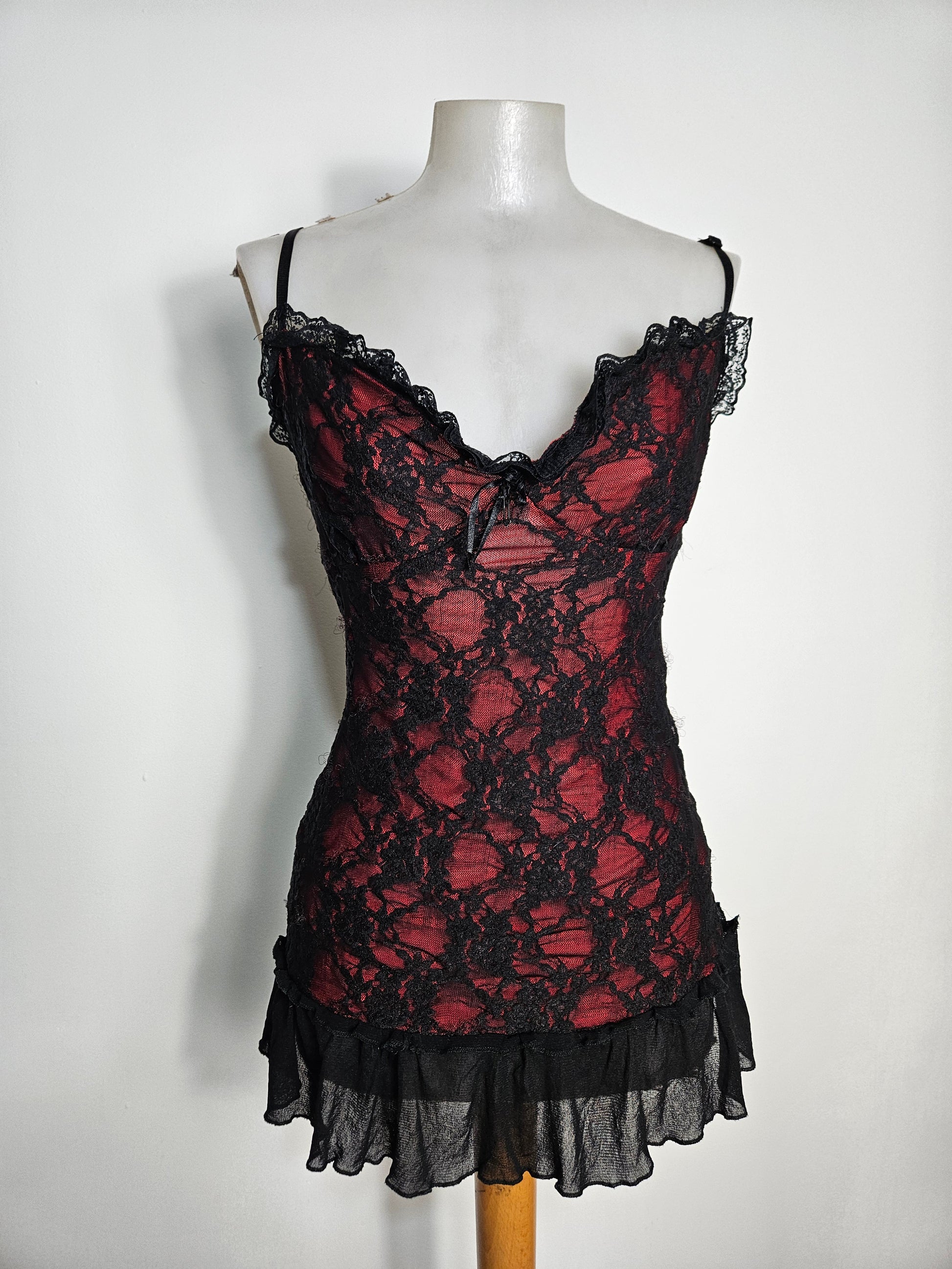 - Haut en dentelle noir à doublure rouge de la marque Queen of Darkness.