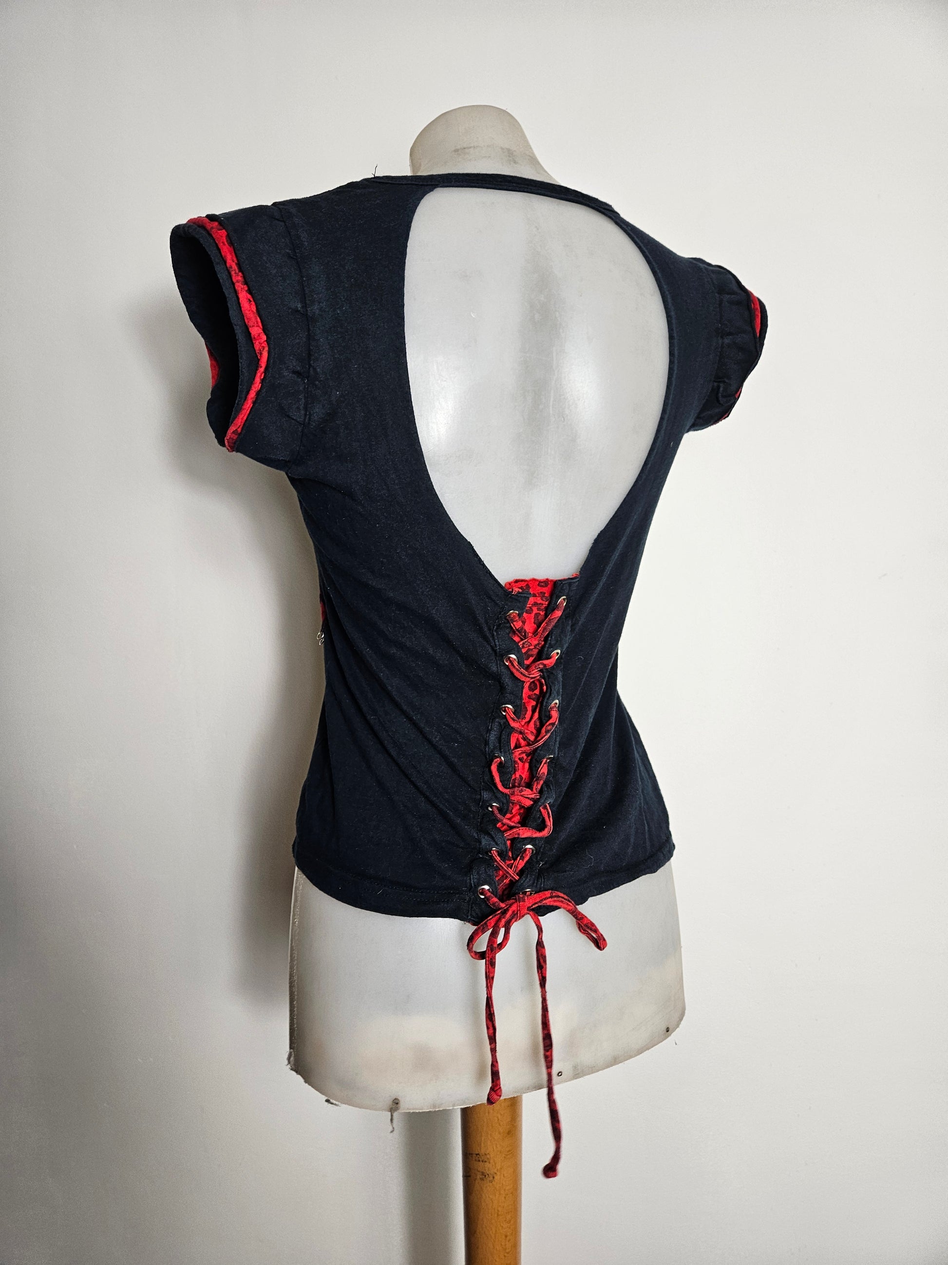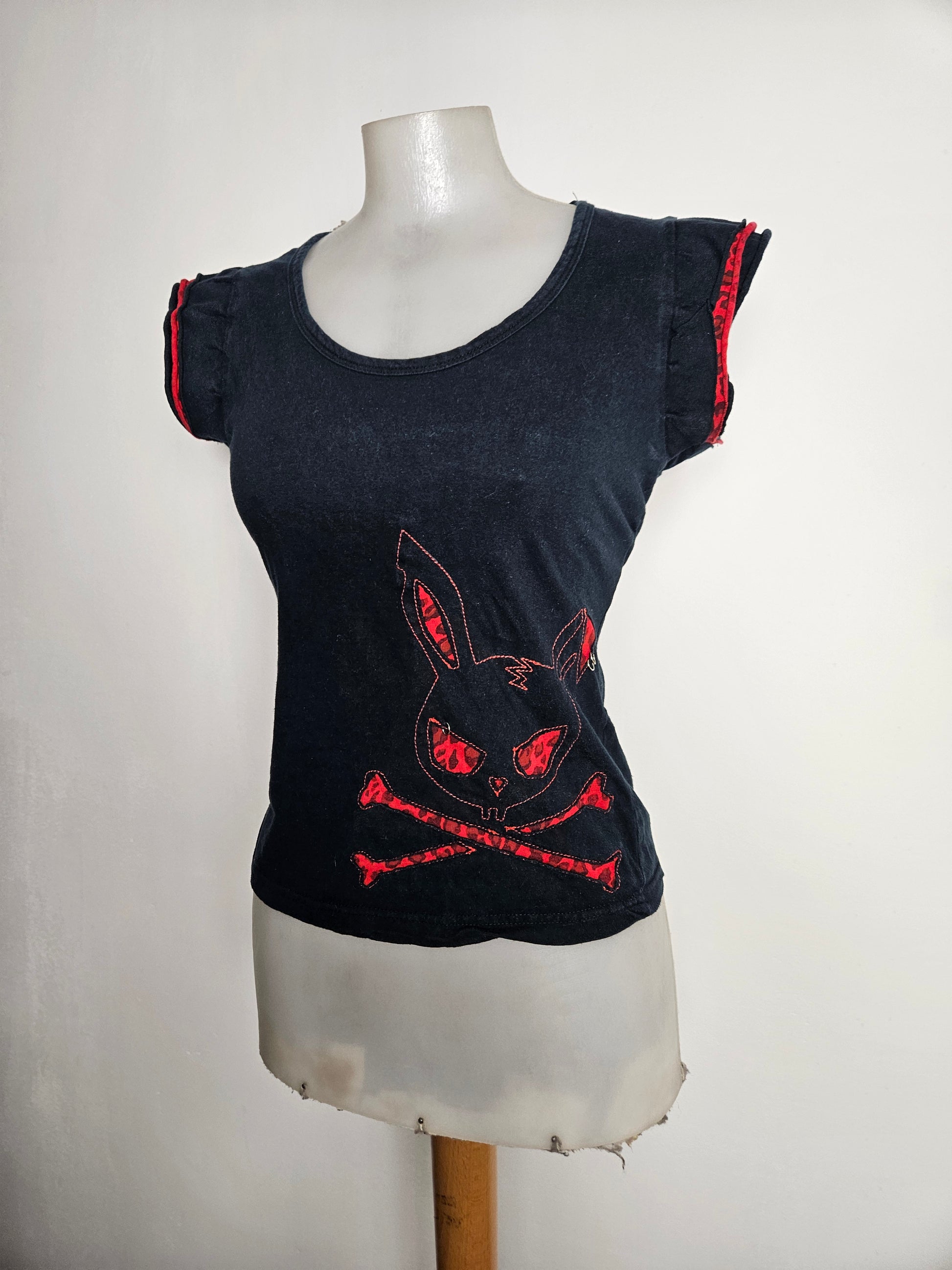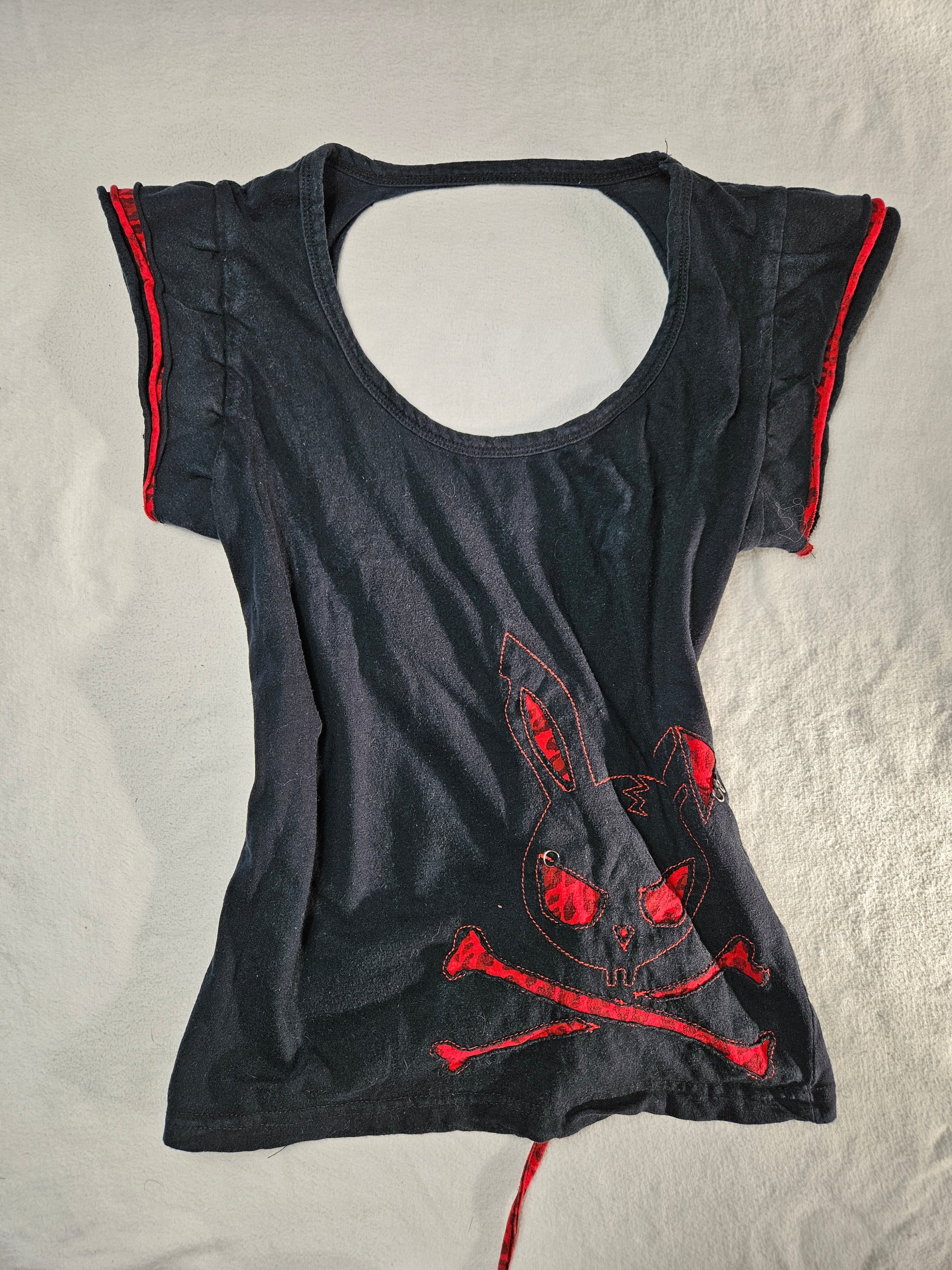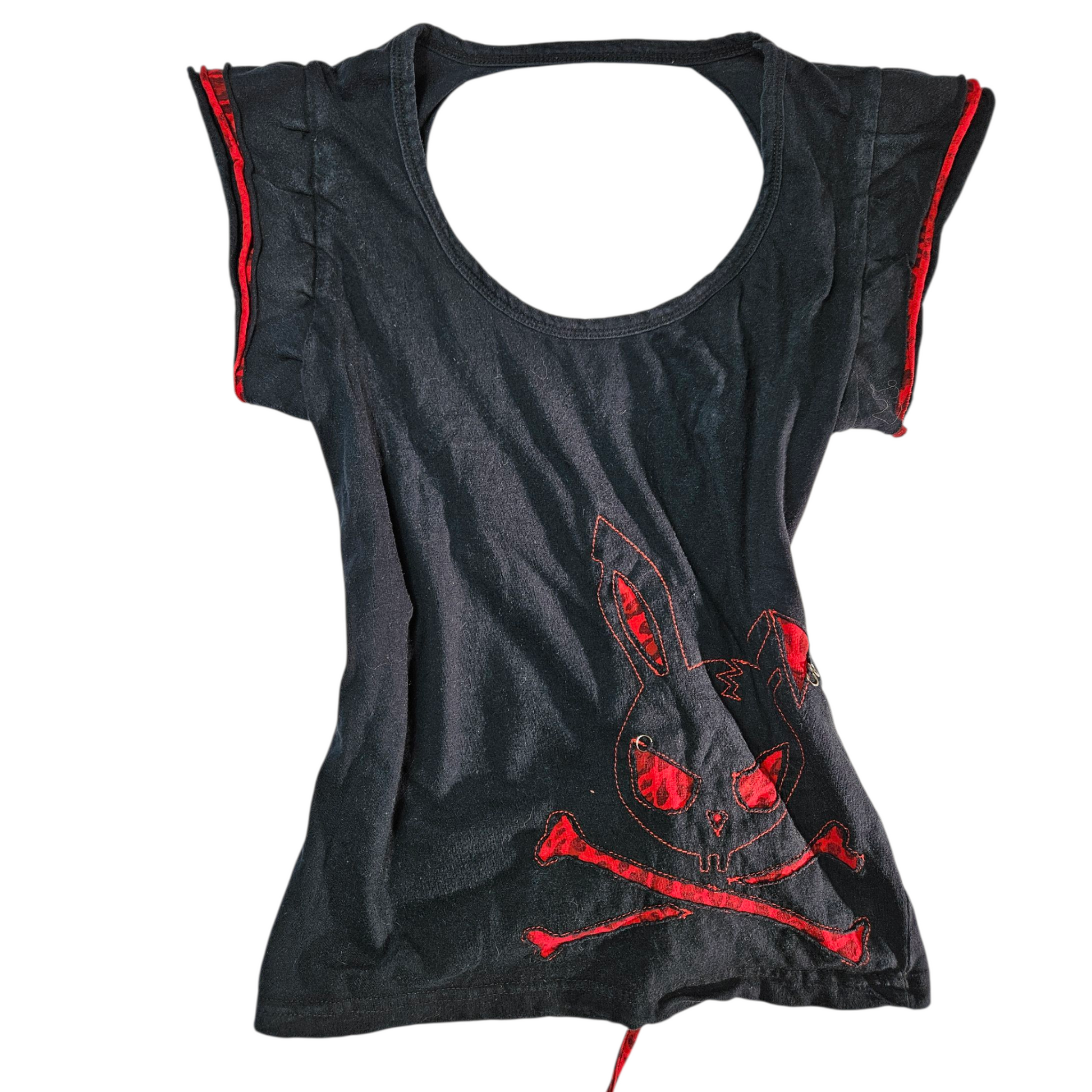 - Top noir et rouge à laçage dos avec le motif Lapin de chez Hell Bunny