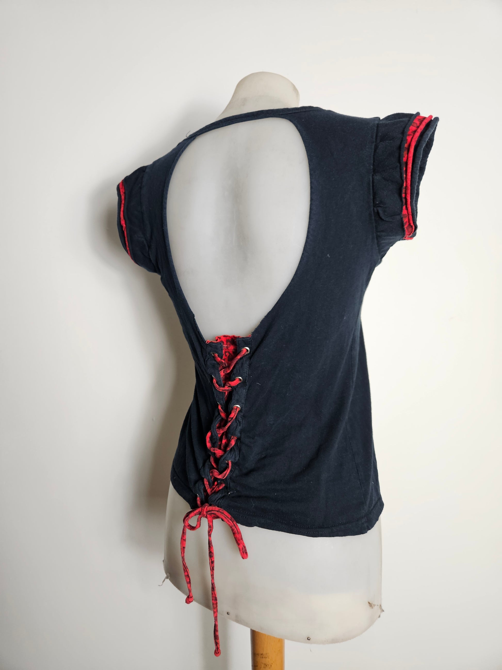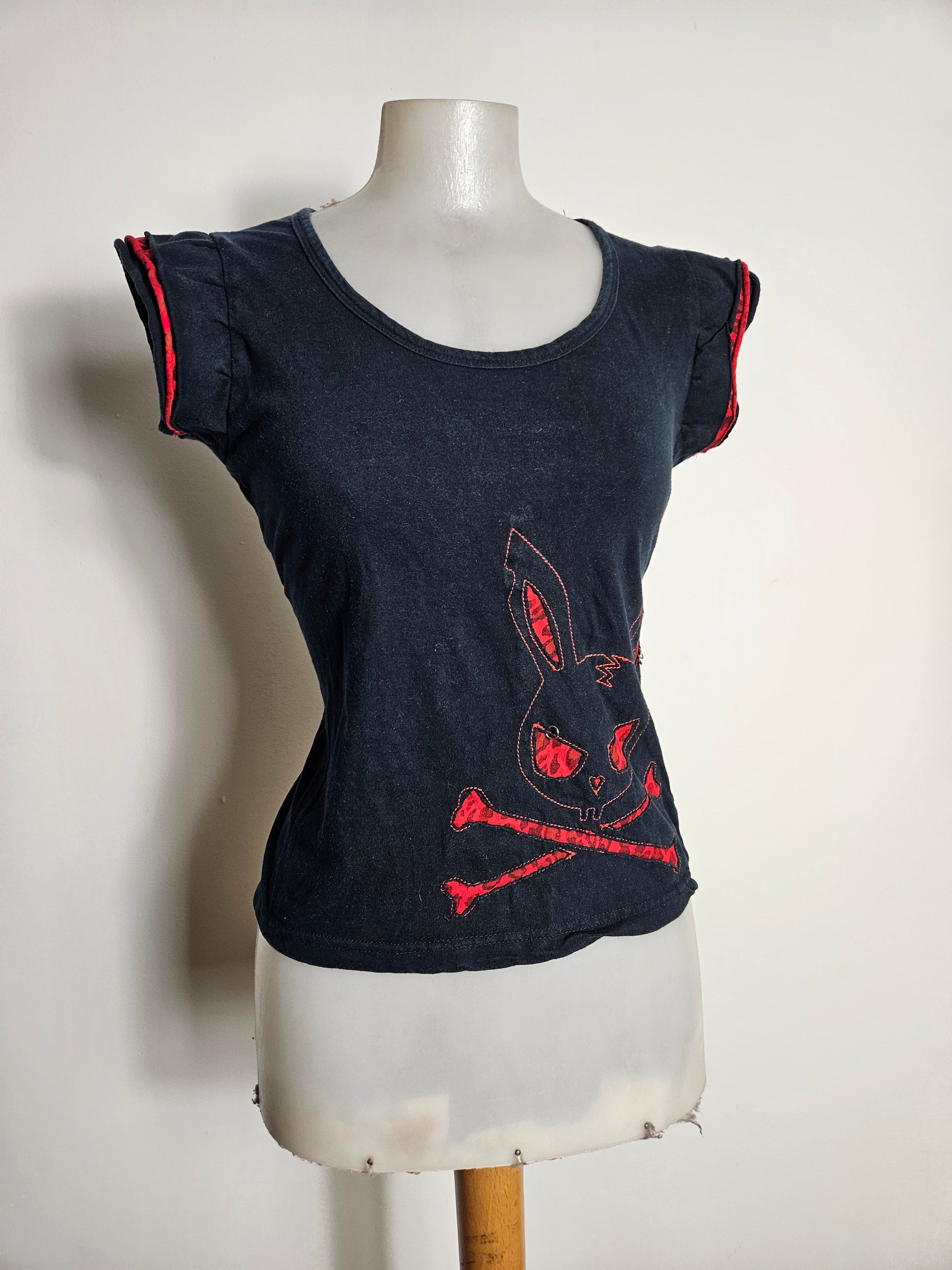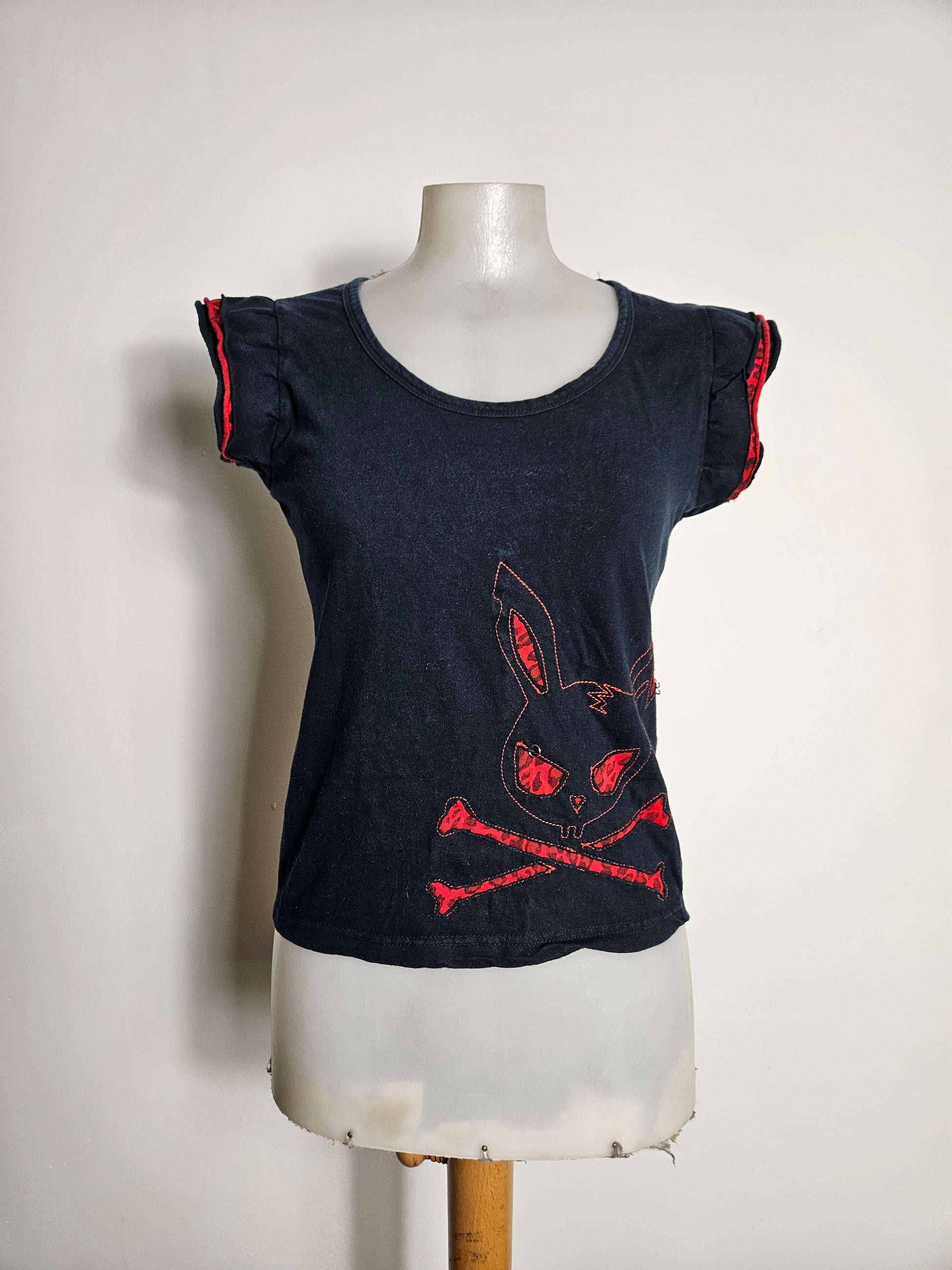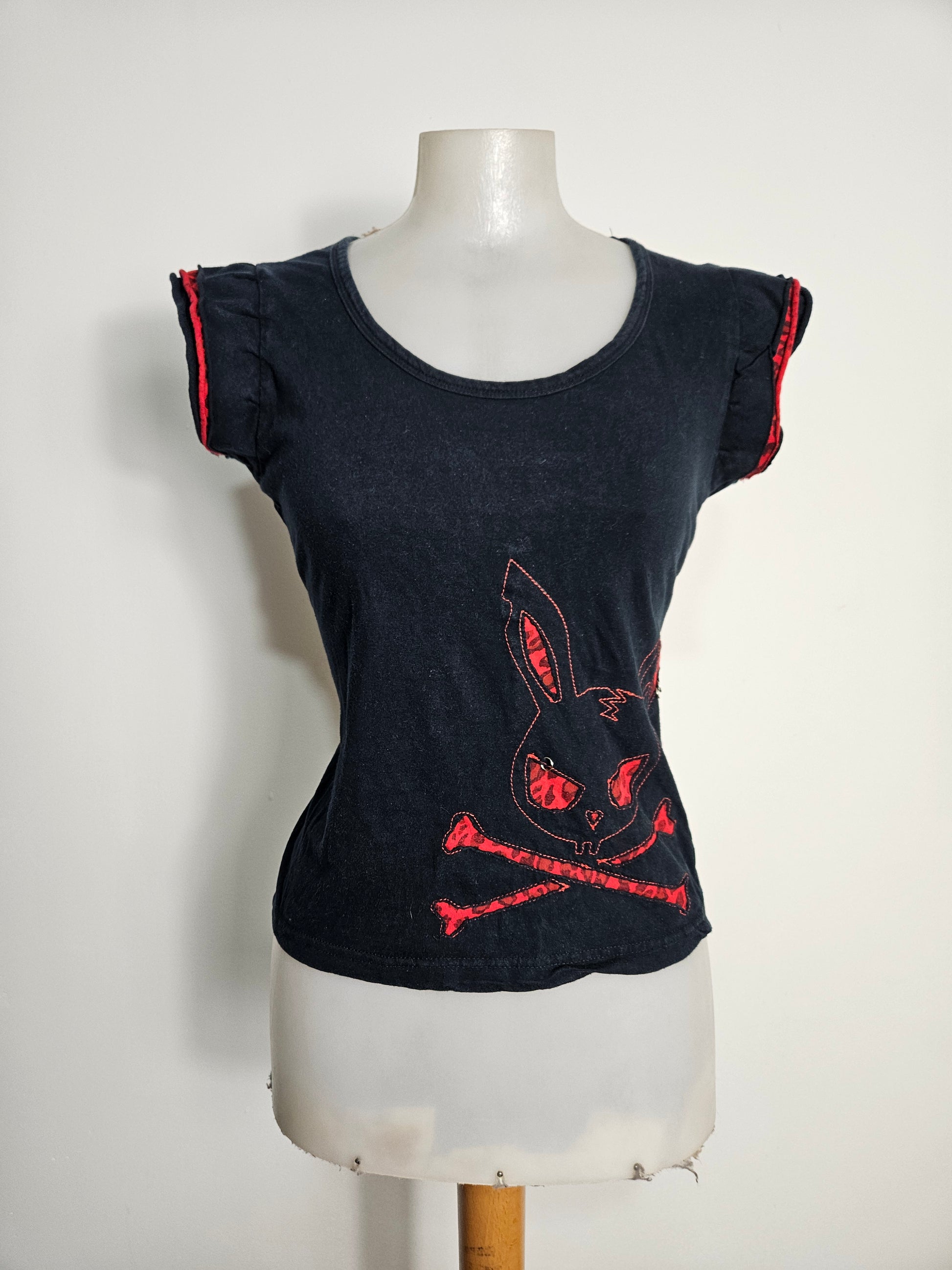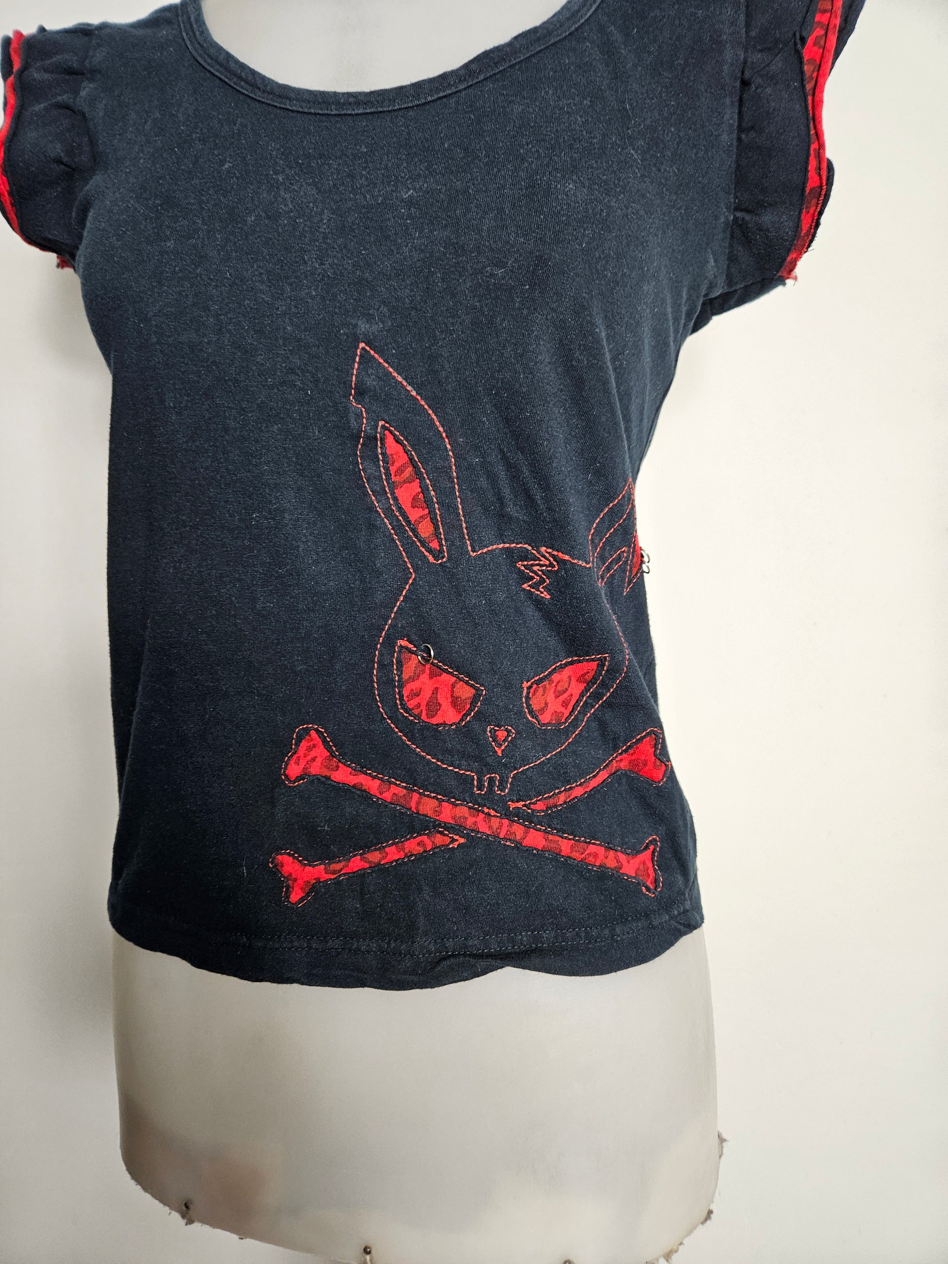 - Top noir et rouge à laçage dos avec le motif Lapin de chez Hell Bunny