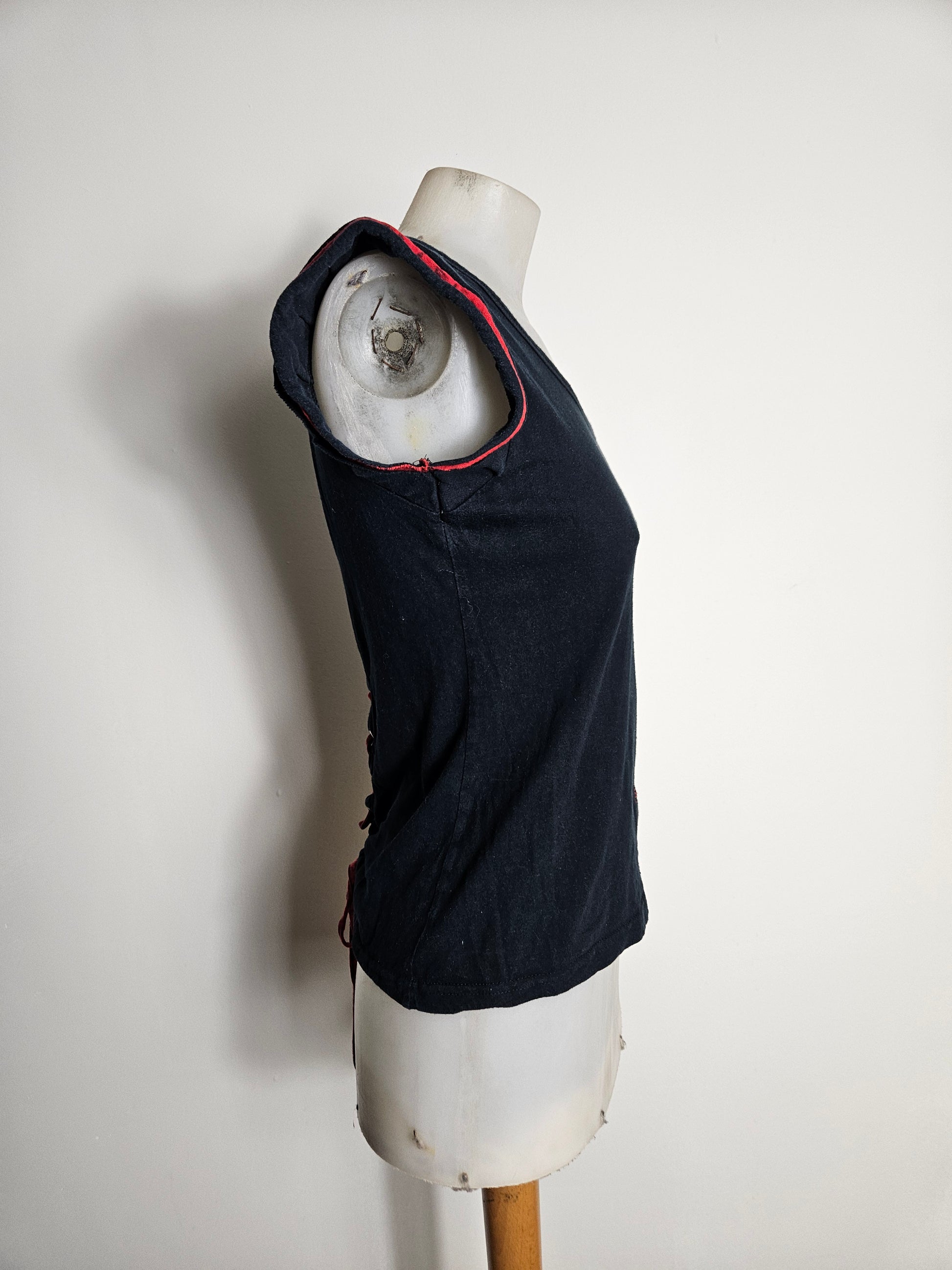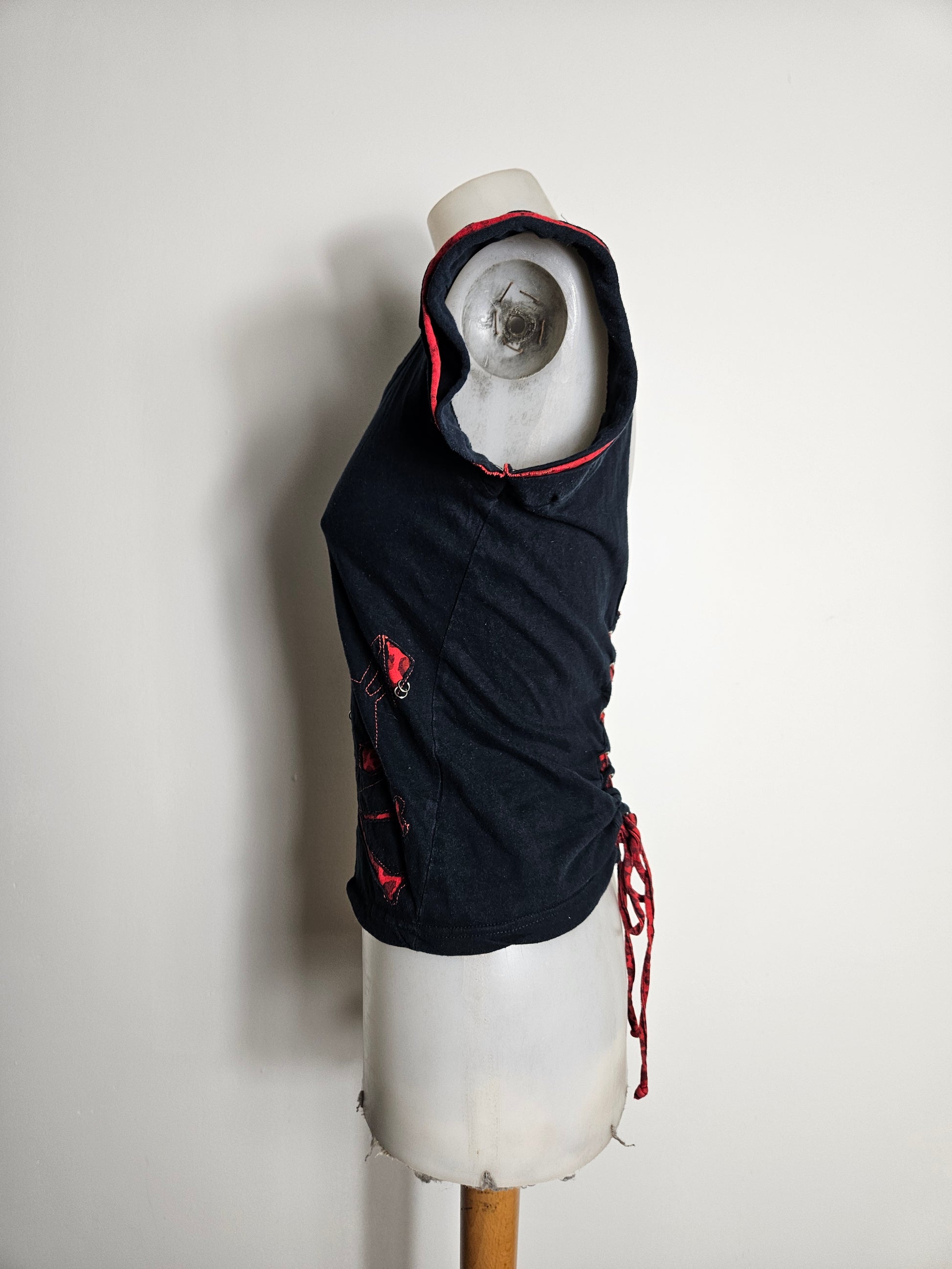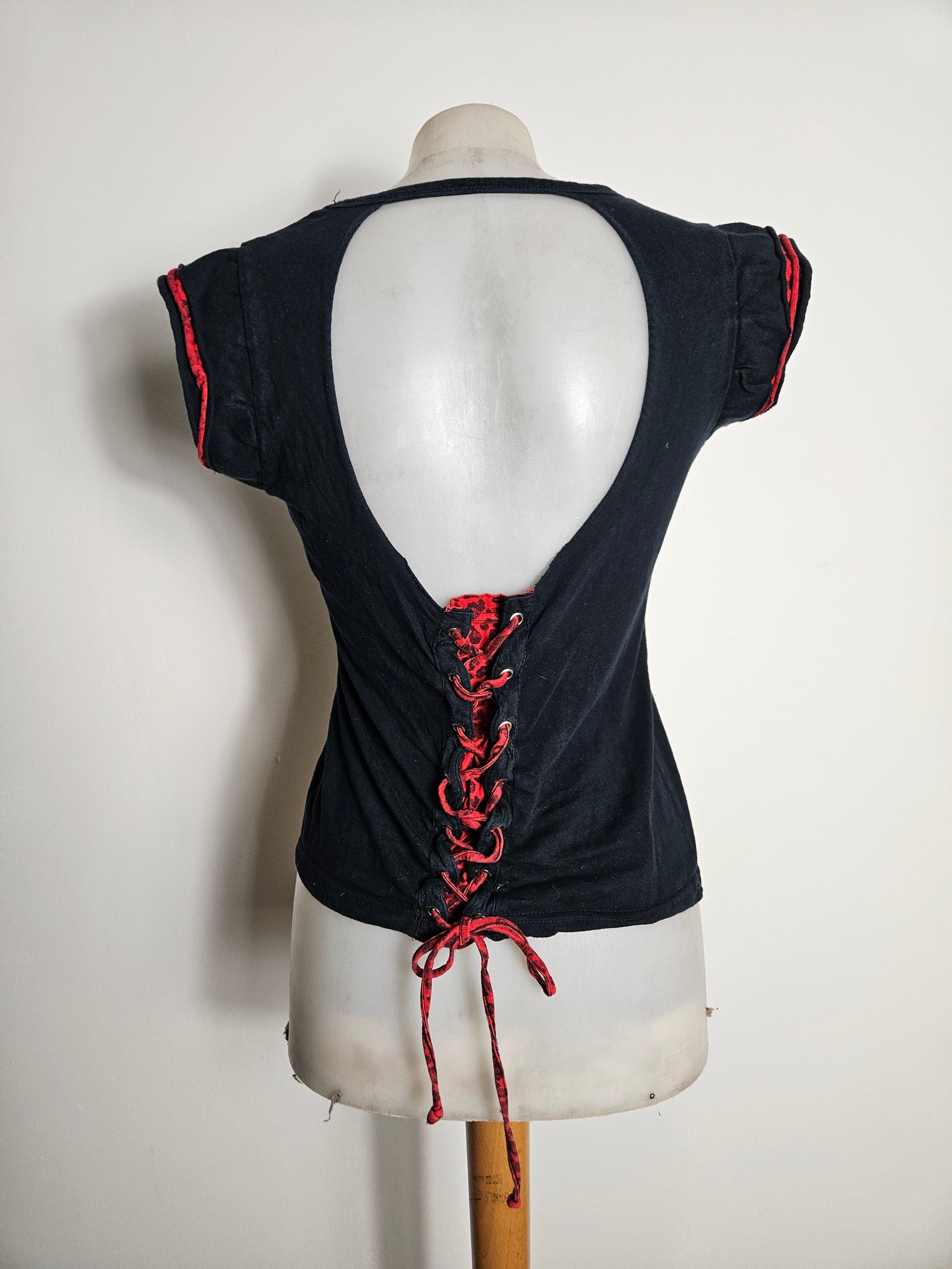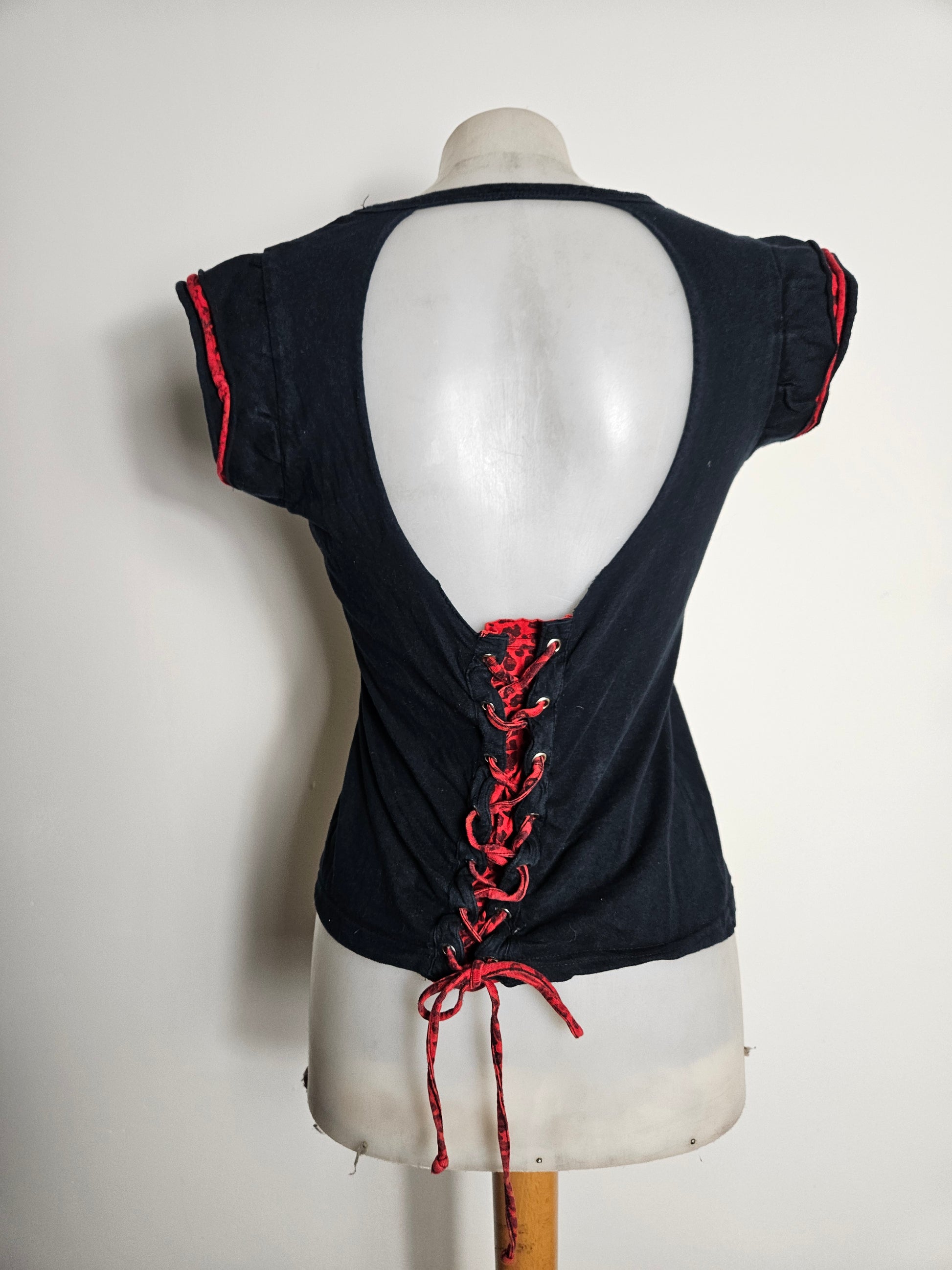 - Top noir et rouge à laçage dos avec le motif Lapin de chez Hell Bunny
