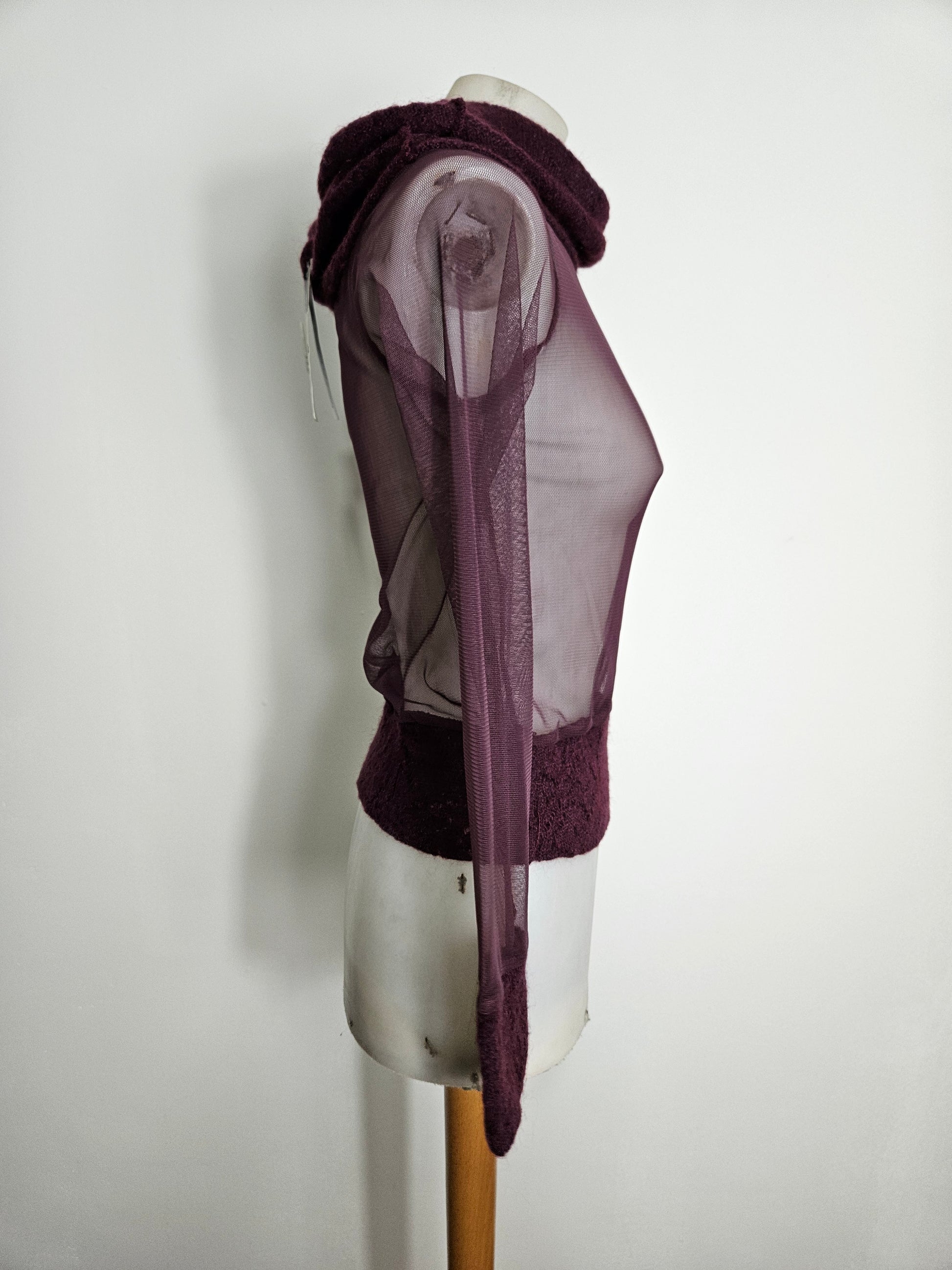 - Finitions en maille assortie au bas du vêtement et aux poignets.