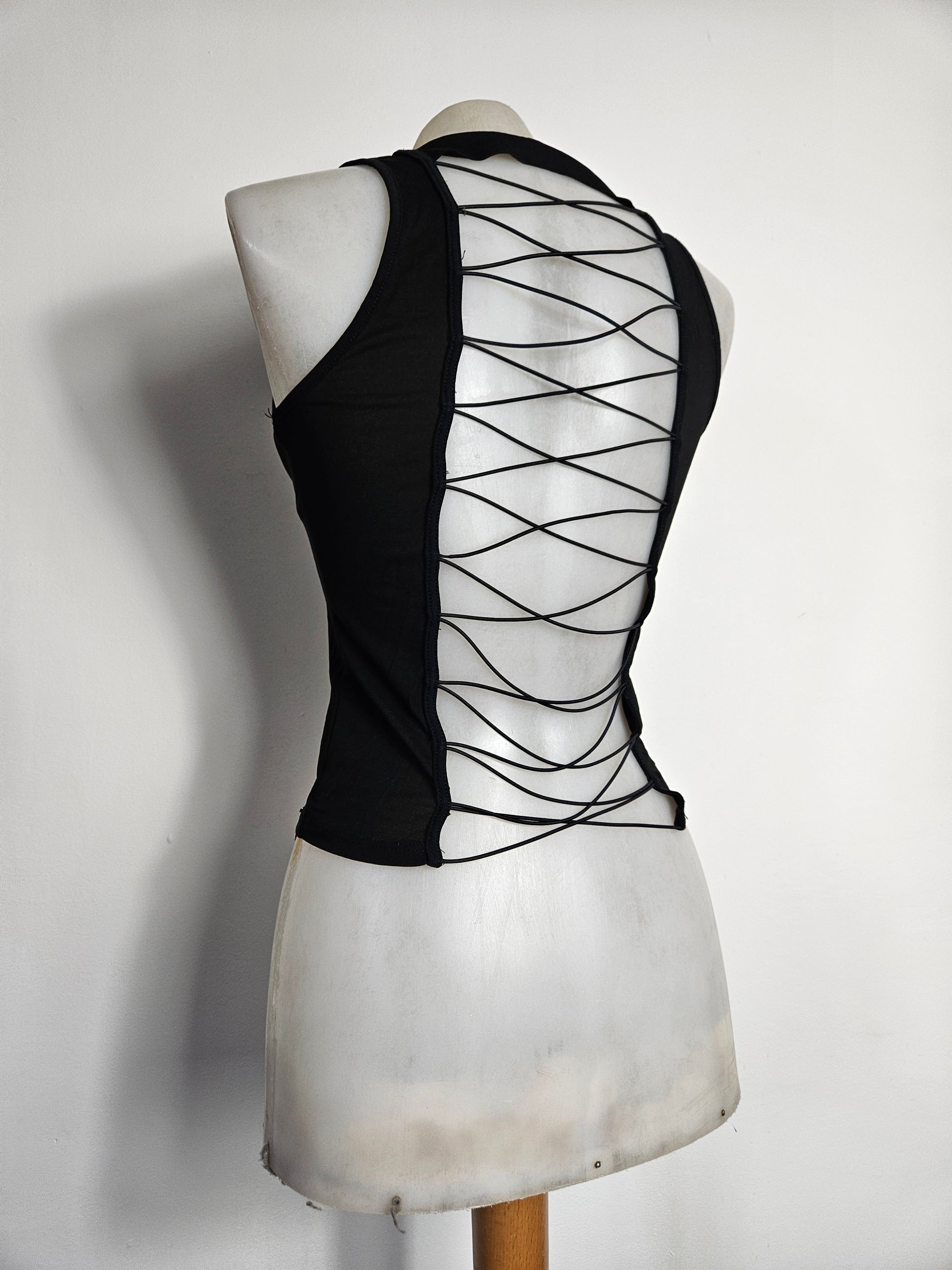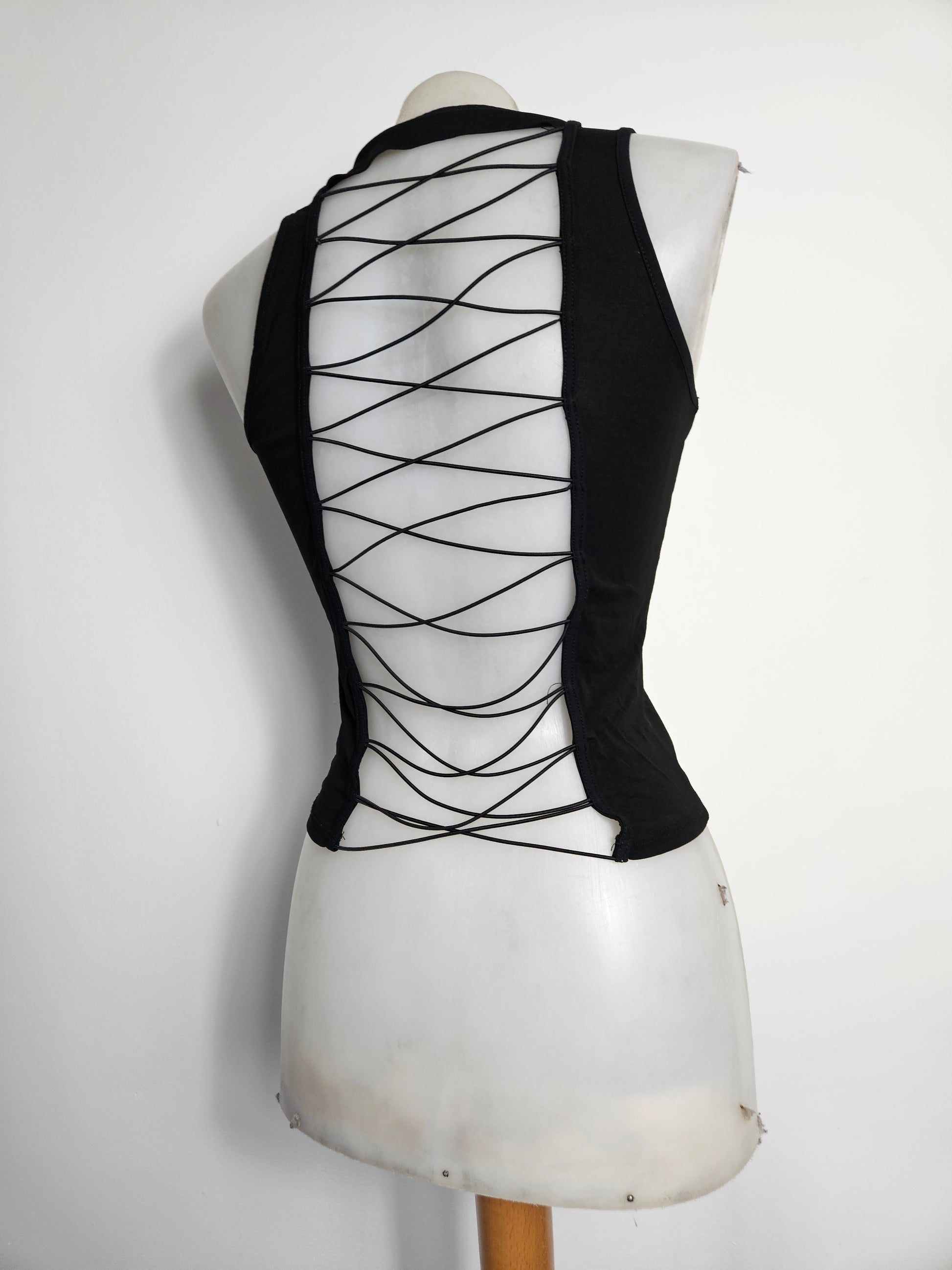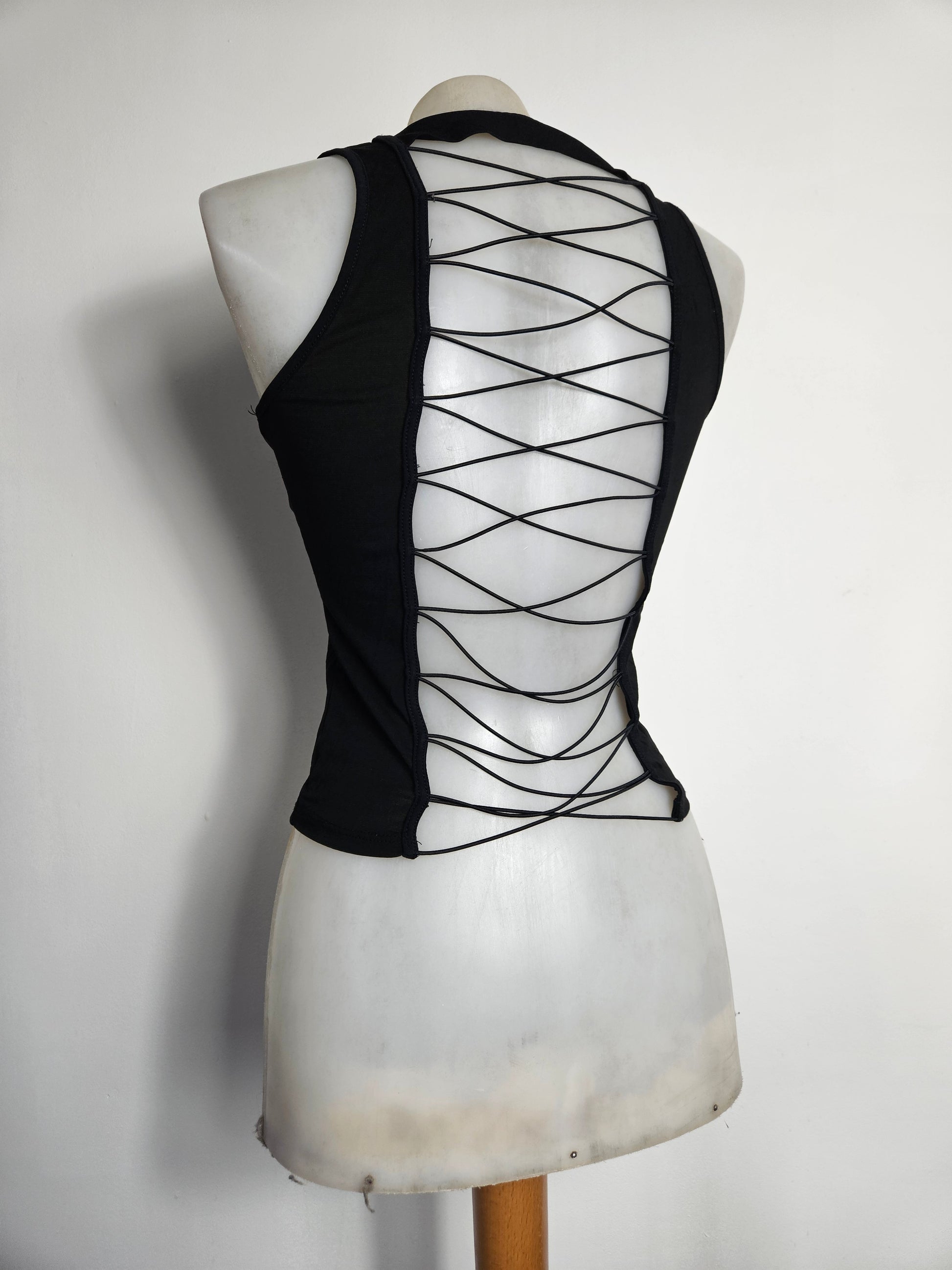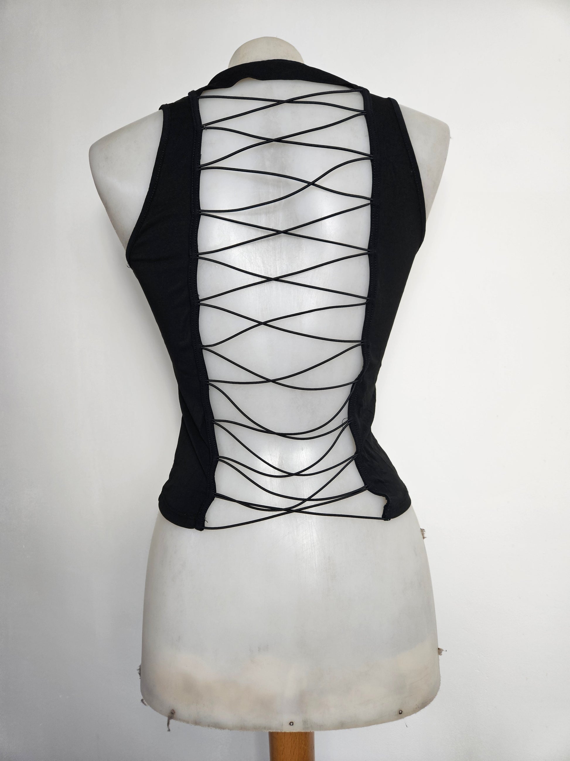 - Dos intégralement lacé en croisillons avec liens fins élastiques