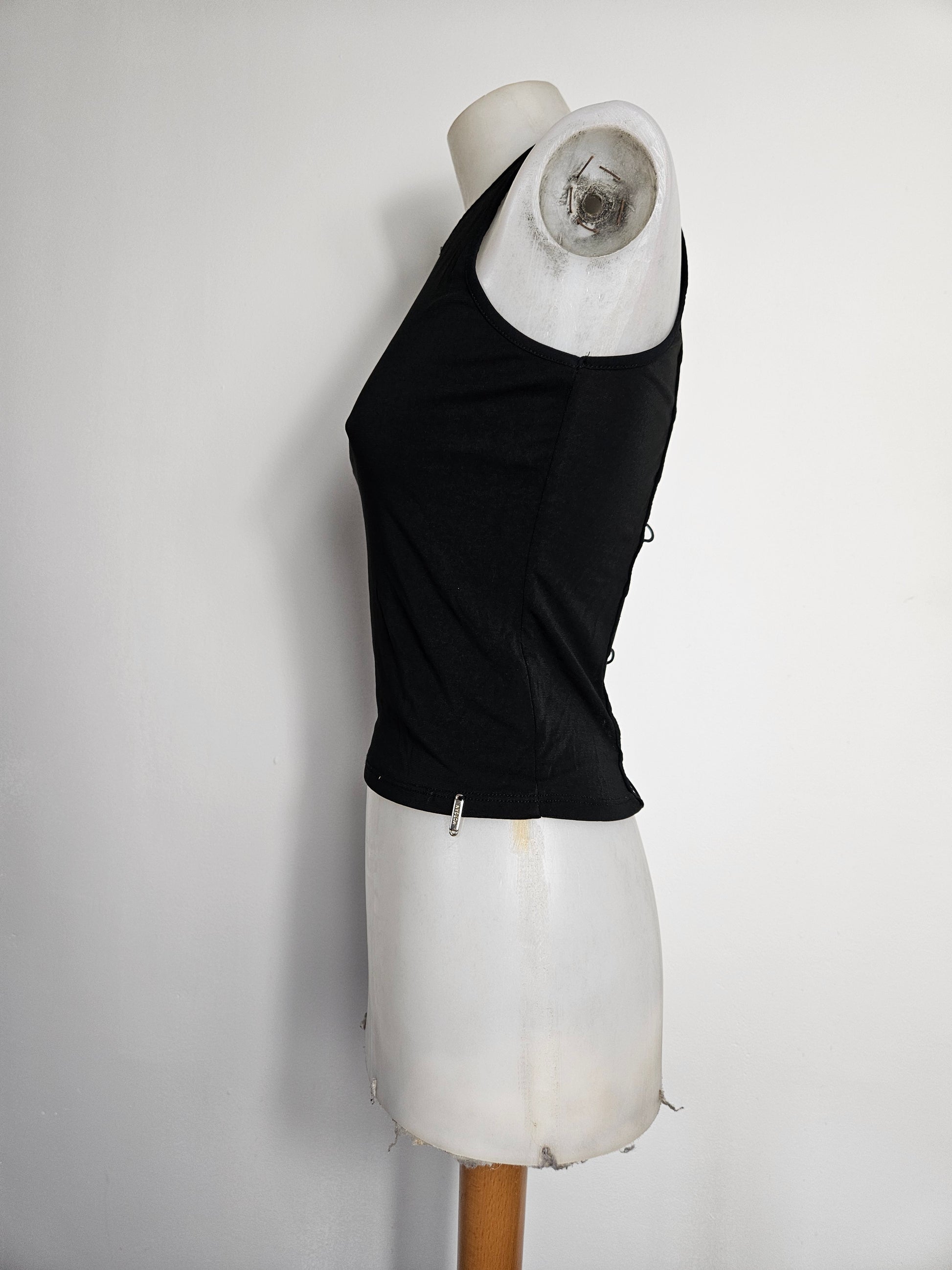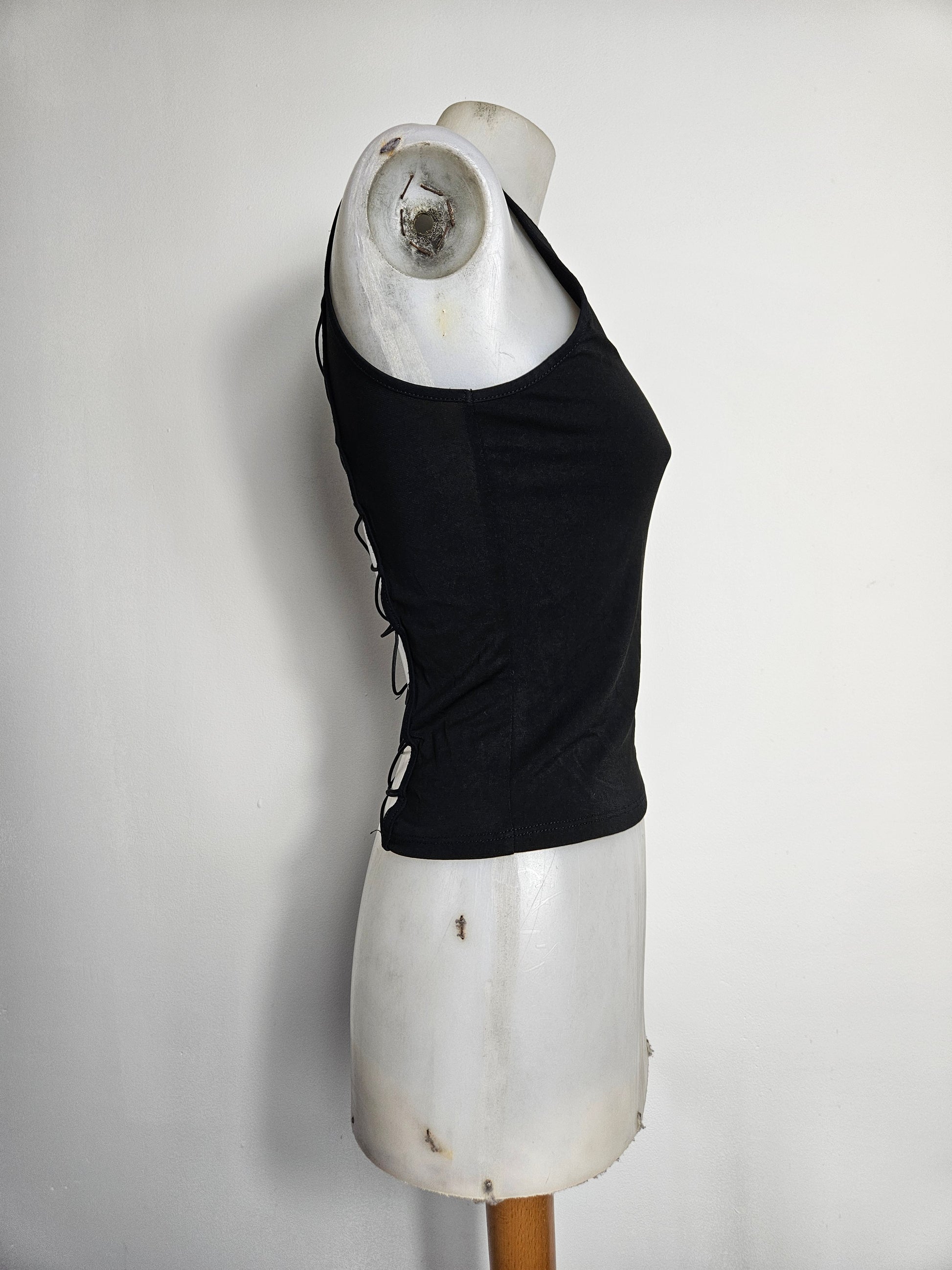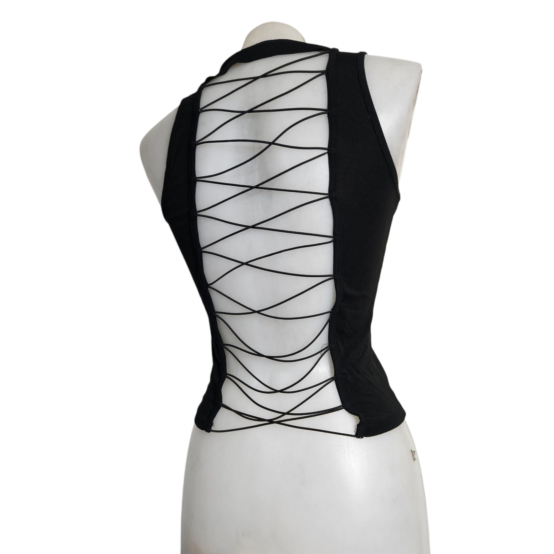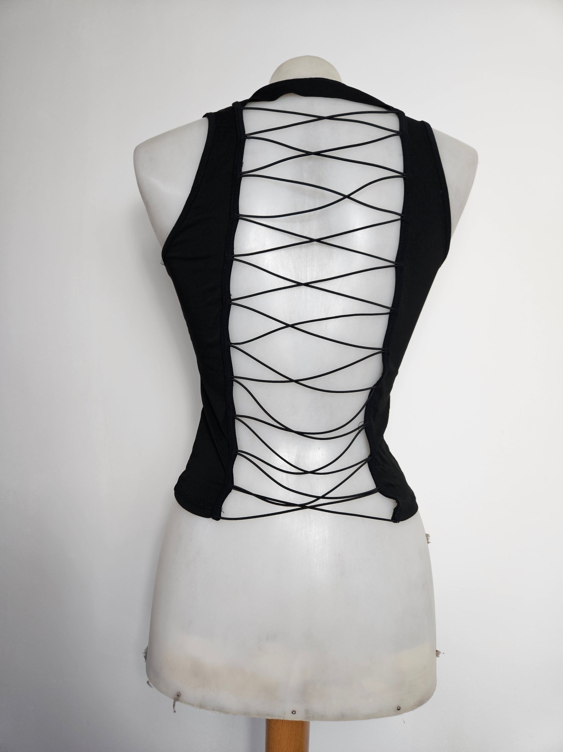 - Dos intégralement lacé en croisillons avec liens fins élastiques